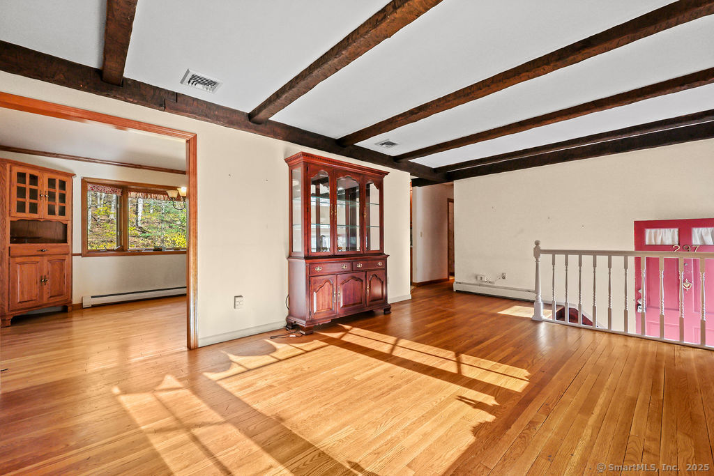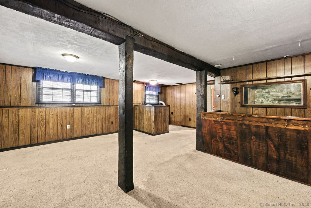 Check all the extras in this Thomaston gem! So many thoughtful and pretty extras - especially the gazebo-like deck, outdoor shower, and decorative walking bridge in back yard. Large 2 car garage is heated and has sprinkler system! Keep those collector cars pampered! There is also ample driveway parking and side parking for extra vehicles. Not one, but two good size sheds for equipment, hobbies, or extra storage - one newly roofed. Large shed has electricity. The beautiful deck conveniently leads to dining and kitchen. Enjoy the warmth from the fireplace in the welcoming living room, with its bay window for extra natural light. Three bedrooms complete the main floor - one with half bath and washer/dryer, and one with steps to the attic - no pull down hatch! Two of the bedrooms now have carpet, easily removed to expose the hardwood under. The vintage feel rec room has another fireplace! (and a classic bar!) A few updates will make this well located home your own! Great residential neighborhood but easily accessible to highways, shopping, and recreation. Subject to probate court approval and being sold "as is where is"
