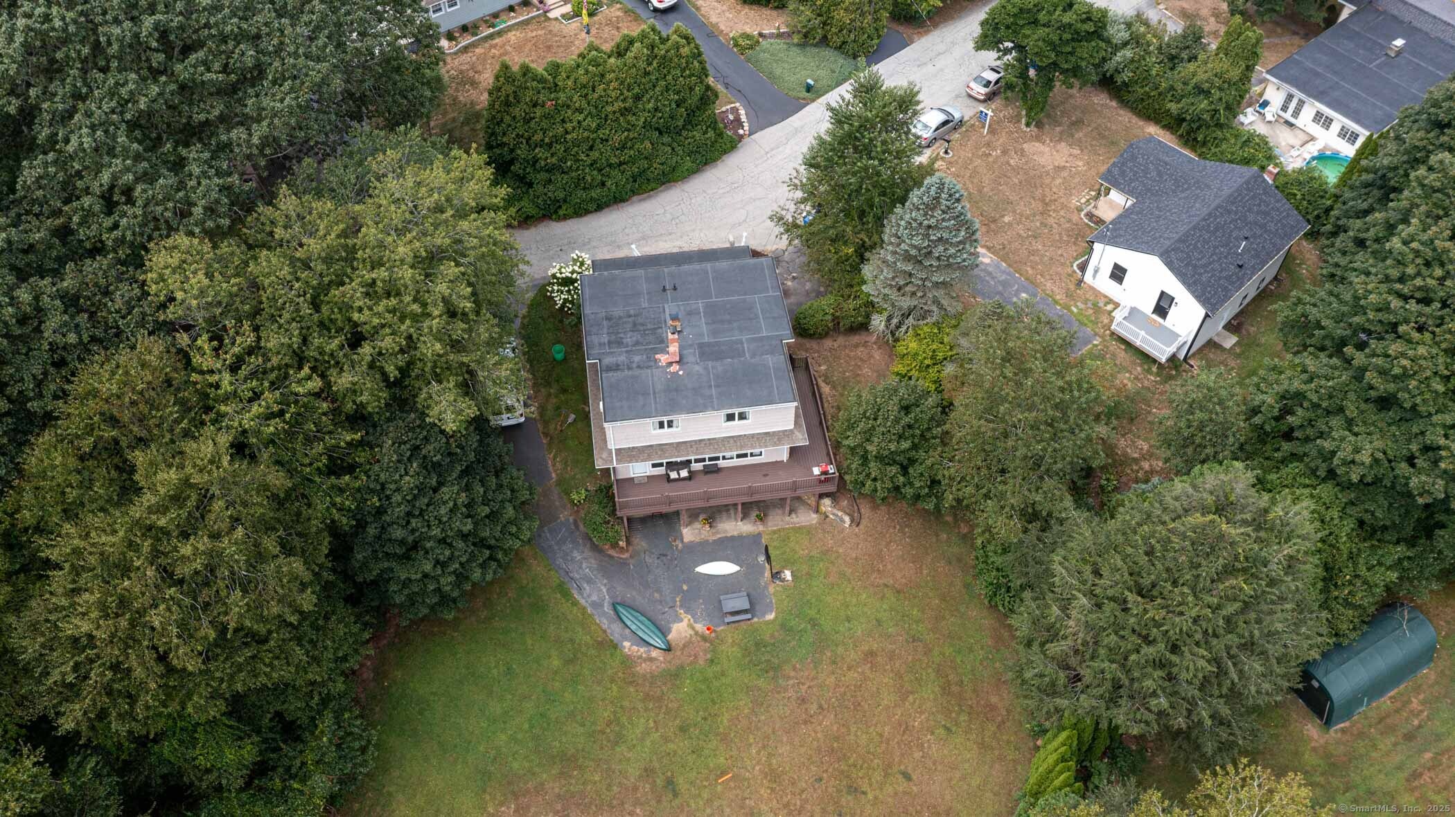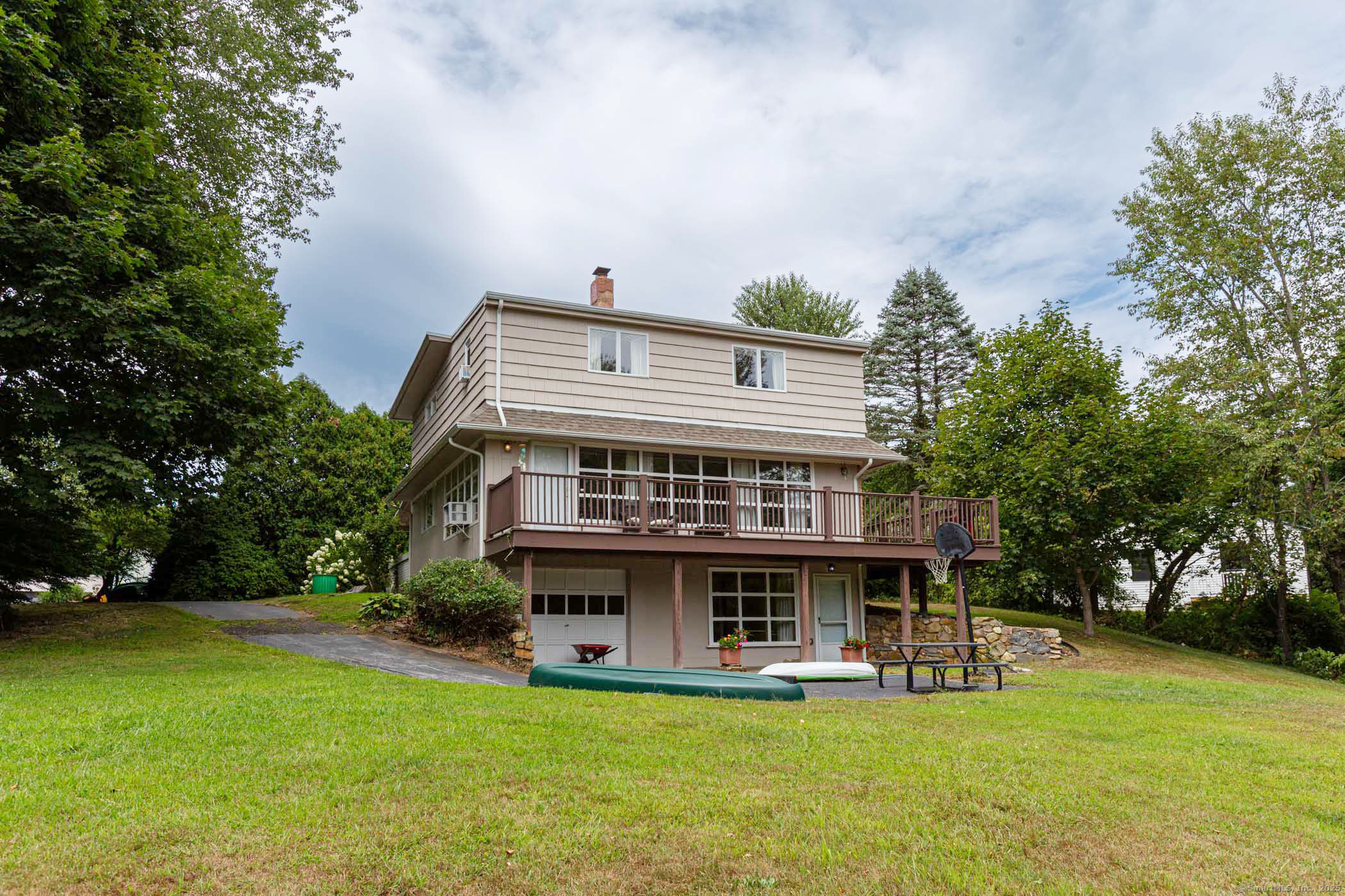 Discover a rare opportunity to own direct waterfront on the serene shores of Oxoboxo Lake. Nestled on .81 acres, this property blends comfort, character, and unbeatable views in a setting designed for year-round enjoyment. Step onto the wraparound Trex deck and take in panoramic lake vistas, perfect for morning coffee, summer gatherings, or quiet sunsets. Inside, the main level is warm and inviting with a central fireplace in the Living Room, a dedicated Dining Room, spacious Kitchen, cozy Den, and a convenient half bath. There is also an additional functional bedroom on the main floor. Upstairs offers three comfortable bedrooms and a full bath, providing plenty of space for family or guests. The lower level includes a one-car garage, walk-out access to the expansive yard, and a large flexible area ready to be transformed into additional living space, a workshop, or recreation room. Major updates include a brand-new septic system (2022) and generator hookup for peace of mind. Whether it's fishing, kayaking, or simply unwinding by the water, this property delivers the ultimate lakefront lifestyle - all from your own backyard.