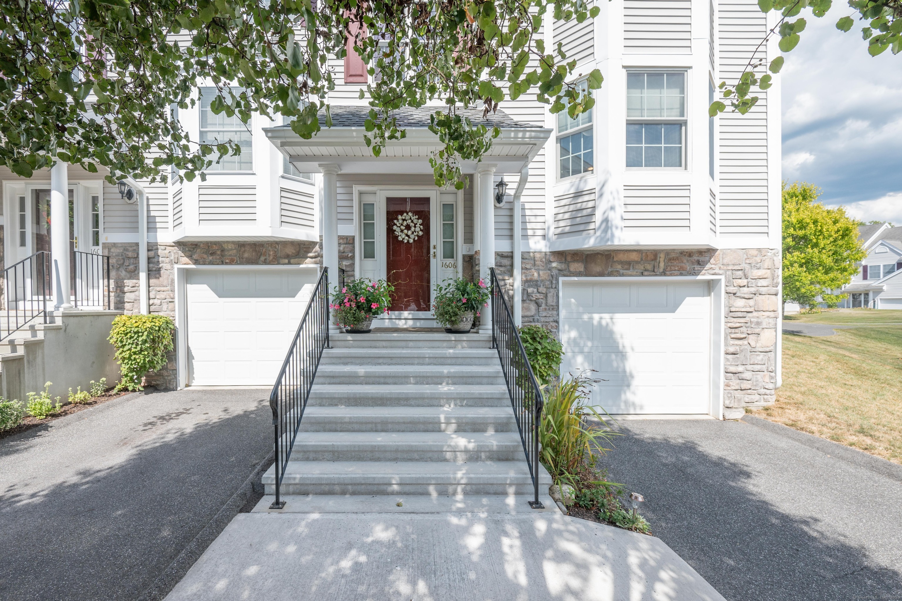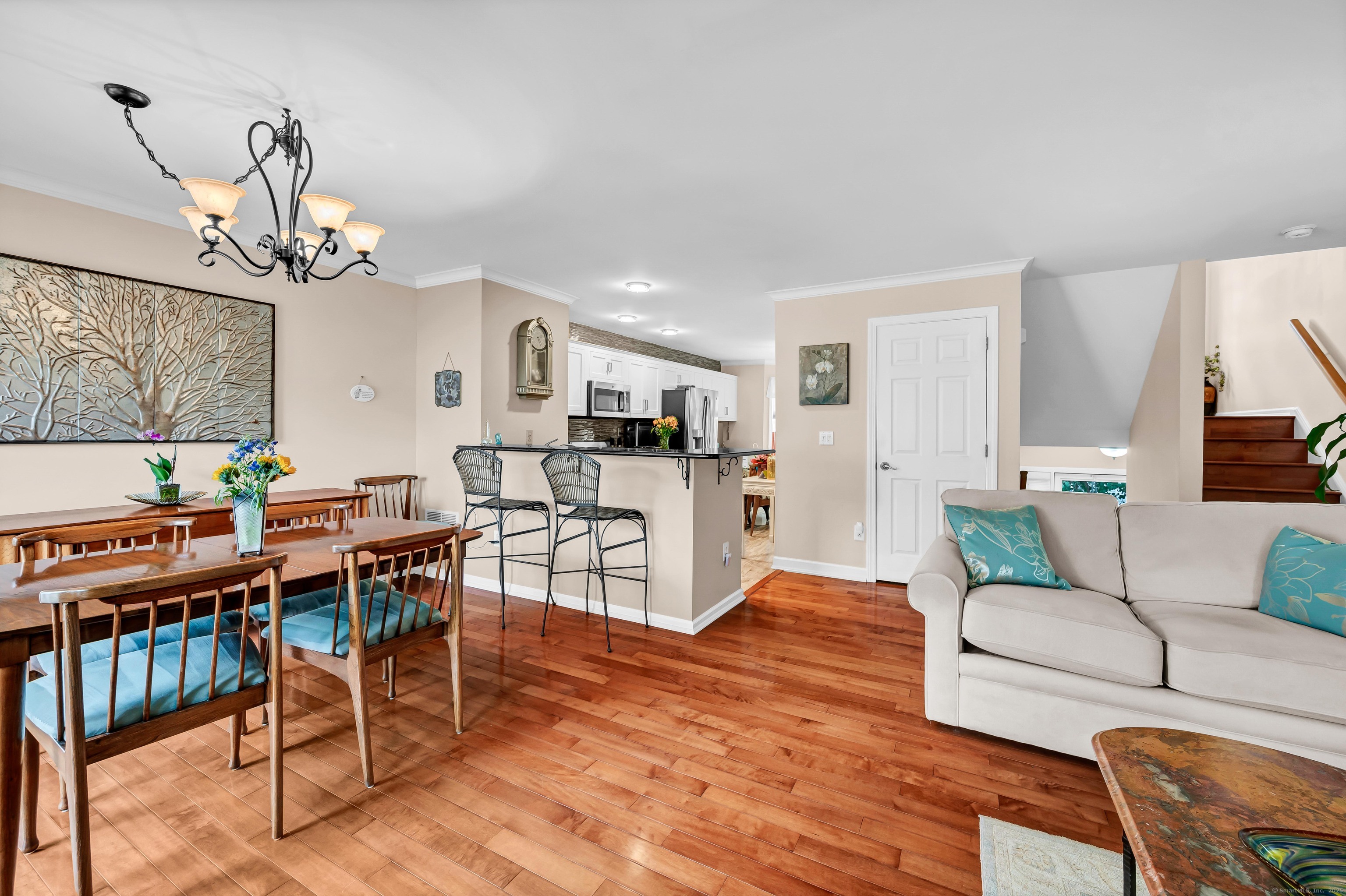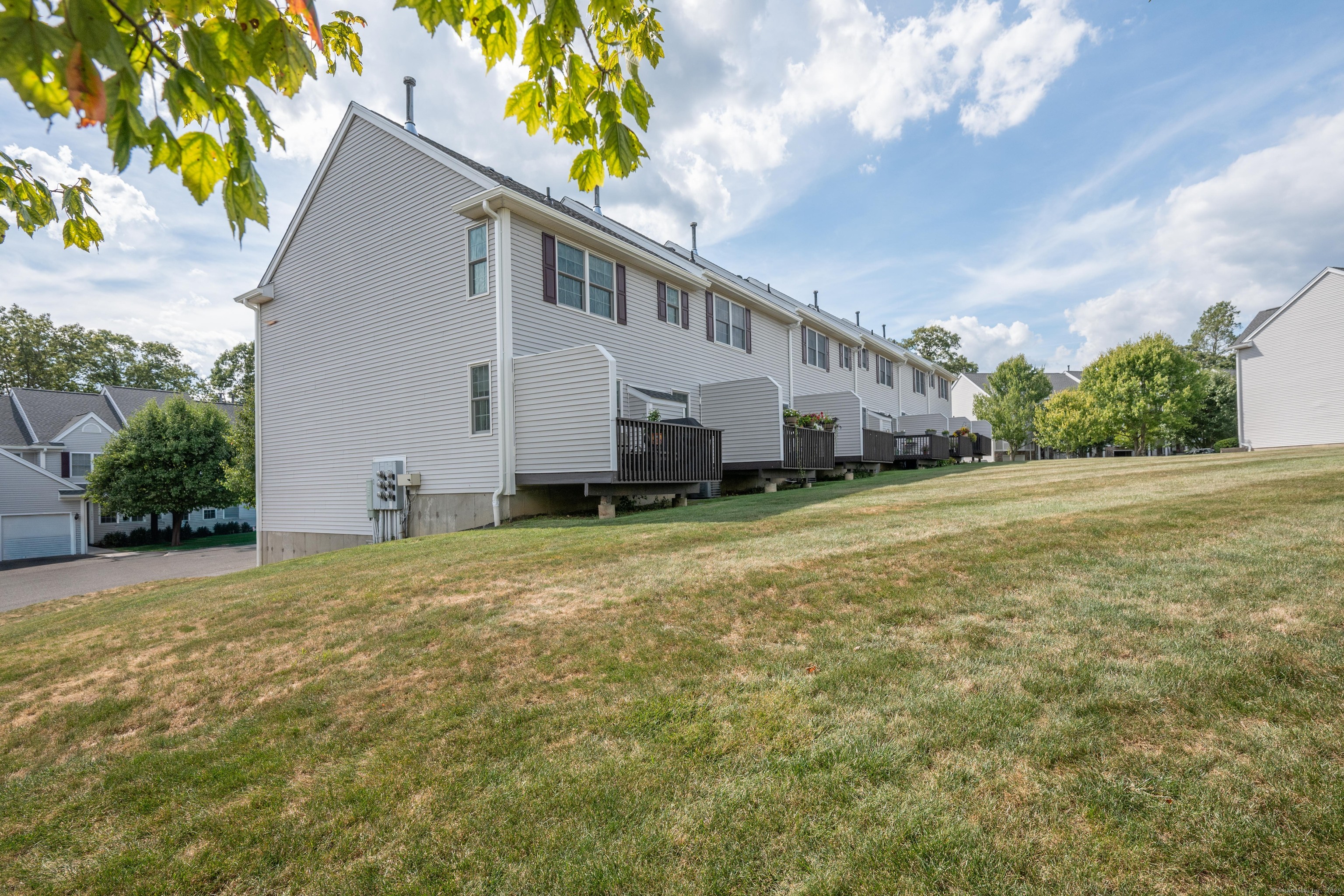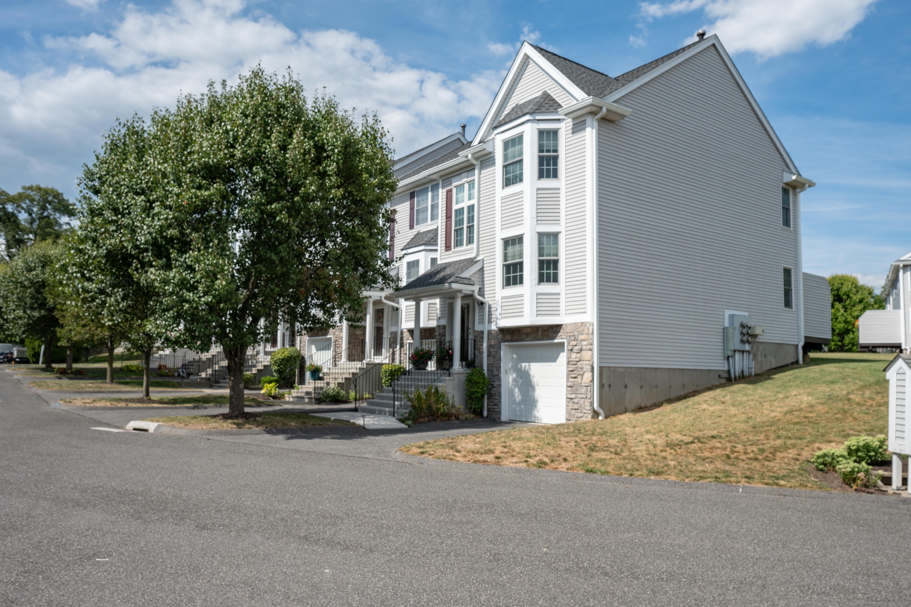 This tastefully updated town home in desirable Sterling Woods has quality design enhancements-elevating the home experience. Hardwood floors, updated lighting, pretty molding, and premium tile. The open floor plan of main level offers ideal movement from spacious living room with center fireplace to dining room with slider to the deck. Perfect for indoor outdoor entertaining.The eat- in kitchen is a show stopper. Equally stunning as it is functional with travertine marble tile floors, granite countertops,stainless appliances, and double oven. Premium soft close cabinetry accented by counter to ceiling tiling. Bar seating and a coffee nook. An updated half bath easily accessible from anywhere on first floor. The two large bedrooms on upper floor each have a designated full bath. Primary bed has walk in and standard closets, vaulted ceiling. Second bedroom is bathed in natural light with bay window and double closet. Lower level offers garage access and more additional living space,updated with hardwood flooring,recessed lighting and closets. Create the space you need! Interior garage access Lovingly maintained. HVAC,furnace and hot water heater replaced in 2020. Anderson windows,door& slide. New roof too! Located in a private spot- coveted for its end unit location and abundant natural light.Beautiful clubhouse with in-ground pool and gym. Don't miss the opportunity to own this move in ready home. Ideally located, easy commuters location while tucked away in peaceful setting