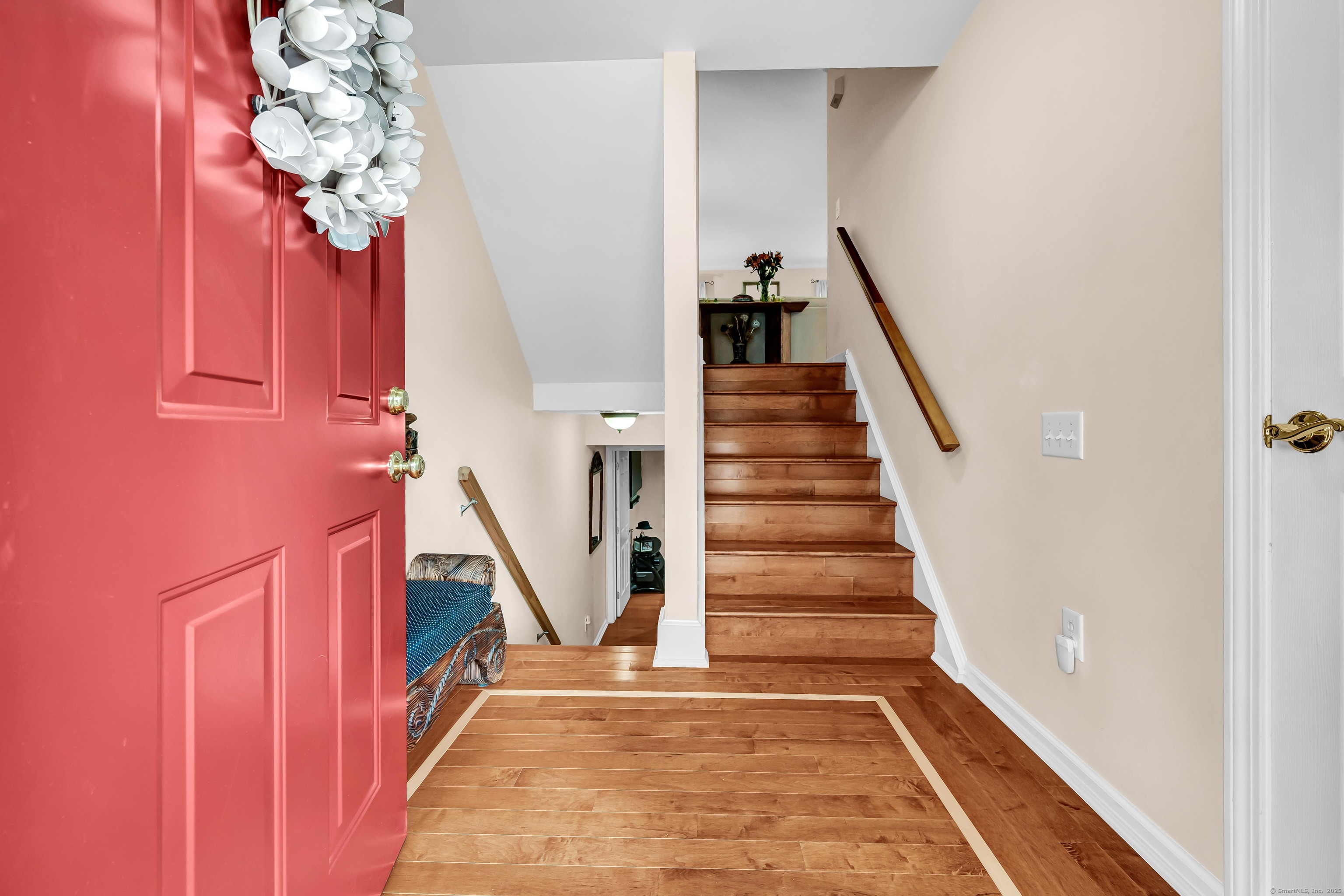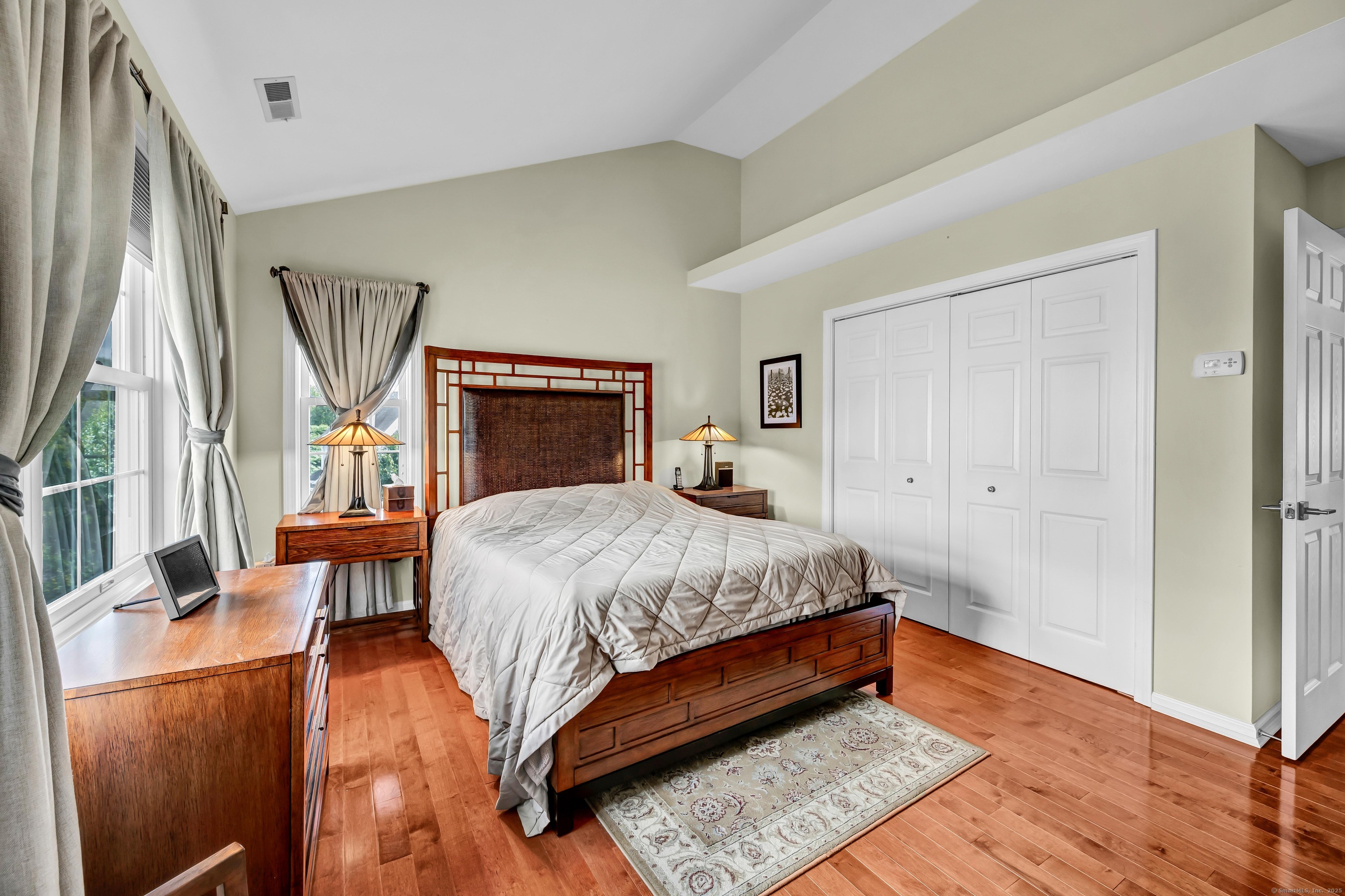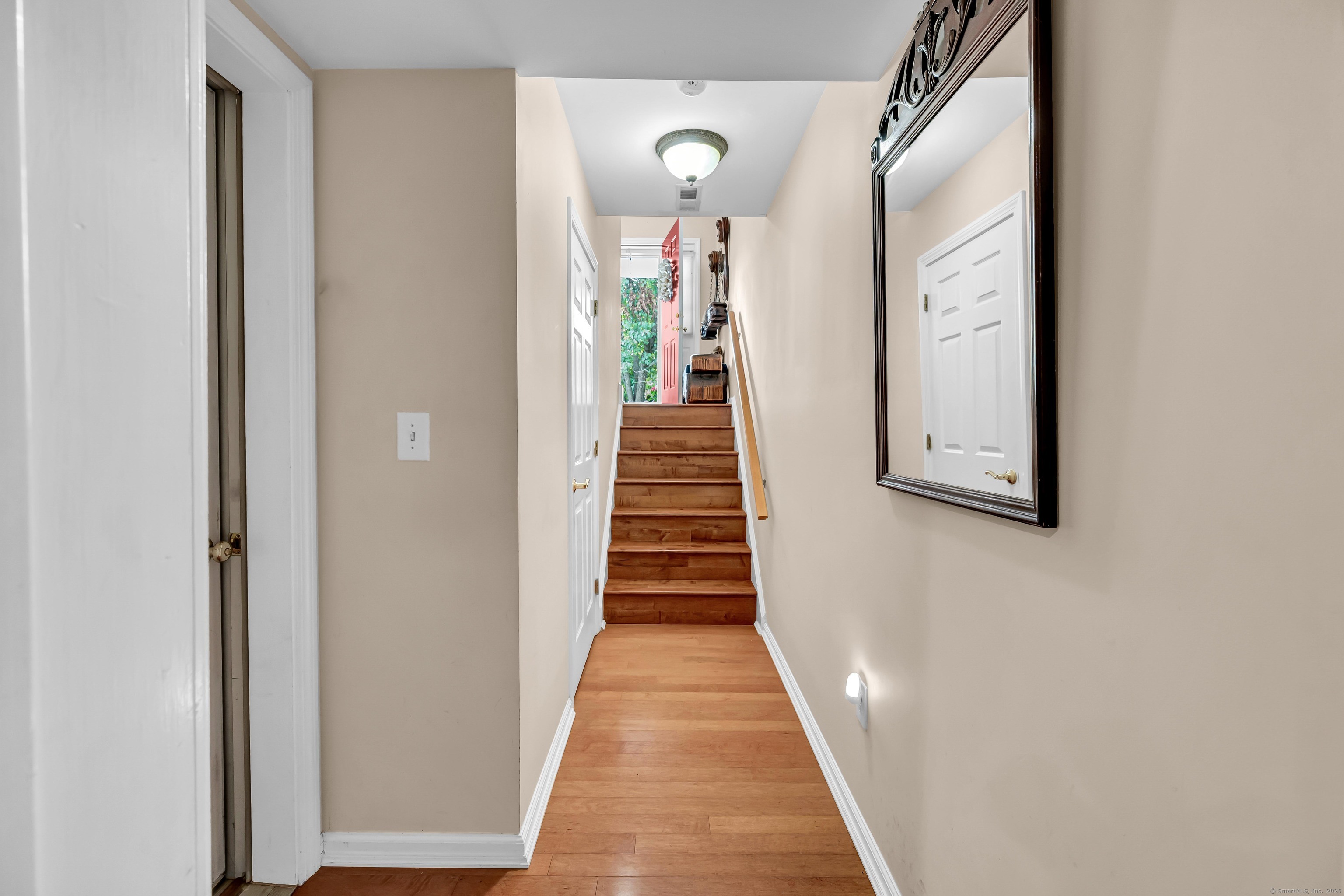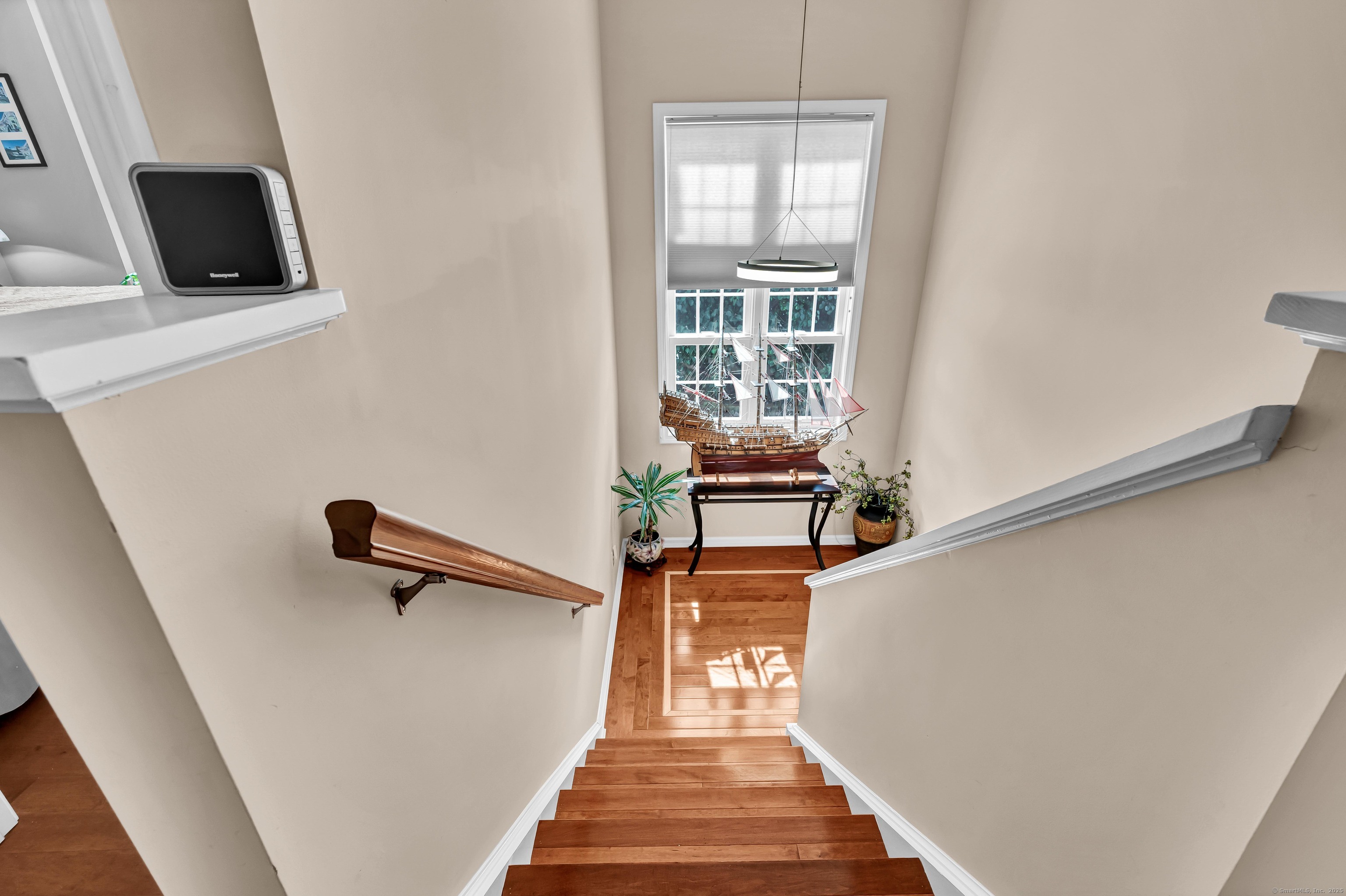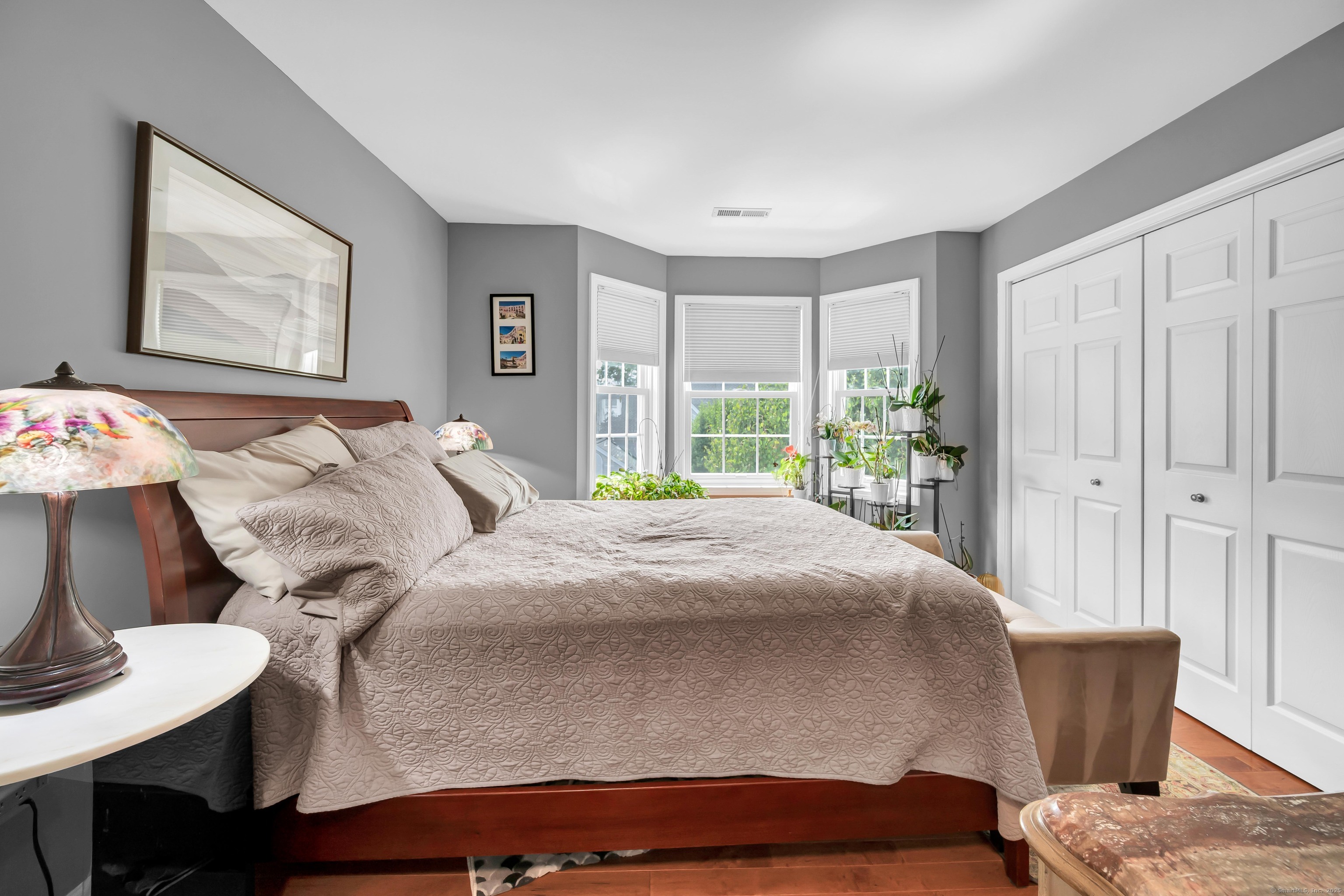 This tastefully updated town home in desirable Sterling Woods has quality design enhancements-elevating the home experience. Hardwood floors, updated lighting, pretty molding, and premium tile. The open floor plan of main level offers ideal movement from spacious living room with center fireplace to dining room with slider to the deck. Perfect for indoor outdoor entertaining.The eat- in kitchen is a show stopper. Equally stunning as it is functional with travertine marble tile floors, granite countertops,stainless appliances, and double oven. Premium soft close cabinetry accented by counter to ceiling tiling. Bar seating and a coffee nook. An updated half bath easily accessible from anywhere on first floor. The two large bedrooms on upper floor each have a designated full bath. Primary bed has walk in and standard closets, vaulted ceiling. Second bedroom is bathed in natural light with bay window and double closet. Lower level offers garage access and more additional living space,updated with hardwood flooring,recessed lighting and closets. Create the space you need! Interior garage access Lovingly maintained. HVAC,furnace and hot water heater replaced in 2020. Anderson windows,door& slide. New roof too! Located in a private spot- coveted for its end unit location and abundant natural light.Beautiful clubhouse with in-ground pool and gym. Don't miss the opportunity to own this move in ready home. Ideally located, easy commuters location while tucked away in peaceful setting