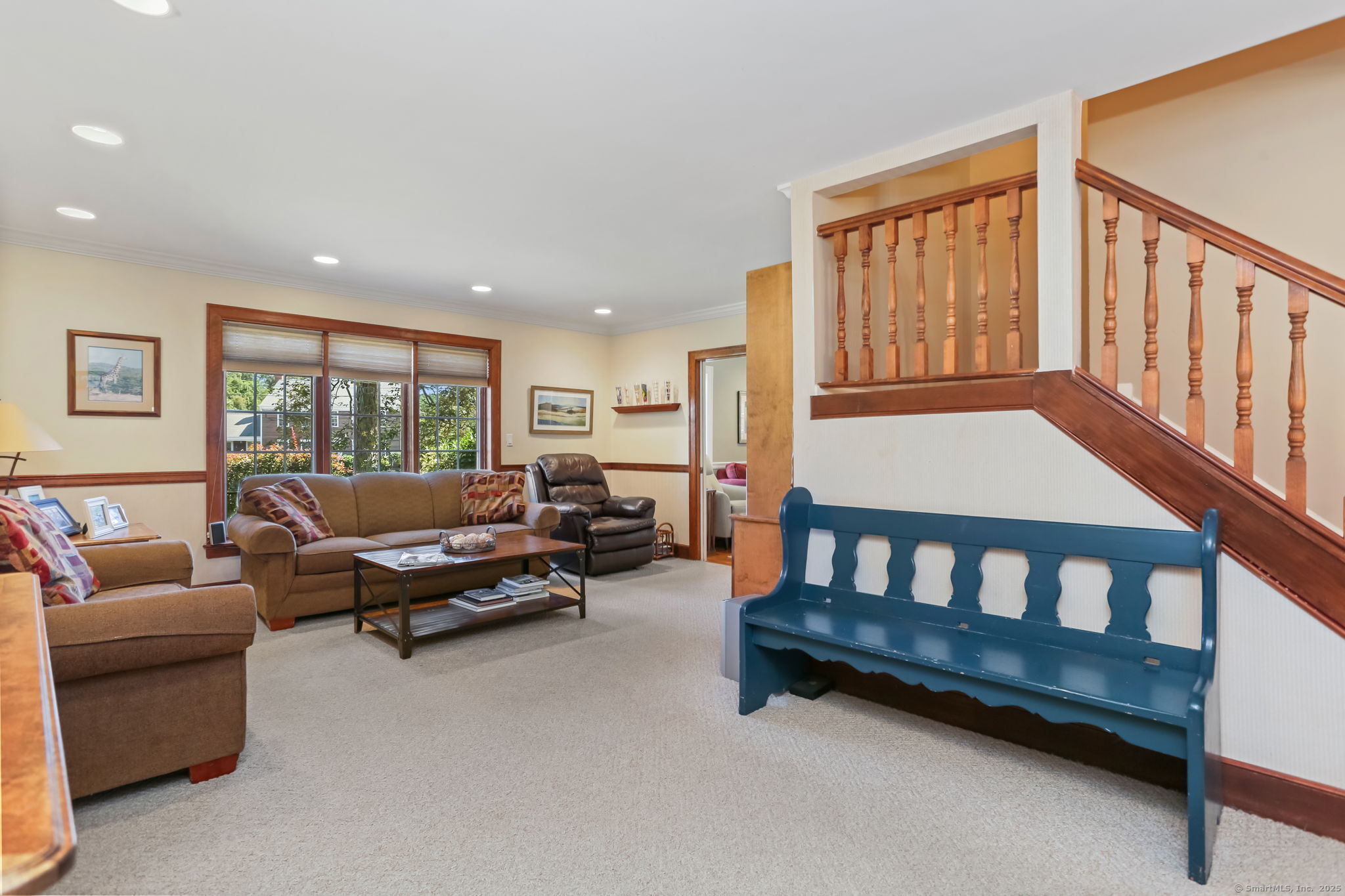 Architecturally designed, brick faced traditional colonial prominently sited in this quiet, cul-de-sac neighborhood, perfect for strolling or biking to nearby "Island Brook Park" offering ballfields, playground, tennis and pickle ball courts! A charming screened-in porch and stone patio overlook level lawn spaces and established garden borders insuring your privacy. Step inside to a custom designed kitchen with generous quartz countertops, sleek white cabinetry, (lighted) and stainless-steel appliances...the adjacent formal dining room comfortably seats 12-14 for larger family/guest holiday gatherings. Built-in bookcases, tasteful millwork and hardwood floors add to the appeal of this fine home. Bonus, the lower level is finished with a full bath offering additional play/rec/guest or a work from home office space. Truly, a special offering.