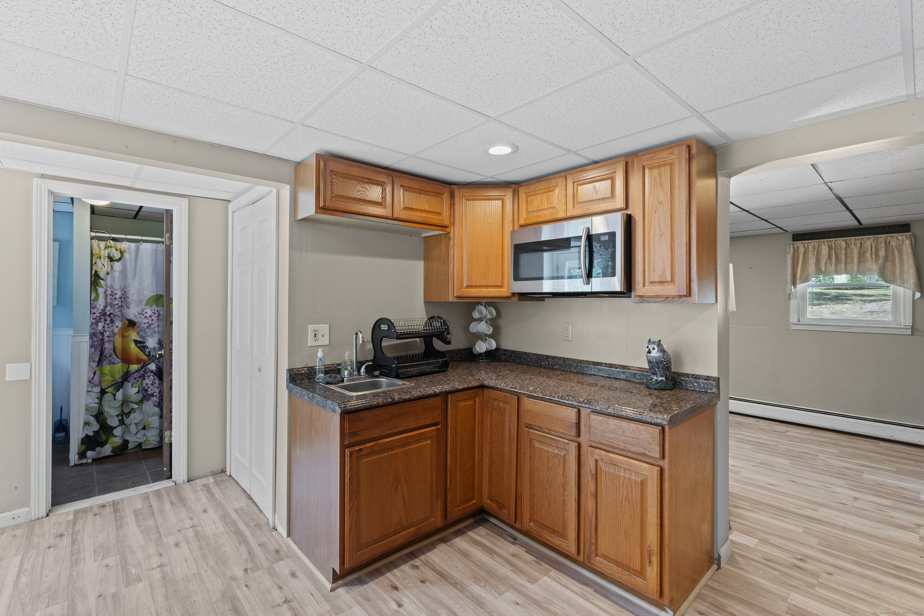 Nestled in a great location, this charming Raised Ranch offers the perfect blend of comfort, style, and versatility. Step inside to find a beautifully updated kitchen, designed with both everyday living and entertaining in mind. The home features a spacious deck, ideal for summer barbecues, morning coffee, or simply relaxing while overlooking the peaceful surroundings. Downstairs features a spacious room that can be used as an additional bedroom, and kitchenette offering a unique opportunity for a possible in-law apartment-perfect for extended family, guests, or additional living space. This property is especially wonderful for families, with plenty of room to grow and enjoy. You'll love the convenience of being within walking distance to the local elementary, middle, and high schools, making school days and community events a breeze. With its sought-after setting, thoughtful layout, and standout features, 75 Kondracki Lane is ready to welcome its next owner. Don't miss your chance to make this wonderful property your new home!