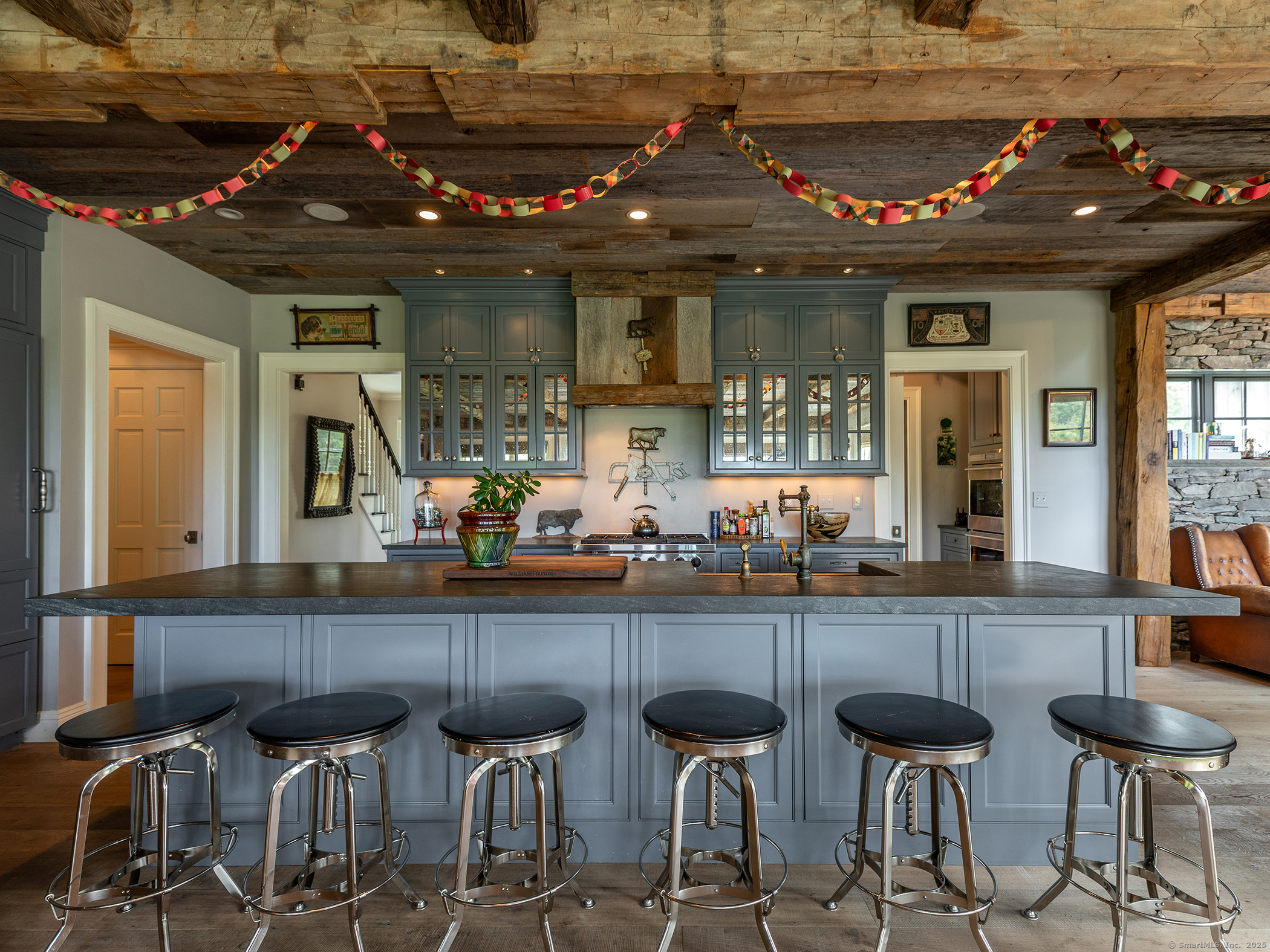 Designer's Country Retreat on 19+/- Acres with Pool, Pond & Glamping! Meticulously designed by a noted interior designer as her personal countryside sanctuary, this extraordinary residence offers refined living amid the enticing natural beauty of Litchfield County. Located on the Morris/Washington border, the property enjoys quick access to the sought-after villages of Washington Depot, New Preston, Bantam, & Litchfield. From the striking Greek Revival exterior to the warm, welcoming interiors, every detail of this home has been thoughtfully curated. The gourmet kitchen, ideal for entertaining, flows seamlessly into a cozy family room & casual dining area. A butler's pantry connects to the formal dining room, while a sunlit hallway leads to the living room with vaulted ceiling. Its a truly inspiring space to relax, take in the view through the huge picture window, or gather with guests. Upstairs, 5 bedrooms and 4 full baths open onto a screened sleeping porch, perfect for summer nights or reading al fresco. The finished attic adds flexibility with a bunk room hosting 6 twin beds and a half bath. The home comfortably sleeps 16. The lower level offers a fun game room for year-round enjoyment with a 3rd stone fireplace and addl 1/2 bath. Throughout the home, timeless materials such as hand-hewn beams, wide board floors, fieldstone fireplaces, and Shaker-style cabinetry create a sophisticated yet rustic ambience.