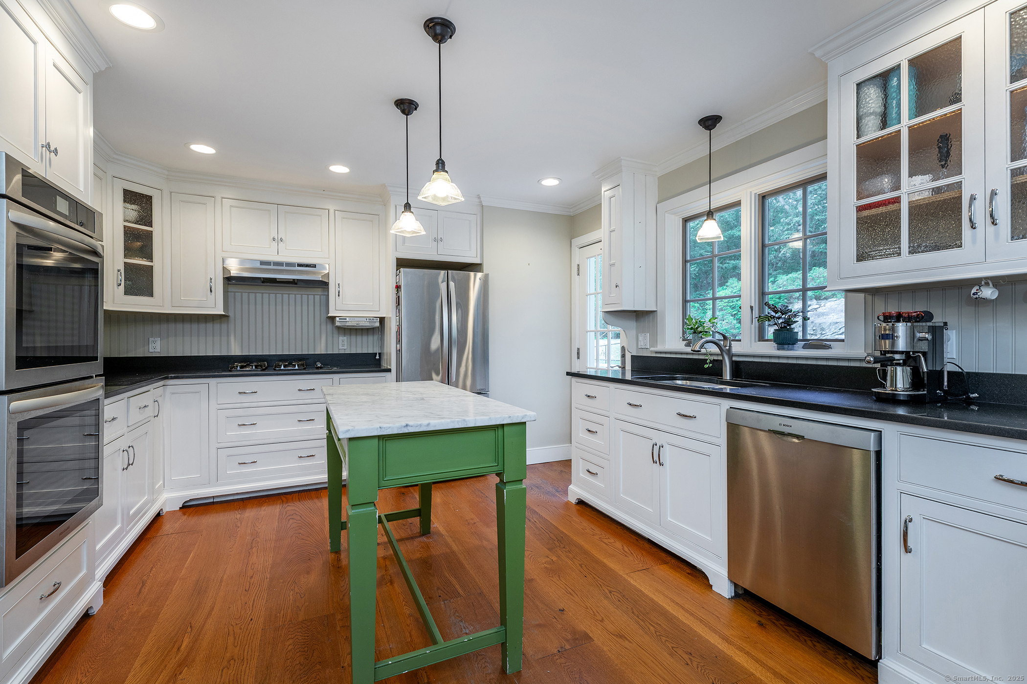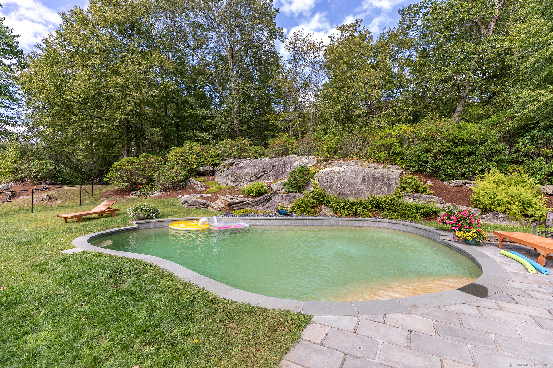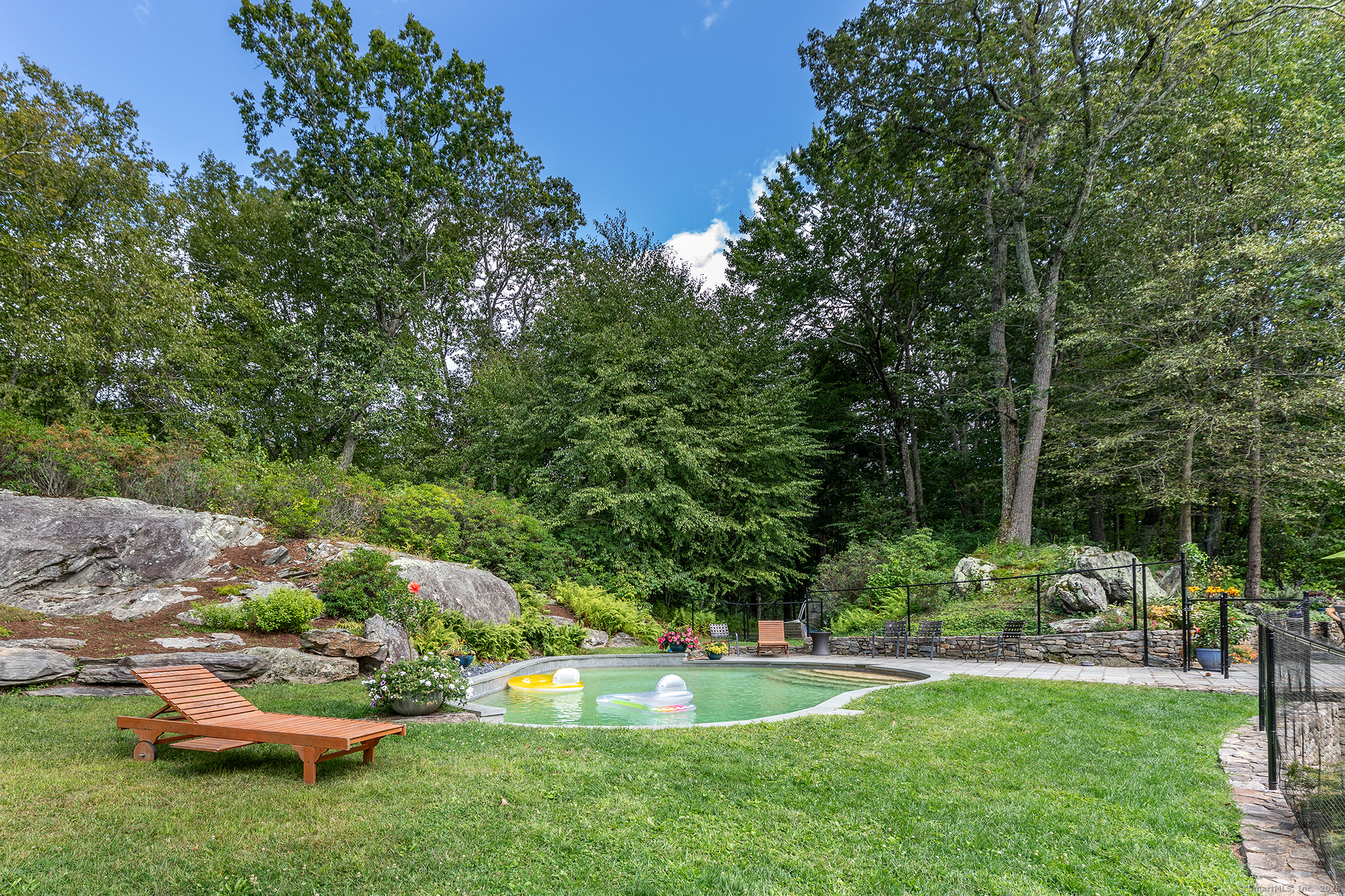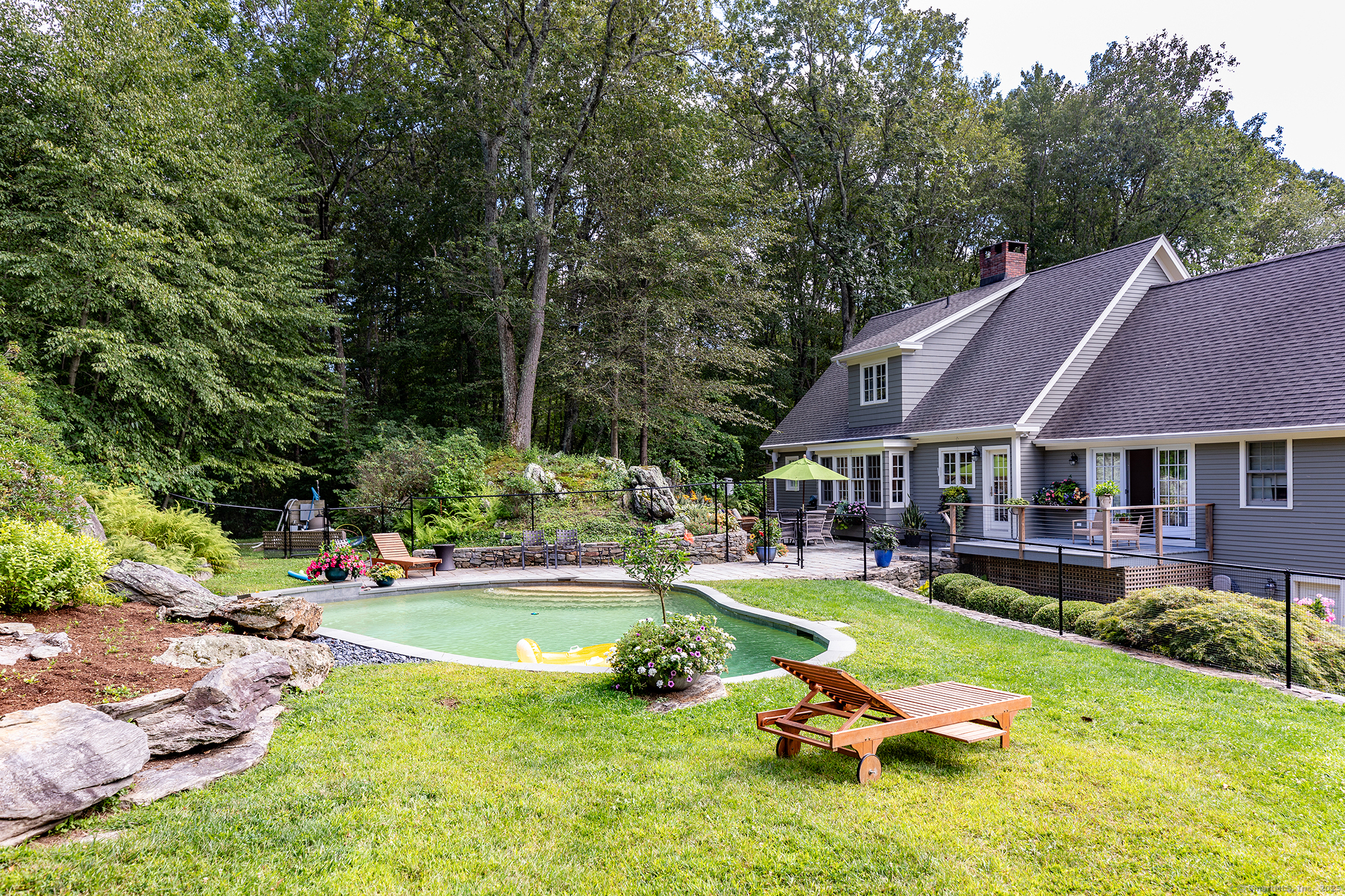 Great value, excellent location! Painter Hill is one of Roxbury's most scenic country roads. Close to Toplands Farm with beautiful pastoral views, a short drive to Maple Bank Farm for local produce, and just steps to a quiet dirt road for long walks. This charming Cape, built by the reputable local builder/owner in 2005, has 3 BR, 2.5 baths, a free-form Gunite pool and amazing outdoor living spaces. A covered front porch opens to the public living spaces. The main floor features a light-filled Great Room with a shiplap cathedral ceiling. The bookcases, bar and gas fireplace mantle are crafted from antique chestnut, and French doors open to a deck and patio. The dining room has a wood burning fireplace. An eat-in kitchen has a center island, granite counters, double ovens, refrigerator/freezer and a 4 burner gas cooktop. The primary bedroom suite is on the main level featuring built-in cabinets, a full bath and walk-in closet. There are two guest bedrooms and one full bath on the second floor. The lower level has one finished room and washer dryer. There is ample basement storage and access to a spacious two-car garage.