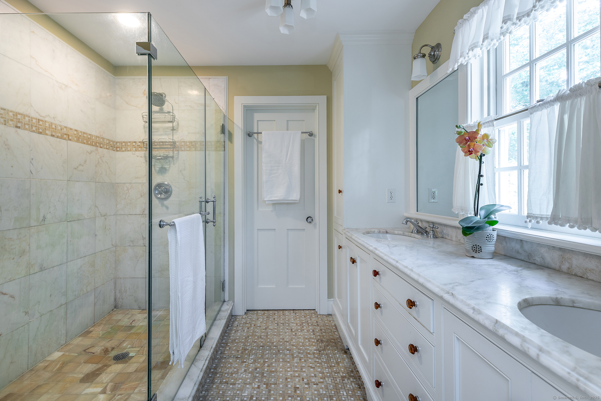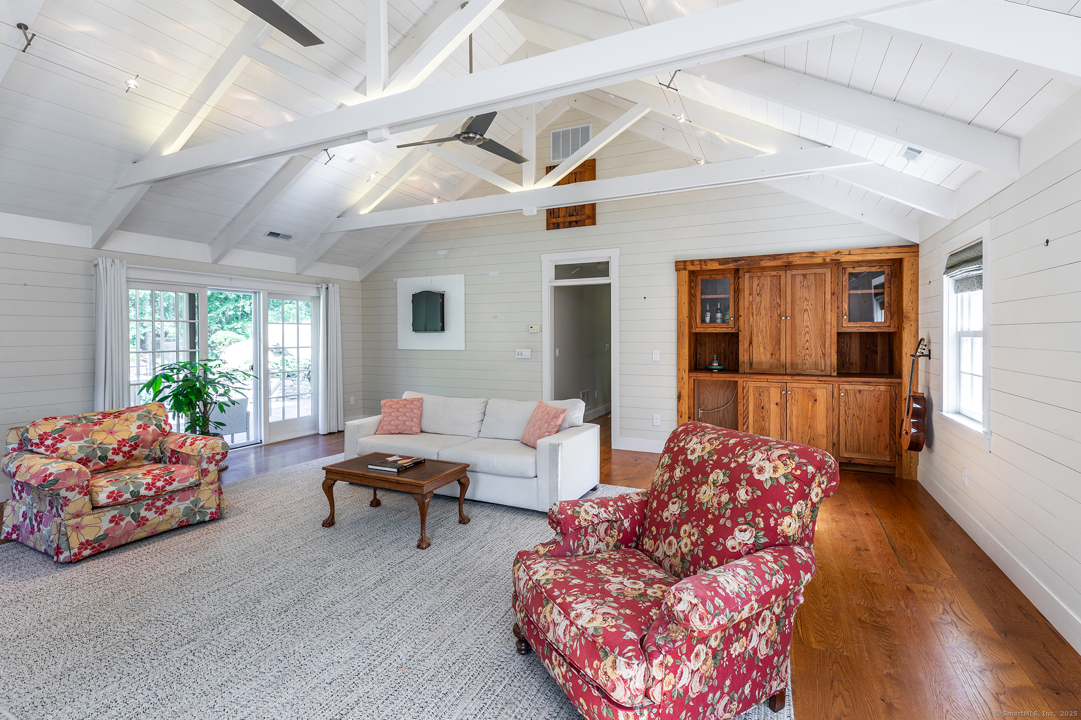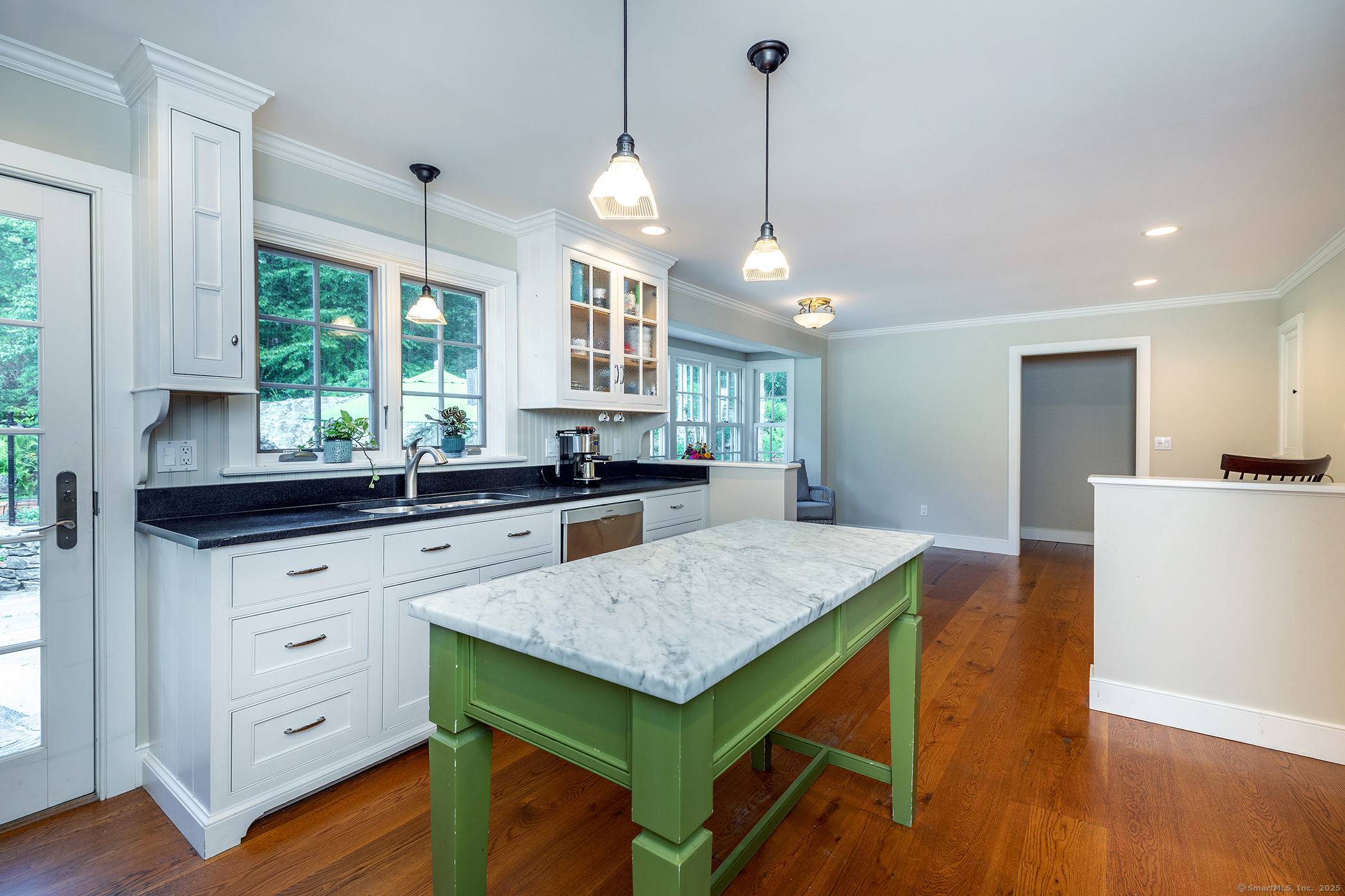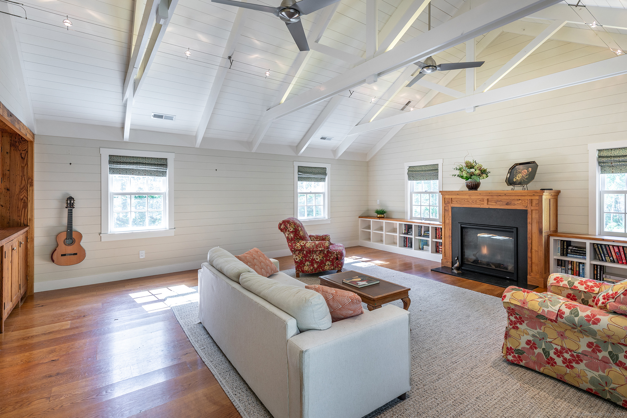 Great value, excellent location! Painter Hill is one of Roxbury's most scenic country roads. Close to Toplands Farm with beautiful pastoral views, a short drive to Maple Bank Farm for local produce, and just steps to a quiet dirt road for long walks. This charming Cape, built by the reputable local builder/owner in 2005, has 3 BR, 2.5 baths, a free-form Gunite pool and amazing outdoor living spaces. A covered front porch opens to the public living spaces. The main floor features a light-filled Great Room with a shiplap cathedral ceiling. The bookcases, bar and gas fireplace mantle are crafted from antique chestnut, and French doors open to a deck and patio. The dining room has a wood burning fireplace. An eat-in kitchen has a center island, granite counters, double ovens, refrigerator/freezer and a 4 burner gas cooktop. The primary bedroom suite is on the main level featuring built-in cabinets, a full bath and walk-in closet. There are two guest bedrooms and one full bath on the second floor. The lower level has one finished room and washer dryer. There is ample basement storage and access to a spacious two-car garage.