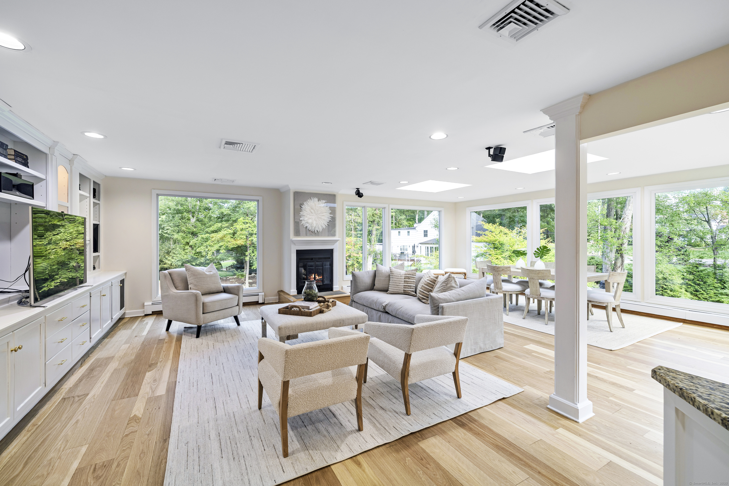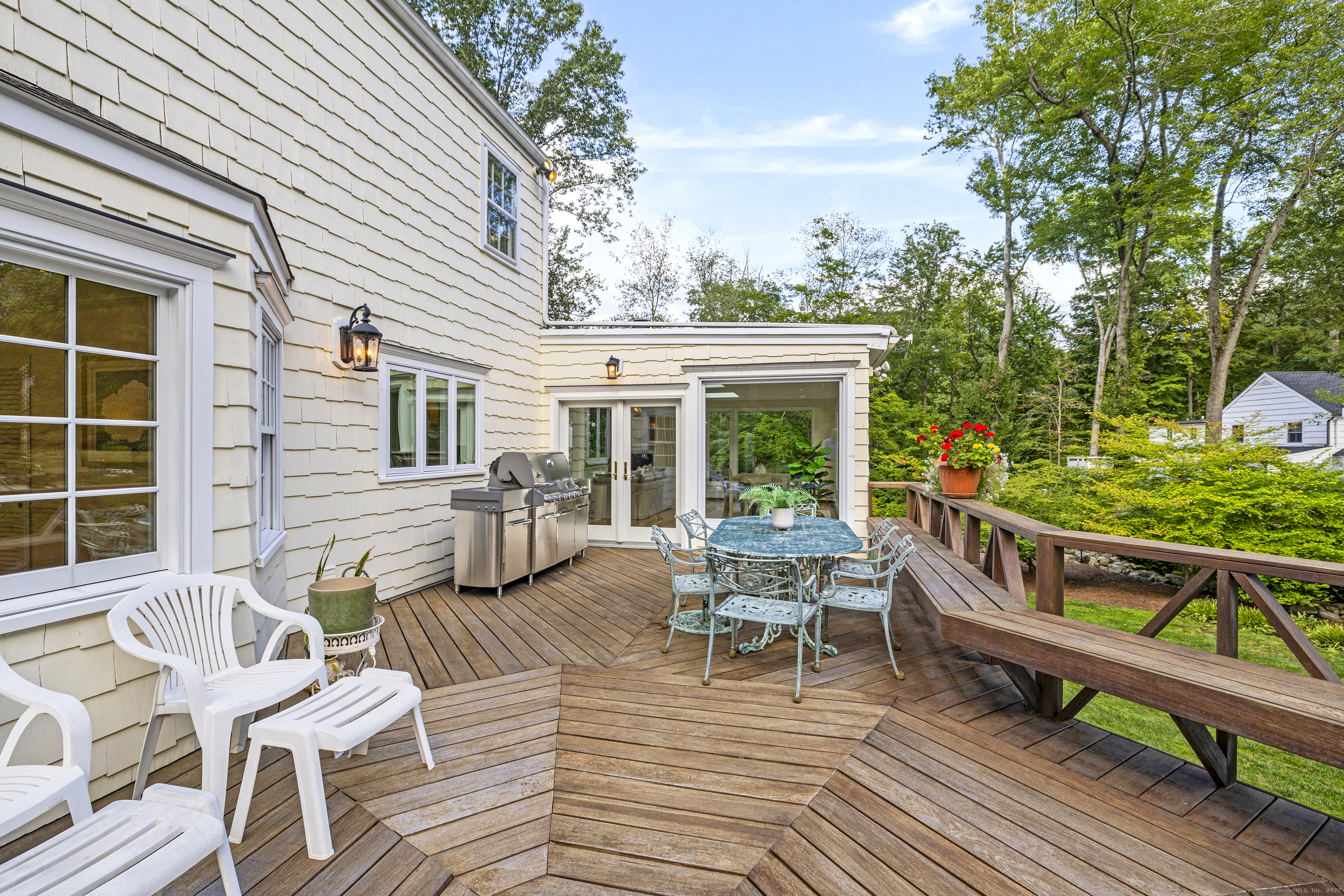 Set on a 1-acre lot in Old Hill, this 5-bedroom, 4.1-bath Colonial offers 4,035 sq ft of open, light-filled living space. The main level features a welcoming foyer, formal living and dining rooms, and a family room with large windows overlooking the landscaped backyard. The kitchen includes a gas cooktop, wall oven, microwave, refrigerator, freezer, ice maker, and dishwasher, opening seamlessly to the deck with scenic views. The primary suite provides a spacious bedroom and modern en-suite bath. Hardwood floors extend throughout the main living areas. Three fireplaces add warmth and charm. Finished lower level with walk-out access provides living space. The attic and basement offer ample storage. Attached 3-car garage. Includes 3D walkthrough and video tour. Conveniently located near King's Highway Elementary (1.0 mi), Coleytown Middle (1.5 mi), Staples High School (2.0 mi), shops, restaurants, and commuter routes. Exceptional opportunity to combine classic Colonial style with modern functionality.