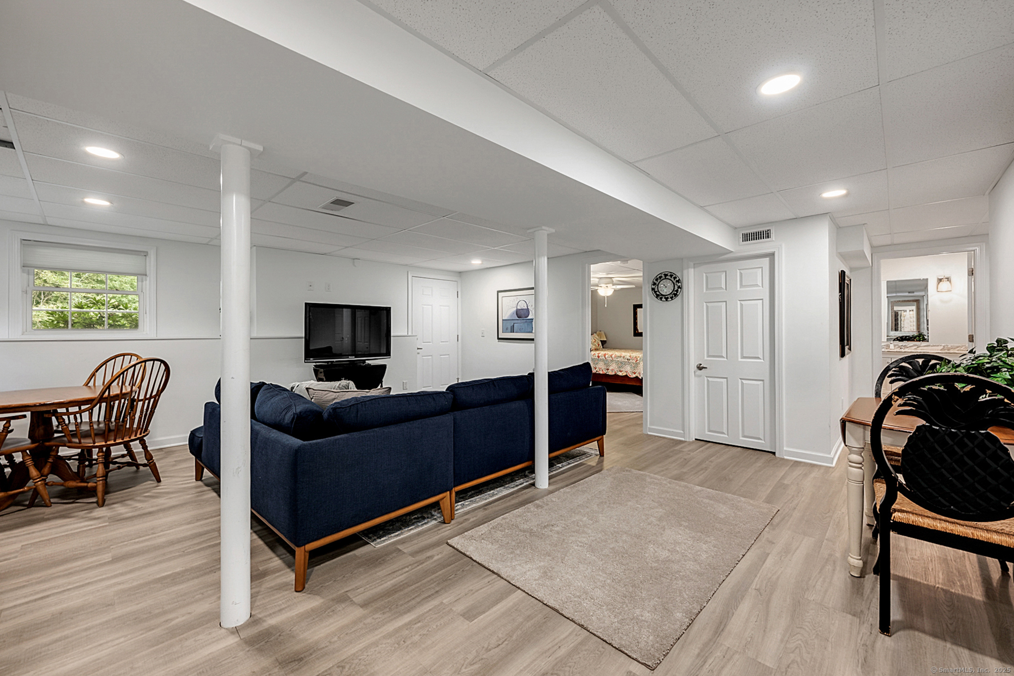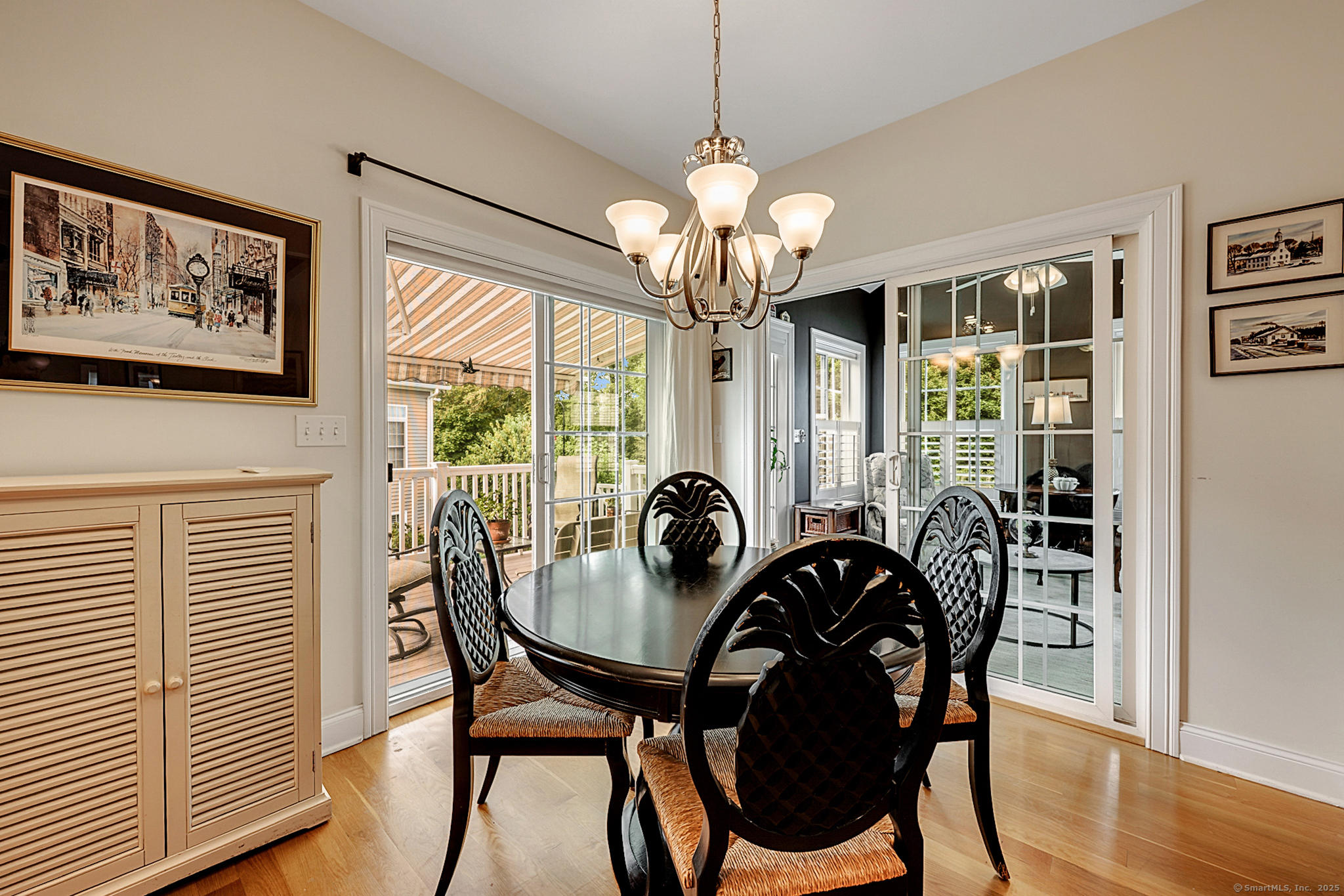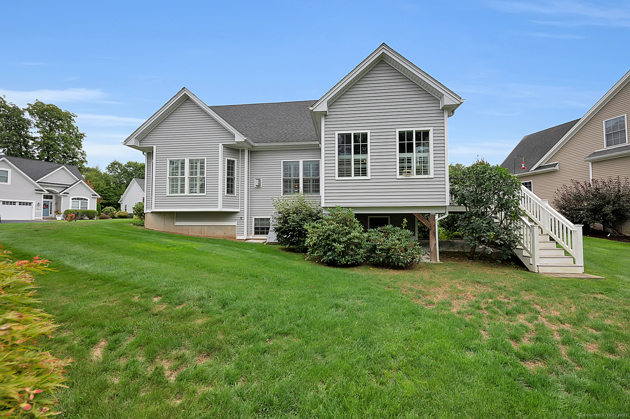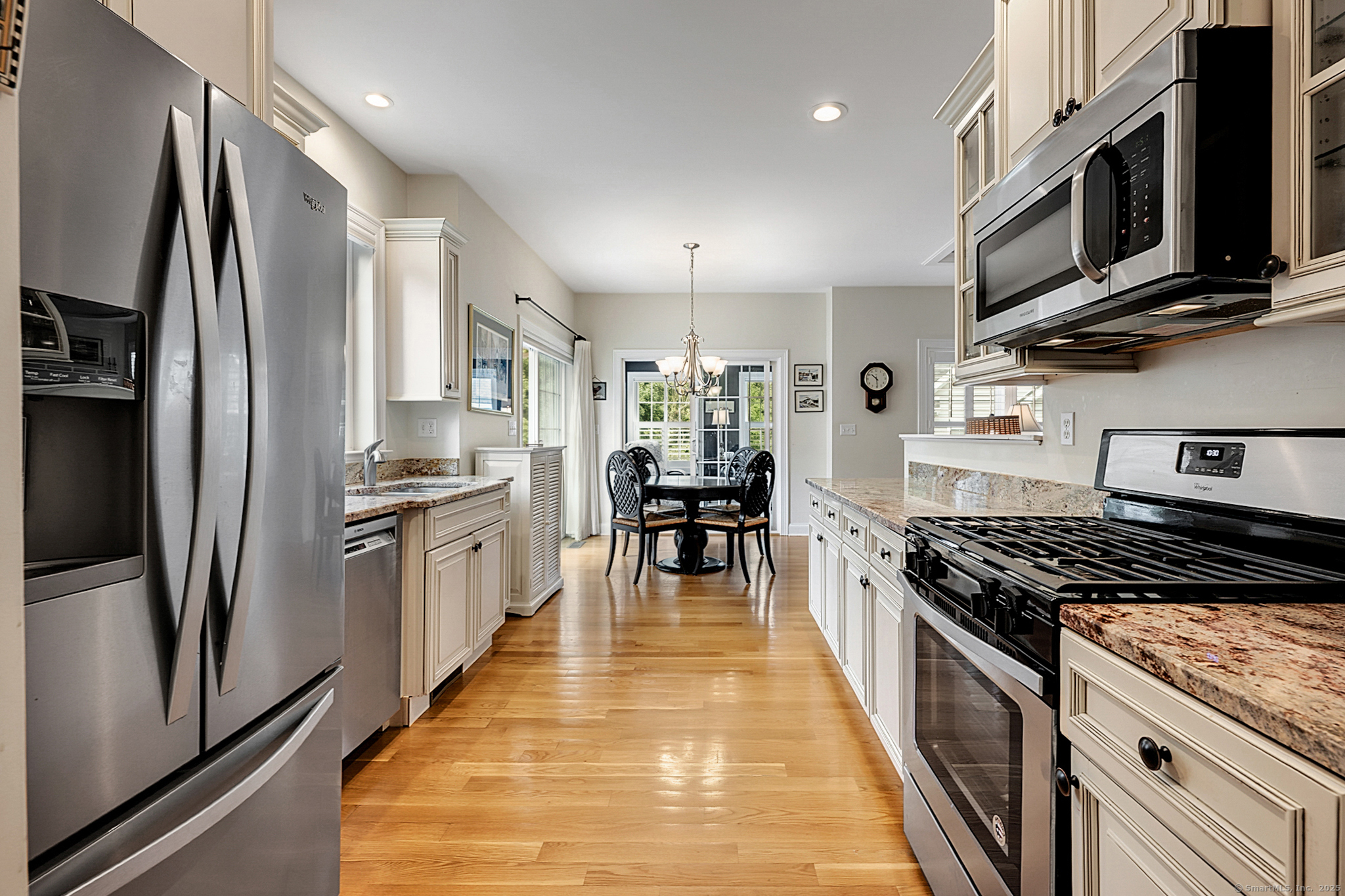 Welcome to River Walk, Branford's only 55+ community! This Contemporary Ranch model home offers the perfect blend of comfort, style and convenience in a highly desirable location. From the moment you step inside, you'll appreciate the open layout, gleaming hardwood floors and detailed millwork throughout the main level. An inviting foyer leads to a private study/office featuring a French door and oversized bay window that fills the space with natural light. The spacious living room boasts a tray ceiling and gas fireplace, flowing seamlessly into the kitchen and dining area. The kitchen is appointed with granite counters and stainless-steel appliances, while the dining area opens to a private deck with a retractable awning-ideal for outdoor entertaining. A vaulted, light-filled sunroom offers a warm and welcoming retreat-a perfect spot for your morning coffee. The main level includes two bedrooms, two full baths including a primary suite with tray ceiling, custom walk-in closet, walk-in shower and double vanity. The finished lower level provides great space for guests, featuring a family room, kitchenette, private office with French door, walk-in closet, full bath and ample storage in the unfinished area. Additional highlights include convenient main-level laundry, a two-car attached garage with fresh epoxy floor, level front entry and ample guest parking. Thoughtfully designed and meticulously maintained, this home is ideal for easy living - minutes to town and the shoreline!
