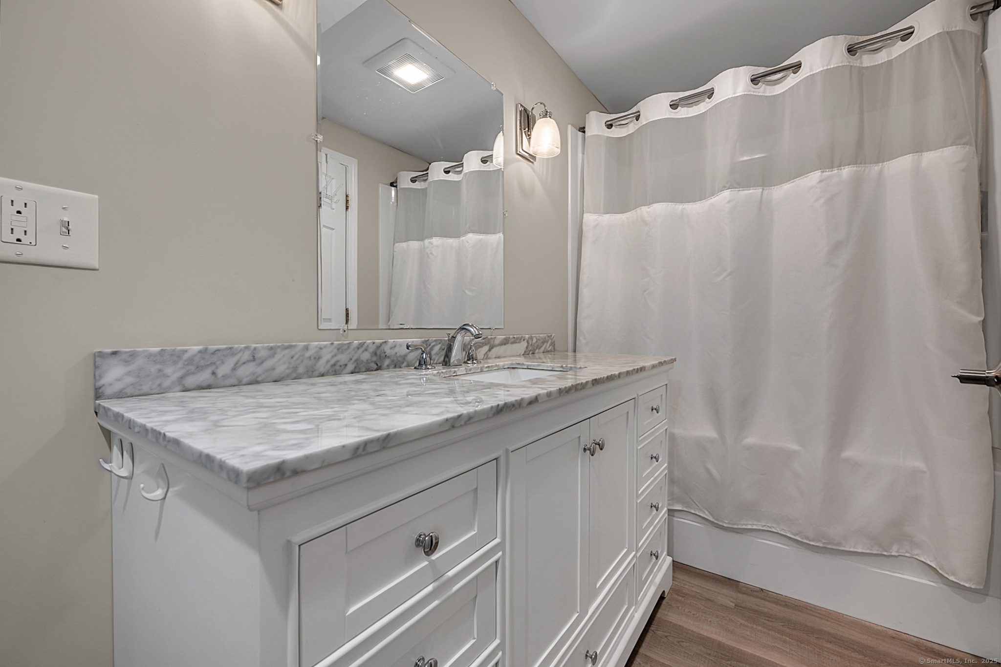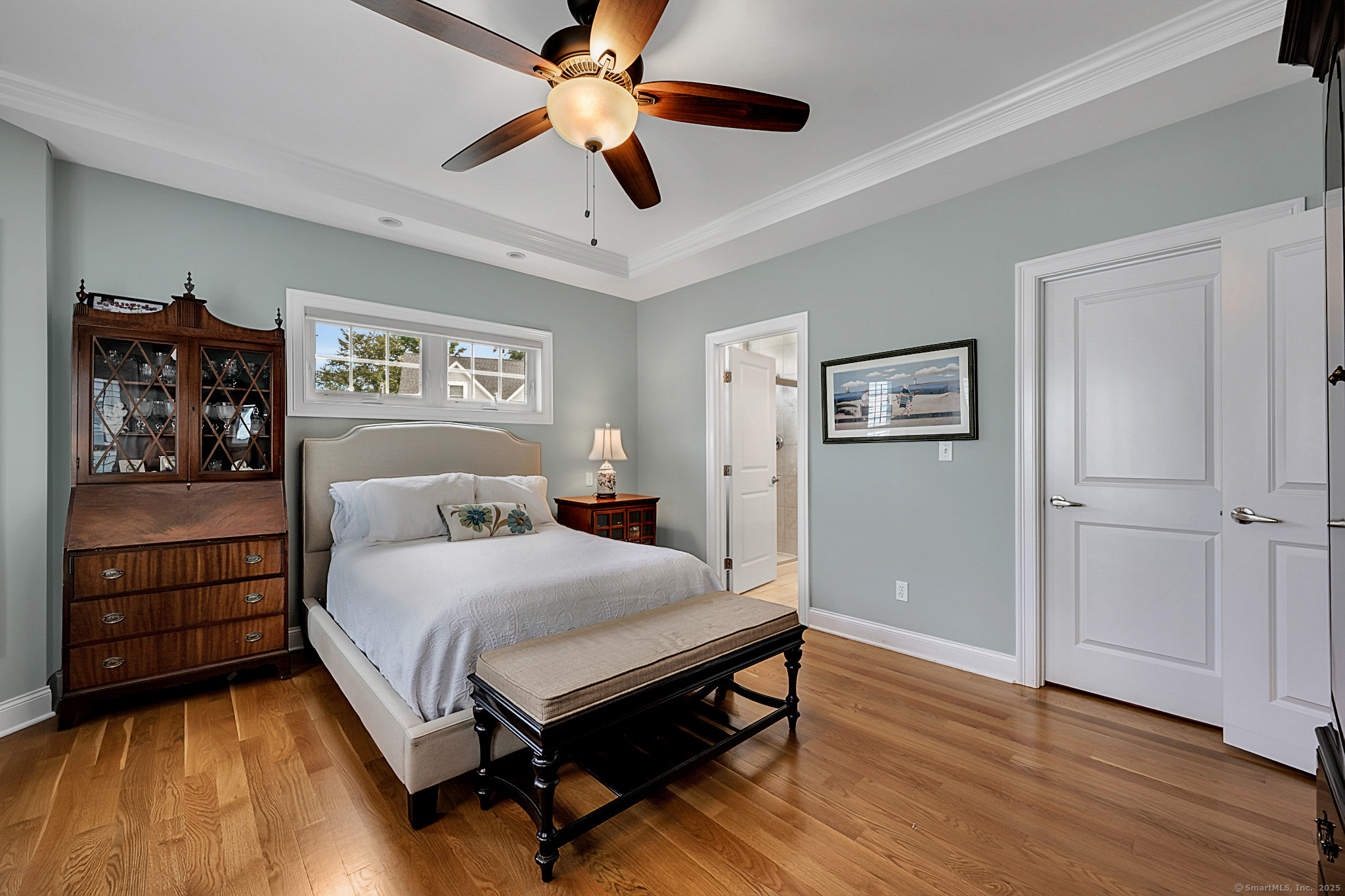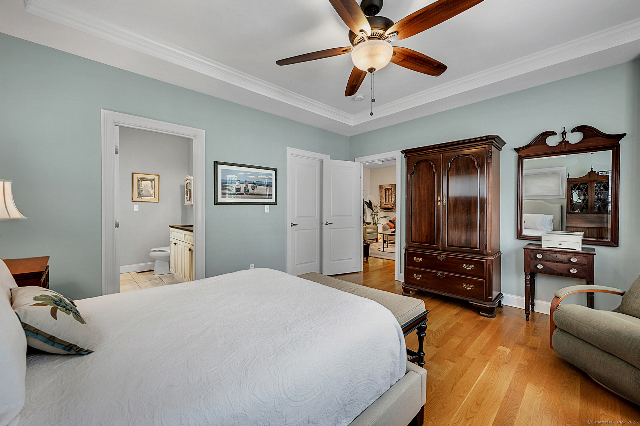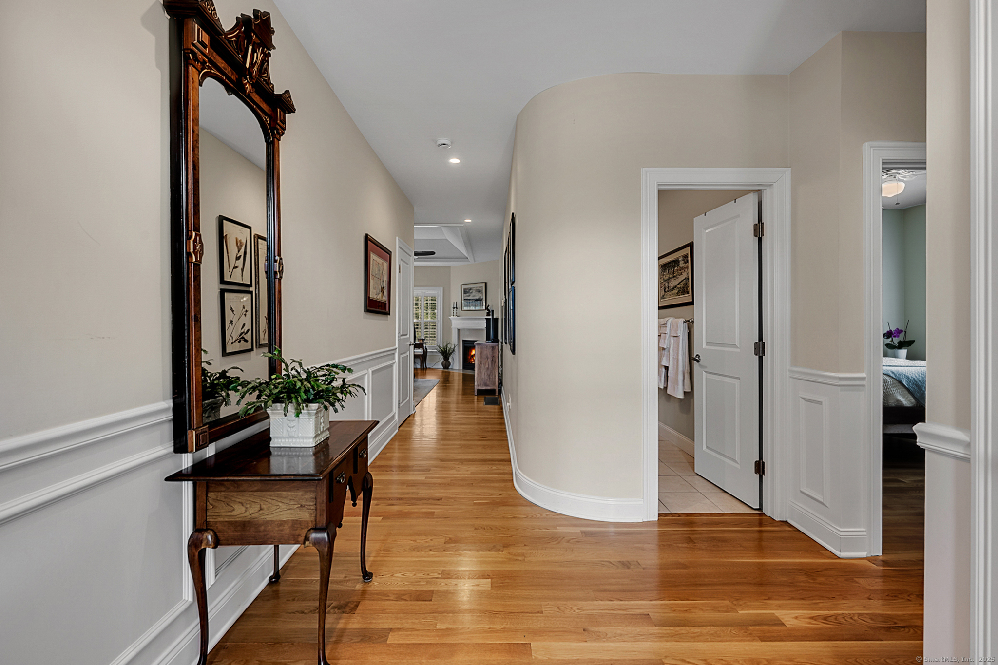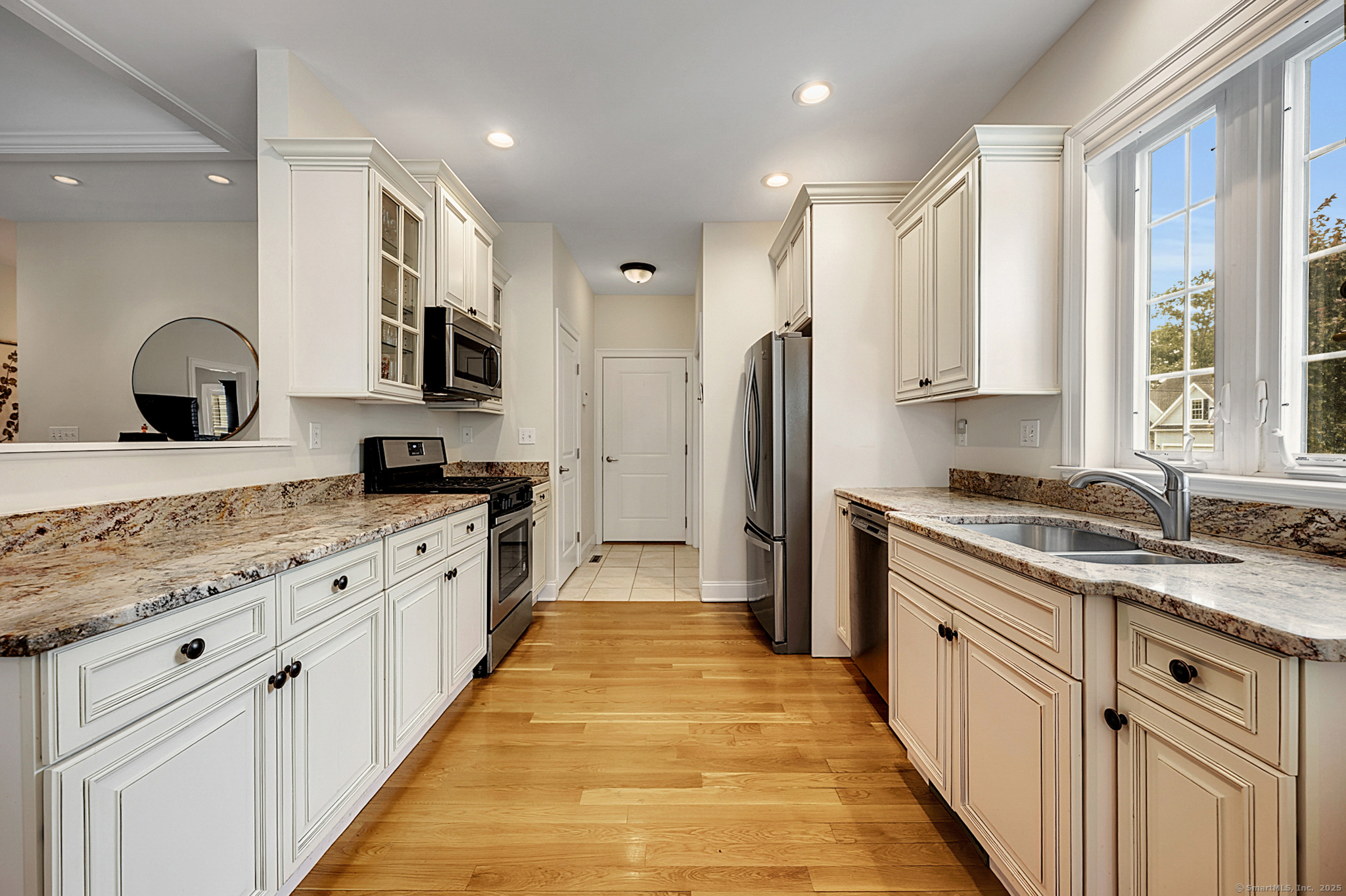 Welcome to River Walk, Branford's only 55+ community! This Contemporary Ranch model home offers the perfect blend of comfort, style and convenience in a highly desirable location. From the moment you step inside, you'll appreciate the open layout, gleaming hardwood floors and detailed millwork throughout the main level. An inviting foyer leads to a private study/office featuring a French door and oversized bay window that fills the space with natural light. The spacious living room boasts a tray ceiling and gas fireplace, flowing seamlessly into the kitchen and dining area. The kitchen is appointed with granite counters and stainless-steel appliances, while the dining area opens to a private deck with a retractable awning-ideal for outdoor entertaining. A vaulted, light-filled sunroom offers a warm and welcoming retreat-a perfect spot for your morning coffee. The main level includes two bedrooms, two full baths including a primary suite with tray ceiling, custom walk-in closet, walk-in shower and double vanity. The finished lower level provides great space for guests, featuring a family room, kitchenette, private office with French door, walk-in closet, full bath and ample storage in the unfinished area. Additional highlights include convenient main-level laundry, a two-car attached garage with fresh epoxy floor, level front entry and ample guest parking. Thoughtfully designed and meticulously maintained, this home is ideal for easy living - minutes to town and the shoreline!