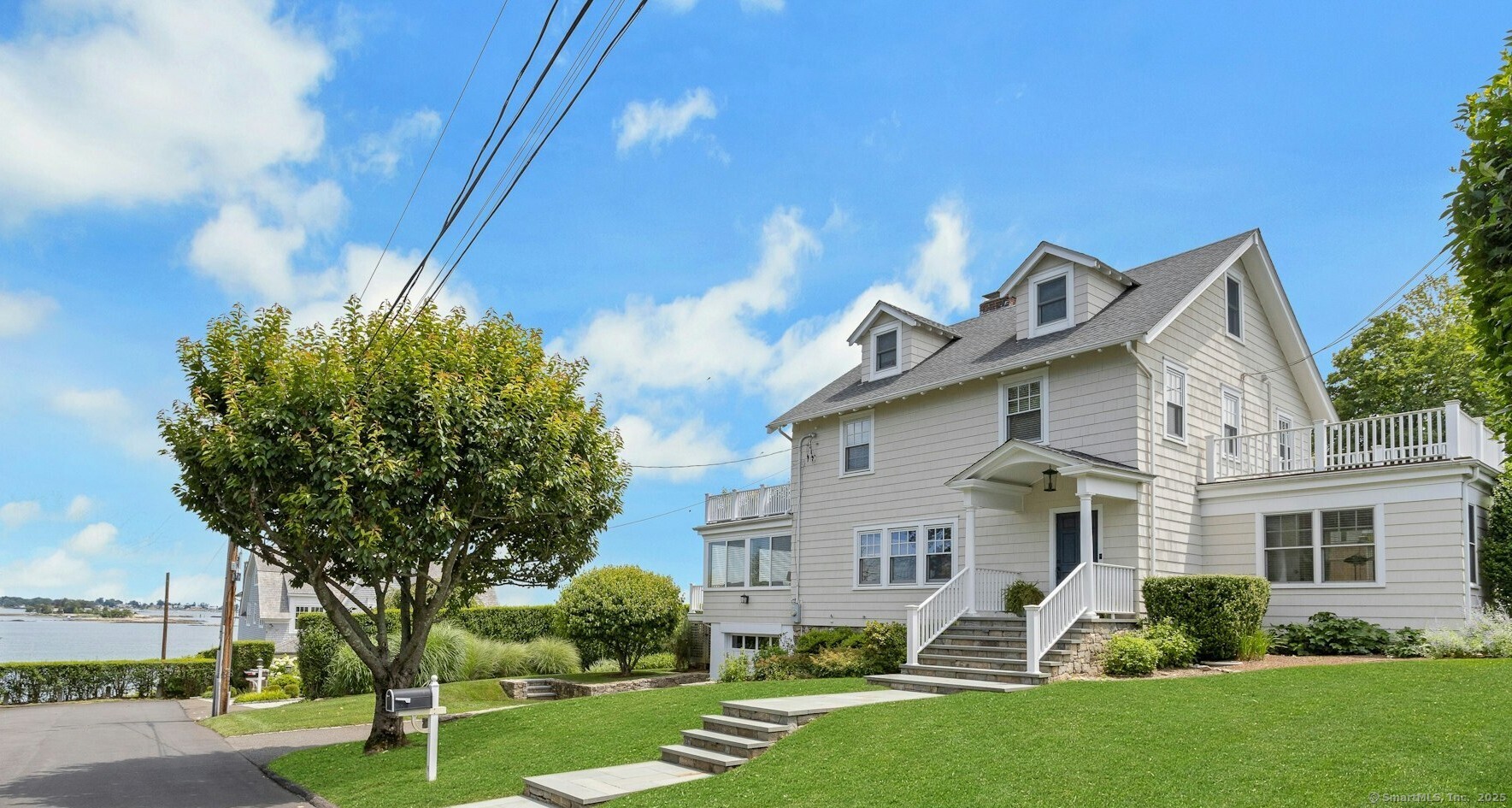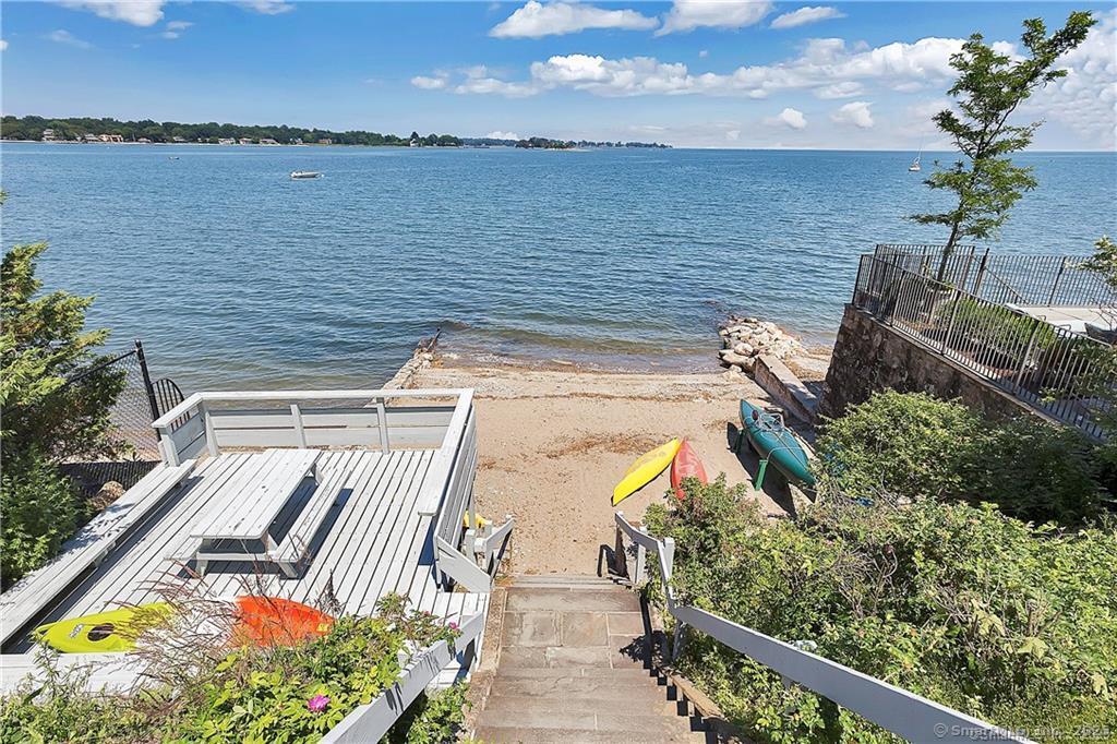 With sparkling water views and a private beach only steps away, this Shippan Point home is coastal living at its best! The living room with fireplace, sunroom, and open kitchen, dining, and family room all take in the views, with sliders opening to a new (2023) Ipe wraparound deck overlooking the Sound. Upstairs, there are two comfortable bedrooms and a primary suite with additional water views, a walk-in closet, an updated bathroom and a private deck offering panoramic vistas. A first-floor bedroom with an adjoining bath and a third-floor suite add versatility. Outside, a level yard framed by a beautifully crafted Pennsylvania fieldstone retaining wall, a hornbeam hedge, and a cedar outdoor shower-ideal for rinsing off after a day at the beach-completes this gem. Additional highlights: hardwood floors throughout, deeded beach rights, irrigation system, and raised garden bed. Located just minutes from downtown, train, and highways-NO flood insurance required! PLEASE SUBMIT ALL OFFERS BY TUESDAY AT 2:00 PM, SEPT 9TH