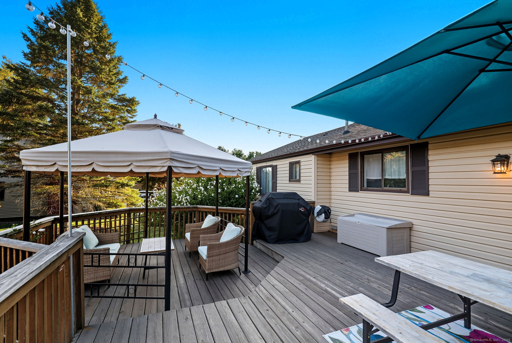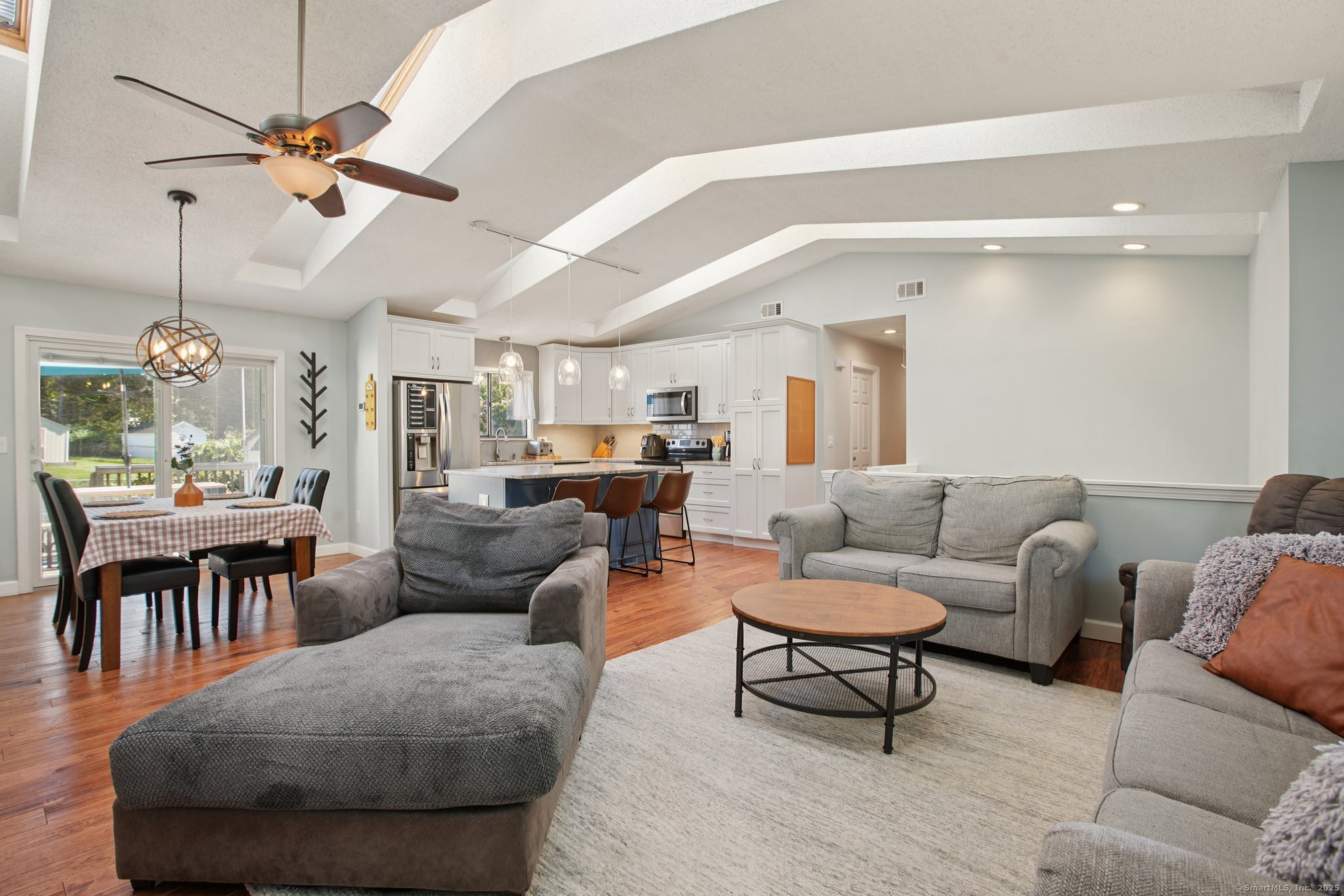 Welcome home to 50 High Street in South Windsor - a beautifully updated raised ranch that blends modern comfort with everyday functionality. Step inside to discover sun-filled living spaces with vaulted ceilings, skylights, and gleaming hardwood floors that make the home feel bright and inviting. The heart of the home is the newly remodeled kitchen, featuring white cabinetry, granite countertops, stainless steel appliances, and a spacious center island that's perfect for gathering. Upstairs, you'll find three comfortable bedrooms and two full baths, including a serene primary suite with its own private balcony - the perfect spot for your morning coffee or quiet evening unwind. Downstairs, a large finished lower level offers endless possibilities - a cozy family room, playroom, home office, or gym - complete with a convenient half bath. Step outside to your backyard retreat, featuring a large deck with gazebo, grill area, and cafe string lights - ideal for entertaining or relaxing under the stars. With a two-car garage, central air, and a location close to schools, parks, and shopping, this home truly has it all. Don't miss your chance to make 50 High Street your next chapter in South Windsor living.