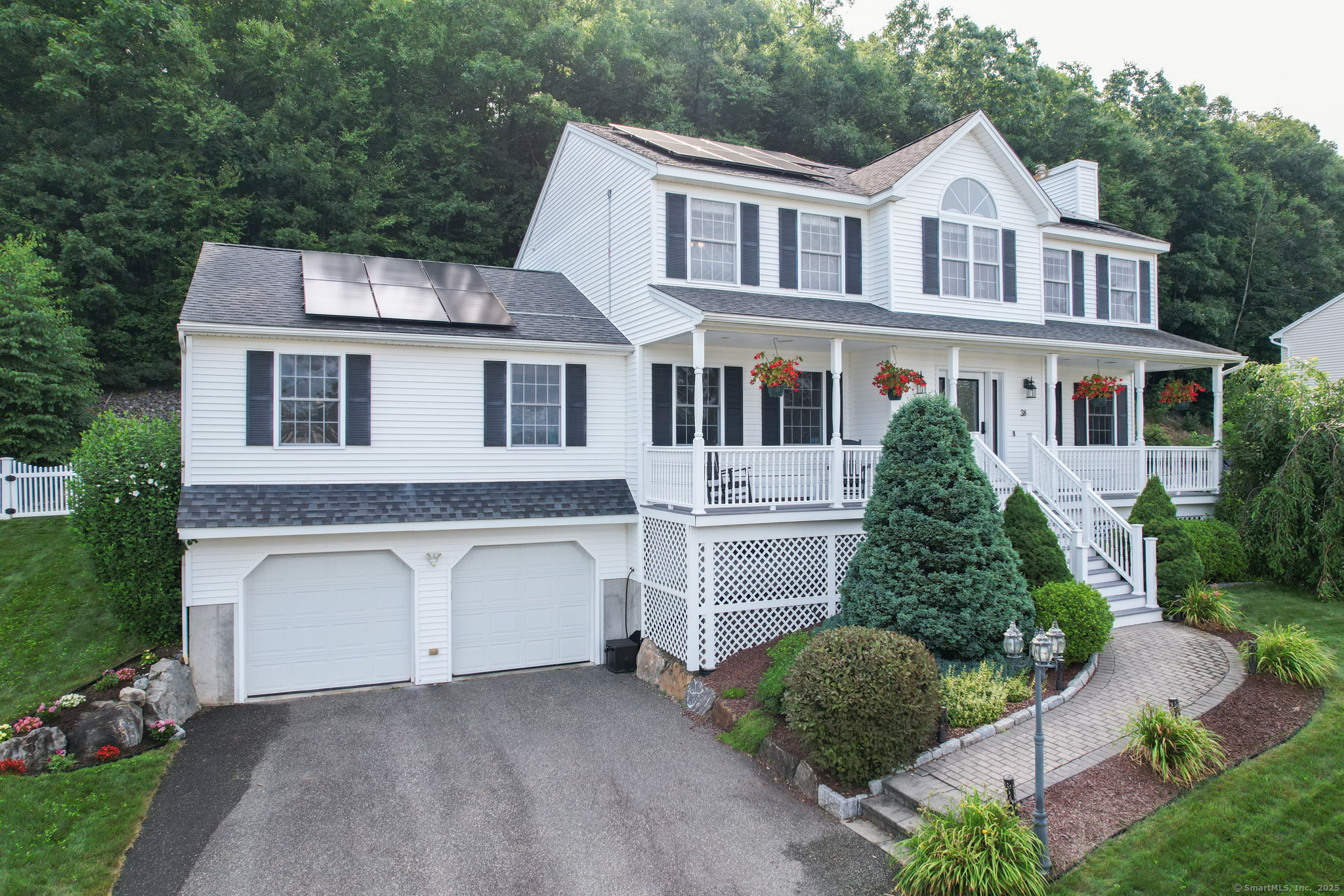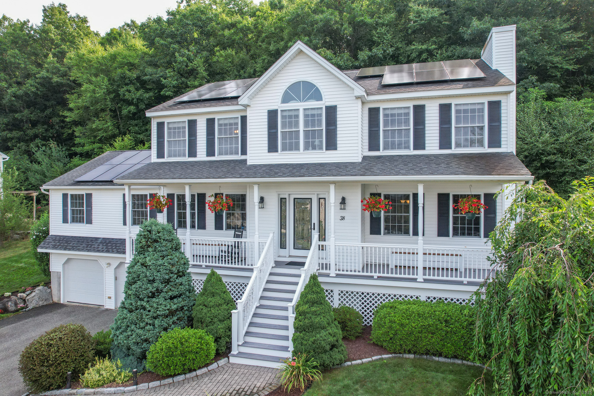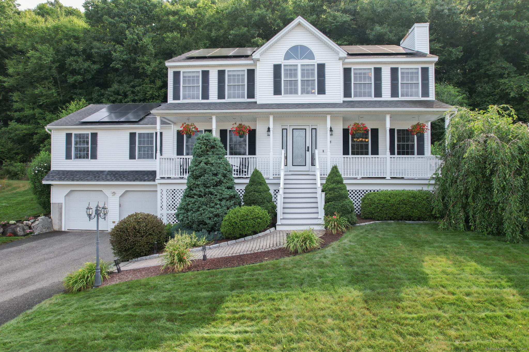 Highest and Best 10/8 5pm. Welcome to this stunning 4 Bedroom, 2.5 Bath 3000+ square foot Colonial situated on a quiet cul-de-sac street. A maintenance free front porch welcomes you with beautiful views! The beauty continues inside with cherry finished, Brazilian nut floors in the Formal Living Room and throughout the main level of the home. French doors lead you to the Great Room appointed with cathedral ceiling, recessed lighting and large windows flooding the space with natural light. The open floor plan flows into the beautifully designed Kitchen with a comfortable eating space, granite counters, stainless appliances, 6 burner gas cooktop in the island, built in oven and microwave and a door leading to the patio area for ease in outdoor entertaining. The main level of the home is complete with formal Dining Room, Office and half bath with laundry. The upper level of the home features a Primary Bedroom Suite with well appointed attached Bath with luxury 4 body spray walk in shower and walk in closet, 3 additional Bedrooms and a full hall Bath. The lower level offers additional living space along with an unfinished area with ample storage space. Central air, 2 car garage, irrigation and alarm system, Nest thermostats, energy efficient heat pump (2022), oil hot water heater 2020, sprinkler system and solar panels. This home is situated just minutes from Metro North, I84 and routes 8, 68, 69 and 63. Be sure not to miss your chance to view this home full of warmth and comfort!