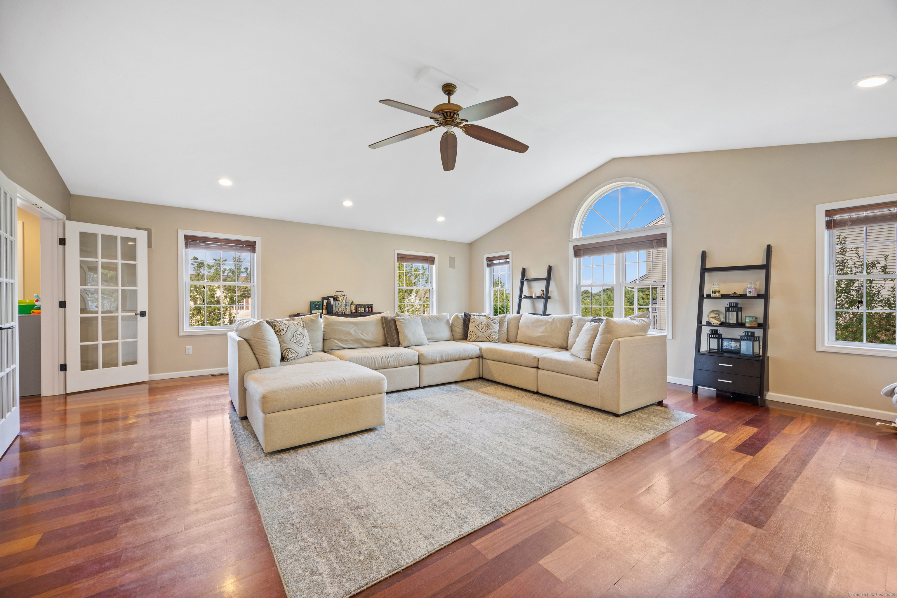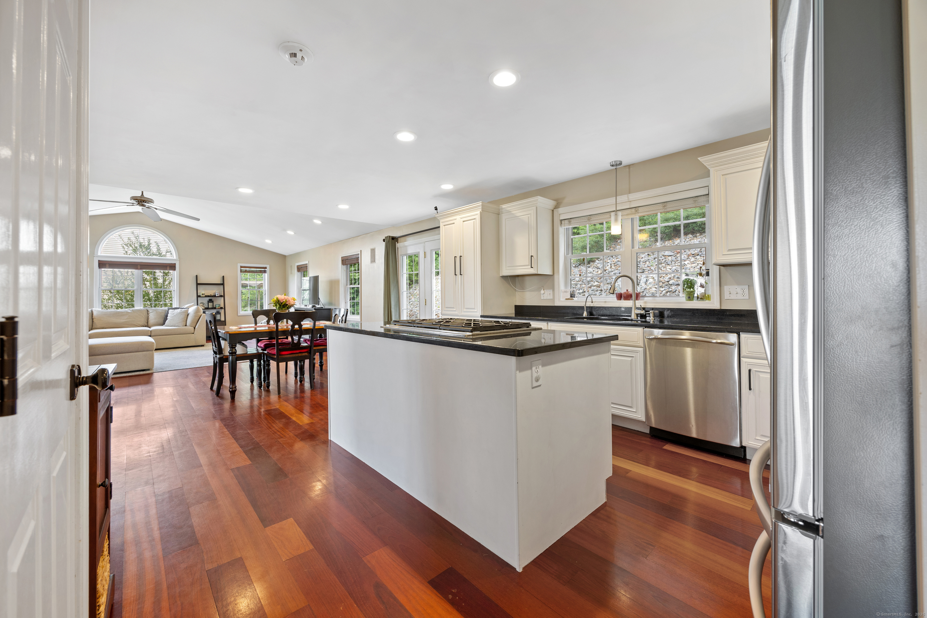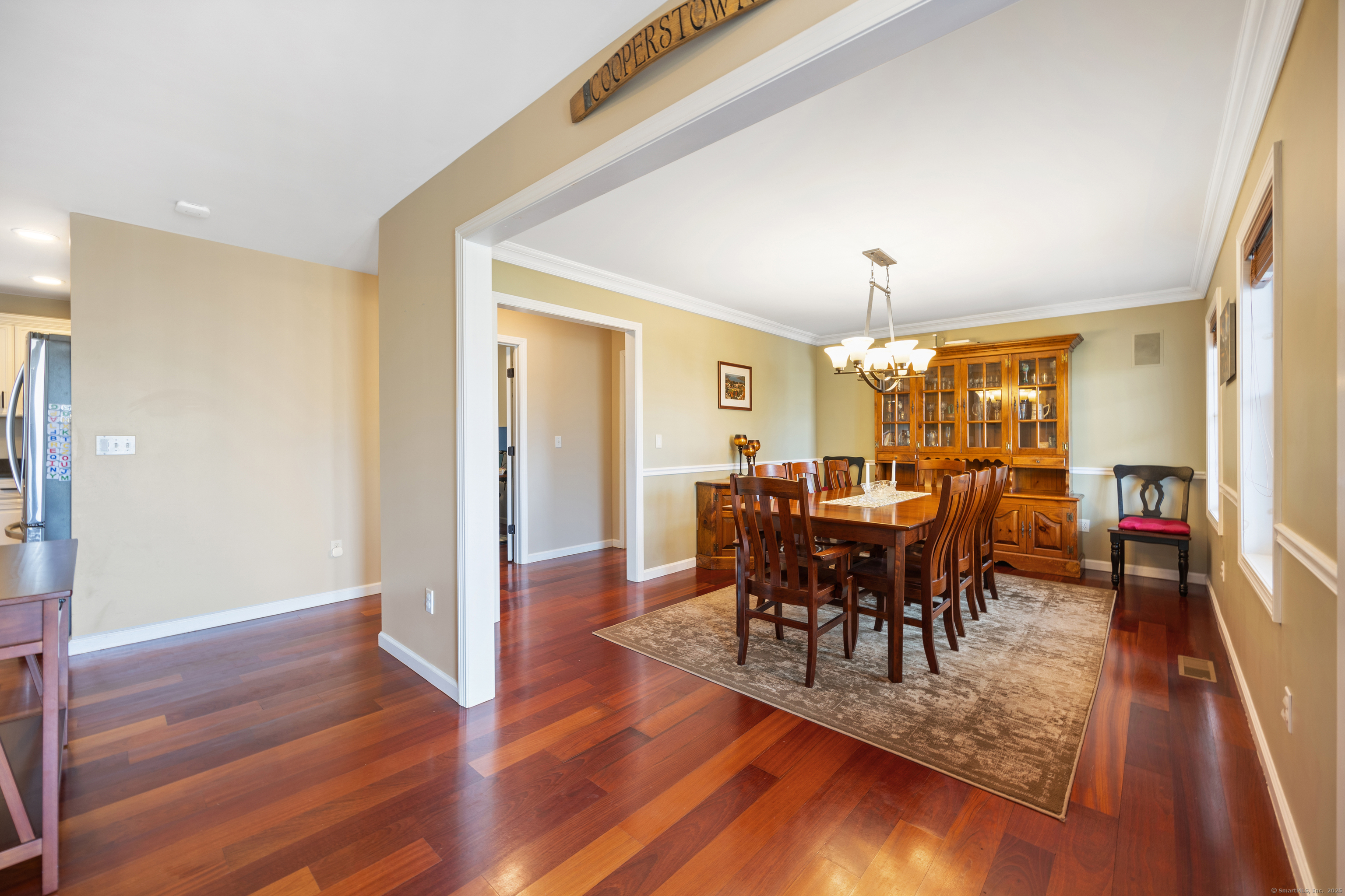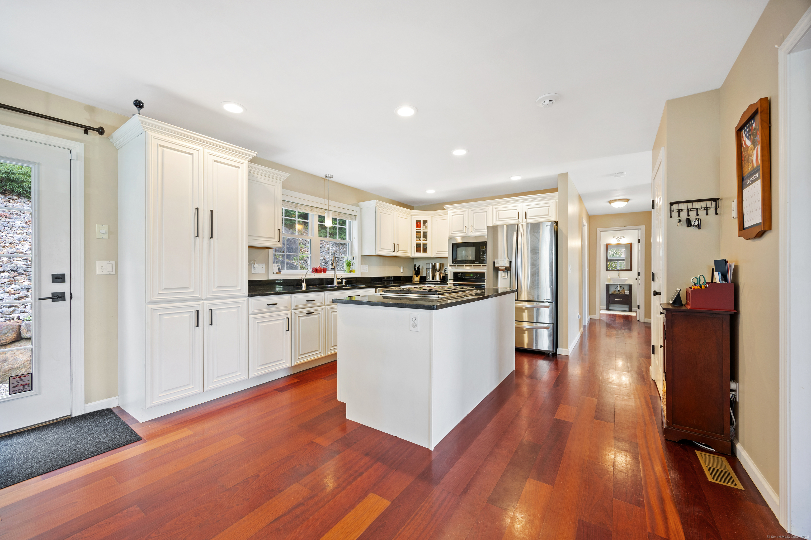 Highest and Best 10/8 5pm. Welcome to this stunning 4 Bedroom, 2.5 Bath 3000+ square foot Colonial situated on a quiet cul-de-sac street. A maintenance free front porch welcomes you with beautiful views! The beauty continues inside with cherry finished, Brazilian nut floors in the Formal Living Room and throughout the main level of the home. French doors lead you to the Great Room appointed with cathedral ceiling, recessed lighting and large windows flooding the space with natural light. The open floor plan flows into the beautifully designed Kitchen with a comfortable eating space, granite counters, stainless appliances, 6 burner gas cooktop in the island, built in oven and microwave and a door leading to the patio area for ease in outdoor entertaining. The main level of the home is complete with formal Dining Room, Office and half bath with laundry. The upper level of the home features a Primary Bedroom Suite with well appointed attached Bath with luxury 4 body spray walk in shower and walk in closet, 3 additional Bedrooms and a full hall Bath. The lower level offers additional living space along with an unfinished area with ample storage space. Central air, 2 car garage, irrigation and alarm system, Nest thermostats, energy efficient heat pump (2022), oil hot water heater 2020, sprinkler system and solar panels. This home is situated just minutes from Metro North, I84 and routes 8, 68, 69 and 63. Be sure not to miss your chance to view this home full of warmth and comfort!