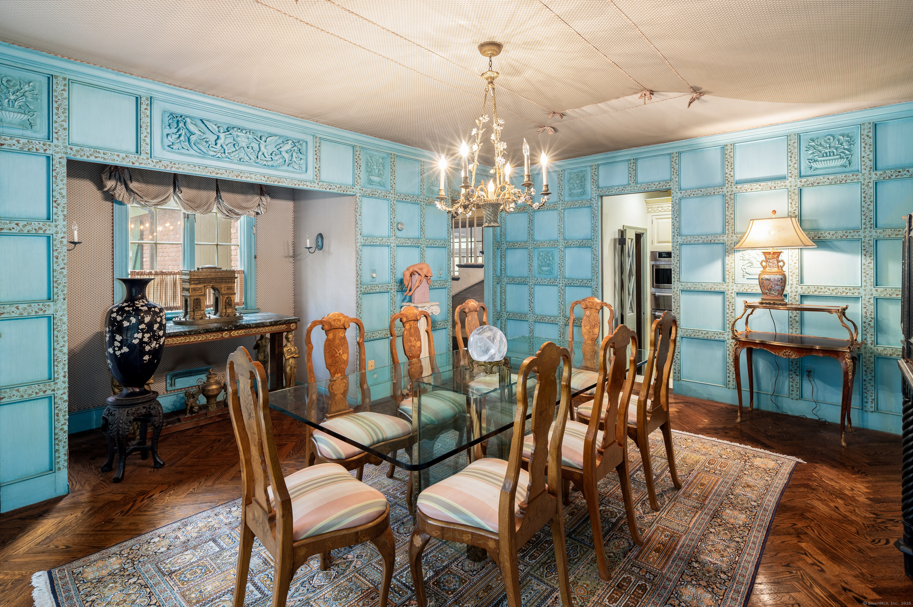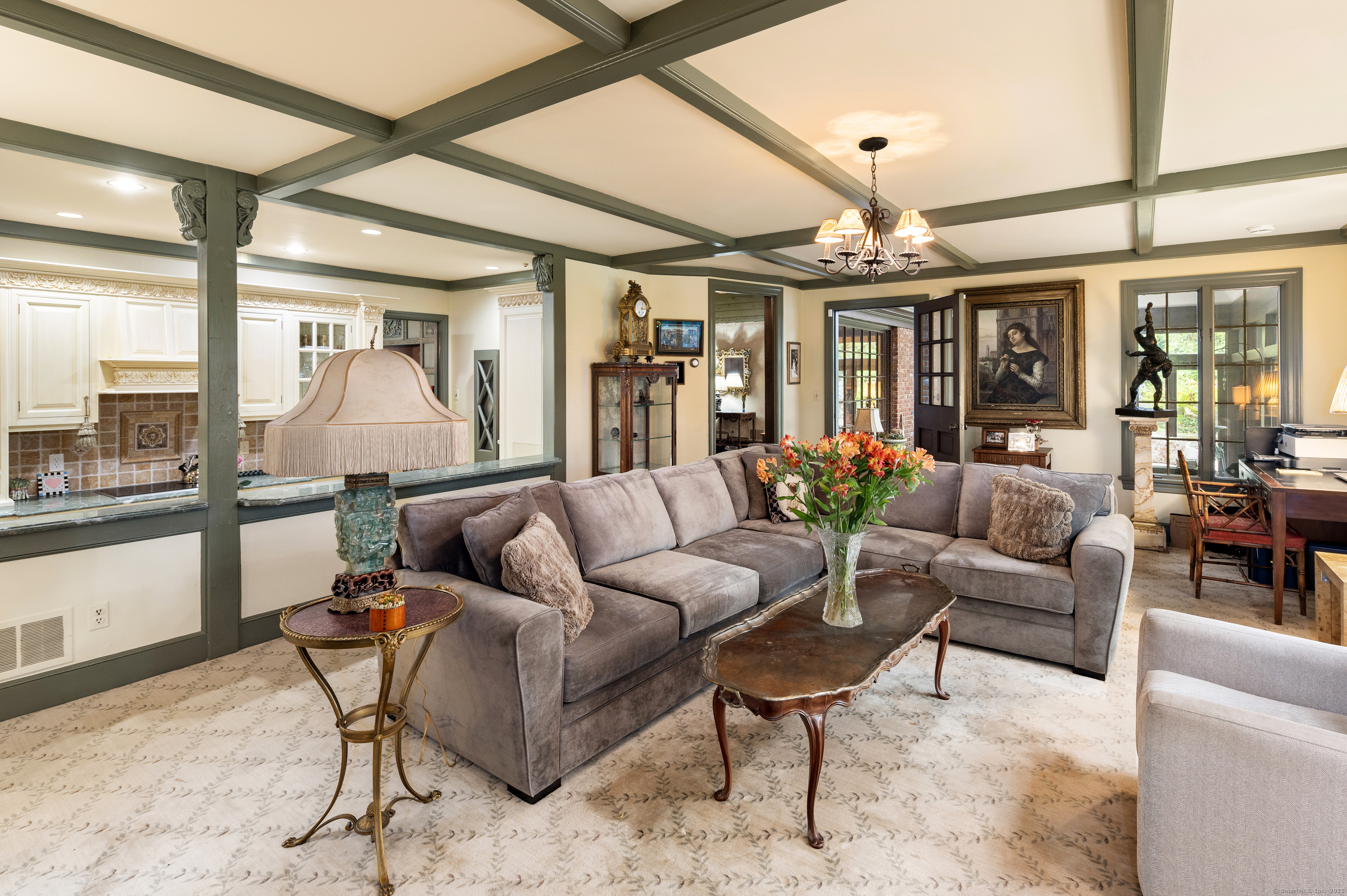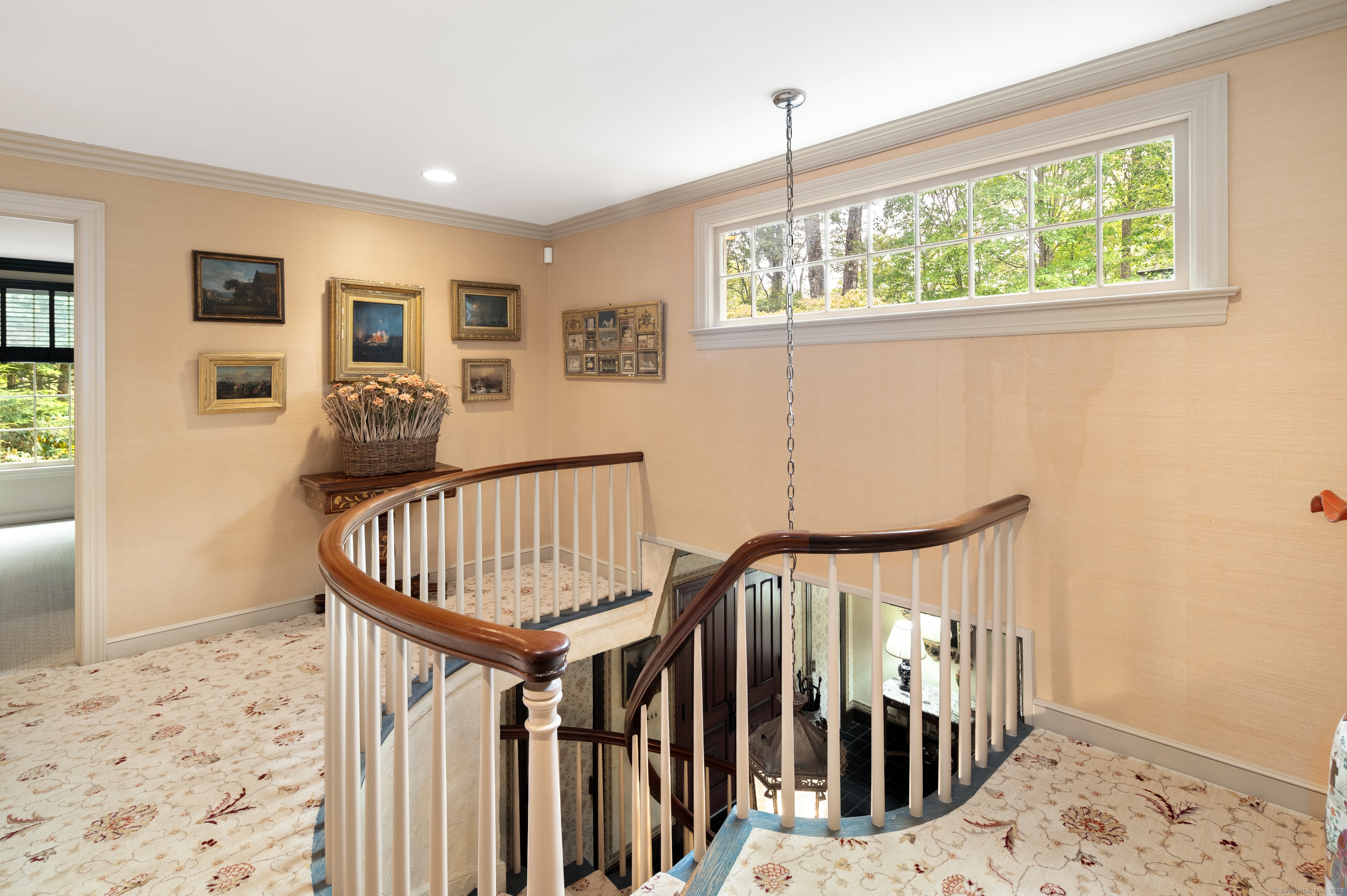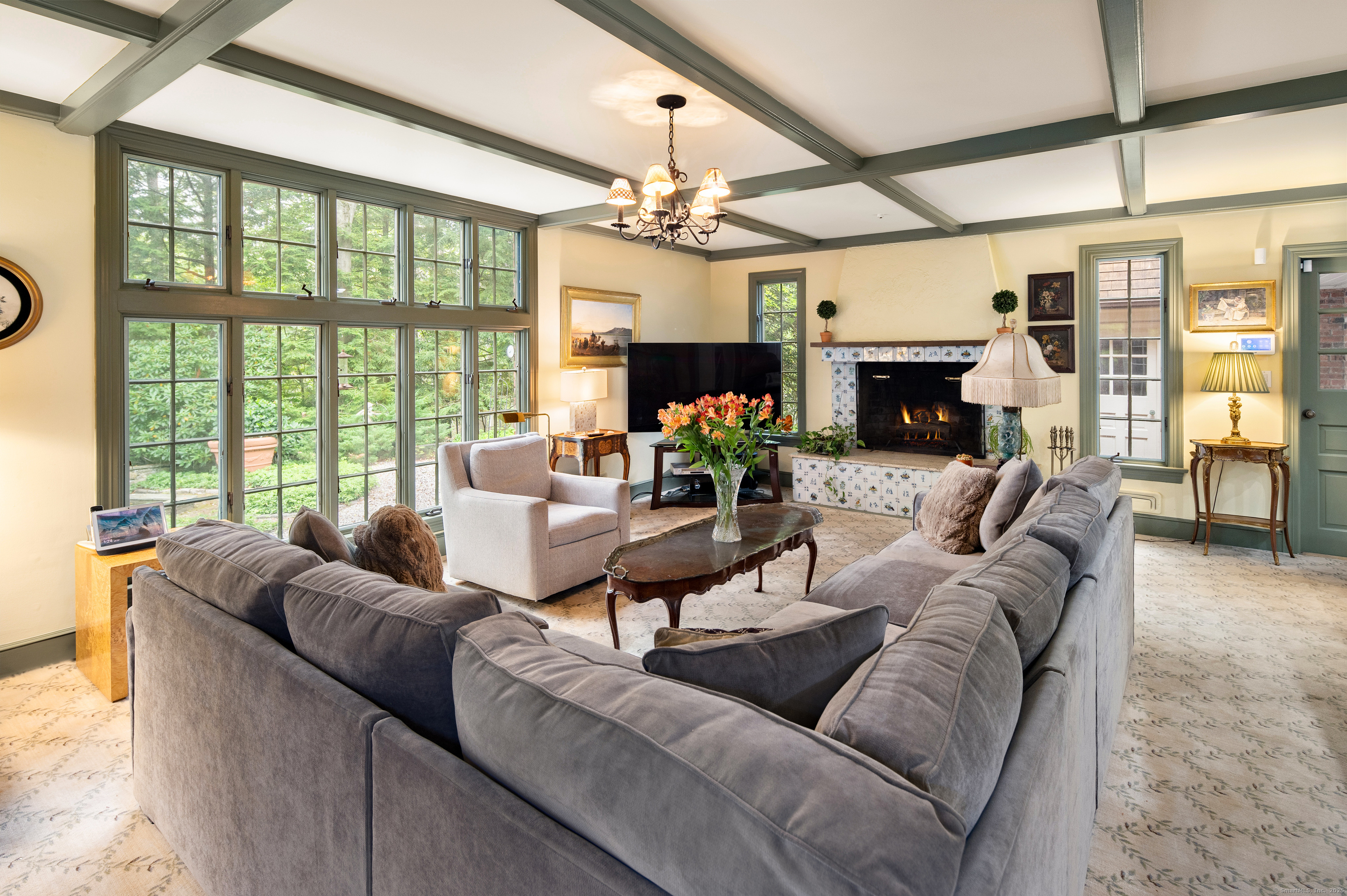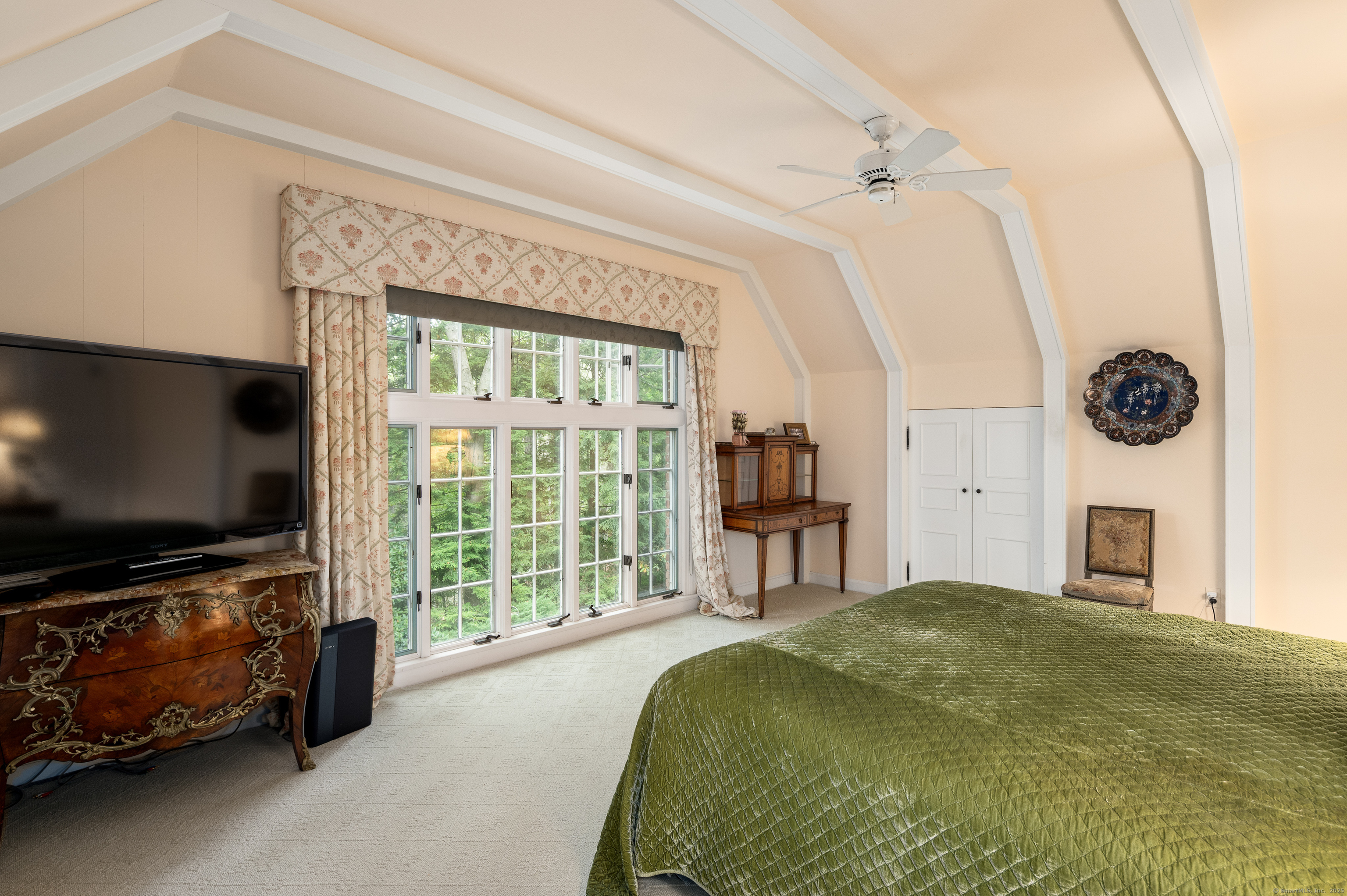 Secluded brick French country estate in private association on 2.3 North Stamford acres set at the end of a tree-lined driveway. Enter via the circular drive and this architectural gem evokes romance coupled with European flair. The facade is timeless surrounded by mature landscaping and lush woodlands, creating a natural wonderland, ensuring peace and quiet in every corner of the property. Amidst the tranquility, you are greeted by a stunning resort-style heated pool, overlooking a spring fed lake-perfectly surrounded by stone terraces, courtyards and flowering gardens. A graceful pergola stands nearby, ideal for shaded lounging. The expansive terrace is built for entertaining, with ample space for al fresco dining, cocktail parties, or simply soaking in the serenity. Once inside, elegance surrounds you as you enter the grand living room with beamed cathedral ceiling, arched windows and fireplace. Elegant formal dining room with old-world charm. Kitchen by Clive Christian opens to a glass enclosed greenhouse perfect for dining. The family room w/fireplace is open to the kitchen area. There is a sunlit solarium with French doors and ceiling fans offering great views of the backyard. Au pair suite or maid's quarters complement this level. The second floor offers a spacious master bedroom, and three additional bedrooms; one with separate entrance, perfect for a home office. Don't miss your chance to own this rare and sophisticated masterpiece - where luxury meets lifestyle.