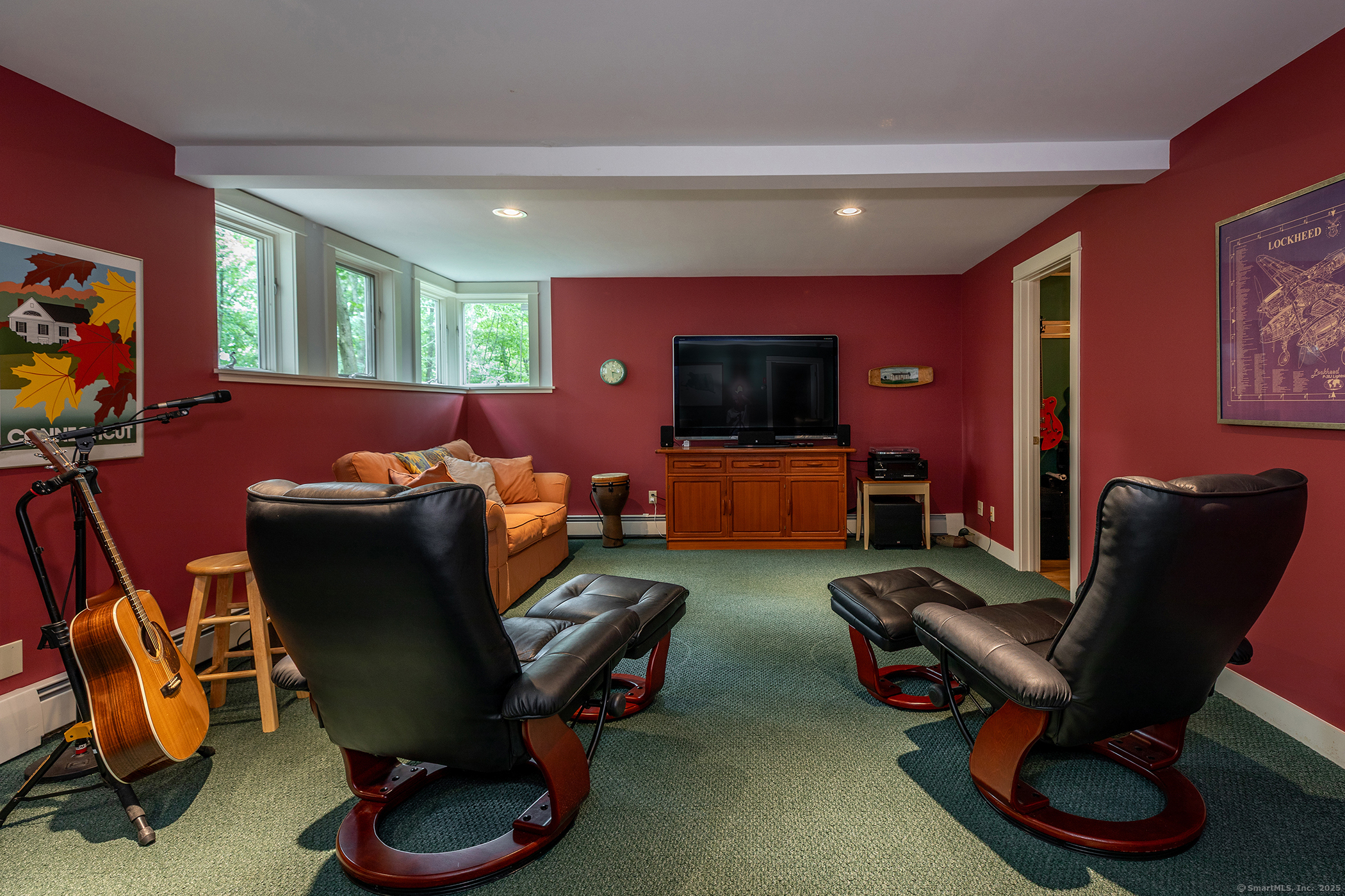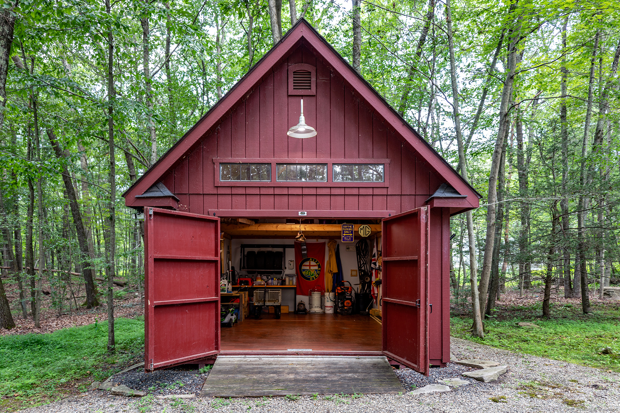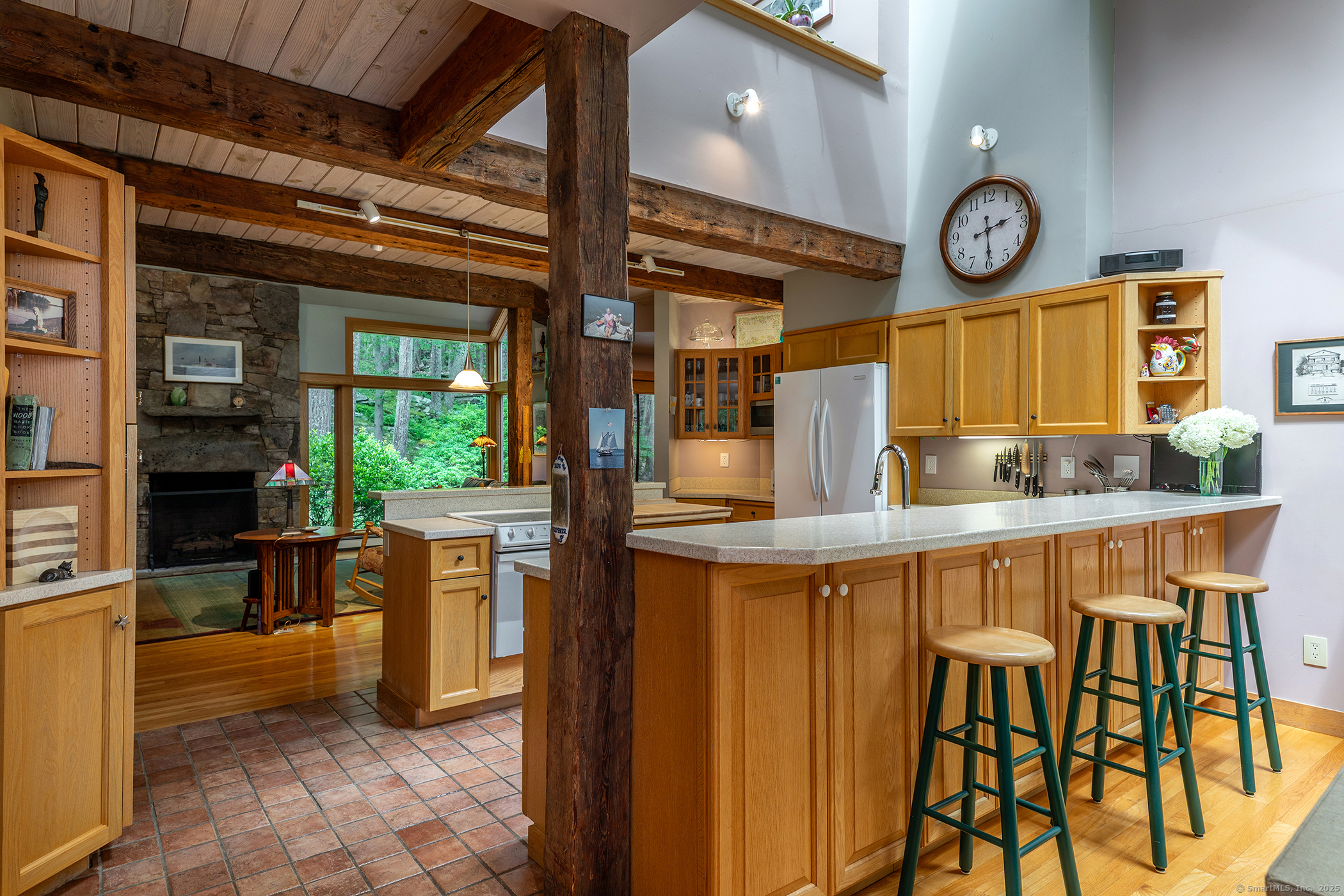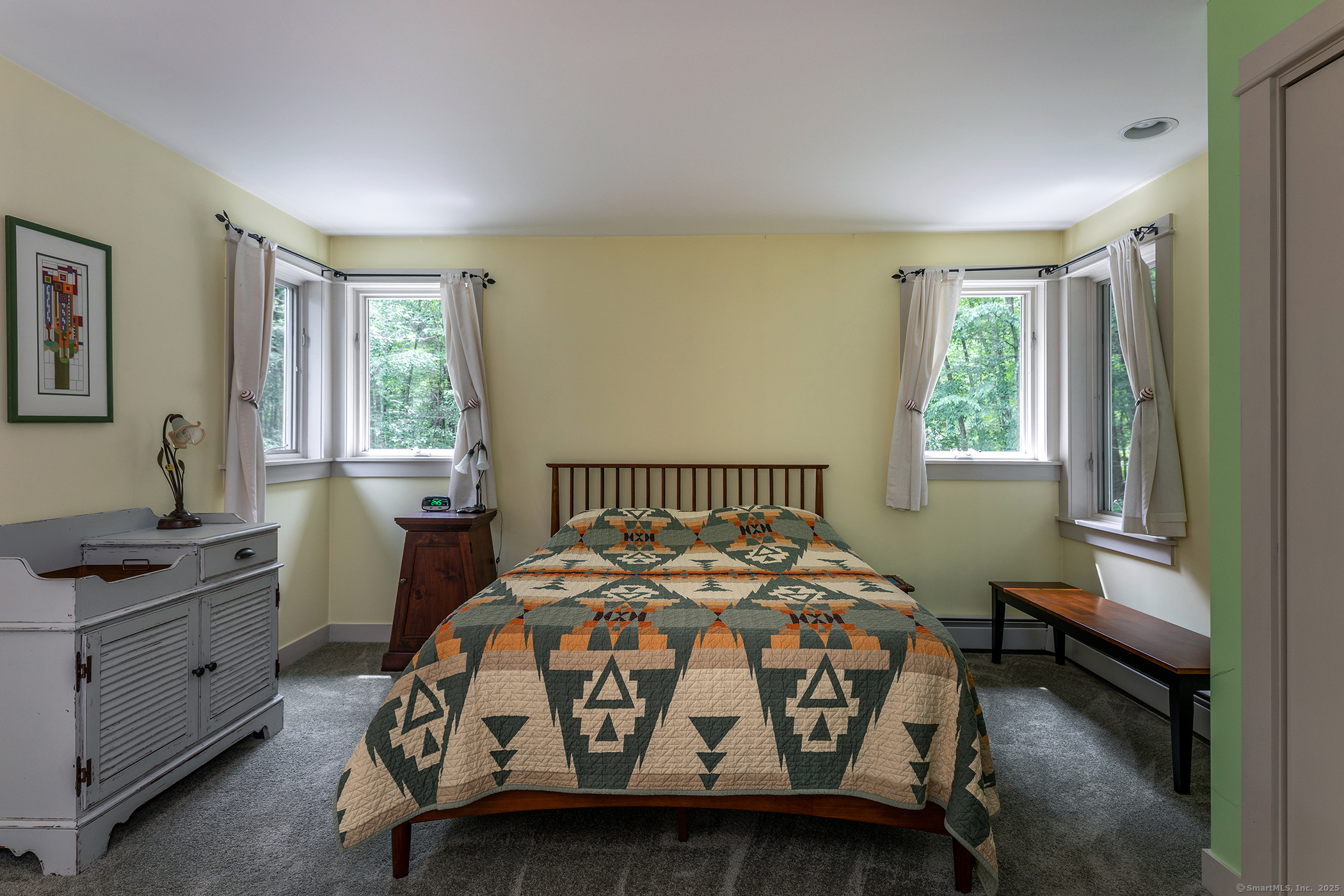 Architect-designed Bridgewater oasis set next to over 300 acres of Roxbury Land Trust. Tucked away on 4+ private acres, this light-filled contemporary by Stephen Lasar was designed with passive solar principles, offering a retreat with exceptional privacy and efficiency. With 2,500+ sq ft, the home features 4 bedrooms and 3.5 baths, including a first-floor suite and a dedicated office. Upstairs, you'll find 3 bedrooms, including the vaulted-ceiling primary which overlooks treetops and is complemented by a convenient second-floor laundry. Artistic hardscaping leads to a covered porch and active stream feature, connecting the home to its natural surroundings. At its heart is a well-appointed kitchen and stone fireplace living room that flows into the dining area, framed by windows showcasing fern-covered grounds and dramatic granite outcroppings. The finished walkout lower level includes a full bath, media room, workshop, and storage. Outdoor living shines with a composite deck and stone patios. An attached two-car garage offers storage or workshop space, while a separate barn provides room for hobbies or equipment. Just minutes to Bridgewater village and a short drive to New Milford, Roxbury, Washington, and Lake Lillinonah, this property blends architectural integrity, natural beauty, and convenience-offering tranquility without isolation.