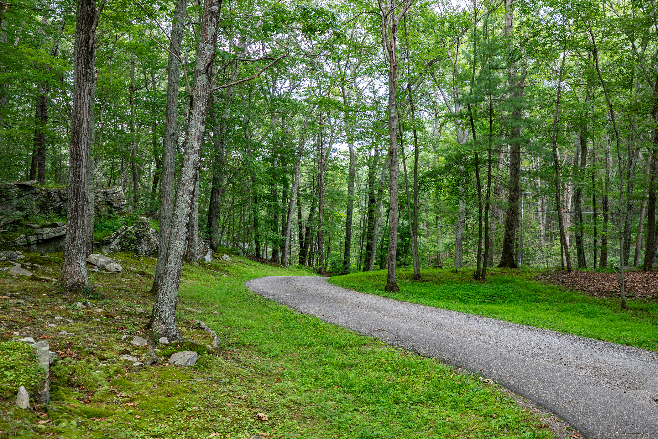 Description : Secluded, Lightly Wooded, Rocky, Sloping Lot, Professionally Landscaped