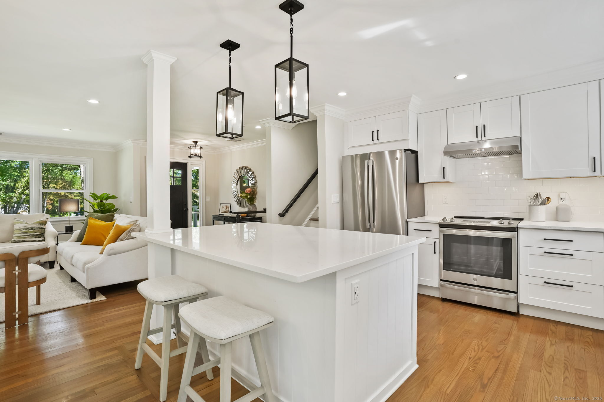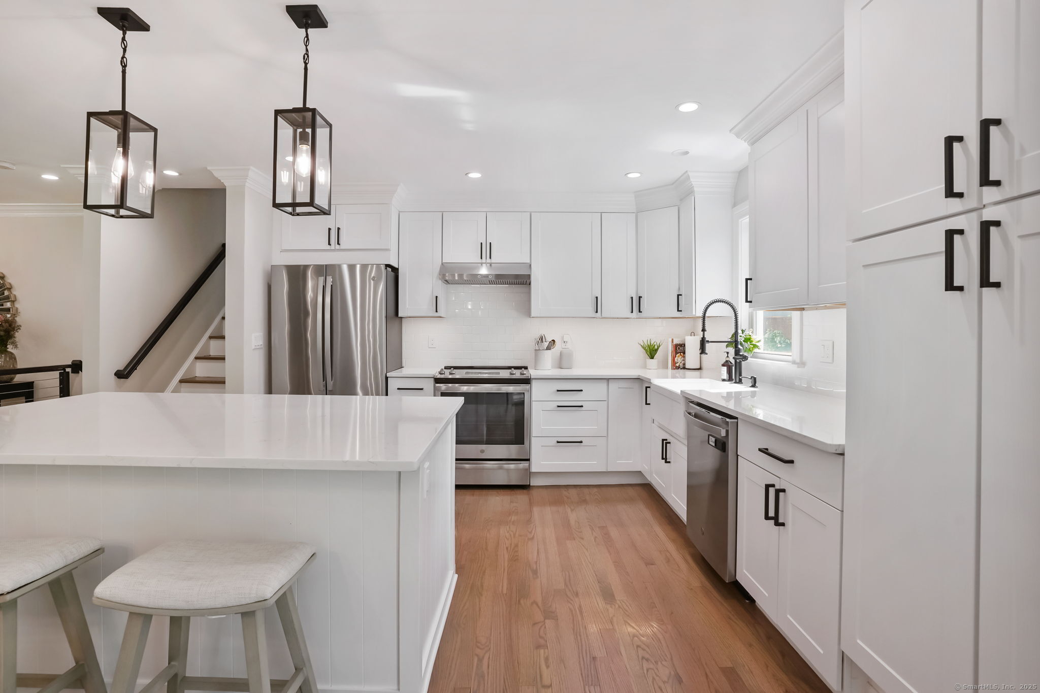 *Highest and Best Deadline 9/23 at 5pm* Welcome to 99 Wardwell Drive, a beautifully updated split-level home offering 4 bedrooms, 3 full baths, and over 2,300 sq ft of versatile living space. The main level is designed for today's lifestyle with an open flow between the bright all-white kitchen, dining area, and living room with fireplace. The kitchen features a large island, quartz countertops, and stainless steel appliances, while sliders lead to a stone patio overlooking a full acre with level yard, stone patio, and playset. Upstairs, the primary suite includes a full bath, a dressing room with dual closets and vanity, plus an additional closet. Two more spacious and bright bedrooms and a fully updated bath complete this level. The lower level is perfect for entertaining with a family room and wet bar, a bedroom and full bath, a mudroom, and walk-out access to the backyard and garage. The bedroom can be used as an office or playroom. There is an additional 500 square feet of unfinished basement space with laundry that adds storage and flexibility--or future finished space. Set at the end of a cul-de-sac in a quiet, close-knit community, the home is nestled just minutes from town and in desirable Silvermine, with award-winning schools, shops, dining, and Metro-North nearby. Updated systems, fresh modern finishes, abundant natural light, and outdoor space for play and entertaining make this home truly move-in ready.