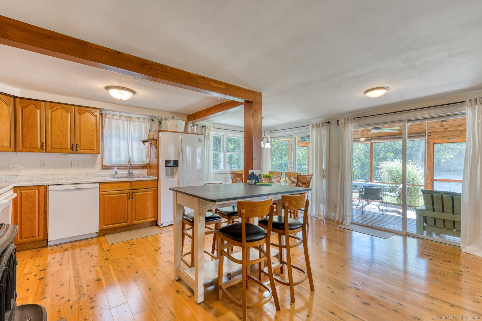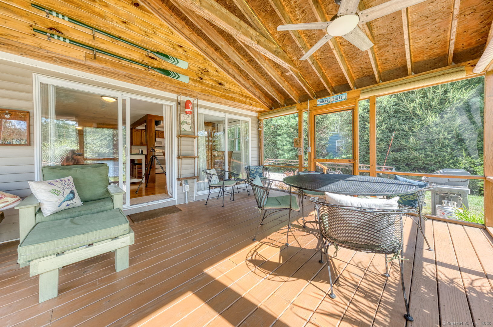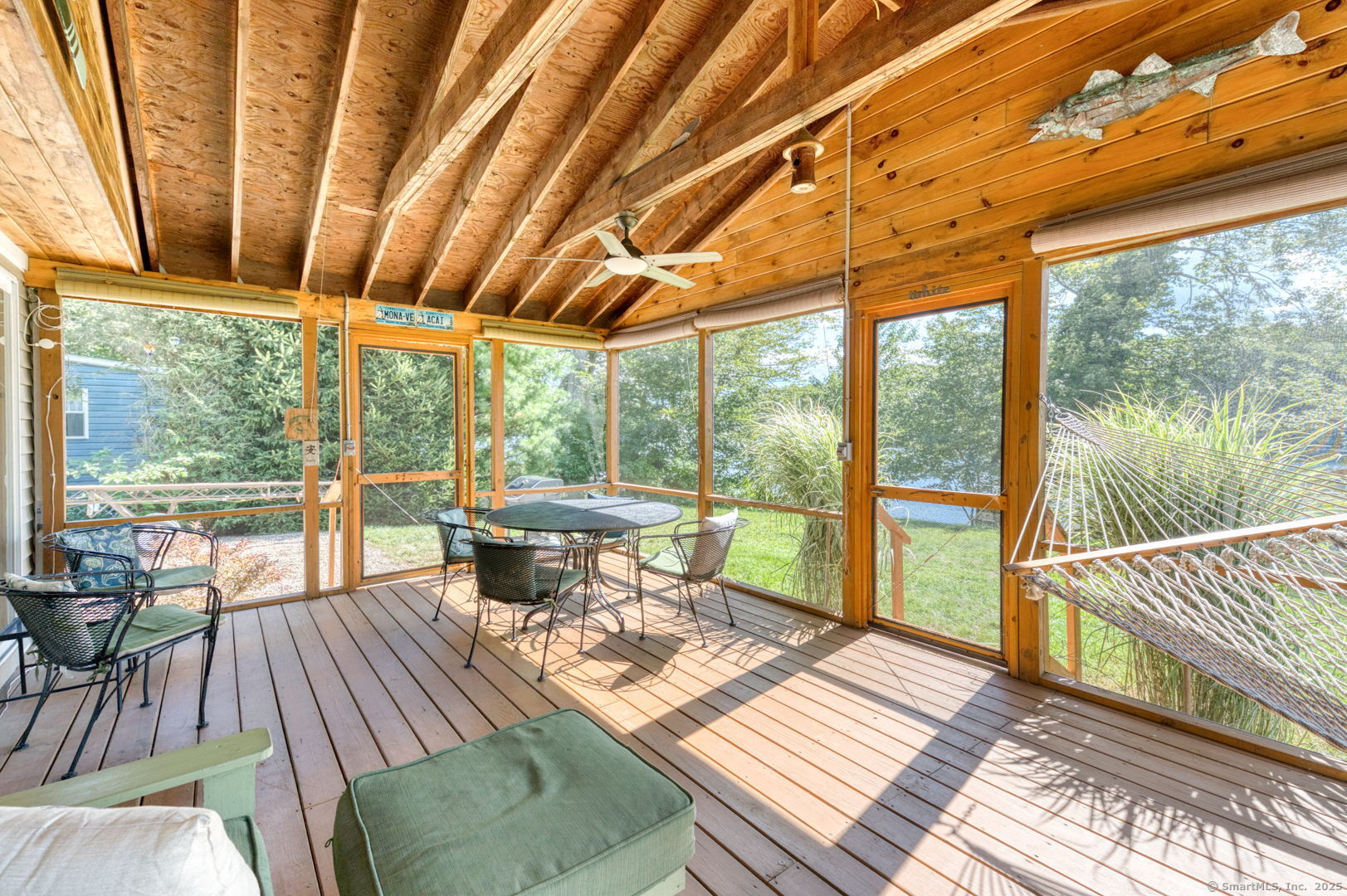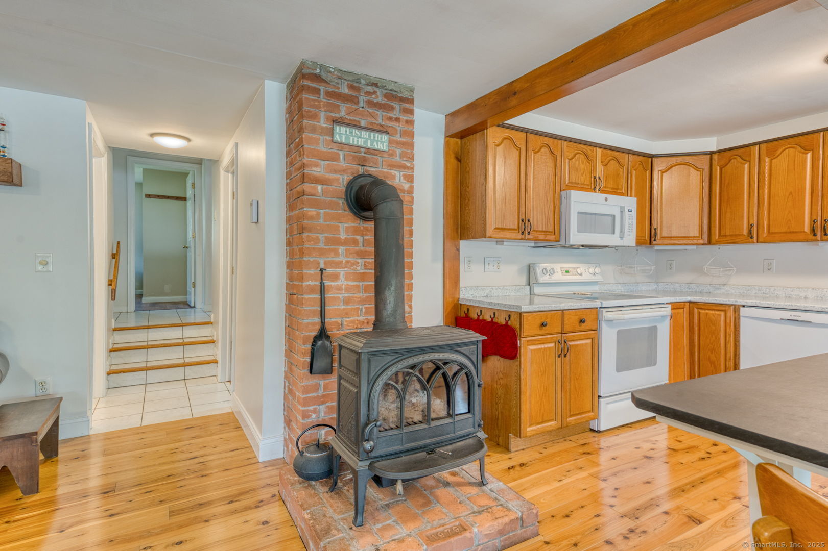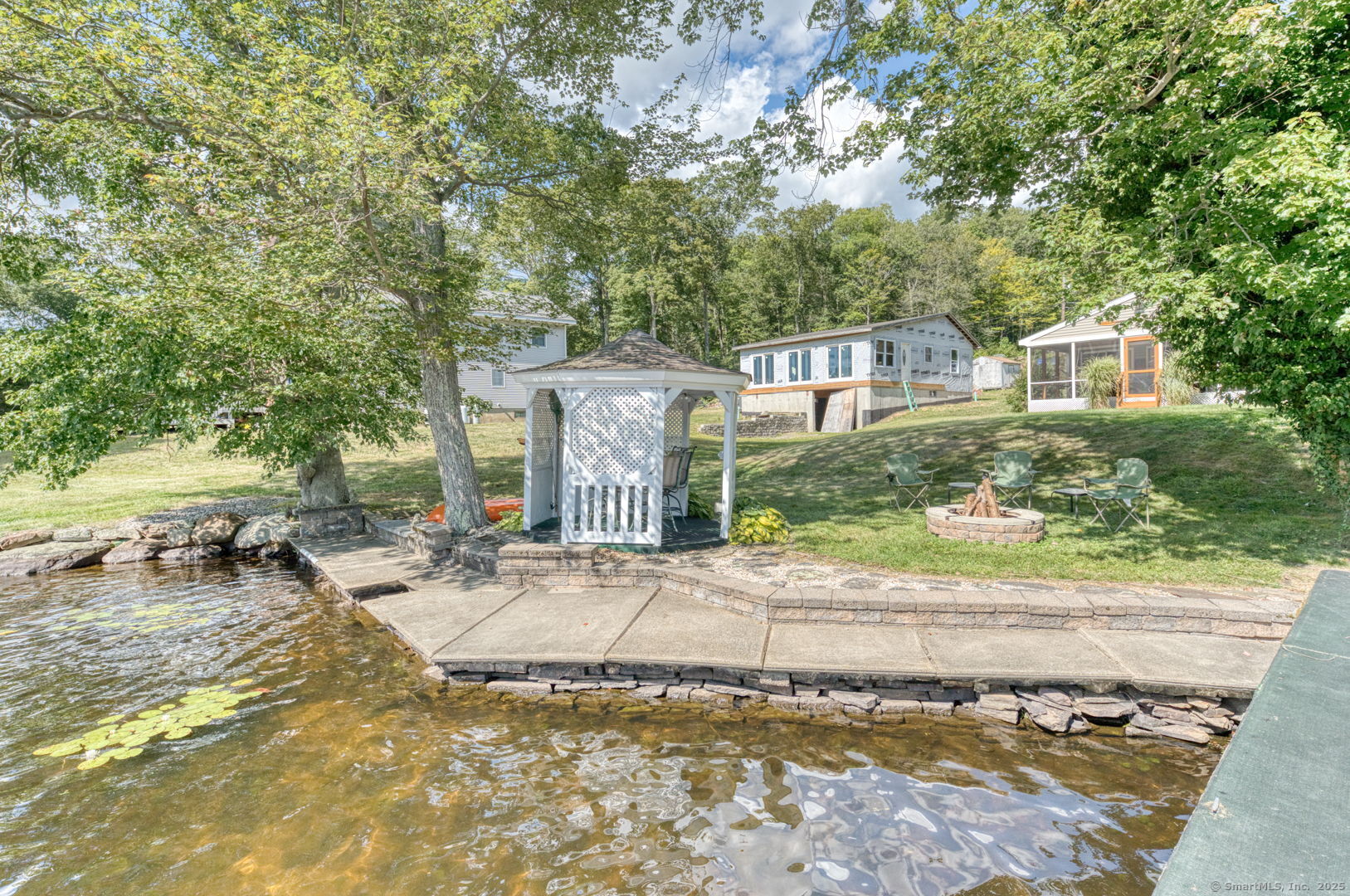 Water views define this tranquil lakeside retreat. Your private boat dock invites endless adventures-boating, fishing, or simply soaking in the peaceful setting, where every glance reminds you of life on the water. Picture windows throughout the home frame these views, filling the open-concept layout with natural light. Perfectly situated on a private road for peace and seclusion, this home is designed for comfort and relaxation, anchored by a cozy wood stove that adds warmth and charm year-round. Step outside and embrace true lake living. Sip your morning coffee on the screened-in porch, host gatherings beneath the shaded gazebo, or unwind around the smokeless fire pit as the sun sets. The level backyard offers space for outdoor activities and includes a one-car garage plus a shed for extra storage. Blending comfort, natural beauty, and a lifestyle centered on the water, this lakeside retreat is the perfect year-round residence or weekend escape.