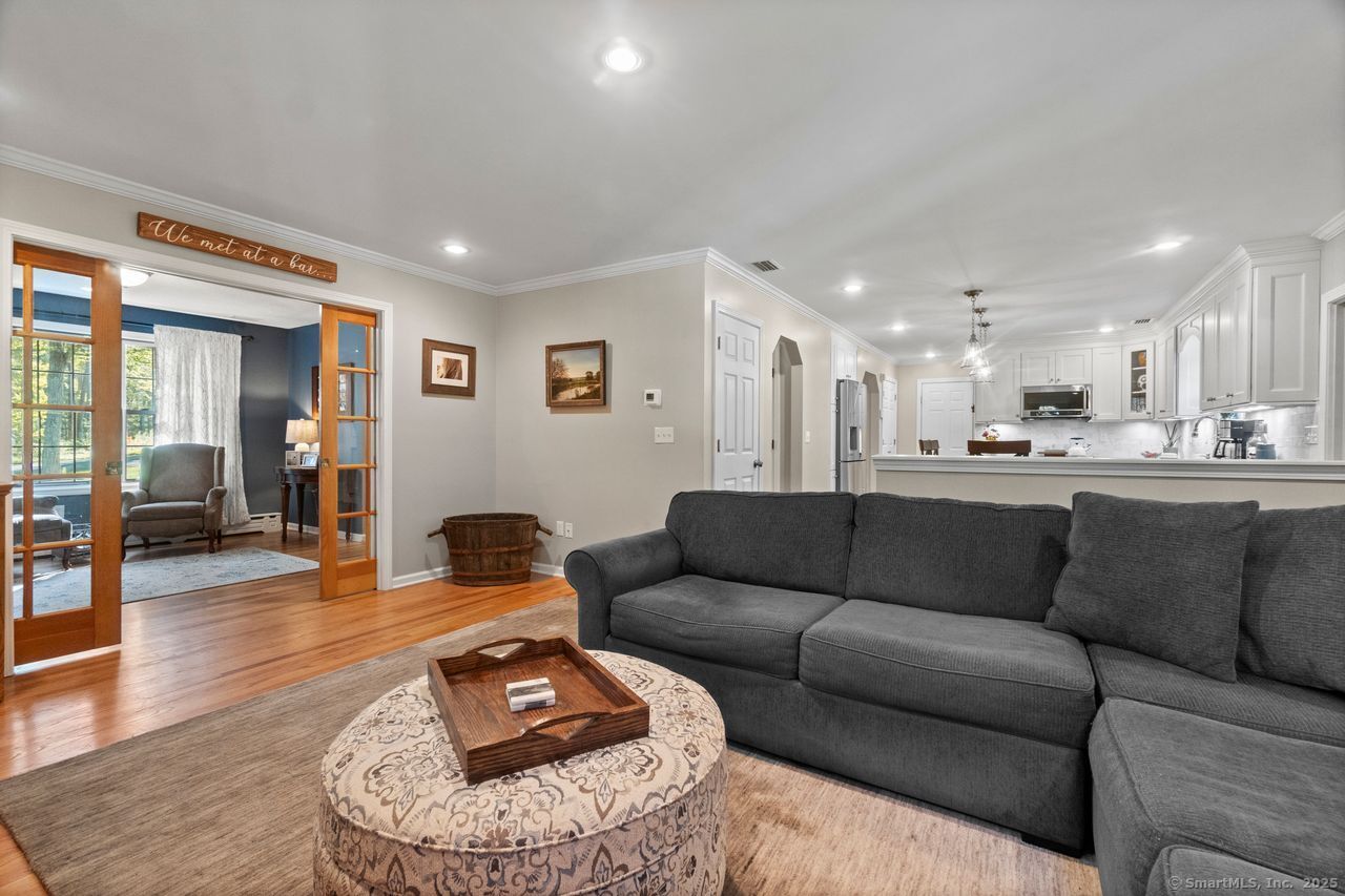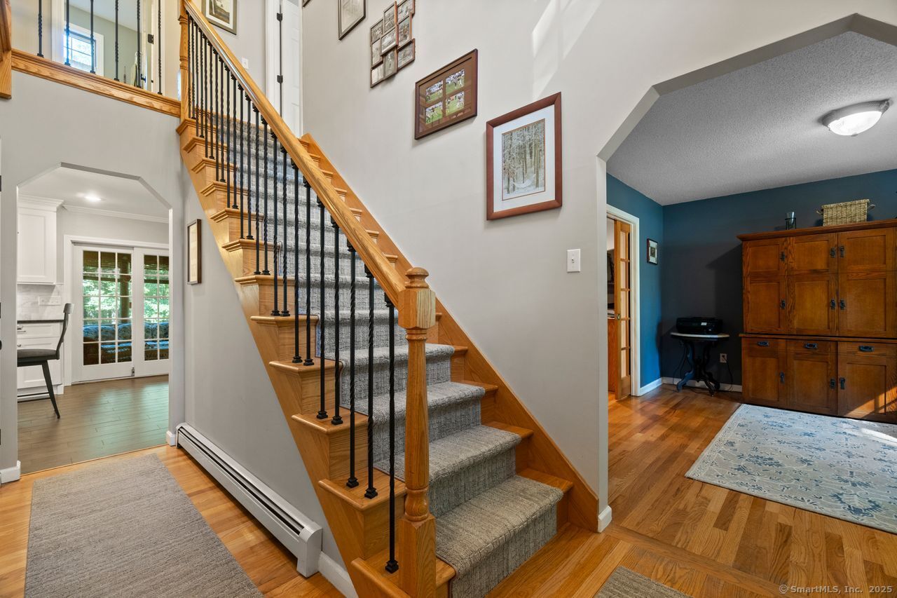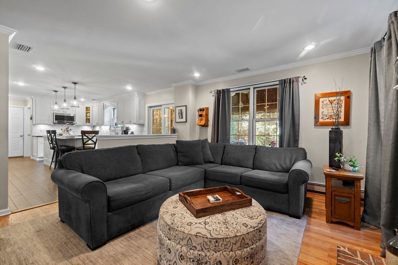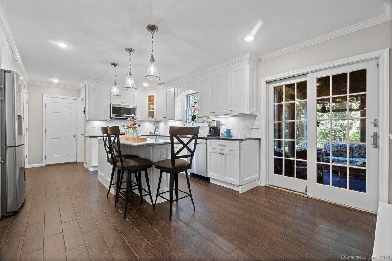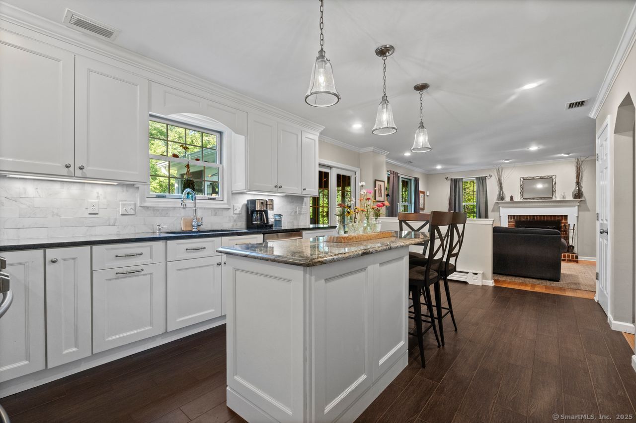 Highest and best offers due by 4pm on Monday, 9/8/25. Tucked away in the quiet countryside of Killingworth, this 4-bedroom Colonial farmhouse invites you to slow down and savor the simple joys of home. Start your mornings with coffee on the covered front porch, then step inside to a warm and inviting layout where natural light dances across hardwood floors and a cozy fireplace sets the tone for relaxing evenings. The remodeled kitchen, with its crisp white cabinets, granite counters, and center island, is the heart of the home - perfect for gathering with family or hosting friends. A dining room with a striking accent wall makes every meal feel special, while the screen porch and back deck open to views of gardens and gently wooded forest, creating a natural extension of your living space. Upstairs, the primary suite offers two walk-in closets, and the oversized 20'x19' bedroom above the garage provides endless possibilities - from a game room to a private home office. With stylish details, updated baths, and thoughtful design touches throughout, this home blends classic charm with modern comfort. Practical updates include a newer roof ( 2021) and new oil-fired boiler (2024), giving you peace of mind for years to come. Set on two level acres with space to garden, play, and explore, this home is more than a place to live - it's a place to grow roots and create lasting memories.
