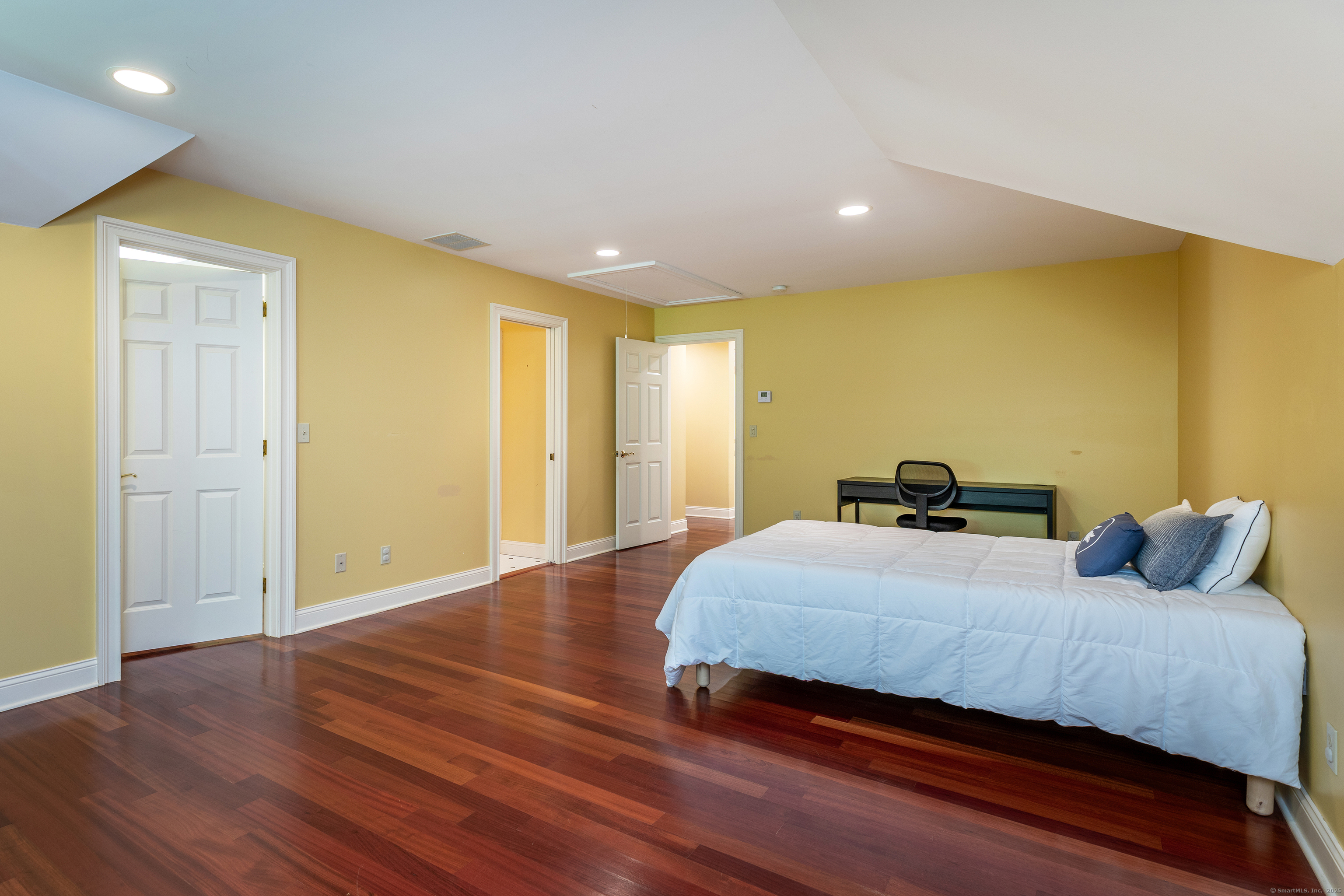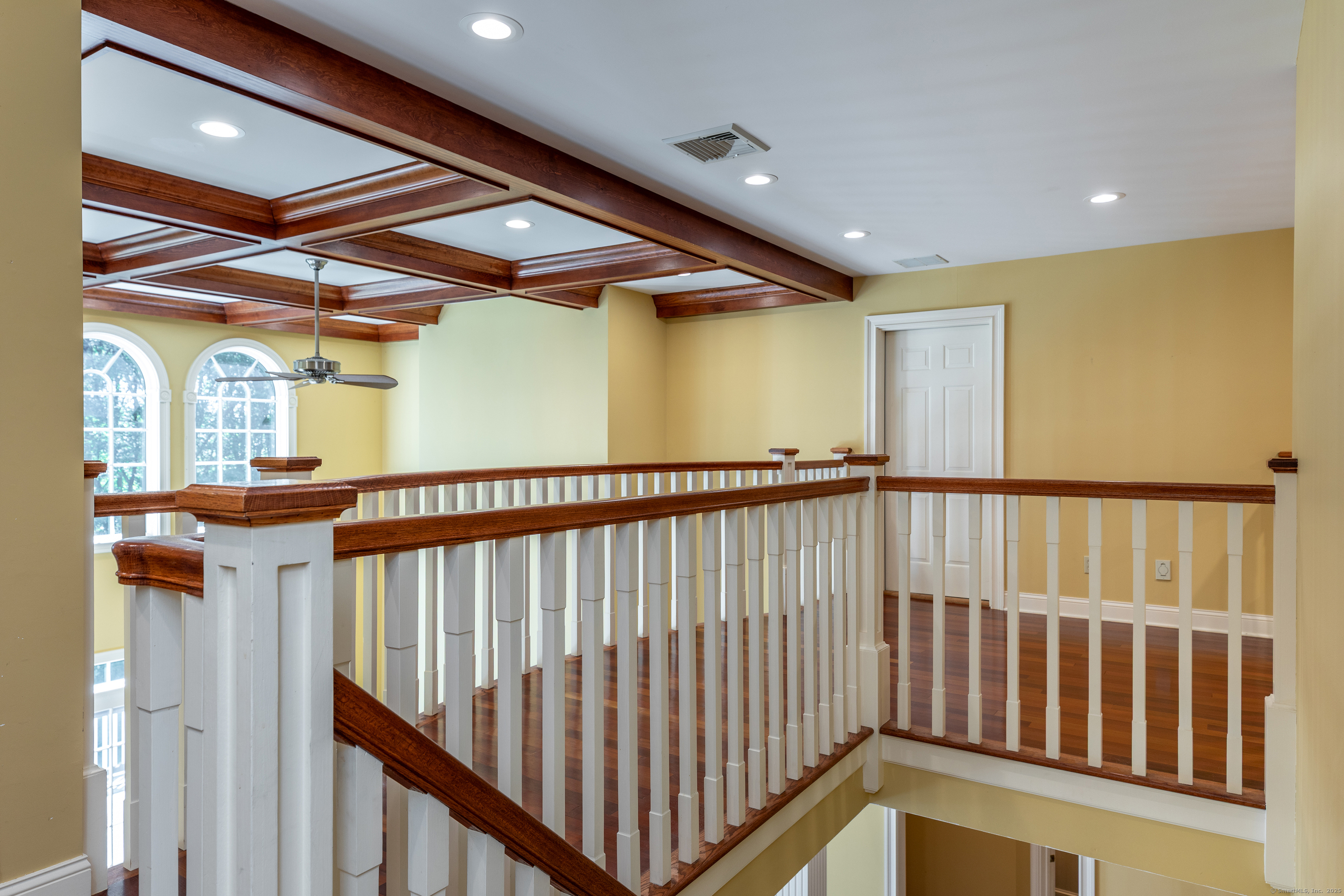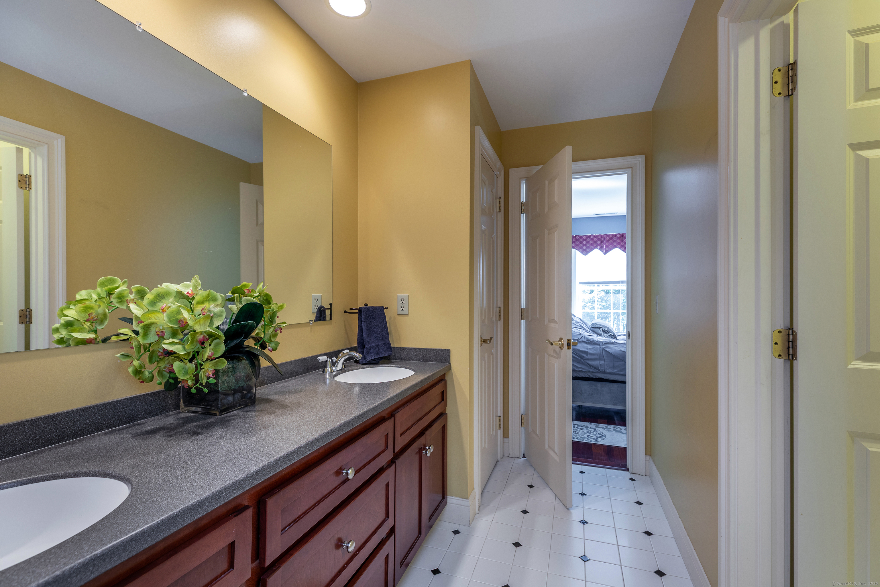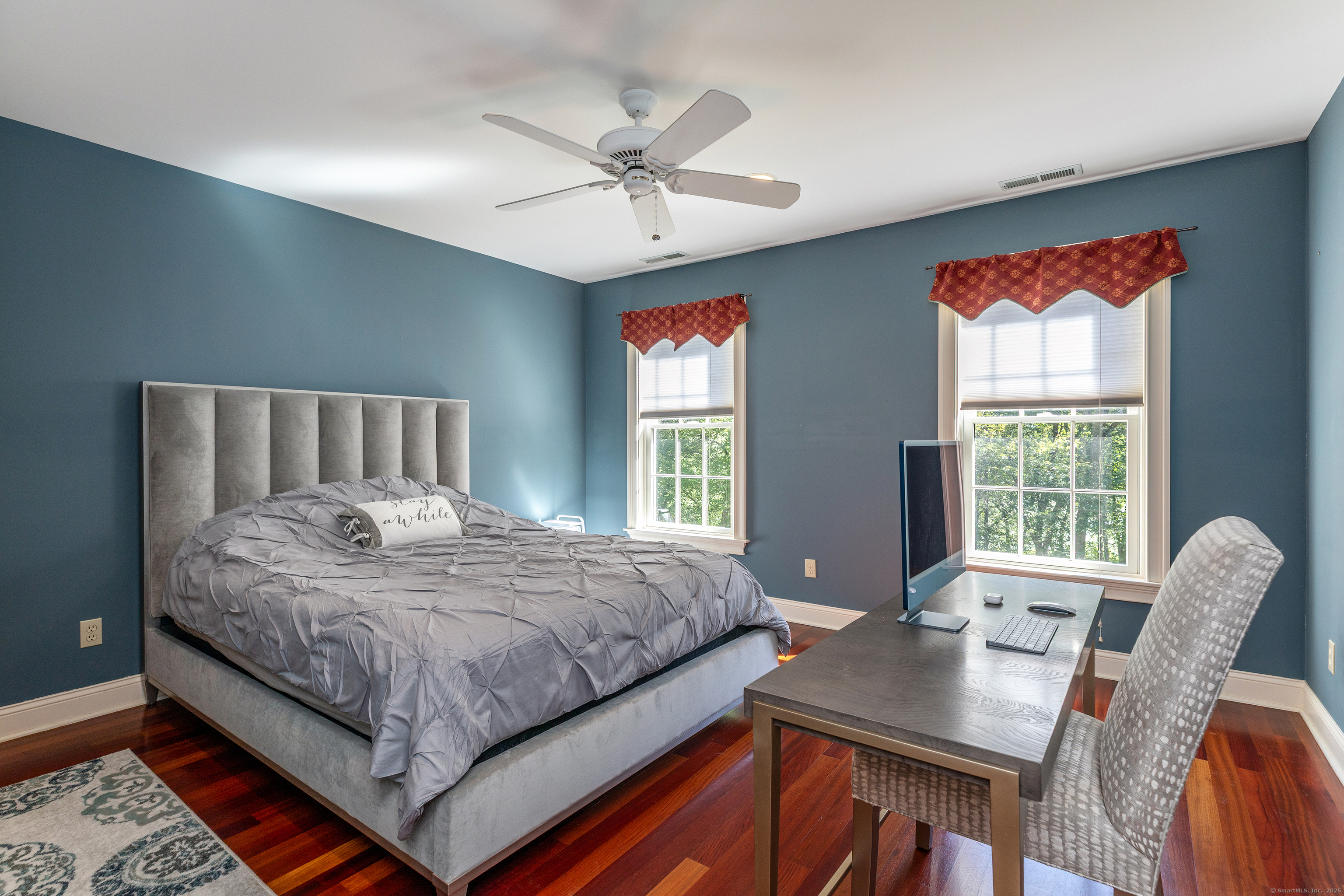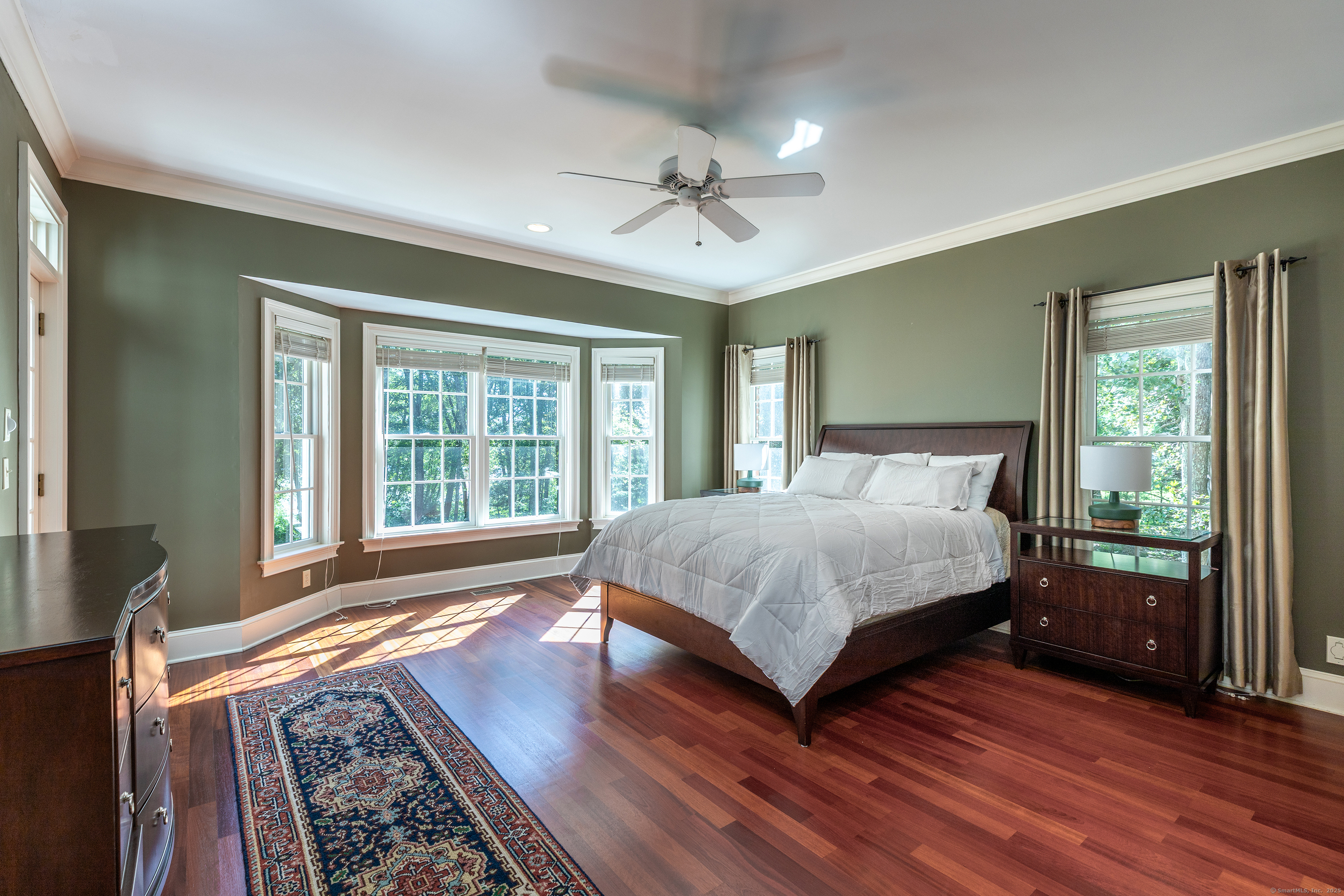 Tucked away in a beautifully maintained cul-de-sac, this stately brick French Provincial home enjoys a private, direct waterfront setting on Bull Pond, bordered by 70 acres of protected land trust. Soaring Palladian windows frame sweeping water views from nearly every room including the great room, first-floor primary suite, guest suite, kitchen, interior bridge, and expansive deck. Step inside to find an open, inviting layout enhanced by Brazilian hardwood floors. The great room impresses with 20-foot coffered ceilings, fluted columns, and a grand fireplace, while the formal dining room and cherry-paneled study with its own fireplace offer refined spaces for entertaining. The chef's kitchen features granite counters, cherry cabinetry, a center island, stainless steel appliances, and a convenient pantry/laundry room. The first-floor primary suite offers a luxurious bath and walk-in closet, while the second floor provides a guest suite with full bath, two additional bedrooms with a Jack-and-Jill bath, and a dramatic bridge overlooking the great room. The lower level is ready to be finished, already showcasing a fireplace, oversized windows with water views, and direct walk-out access to the patio. Perfectly located just minutes to Route 8 for an easy commute and close to Fairview Farms Golf Course, this home combines elegance, comfort, and an unmatched natural setting.