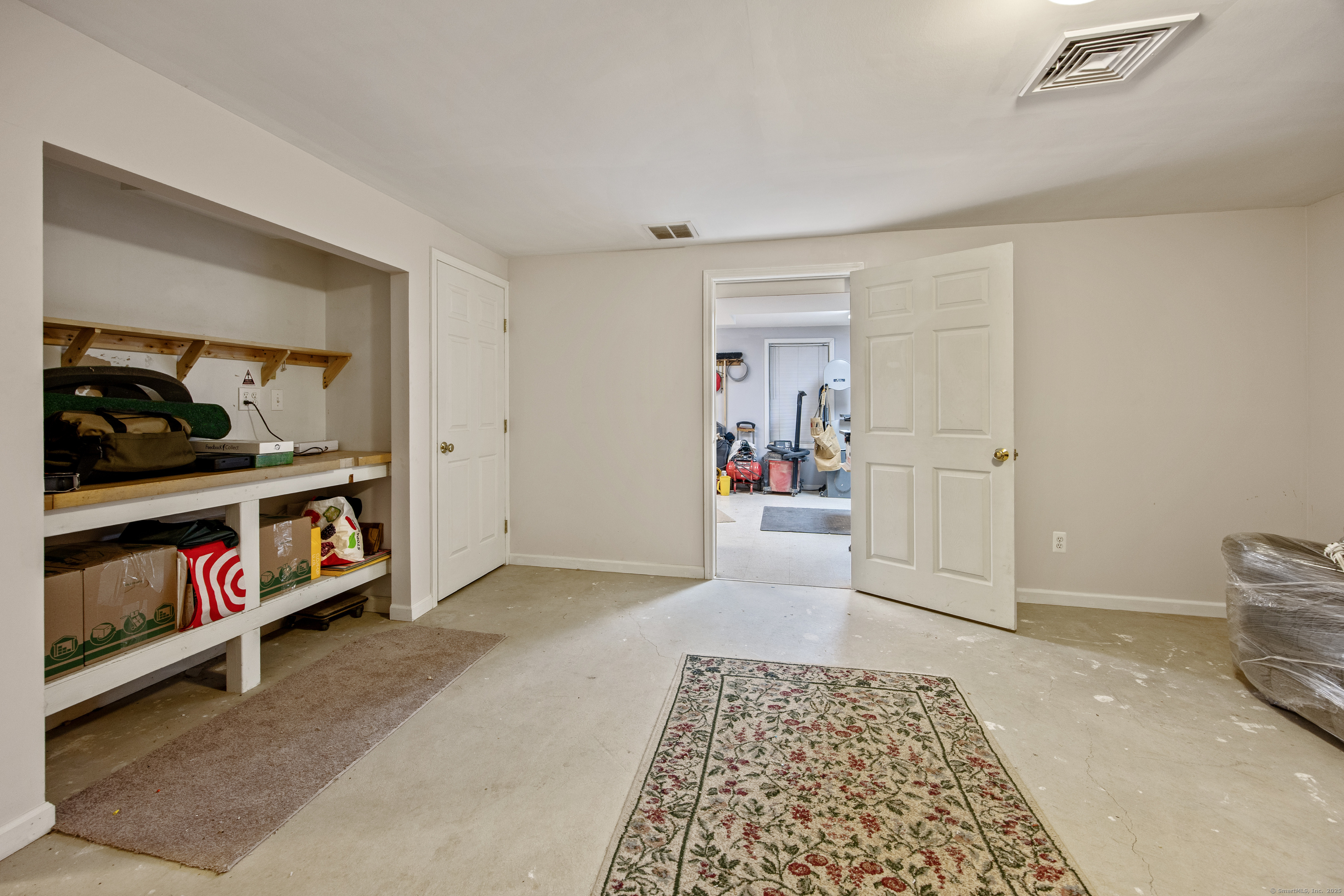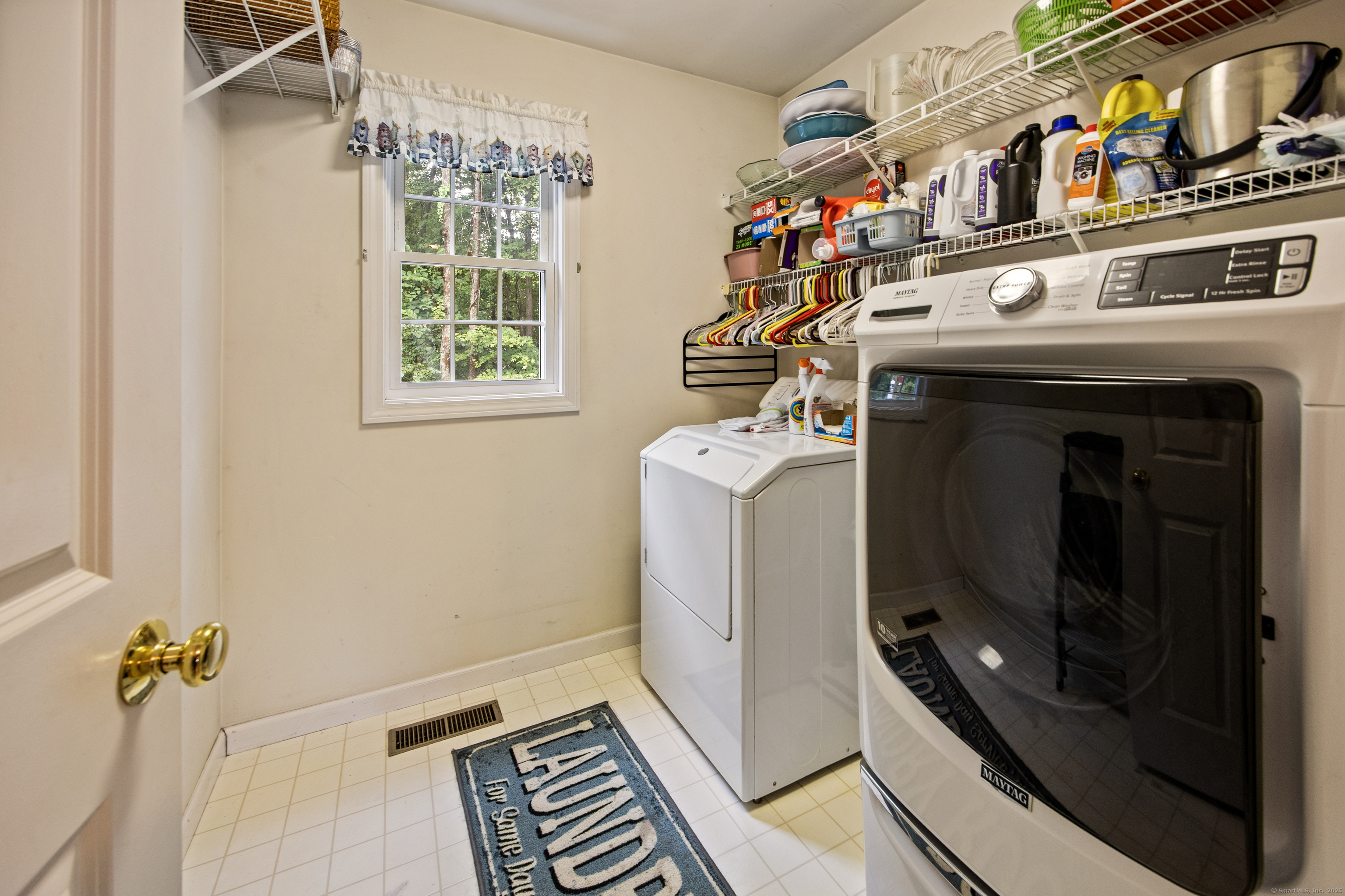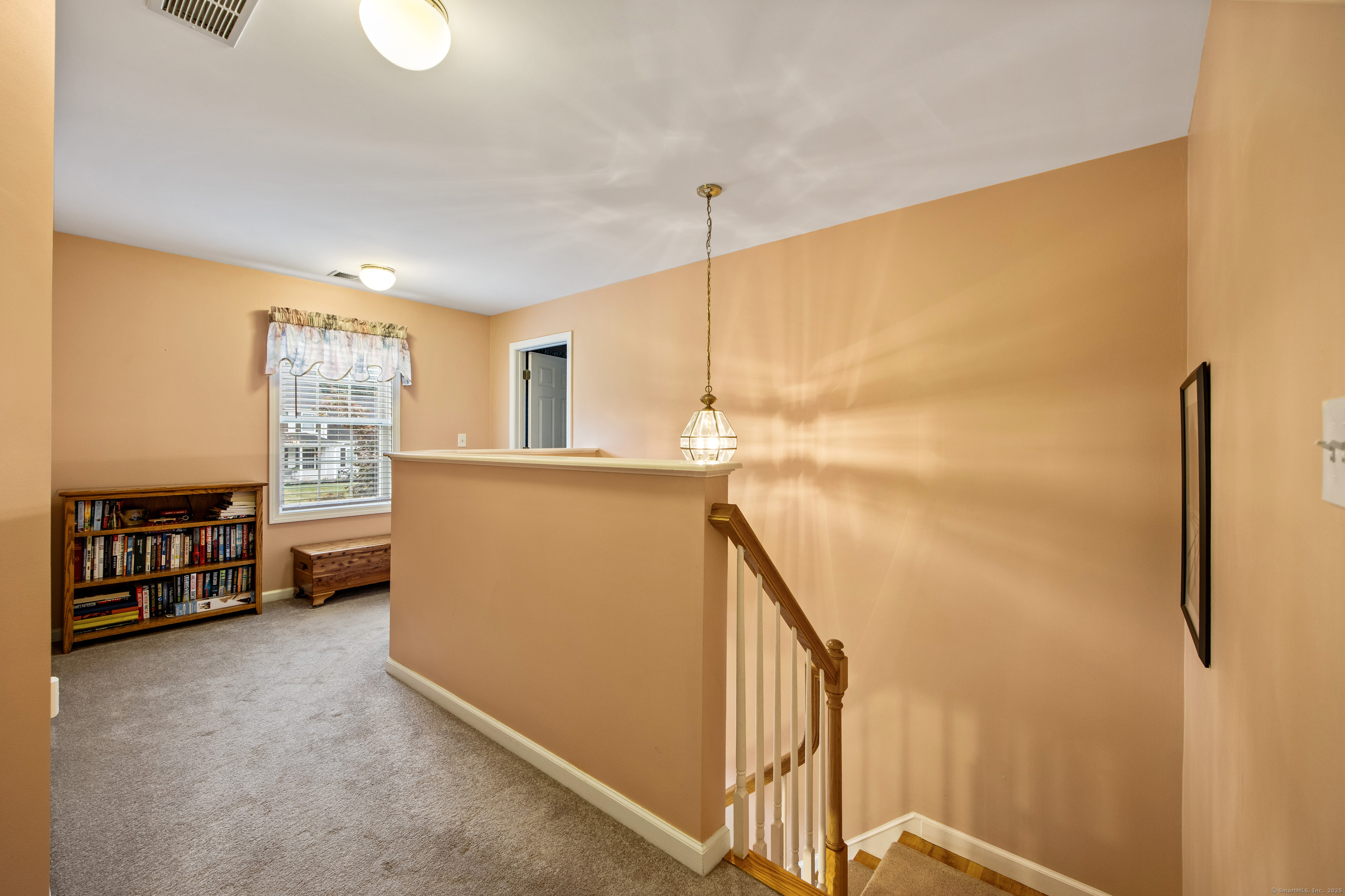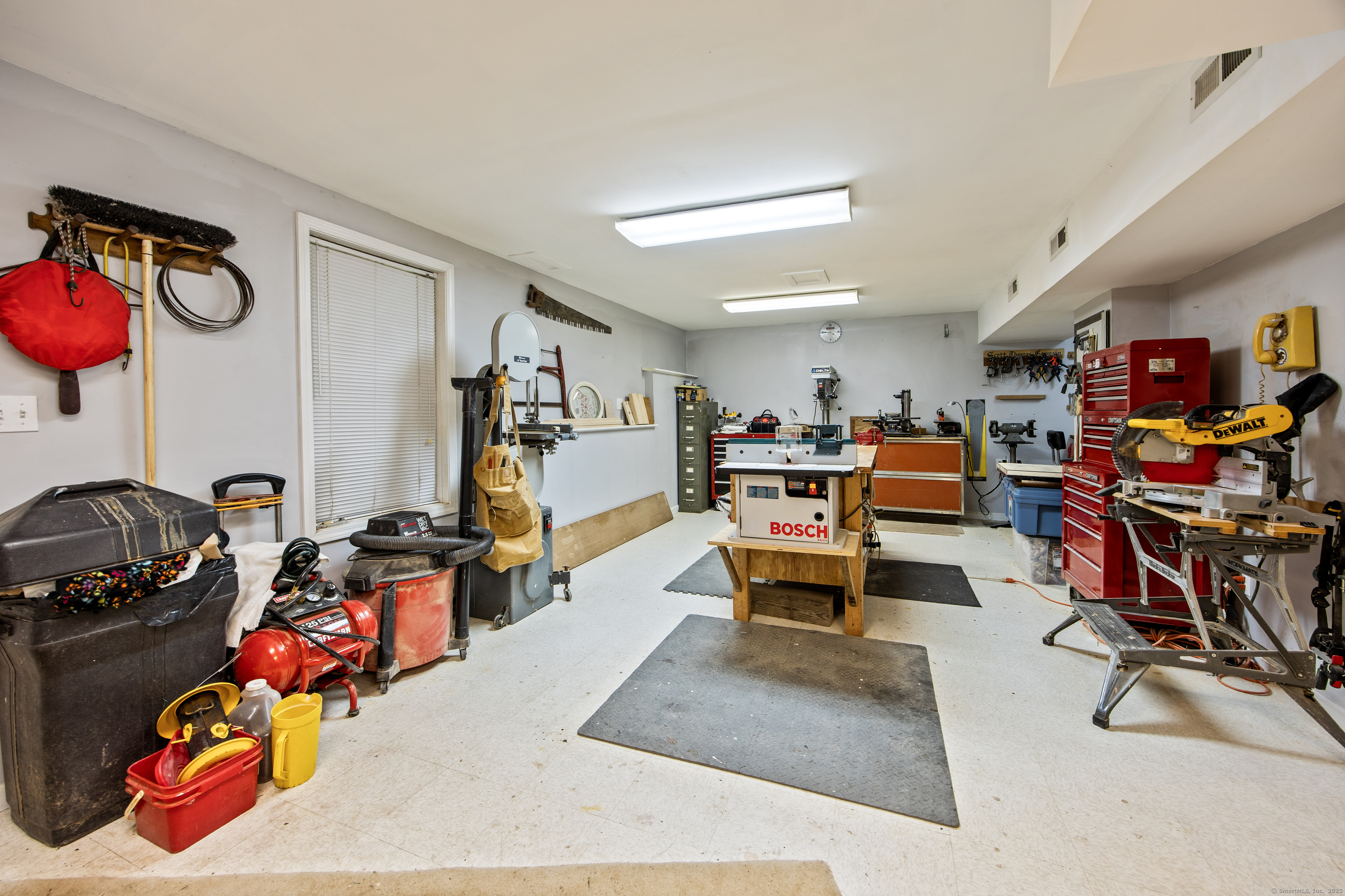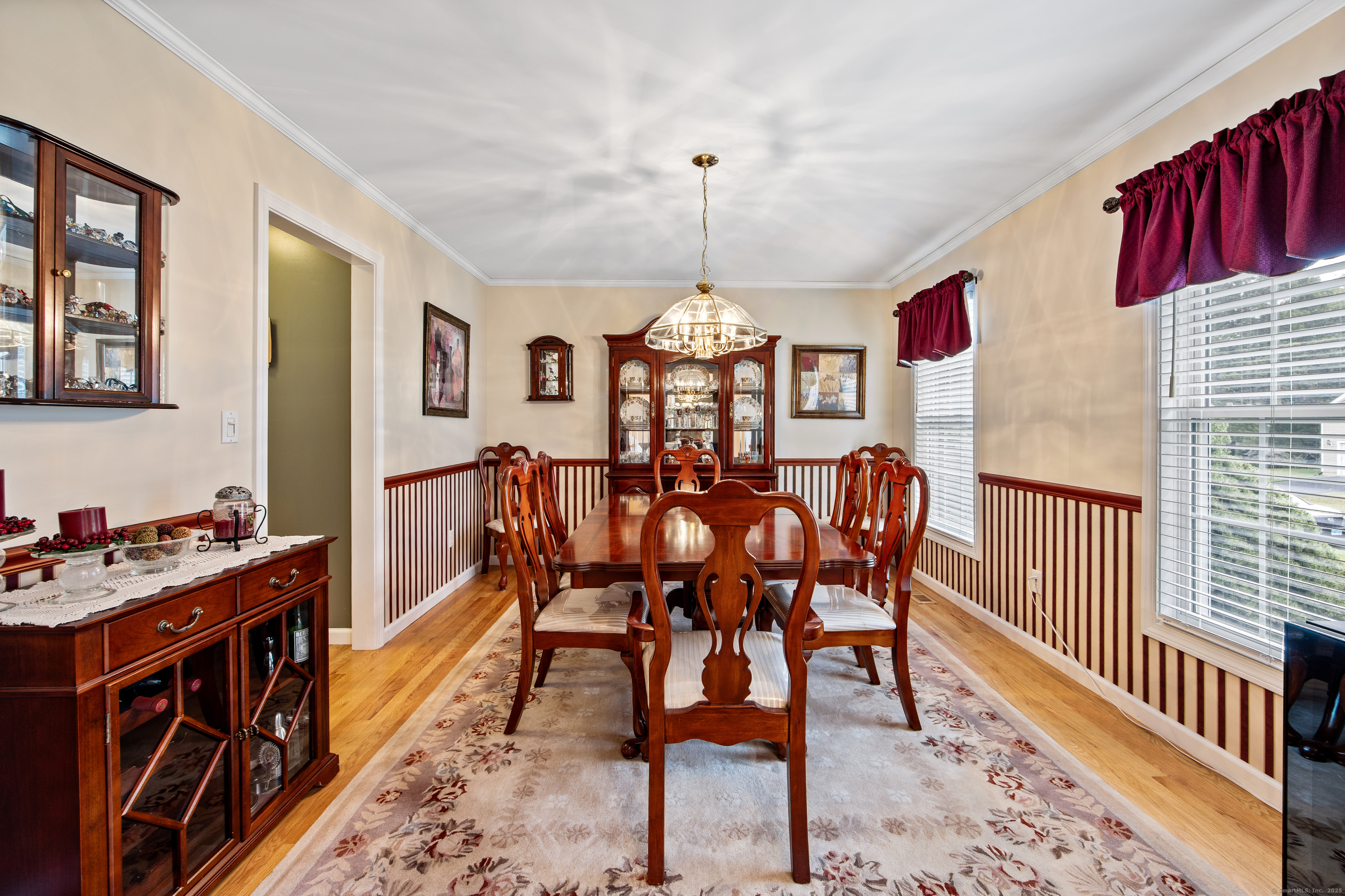 Welcome to this beautifully maintained Colonial, ideally situated on a quiet cul-de-sac within a six-home subdivision featuring underground utilities and sidewalks. Step inside through the foyer and into the bright kitchen, complete with white cabinetry, granite countertops, and stainless steel appliances, which opens seamlessly to the living room with a cozy wood-burning fireplace. Just off the kitchen, you'll find a mudroom, half bath, and a convenient laundry room. A formal dining room and additional living room complete the main level, offering plenty of space for both everyday living and entertaining. Upstairs, you'll find three generously sized bedrooms, a full bath, plus a spacious primary suite with its own full bathroom. The walkout basement adds an additional 610 s/f of heated and cooled finished space with a workshop, large storage area, and recreation area that's pre-plumbed for an additional bathroom. Outdoor living is a highlight with a large deck overlooking the private backyard- supported and designed with space for a hot tub. Updates include a new roof, newer central air conditioning system, newer oil tank, newer garage doors, gutters with leaf guards, and irrigation system ensuring peace of mind for years to come. Wallingford's electric grid for the best saving possible on energy as a resident! This move-in ready Colonial combines charm, comfort, and thoughtful updates in an attractive neighborhood setting. Don't miss this exceptional opportunity!