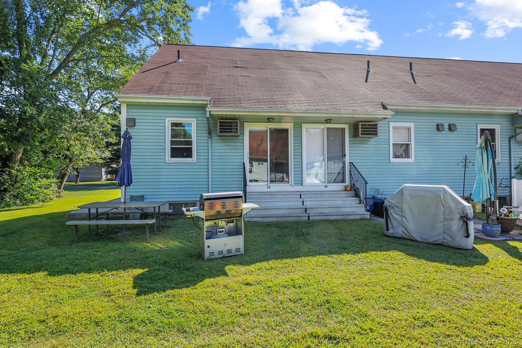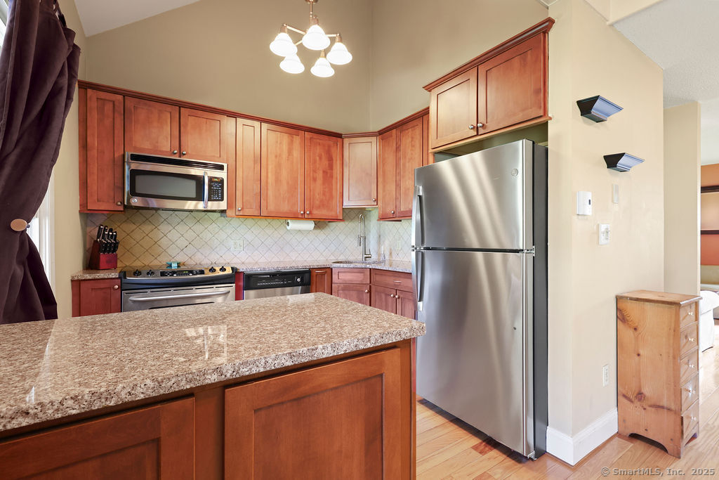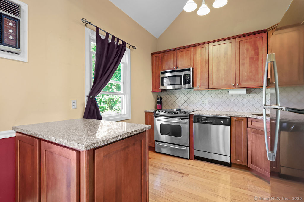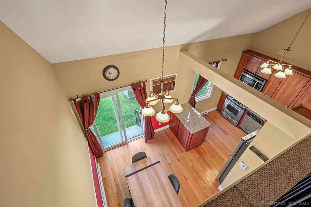 Welcome to 1776 in Ellington! This rarely available end-unit townhouse condo offers a perfect blend of comfort, convenience, and updates. Featuring 1 bedroom and 1 1/2 baths, this home has been thoughtfully maintained and modernized. Step inside to find a bright and inviting living room with plenty of natural light, an open flow, and easy access to your private outdoor space-ideal for relaxing or entertaining. The updated kitchen offers a functional layout with plenty of cabinet space and modern finishes. A convenient half bath on the main level adds everyday ease. Upstairs, the spacious primary suite includes a walk-in closet and a full updated bathroom. The lower level provides additional storage and laundry space, with potential for a workout area or office nook. As an end unit, this home enjoys extra privacy and green space while still benefiting from the community setting. The 1776 complex is well-maintained and professionally managed, with landscaped grounds and a desirable location close to shopping, dining, and highways for easy commuting. Enjoy the best of low-maintenance living with exterior maintenance, snow removal, and landscaping included in the condo fee. This turnkey property is a wonderful opportunity for first-time buyers, downsizers, or anyone seeking an updated condo in Ellington's sought-after 1776 community. Water and cable included in HOA fee!