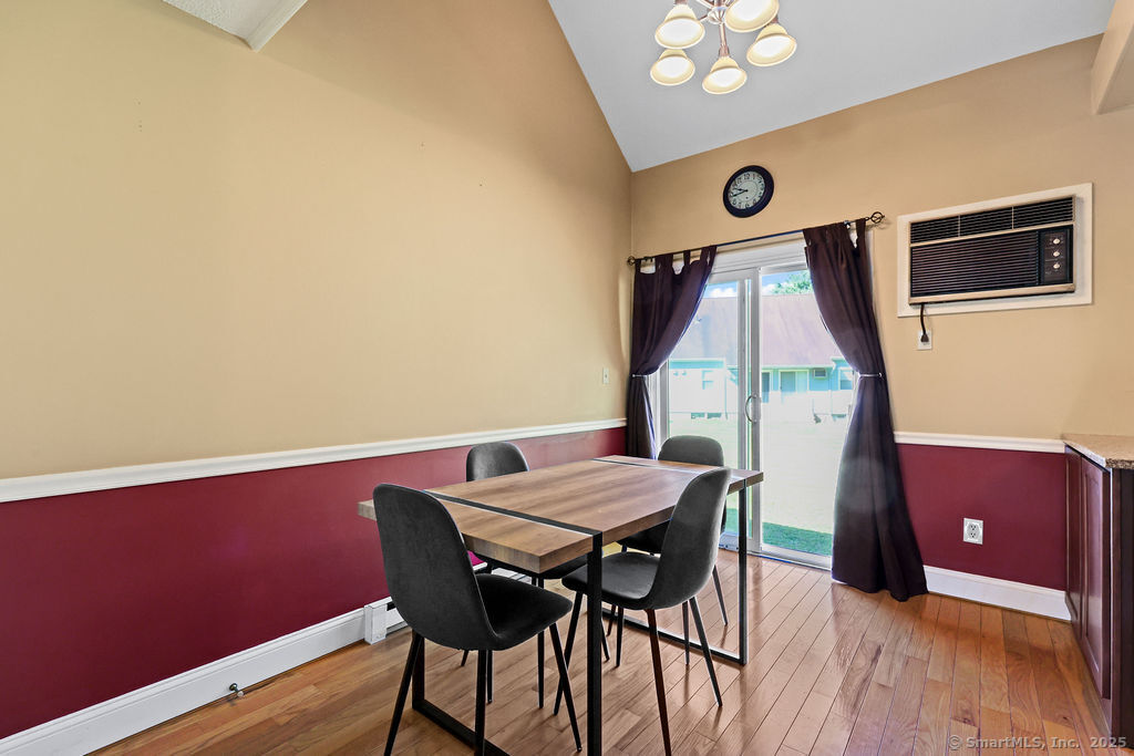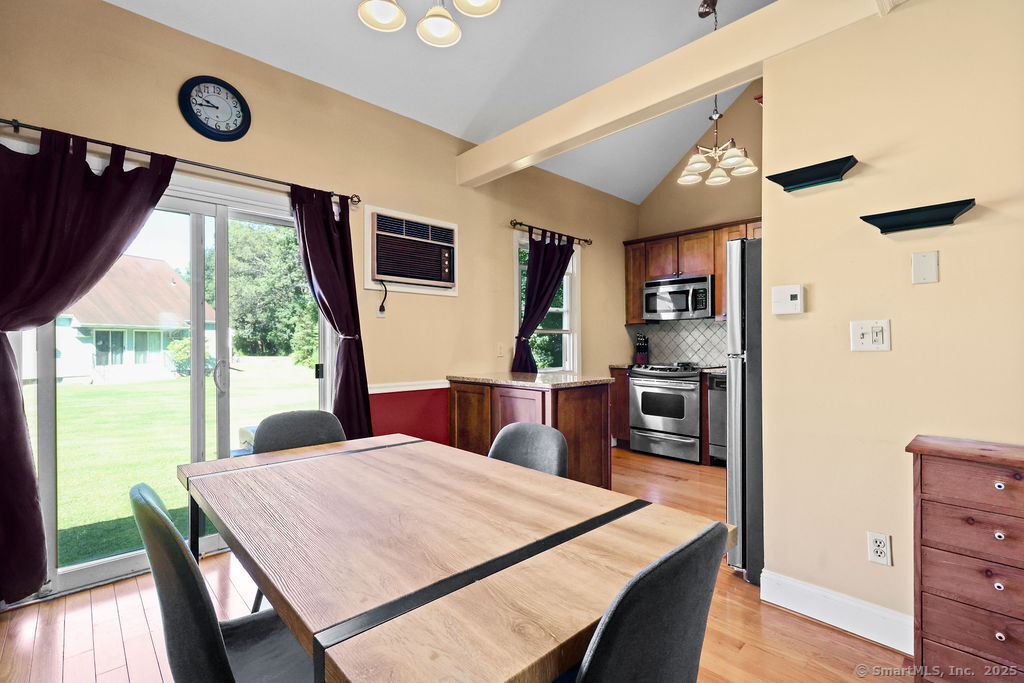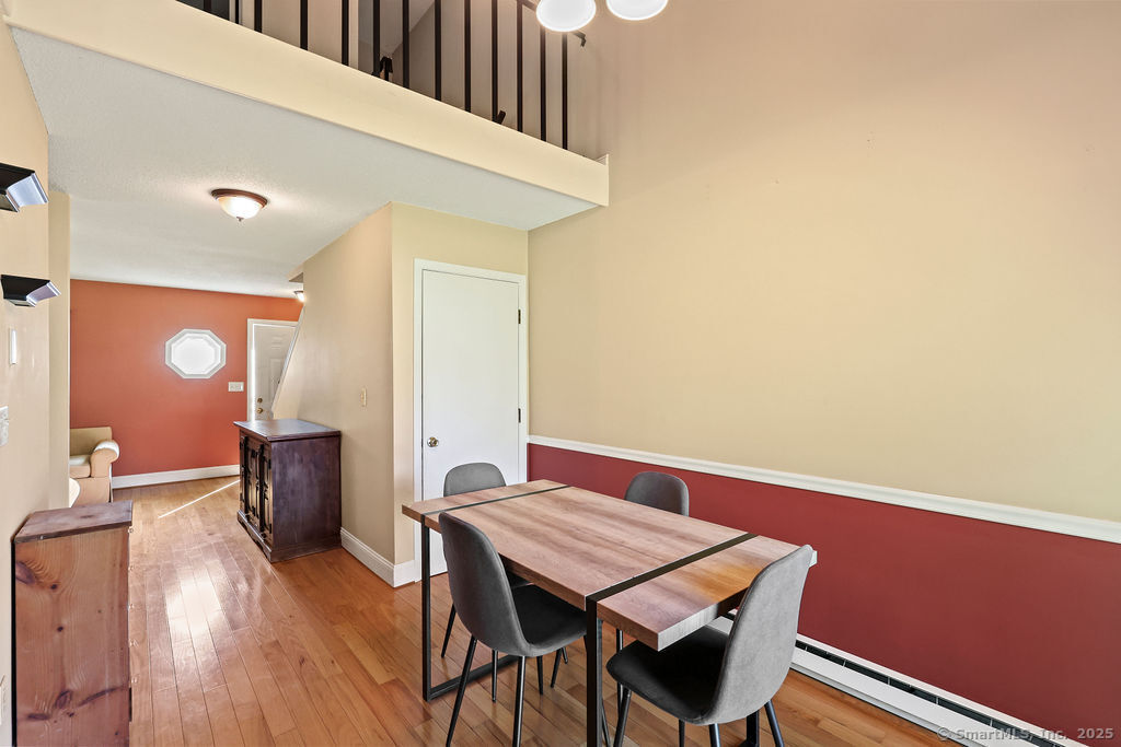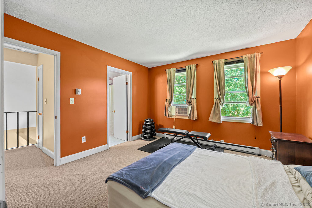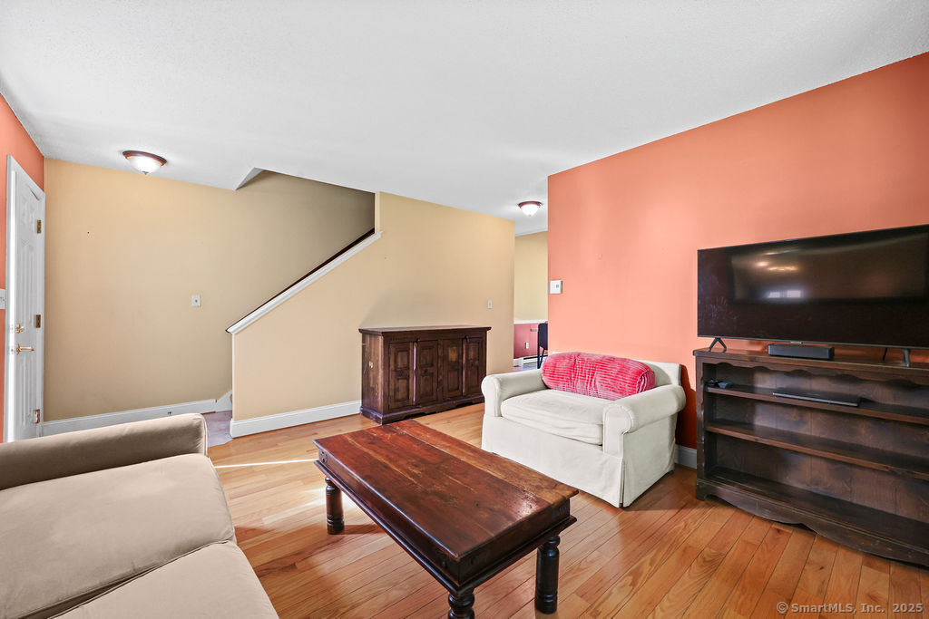 Welcome to 1776 in Ellington! This rarely available end-unit townhouse condo offers a perfect blend of comfort, convenience, and updates. Featuring 1 bedroom and 1 1/2 baths, this home has been thoughtfully maintained and modernized. Step inside to find a bright and inviting living room with plenty of natural light, an open flow, and easy access to your private outdoor space-ideal for relaxing or entertaining. The updated kitchen offers a functional layout with plenty of cabinet space and modern finishes. A convenient half bath on the main level adds everyday ease. Upstairs, the spacious primary suite includes a walk-in closet and a full updated bathroom. The lower level provides additional storage and laundry space, with potential for a workout area or office nook. As an end unit, this home enjoys extra privacy and green space while still benefiting from the community setting. The 1776 complex is well-maintained and professionally managed, with landscaped grounds and a desirable location close to shopping, dining, and highways for easy commuting. Enjoy the best of low-maintenance living with exterior maintenance, snow removal, and landscaping included in the condo fee. This turnkey property is a wonderful opportunity for first-time buyers, downsizers, or anyone seeking an updated condo in Ellington's sought-after 1776 community. Water and cable included in HOA fee!