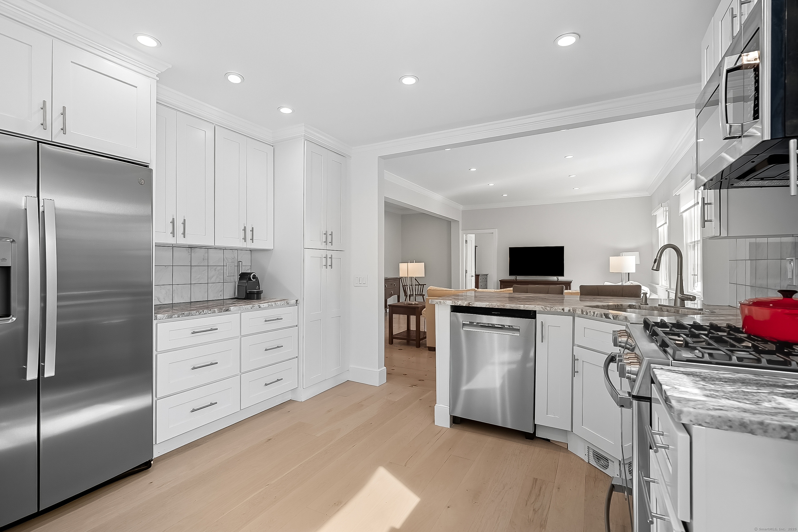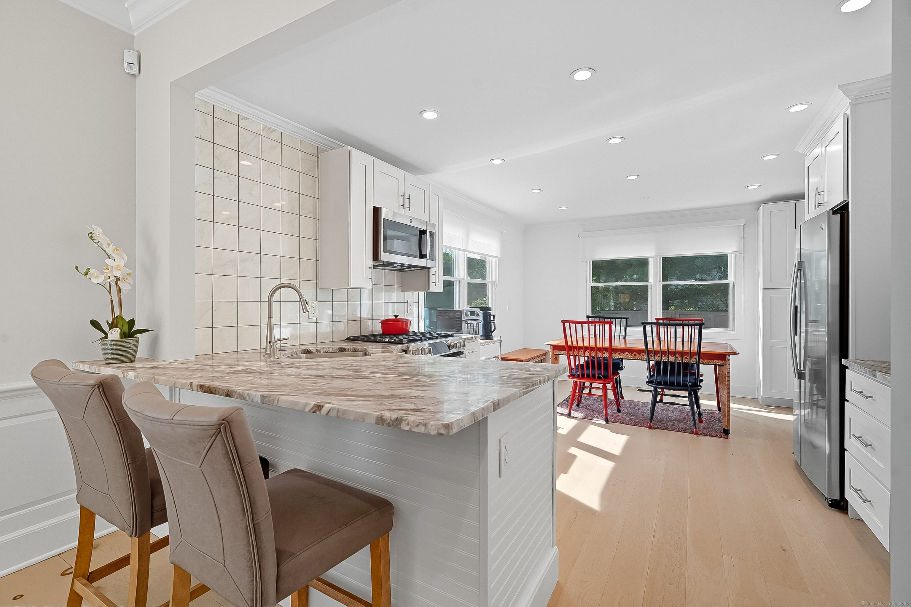 Light filled, updated, 3 bedroom condo with WATER VIEWS!! Corner Unit. Convenient location in Westport, off Riverside Avenue. Walkable to water, Post Rd, and elementary school! Only 1 mile to Westport Train Station. Updated Kitchen and Bathrooms, new appliances, wide plank floors, private Deck off Kitchen. 3 bedrooms plus Office/Den, 2 Bathrooms--all on one floor, easy living. All Kitchen appliances/washer less than 2 years old. Ducts and vents professionally cleaned in 2024. Freshly painted in neutral colors. Upgraded door hardware, hinges and hallway lighting. New furnace 2022. Roof new 2019. Amazing opportunity to get into Westport, in a great location, for under $1M!
