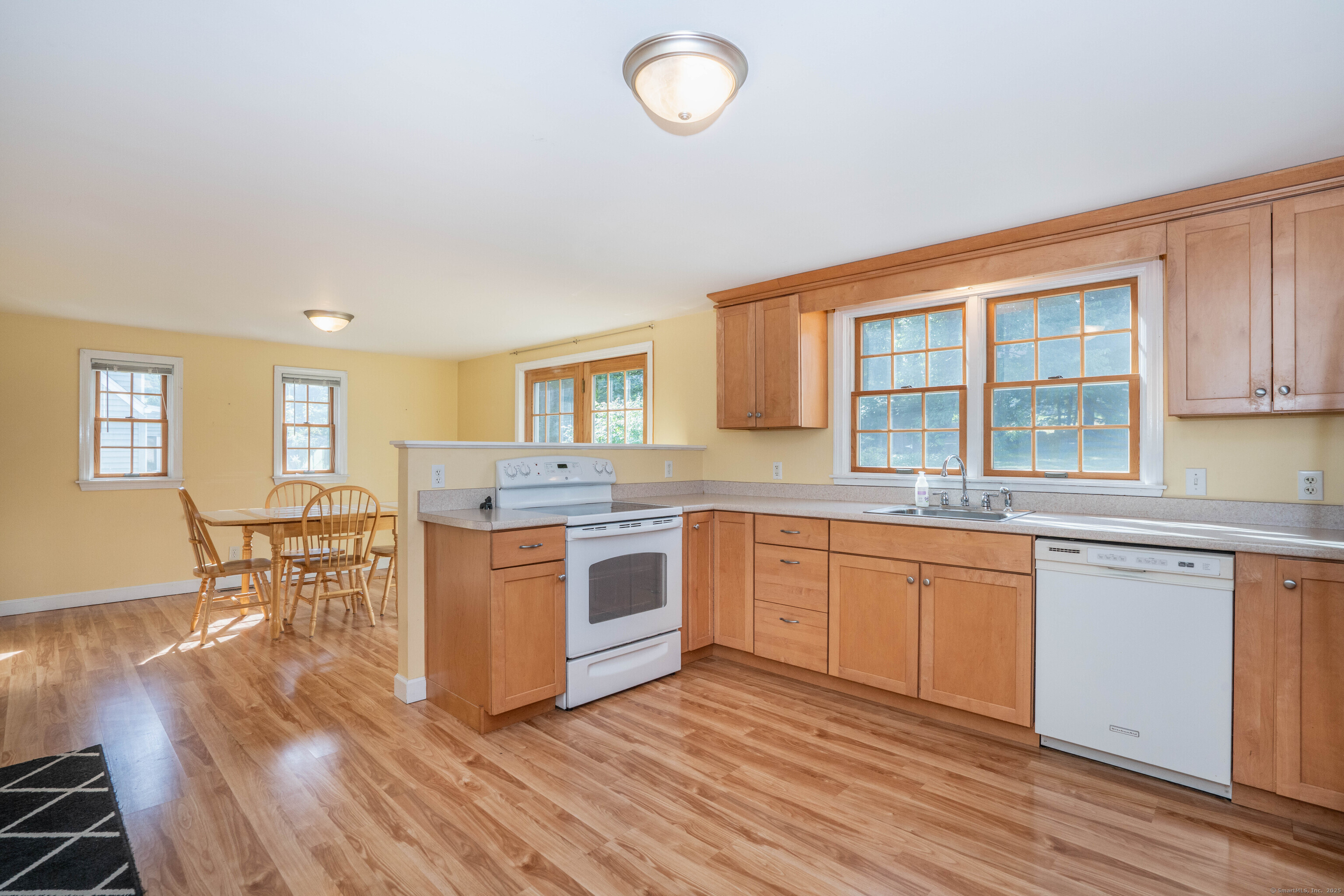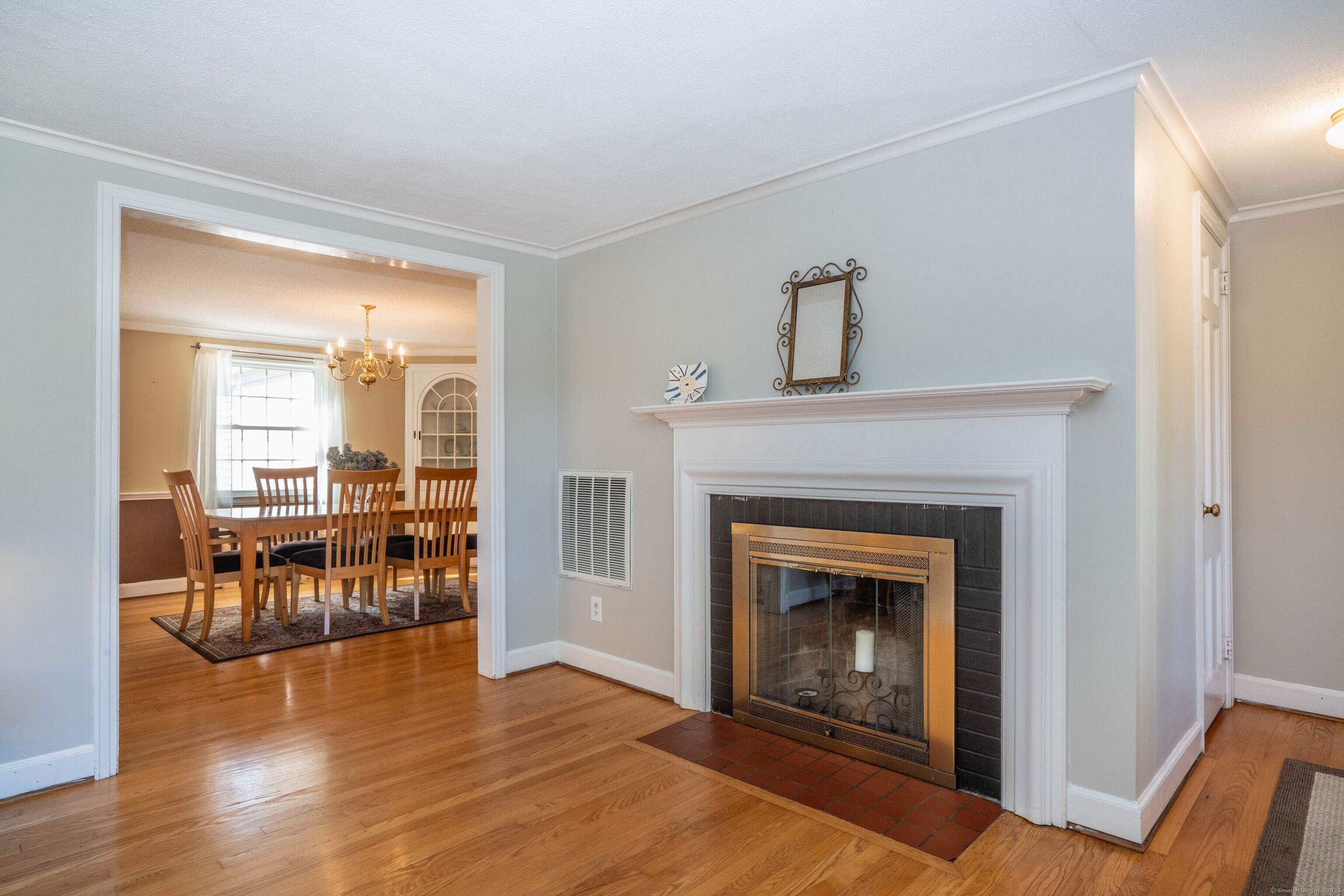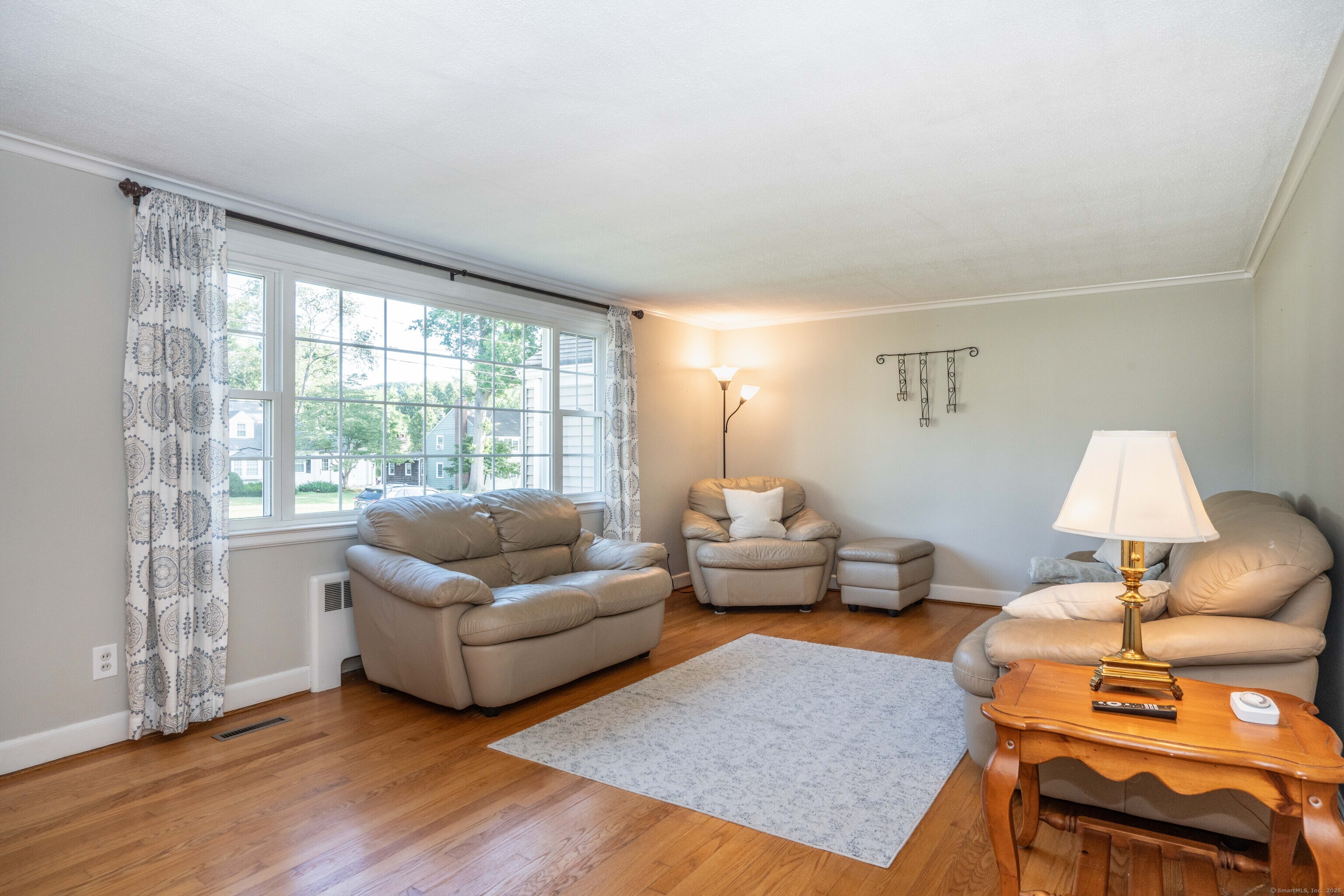 Nestled in the center of Newington, this charming ranch has everything you want! The whole house has hardwood floors to start. Add this to natural gas heat and central air, as well as 2 full baths and this could be your forever home! An extended primary bedroom with its own full bath offers almost a private wing. The living room opens into the dining area and the kitchen is very oversized with its own generous eat-in area. The spacious yard offers room for entertaining or sports and is in a neighborhood with sidewalks that connect you to downtown Newington. Minutes from restaurants, parks, shopping and CCSU.