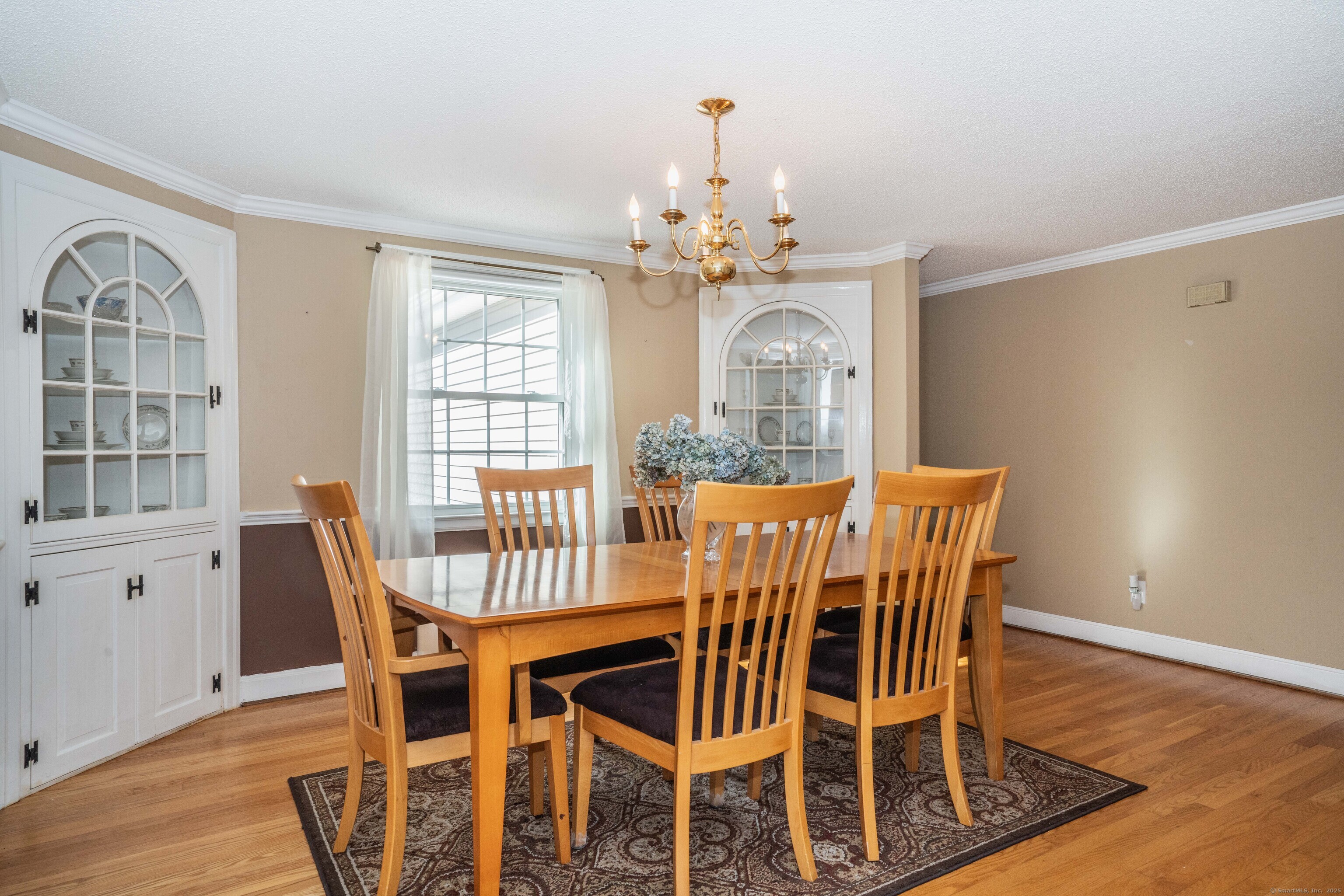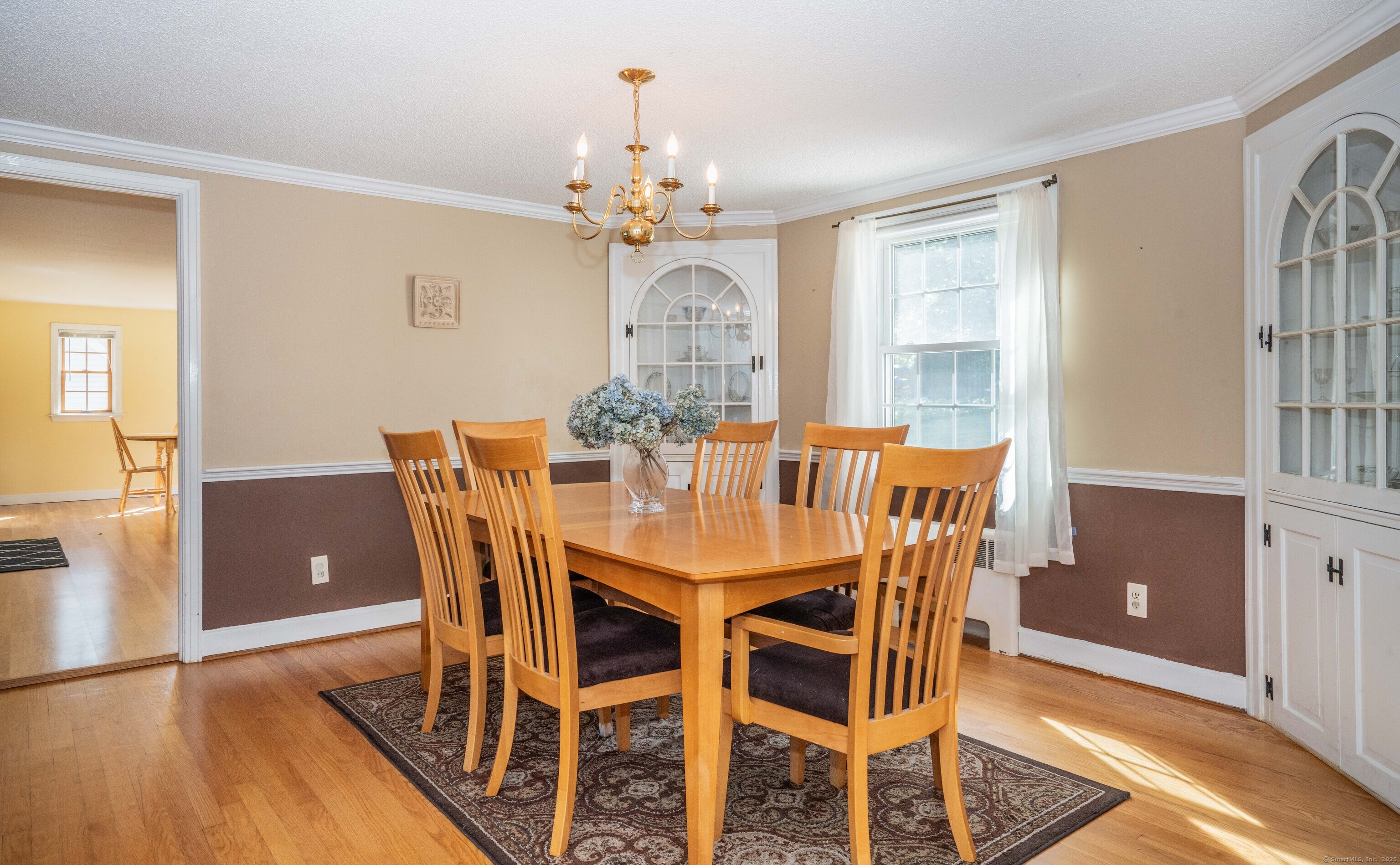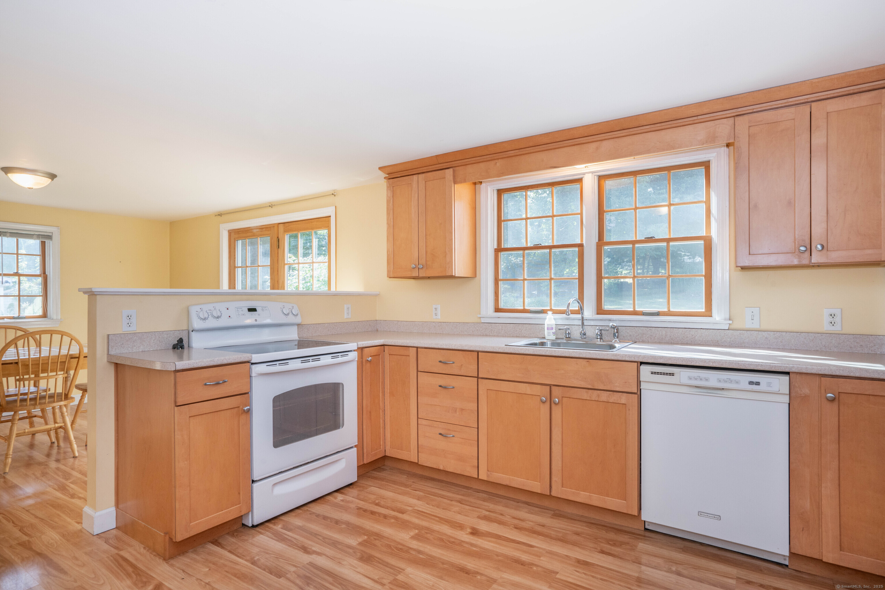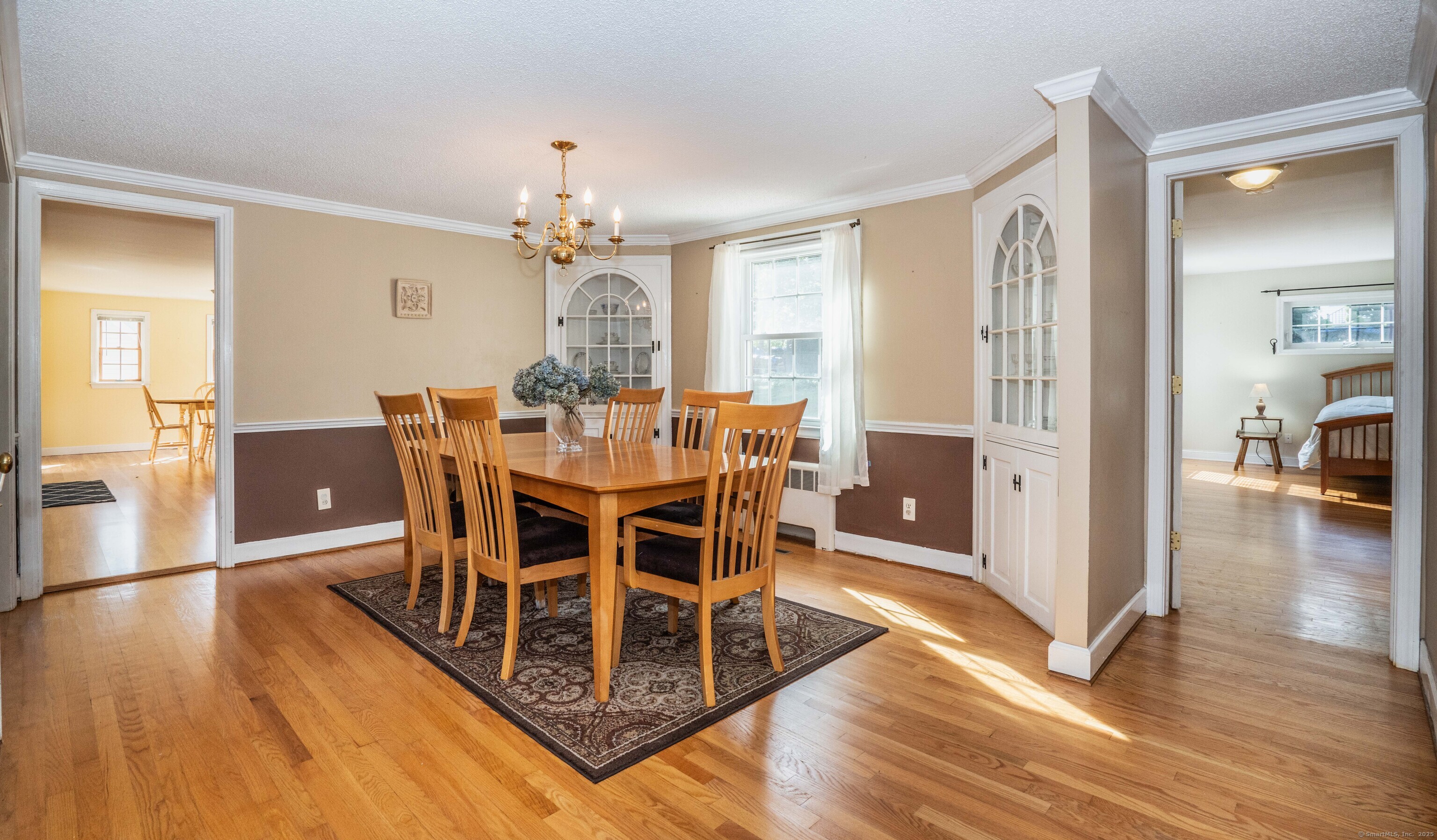 Nestled in the center of Newington, this charming ranch has everything you want! The whole house has hardwood floors to start. Add this to natural gas heat and central air, as well as 2 full baths and this could be your forever home! An extended primary bedroom with its own full bath offers almost a private wing. The living room opens into the dining area and the kitchen is very oversized with its own generous eat-in area. The spacious yard offers room for entertaining or sports and is in a neighborhood with sidewalks that connect you to downtown Newington. Minutes from restaurants, parks, shopping and CCSU.
