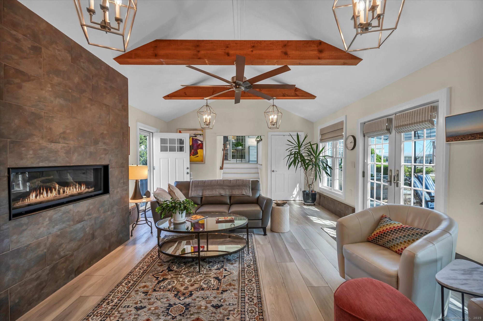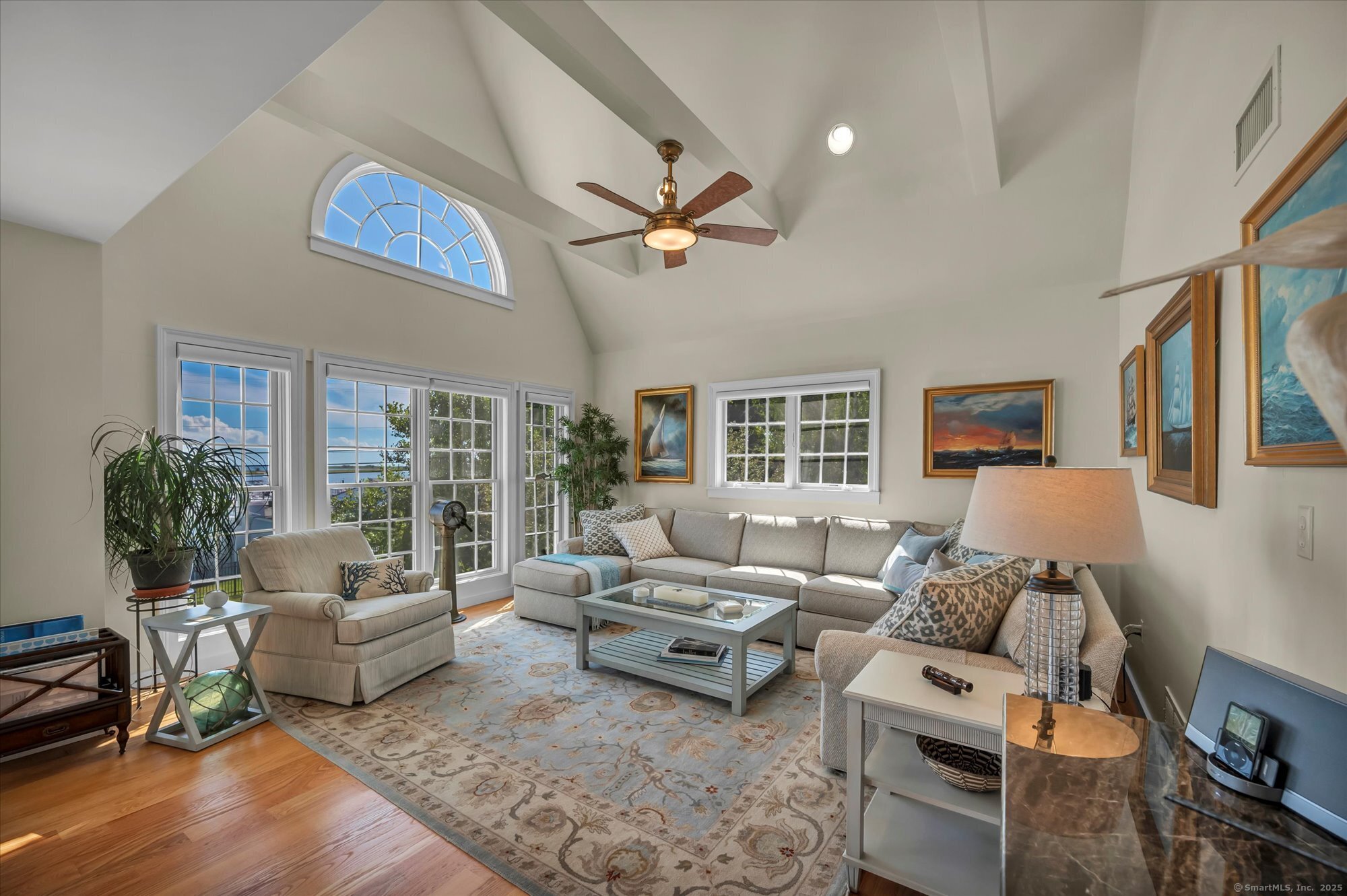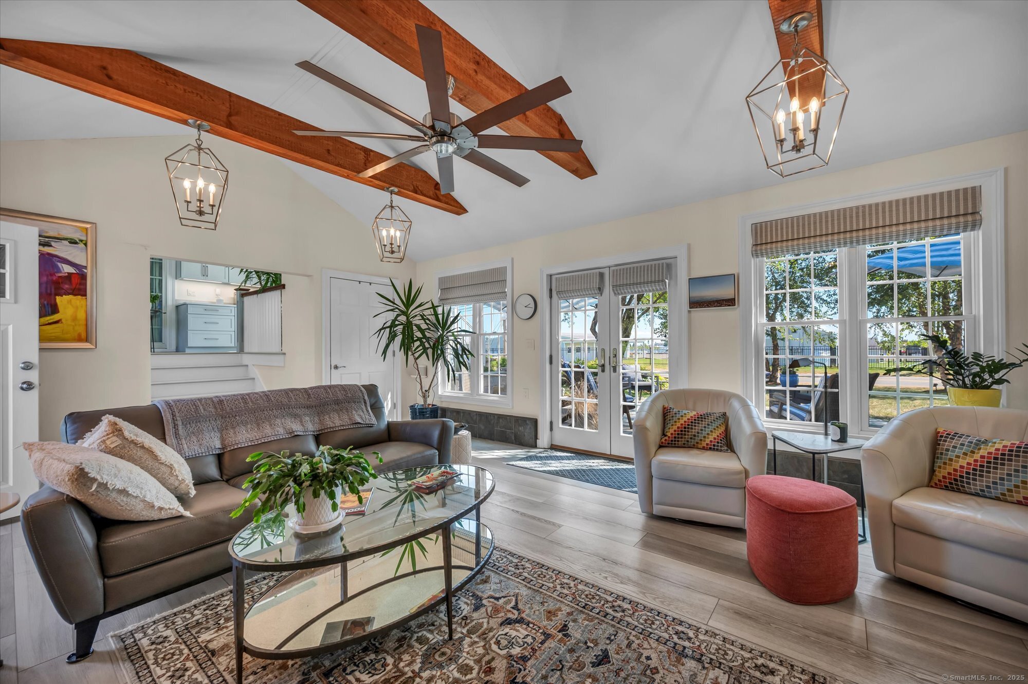 Coastal Living at Its Finest - Steps from Cedar Island Marina! Discover this rare coastal gem, fully remodeled and exquisitely custom-designed. Ideal location for boating enthusiasts, nature-lovers and for those who enjoy casual entertaining. Flooded with natural light and serene water views, the home offers effortless elegance and comfort. The open-concept kitchen features a large center island, custom cabinetry, newer appliances including Wolf gas oven range, coffee/beverage bar, and laundry area. Hardwood floors flow throughout, connecting a cozy dining room with wood-burning fireplace, a sunlit family room with gas fireplace, and a flexible home office or third bedroom. Upstairs, the primary suite a tranquil retreat with soaring ceilings, spa-like bath, walk-in closet & the HUGE living room, all w/gleaming hardwood floors and beautiful WATER VIEWS! A spiral staircase leads to a third-floor flex space-perfect for a gym, studio, or game room. Outside, enjoy two patios overlooking parklike grounds & mature gardens on a level .36-acre corner lot, ideal for summer gatherings or quiet mornings. Extras include an oversized two-car garage with finished loft, basement, and storage shed. Located in a peaceful neighborhood near downtown Clinton, beaches, restaurants, and parks-this home blends coastal serenity with everyday convenience. Don't miss this one-of-a-kind opportunity to live the coastal lifestyle you've dreamed of!