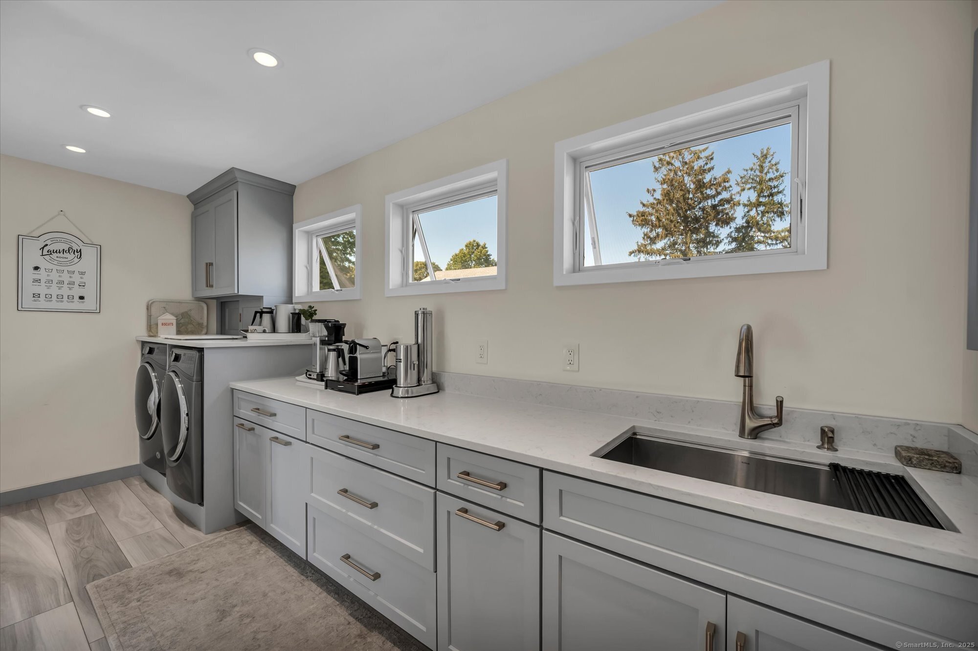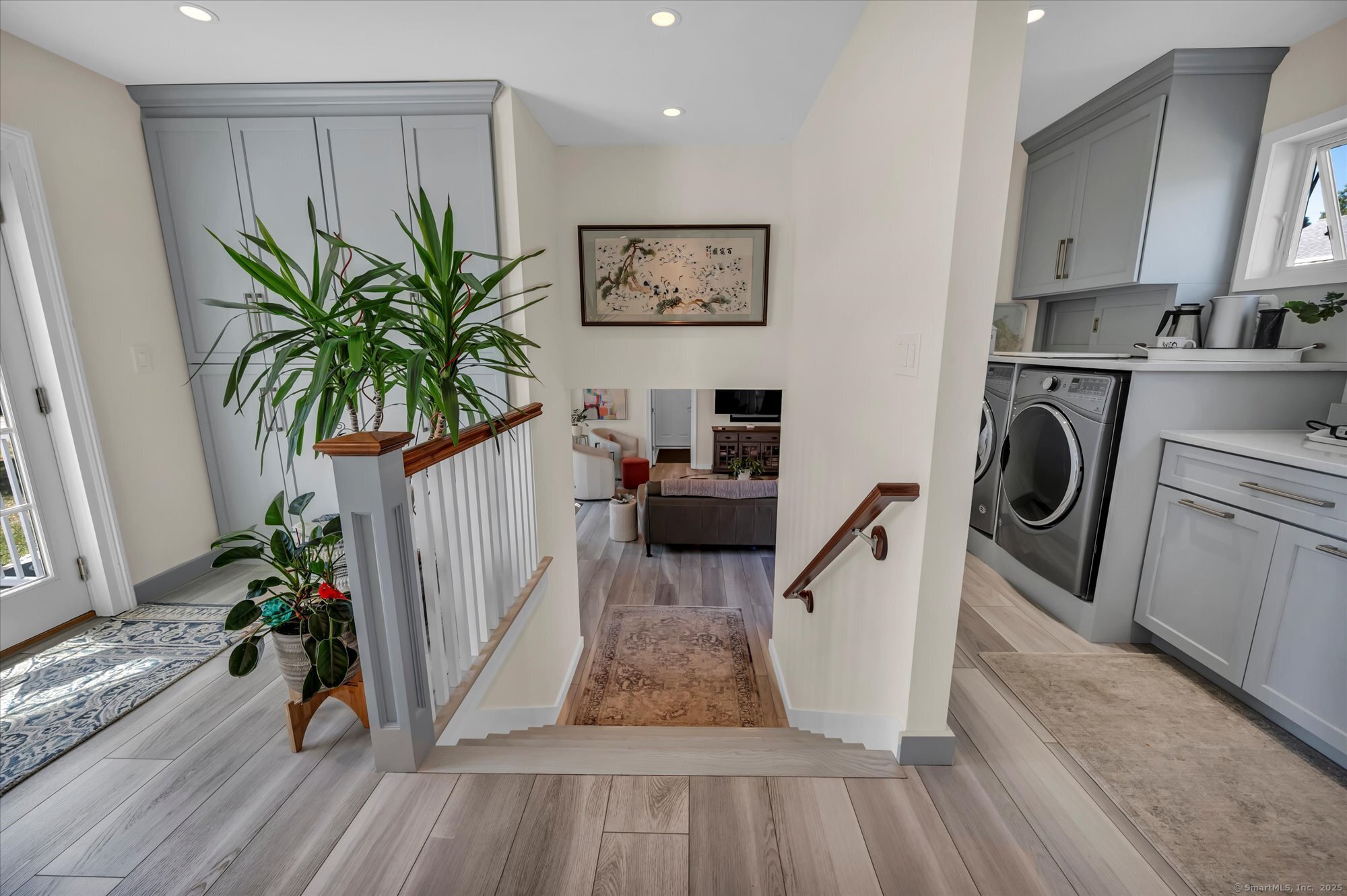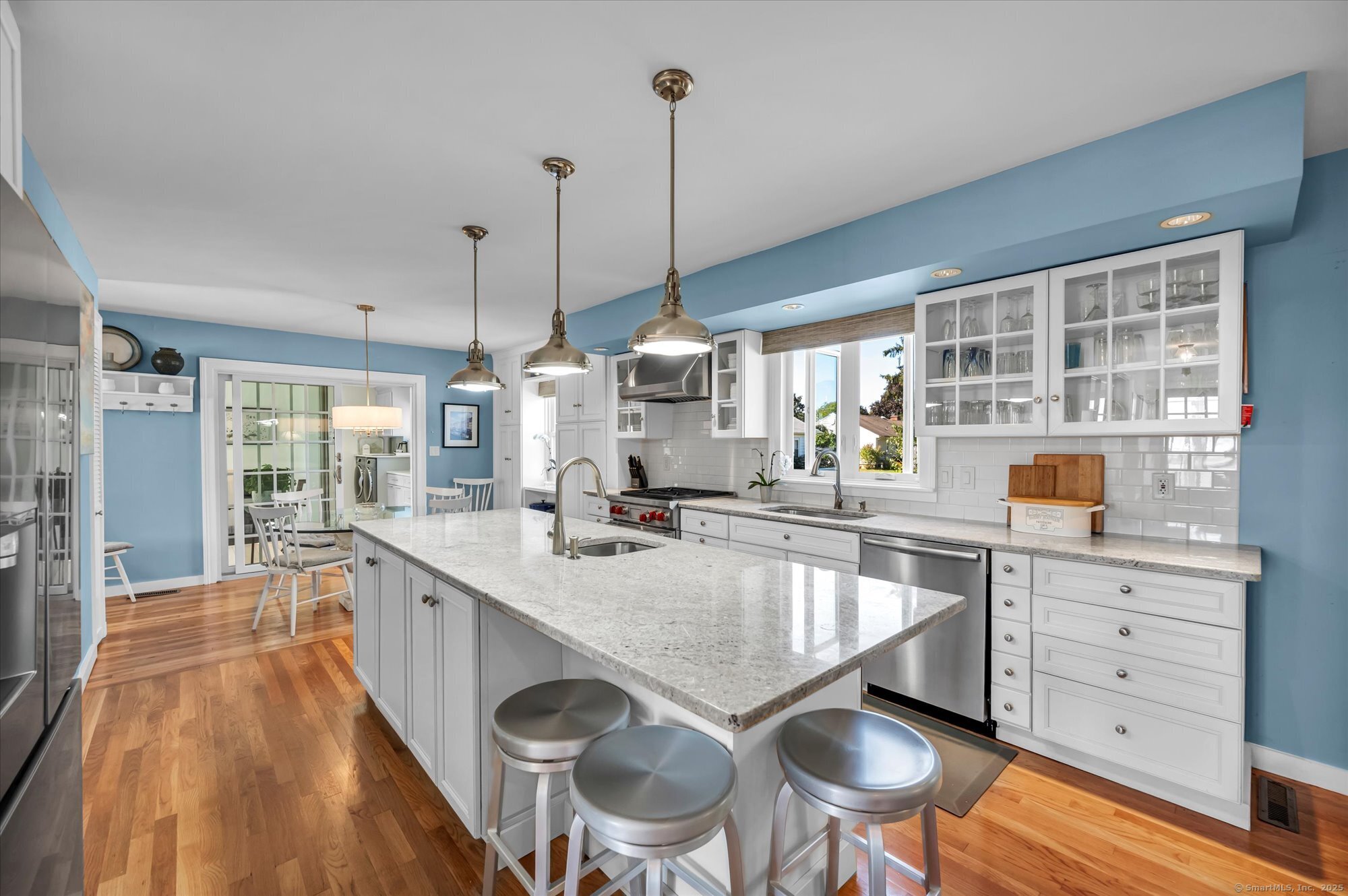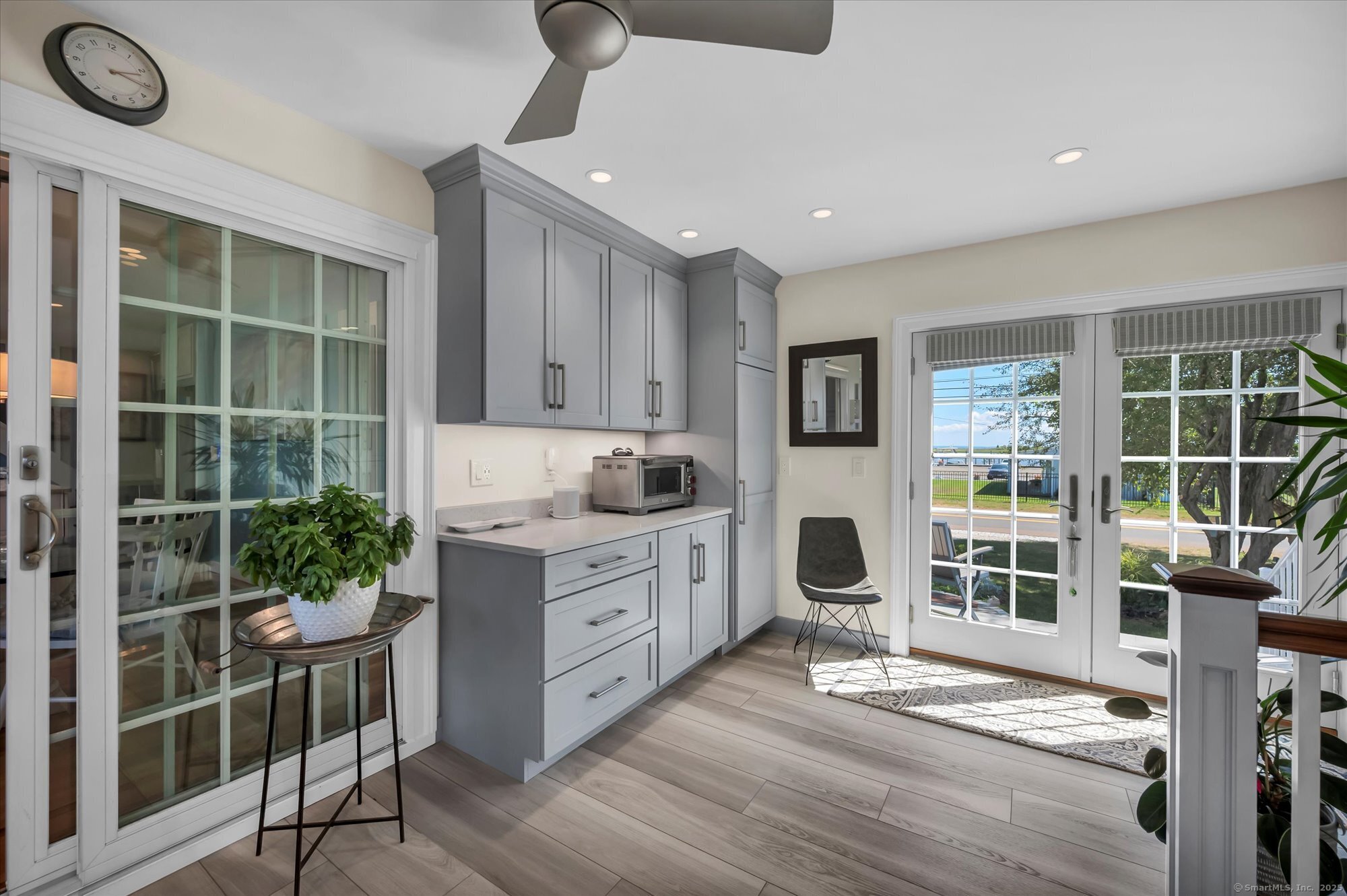Coastal Living at Its Finest - Steps from Cedar Island Marina! Discover this rare coastal gem, fully remodeled and exquisitely custom-designed. Ideal location for boating enthusiasts, nature-lovers and for those who enjoy casual entertaining. Flooded with natural light and serene water views, the home offers effortless elegance and comfort. The open-concept kitchen features a large center island, custom cabinetry, newer appliances including Wolf gas oven range, coffee/beverage bar, and laundry area. Hardwood floors flow throughout, connecting a cozy dining room with wood-burning fireplace, a sunlit family room with gas fireplace, and a flexible home office or third bedroom. Upstairs, the primary suite a tranquil retreat with soaring ceilings, spa-like bath, walk-in closet & the HUGE living room, all w/gleaming hardwood floors and beautiful WATER VIEWS! A spiral staircase leads to a third-floor flex space-perfect for a gym, studio, or game room. Outside, enjoy two patios overlooking parklike grounds & mature gardens on a level .36-acre corner lot, ideal for summer gatherings or quiet mornings. Extras include an oversized two-car garage with finished loft, basement, and storage shed. Located in a peaceful neighborhood near downtown Clinton, beaches, restaurants, and parks-this home blends coastal serenity with everyday convenience. Don't miss this one-of-a-kind opportunity to live the coastal lifestyle you've dreamed of!