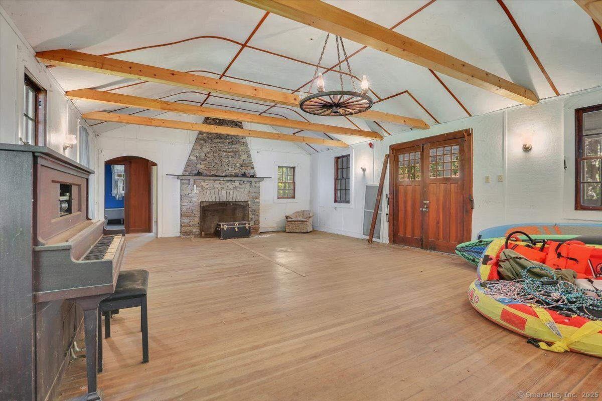 One-of-a-kind opportunity to own 16.39AC of lakefront property with over 700ft. of waterfrontage and 2 houses on COVENTRY LAKE! The primary home is over 5000sq.ft with 8 spacious rooms, 4 fireplaces, 4 generously sized bedrooms- including a primary bedroom suite on each level. This iconic lakefront home has everything a lake house needs to make lifetime memories! The large family room w/ stone fireplace, spacious remodeled kitchen with center island and dry bar, game room and big bedrooms will accommodate your family and friends! Large windows capture the beauty of the stone walls and stairway that lead to the arbor & flower beds that adorn the back yard. The front to back game room boasts a wood burning brick fireplace and atrium doors leading to the back patio and front porch. The 1st floor primary bedroom suite features HW floors, fireplace, full bath with jetted tub and walk-in shower, walk in closet and access to a covered side porch. A half bath, dining room and butler's pantry complete the 1st fl. The 2nd primary bedroom suite with full bath, 2 more spacious bedrooms and another full bath are on the 2nd level. The oversized 3 bay garage has a 2nd floor w/ electricity. An extensive remodel included new kitchen, flooring, windows, sheetrock, plumbing, light & heating fixtures, paint and more. Also included is a 1920's cottage, which has a large living room, 3 bedrooms and 2 full baths, waiting for you to restore it to its full glory.