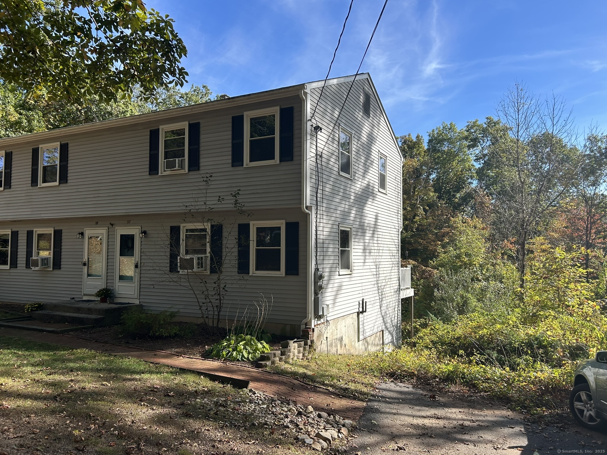 LOVE THE BEST OF BOTH WORLDS! EASE OF CONDO LIVING MIXED WITH A SINGLE FAMILY LIFESTYLE IN THE COUNTRY. NO FEES OR MANAGEMENT COMPANY! ~A TRUE RARE FIND~HALF DUPLEX SET UP FOR THIS 2 UNIT COMPLEX: CURRENTLY OWNED AND MANAGED BY SAME OWNERS. NO RULES. ASSOCIATION HAS BEEN TO SHARE COMMON EXPENSES: LAWN, SEPTIC PUMPING, YARD WORK 50/50. 50YEAR ARCH SHINGLE ROOF 2021. LEASED MO TO MO. TOWNHOUSE SET UP, END UNIT. FIRST FLOOR WITH WOOD FLOORING. DINING SPACE WITH SLIDERS TO 8X10 COMPOSITE DECK OVERLOOKS PRIVATE LOT! KITCHEN WITH GRANITE TILE COUNTERS, SS APPLIANCES, BREAKFAST BAR/ PENINSULA. HALF BATH, HALLWAY WITH COAT CLOSET. UPSTAIRS IS CARPETED WITH TWO SIZEABLE BEDROOMS, AMPLE CLOSETS AND FULL BATH WITH SHOWER, TILED FLOORING AND TUB/ SHOWER. A WALKKOUT FULL BASEMENT HAS EXPANSION POTENTIAL! FIND THE LAUNDRY ROOM AND UTILITIES HERE. 57+ 59 SHARE THE ONE WELL AND SEPTIC SYSTEM. LIMITED SHOWING ACCECSS TIMES FOR OCCUPANTS SCHEDULE. NO PET RESTRICTION. BOTH SIDES OWN THE LAND THE PROPERTY IS ON. POTENTIAL TO ADD ON OR ADD A GARAGE WITHIN TOWN GUIDELINES AND APPROVAL. AIRLINE TRAIL HEAD JUST 300 FEET AWAY. GORGEOUS KLOTER FARMS SHED 2022- HAS 10 YEAR WARRANTY. NEW CHIMNEY LINER '24. BOTH SIDES FOR SALE: BUY BOTH AND RUN THE HOA OR CONVERT TO 2 FAMILY!