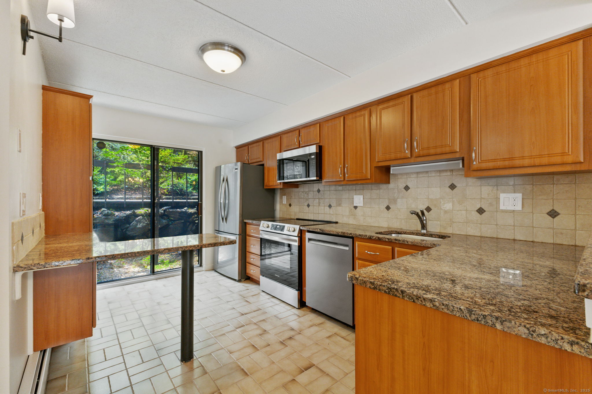 Welcome to your cozy haven at 12 Glenville Street, Unit 108 in Greenwich, CT! This spacious 1-bedroom, 2.1-bath retreat boasts 1,860 square feet of endless possibilities. Nestled in the River Run Association, enjoy breathtaking views of the waterfall and stream from your balcony off the first floor. The home features an updated kitchen with new appliances and a detached garage for your convenience. Your full finished lower level includes a walkout sitting area. Embrace the tranquility and charm of this special home, perfect for creating cherished memories! Sale is subject to probate approval. Tax Card is One Bedroom