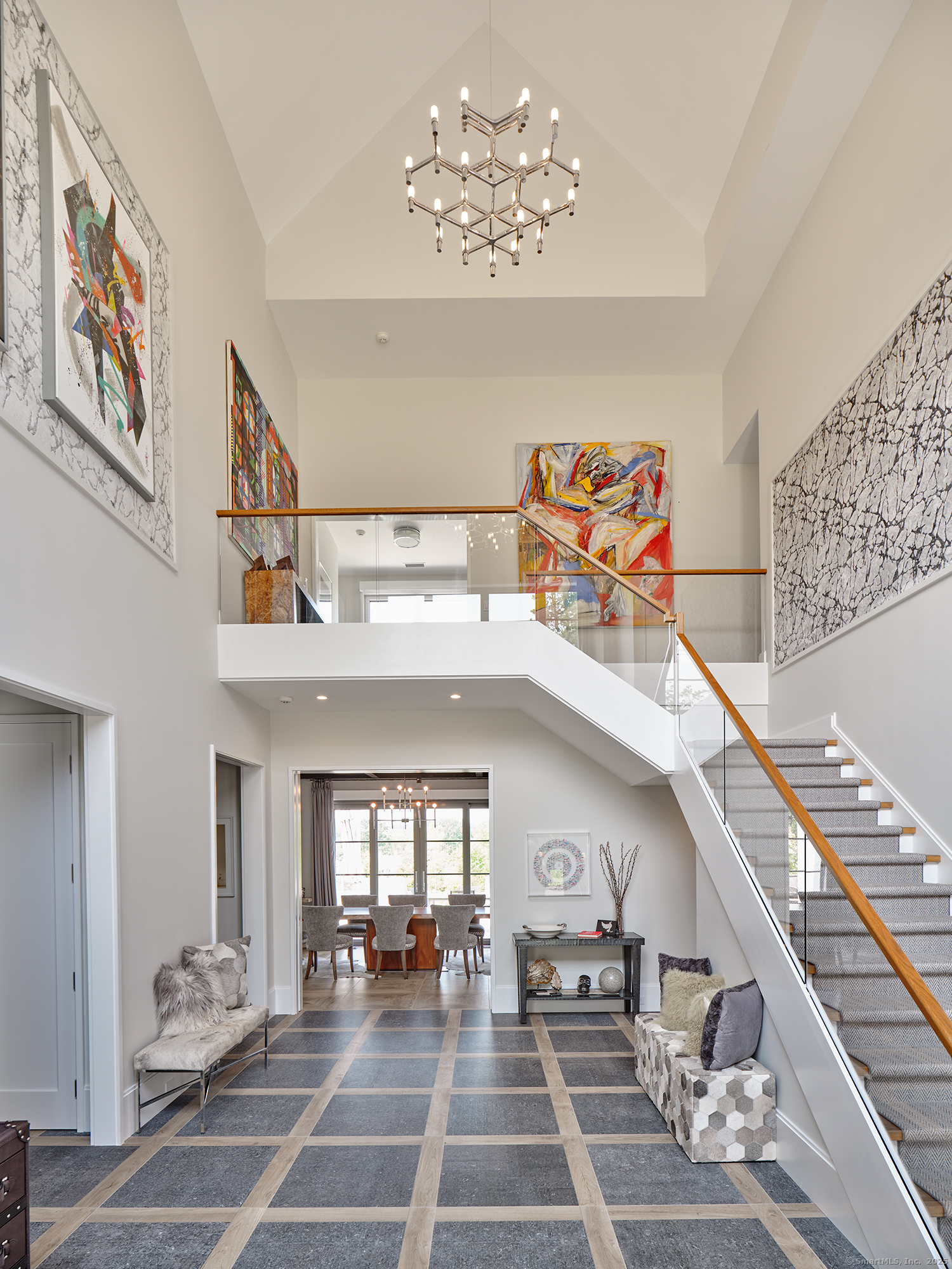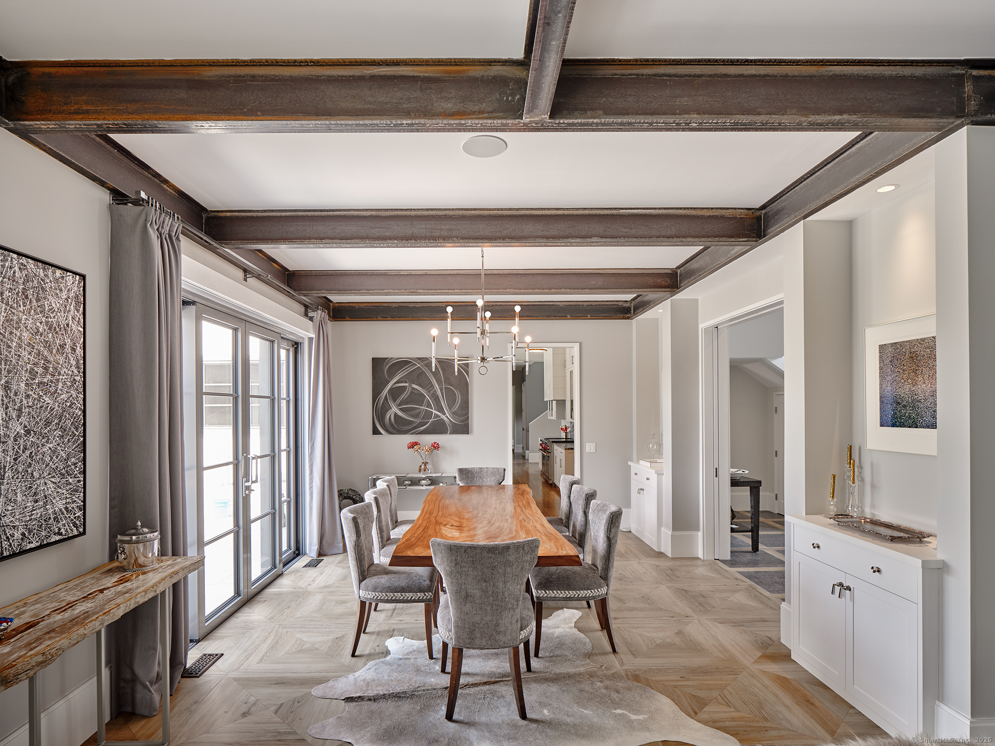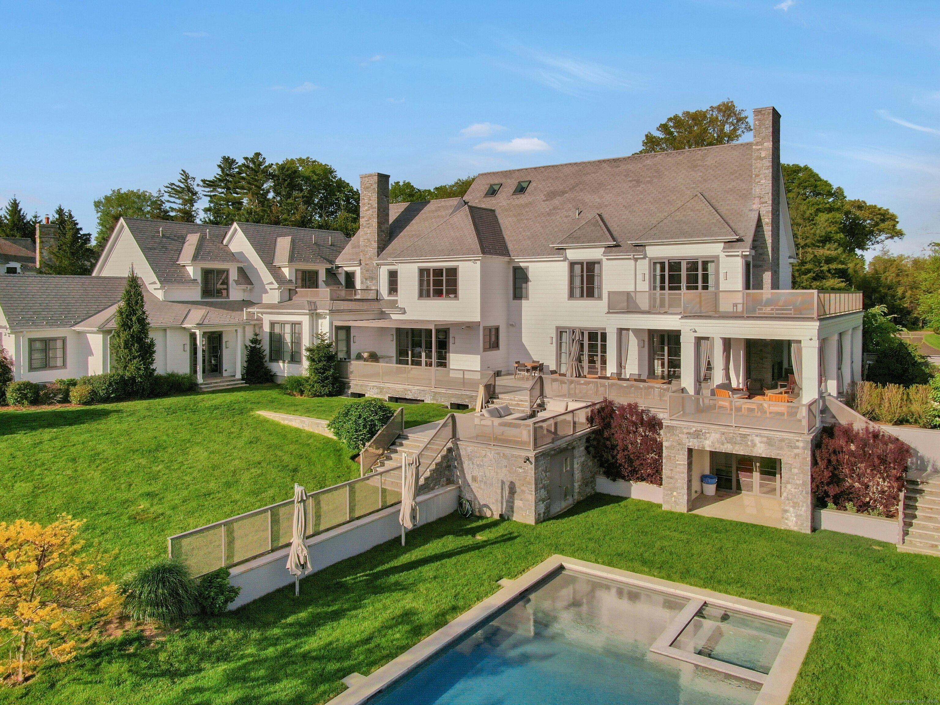 Sited on over two acres of private, west-facing land in the heart of Greenwich's coveted Golden Triangle, this architectural modern masterpiece commands attention. Designed in collaboration with renowned architect William D. Earls, this 11,000+ sq ft six-bedroom estate showcases timeless design, masterful craftsmanship, and refined sophistication. Completed in 2018, the residence blends bold contemporary lines with warm, livable elegance. Inside, soaring ceilings, dramatic steel-framed windows, and sunlit open spaces create an extraordinary sense of volume and light. The chef's kitchen is a showpiece, featuring Sub-Zero, Wolf, and Bosch appliances, HR Woodworking custom cabinetry, and bespoke finishes throughout. The luxurious primary suite serves as a serene retreat, featuring a spa-like bath, dual dressing rooms, fireplace, a private terrace, and sweeping sunset views. Expansive walls of glass open to a resort-style backyard with a Groppa saline pool and spa, sculpted gardens designed by Joseph Pajonas Studio and multiple terraces offering the ultimate in indoor-outdoor living and entertaining.