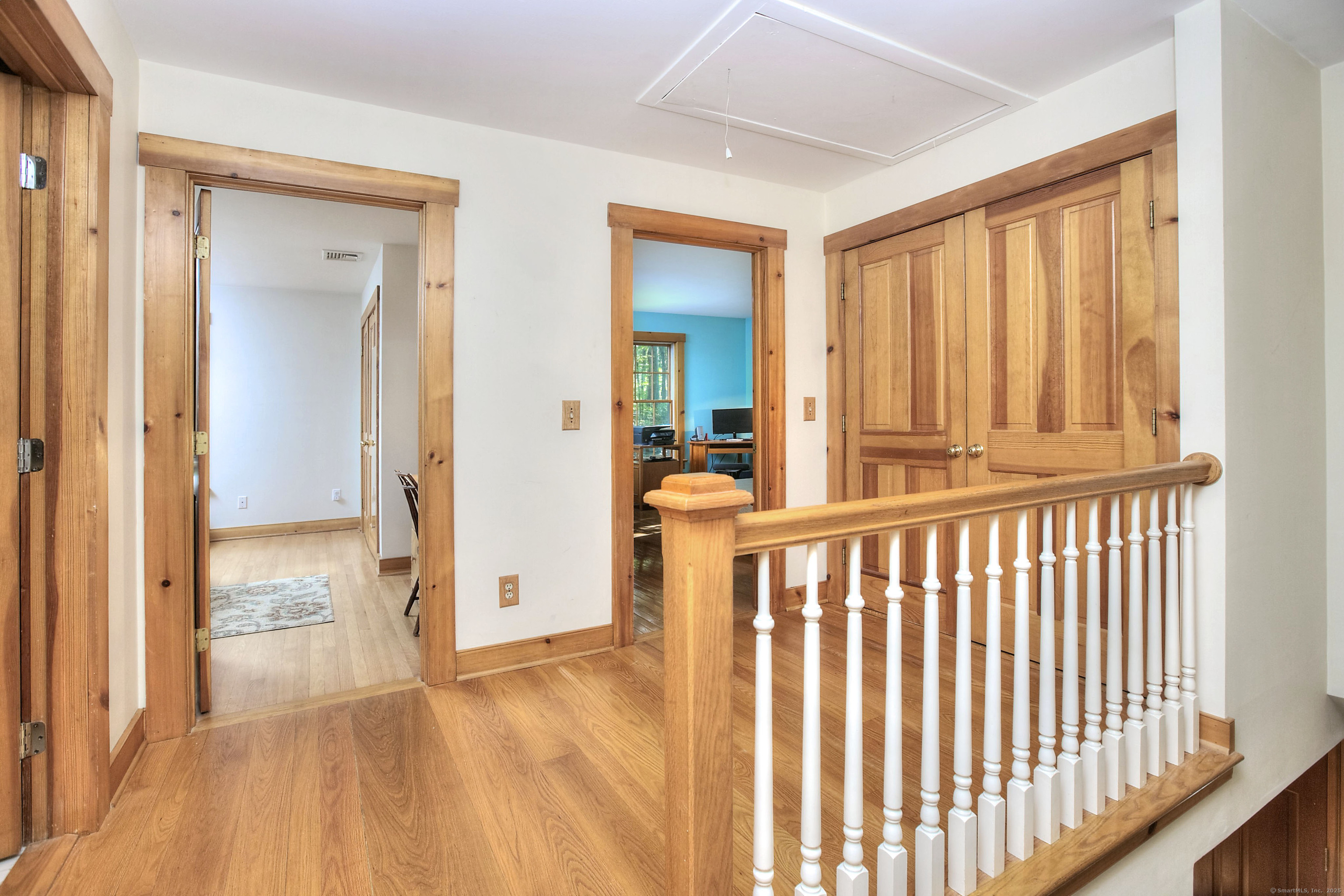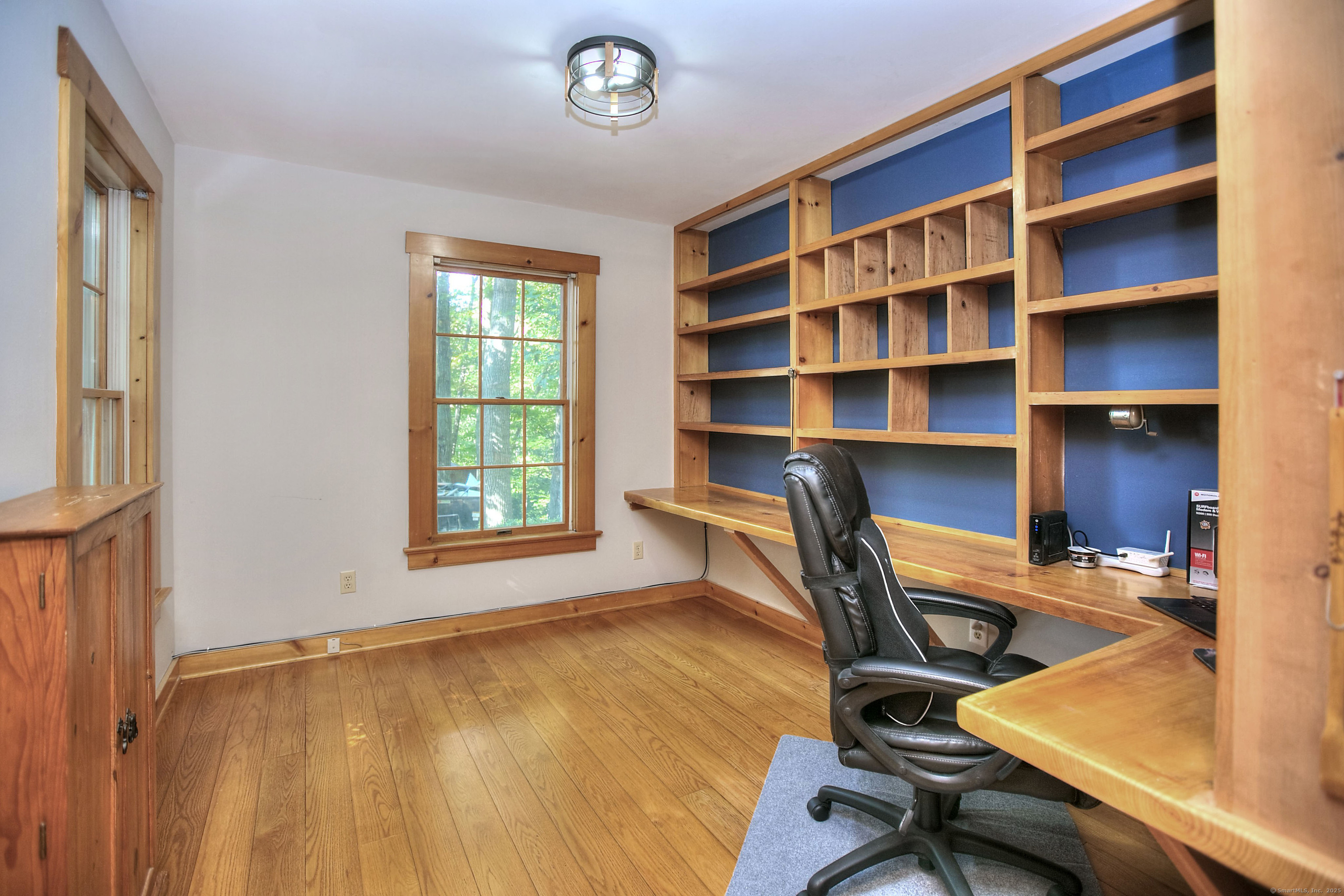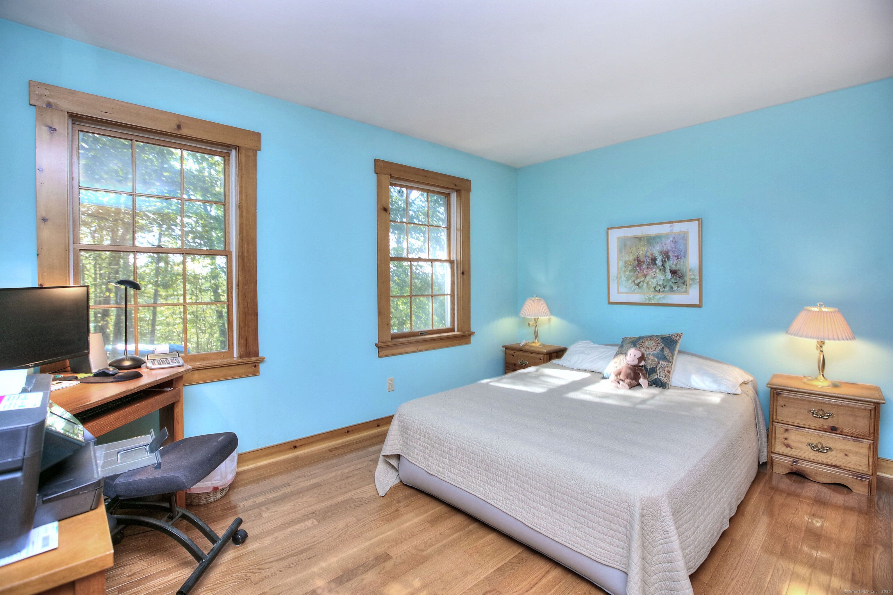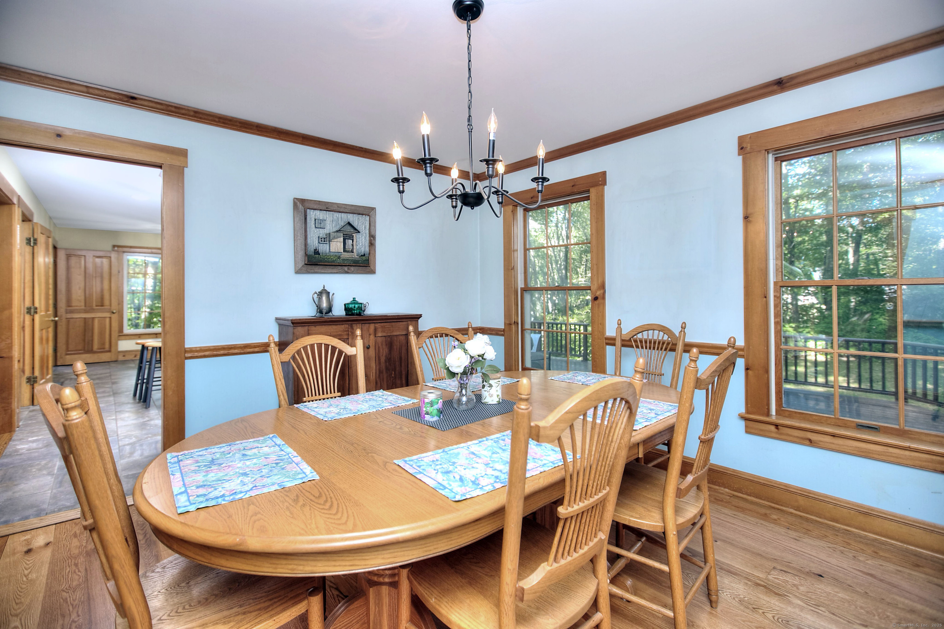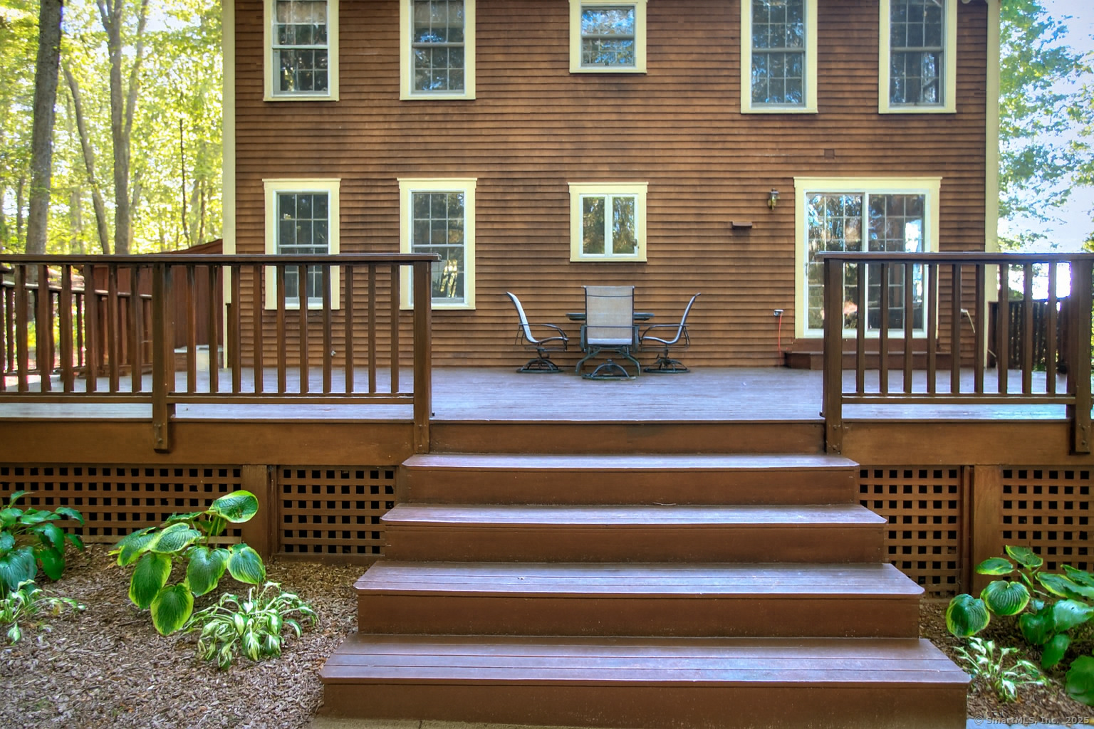 For the first time on the market, this farmhouse colonial was built by its carpenter/builder owner and has been exceptionally maintained. Nestled in a serene cul-de-sac neighborhood, the home blends timeless craftsmanship with modern updates, including a brand new 2024 roof, newer furnace, central A/C, hardwood floors throughout, whole house generator hook-up, and super insulation. The first floor features a spacious eat-in kitchen with an island for extra counter space and storage, a formal dining room with oversized windows, a cozy family room with a wood burning stove/fireplace, and a custom-built home office. Upstairs are three generously sized bedrooms, laundry, and two full baths. The primary suite offers a jacuzzi tub, walk-in shower, linen closet, vaulted ceiling, and his and her closets. An oversized attic provides additional storage. The finished lower level includes a full bath and two large rooms, currently used as an exercise room and a movie room. Outdoor living shines with an extra large deck for gatherings, sunset views, mature landscaping, and peaceful wooded surroundings. Many outbuildings for extra storage needs. With its central yet private location, this is a rare opportunity to own a truly special home.