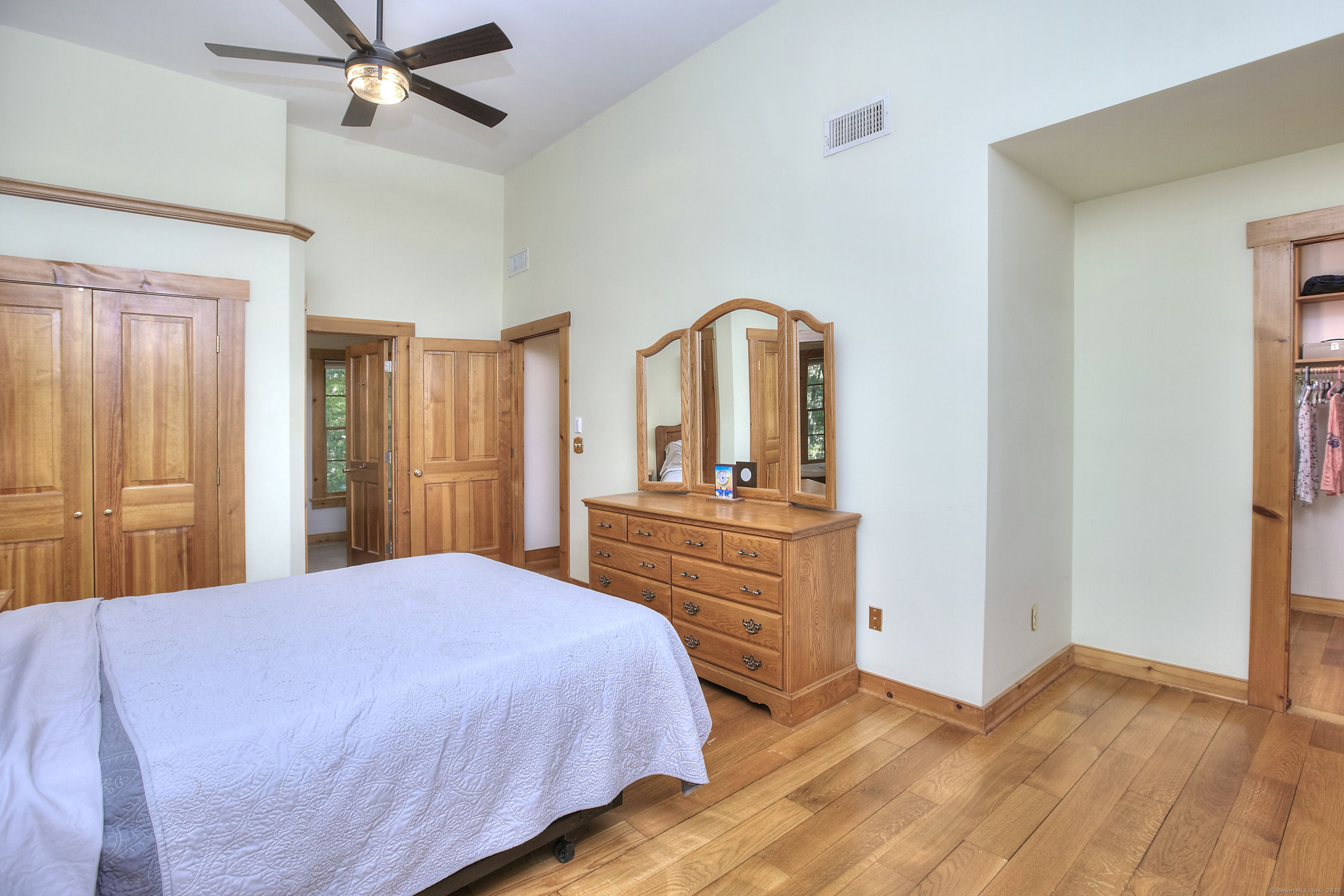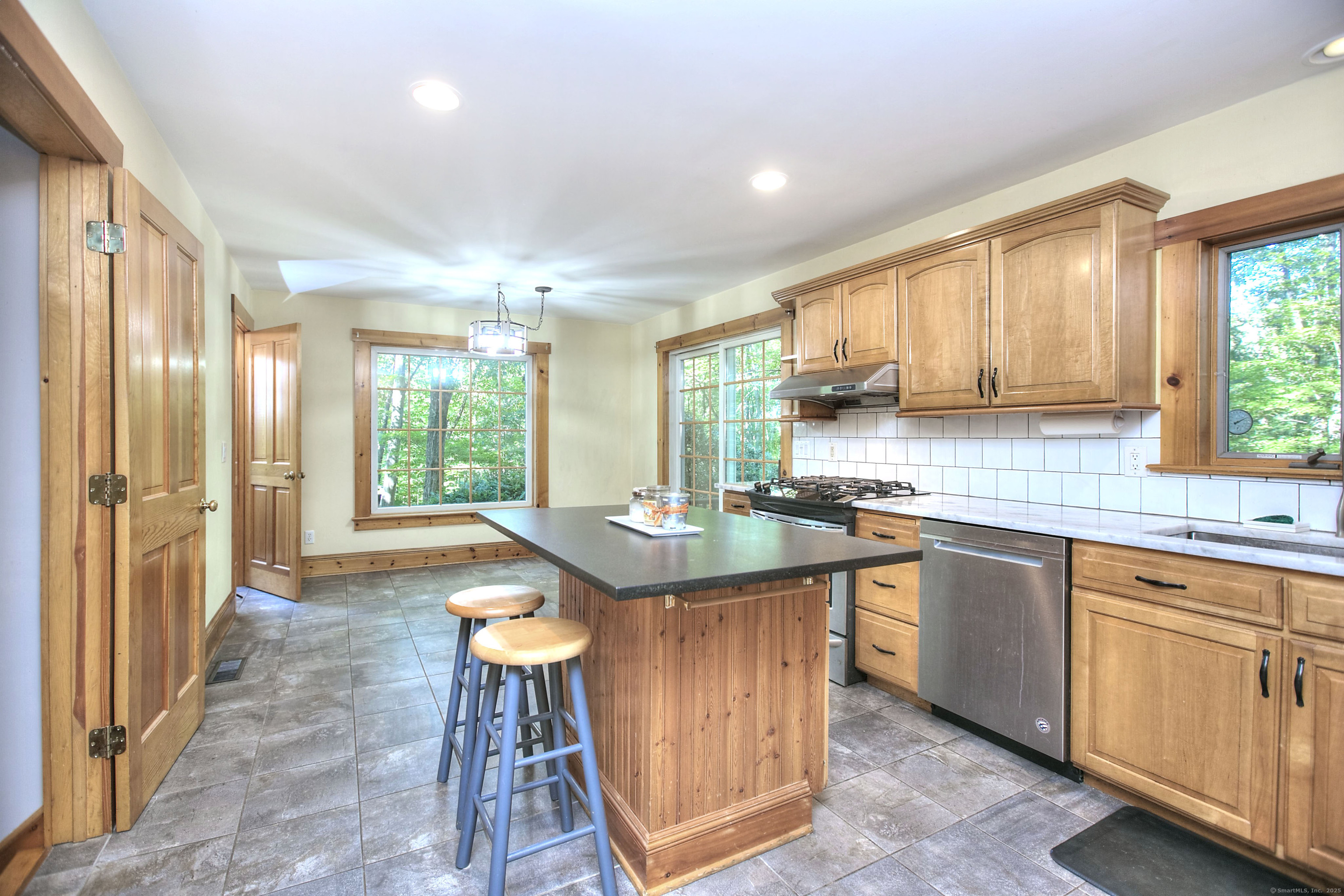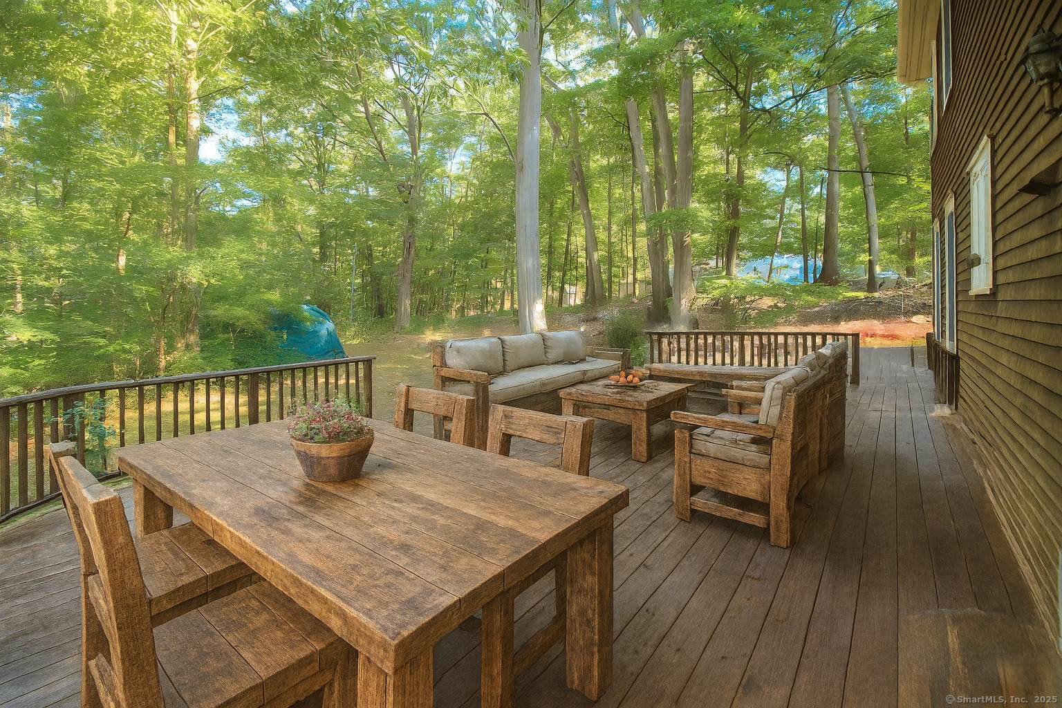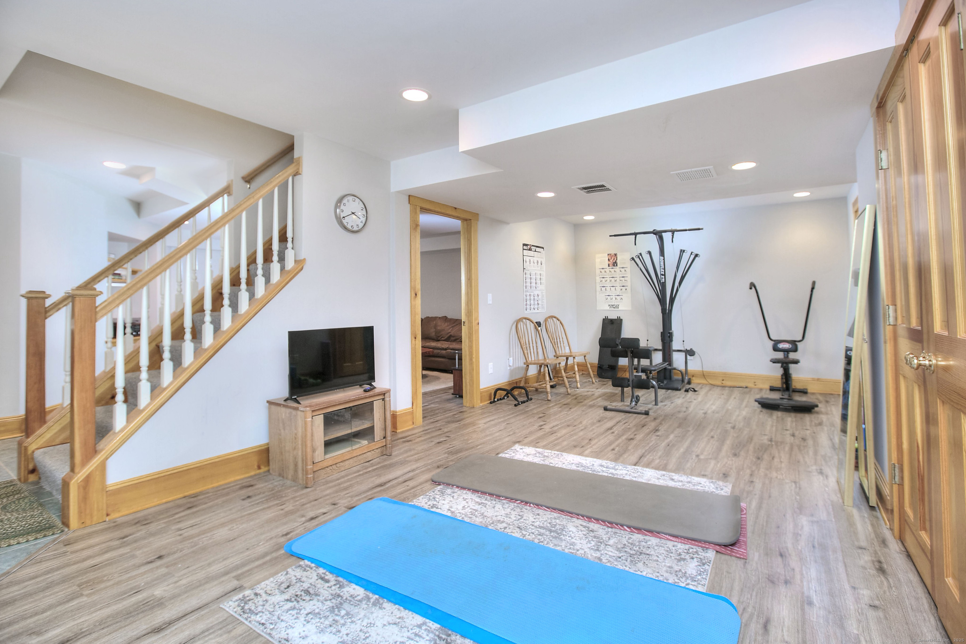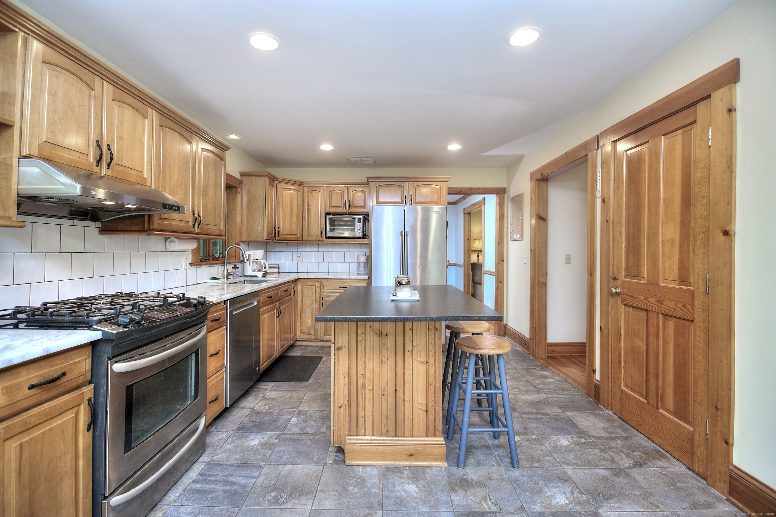 For the first time on the market, this farmhouse colonial was built by its carpenter/builder owner and has been exceptionally maintained. Nestled in a serene cul-de-sac neighborhood, the home blends timeless craftsmanship with modern updates, including a brand new 2024 roof, newer furnace, central A/C, hardwood floors throughout, whole house generator hook-up, and super insulation. The first floor features a spacious eat-in kitchen with an island for extra counter space and storage, a formal dining room with oversized windows, a cozy family room with a wood burning stove/fireplace, and a custom-built home office. Upstairs are three generously sized bedrooms, laundry, and two full baths. The primary suite offers a jacuzzi tub, walk-in shower, linen closet, vaulted ceiling, and his and her closets. An oversized attic provides additional storage. The finished lower level includes a full bath and two large rooms, currently used as an exercise room and a movie room. Outdoor living shines with an extra large deck for gatherings, sunset views, mature landscaping, and peaceful wooded surroundings. Many outbuildings for extra storage needs. With its central yet private location, this is a rare opportunity to own a truly special home.