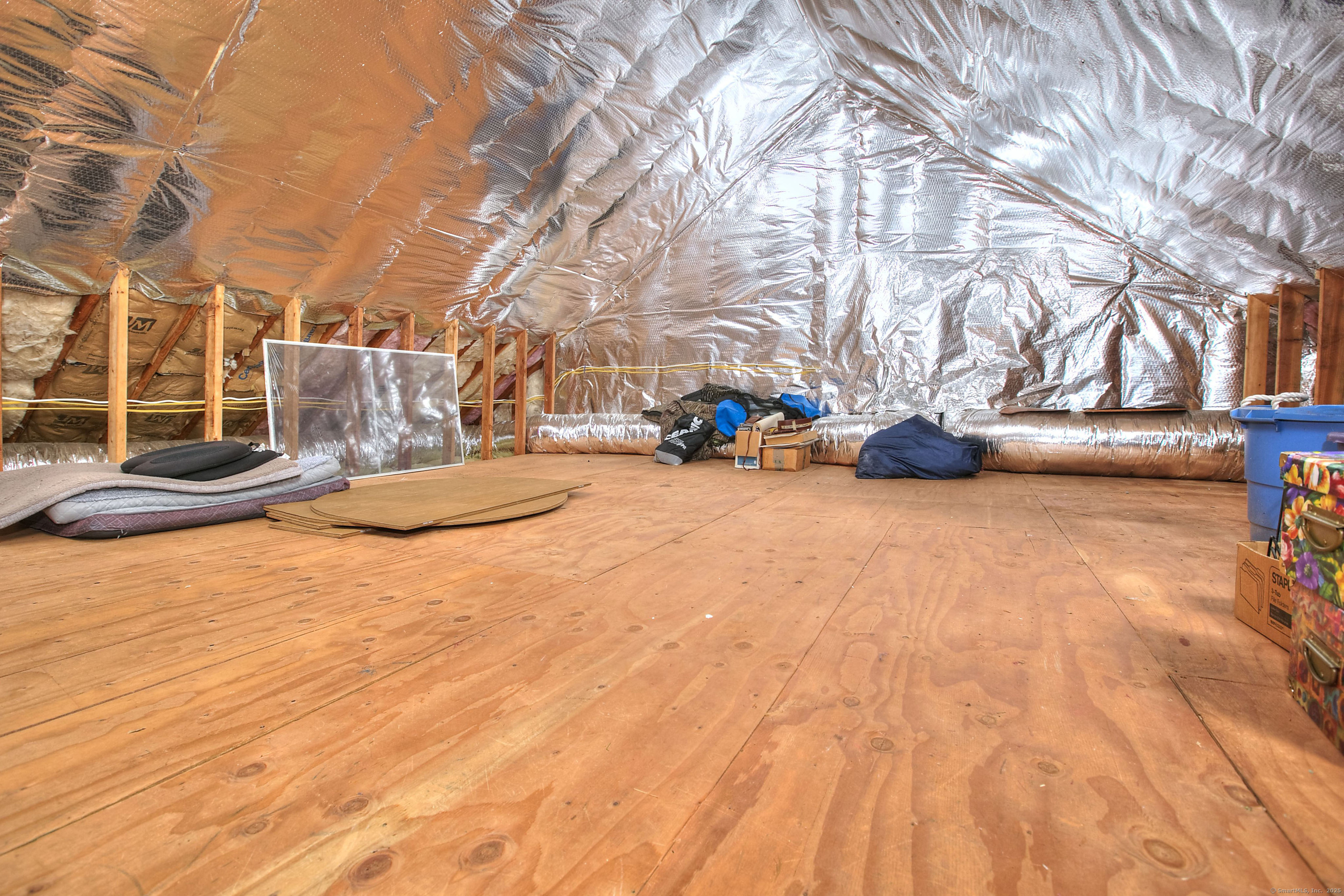 Attic : Unfinished, Storage Space, Floored, Access Via Hatch