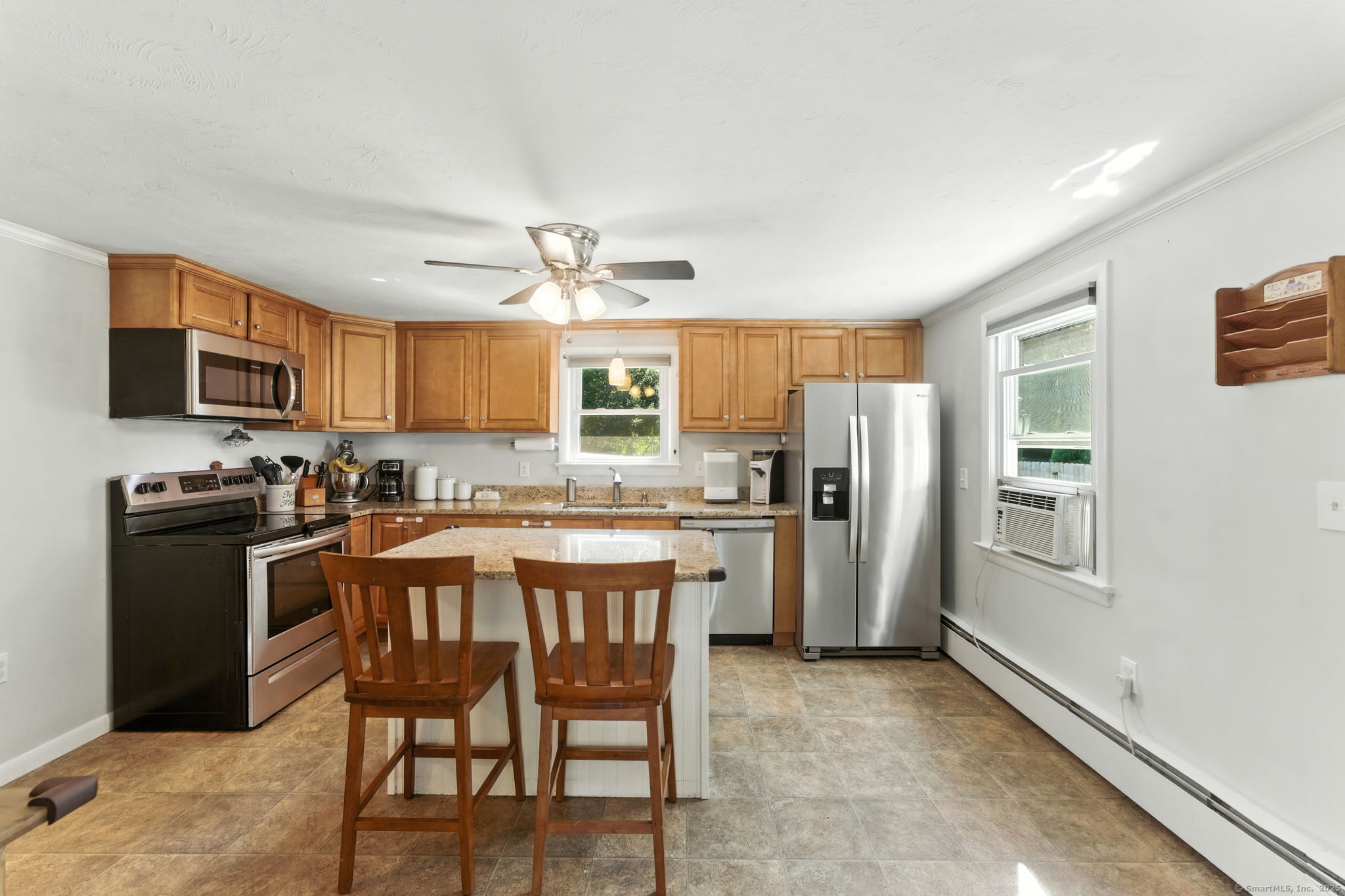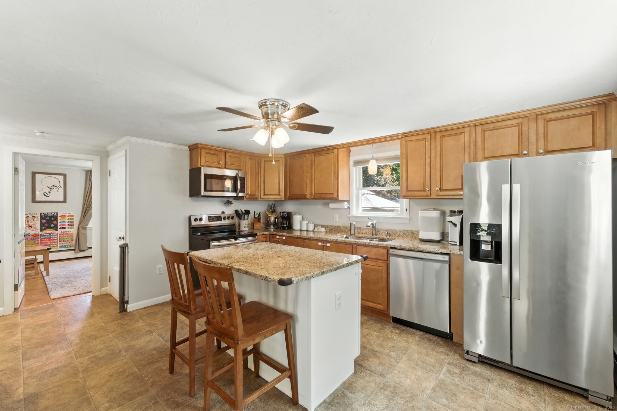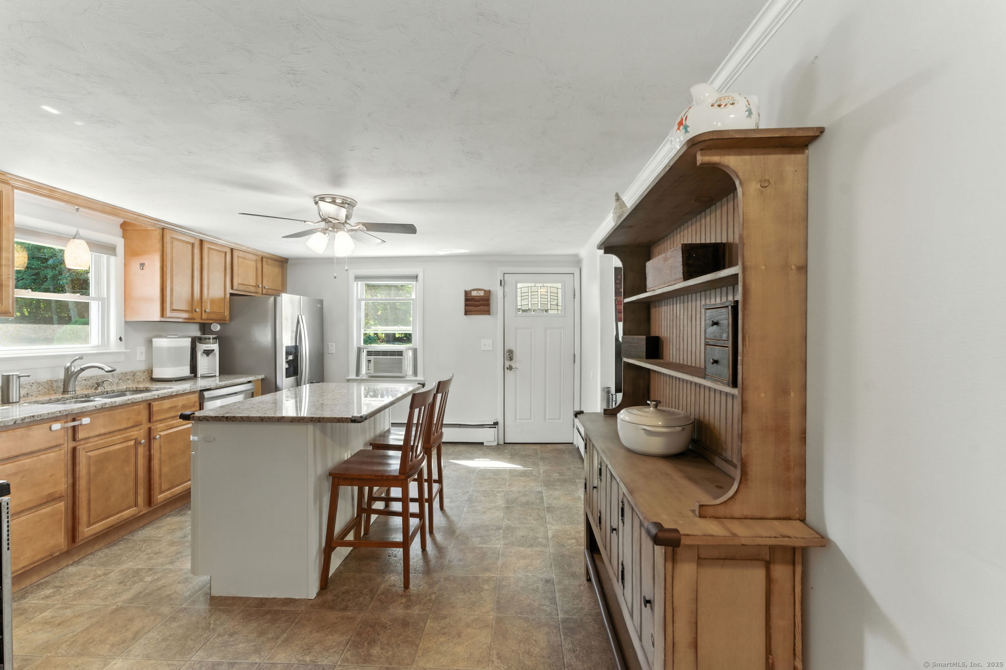 Welcome home to 145 River Street in Moosup! This charming ranch offers easy single-level living on a spacious, fenced-in half-acre lot. Featuring 2 bedrooms and 1 updated bath, the home shines with hardwood floors, a modern kitchen complete with granite counters and stainless steel appliances, and a sun-filled living space that feels warm and inviting. The partially finished basement includes a flexible room, ideal for a home office, gym, or playroom. Outside, enjoy summer evenings on the stamped concrete patio overlooking your private yard-perfect for entertaining, gardening, or simply relaxing. An attached garage and full basement add storage and functionality. Set in a quiet neighborhood with mature trees, this property offers comfort and convenience close to schools, shops, and major commuter routes. Whether you're buying for the first-time, downsizing, or seeking a great condo alternative, this Moosup gem is move-in ready and waiting for you! Subject to Seller Finding Suitable Housing. Professional Photos Coming Soon.
