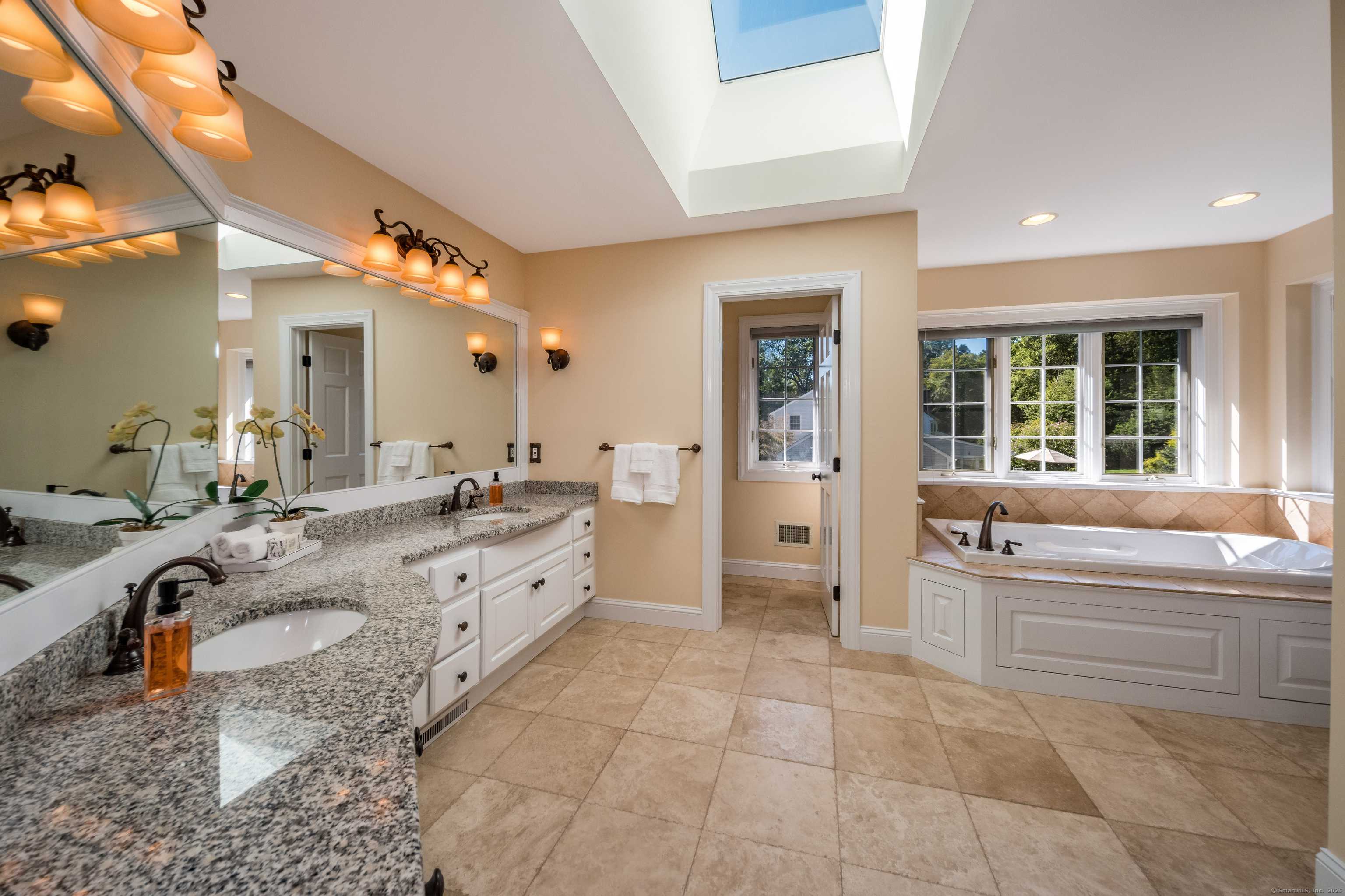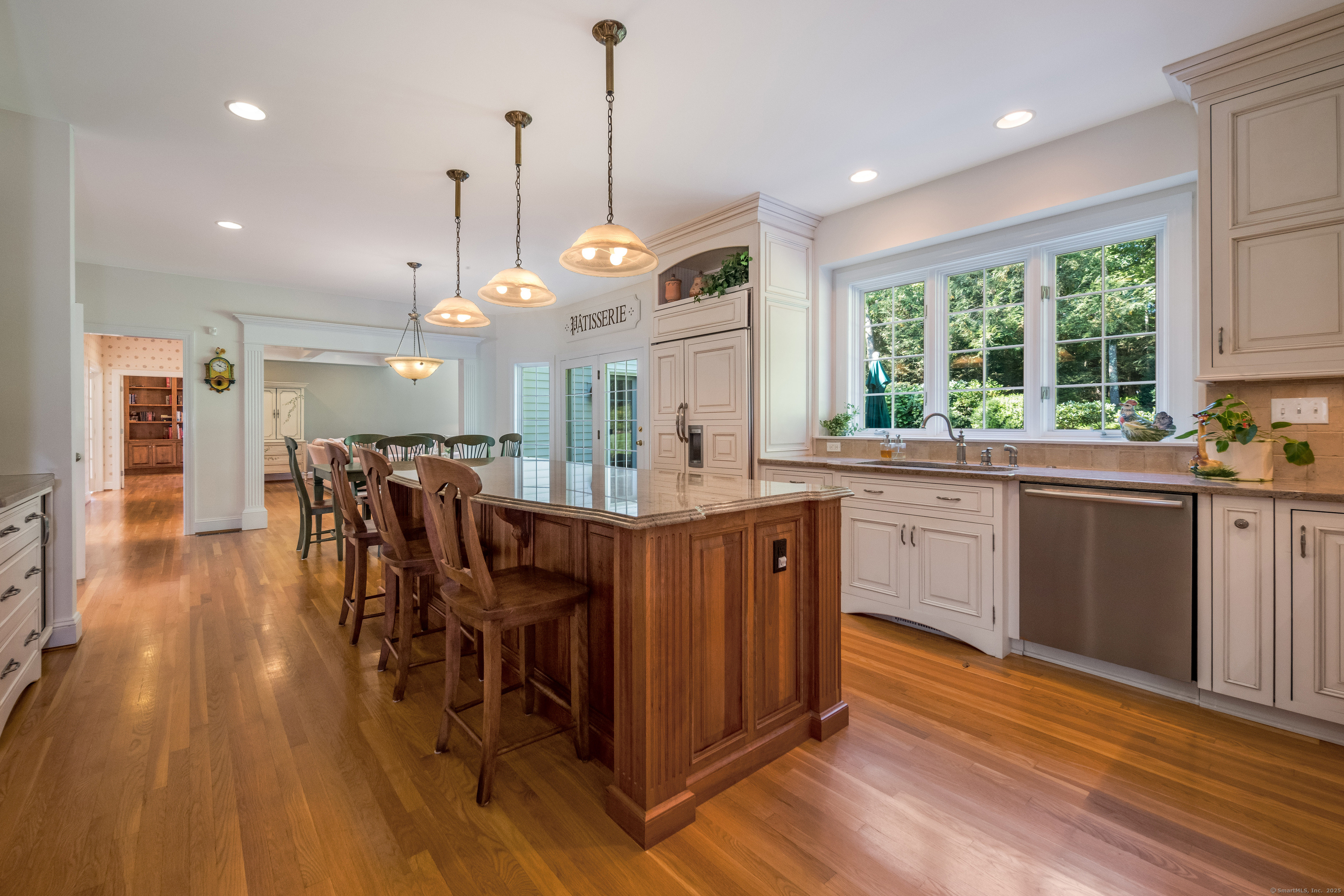 Idyllically set amid lush parklike grounds on a tranquil cul de sac in the heart of Avon,this custom brick & clapbrd Colonial has been beautifully elevated by thoughtful remodels & updates throughout.A timeless portico entry welcomes to interiors awash in natural light from plentiful lg windows & frnch drs that brighten the home's refined open design.An entertainer's dream beginning in the gorgeous remodeled Kitch featuring a 9 ft islnd,Wolf gas cktp,Miele ovens,Sub-Zero,even a warming drawer. Generous white inset custom cabs include a banquet w/wine chiller & bar sink.The brkfst rm adjoins an expansive blue stone patio w/granite steps & lush level lawns of the private setting.Offering a perfect fusion of classic design & modern function,the Kit opens gracefully to a spacious DR thru frnch drs,while rear stairs provide easy access to the upper level.Stunning adjoining frpl FR elevated w/crisp coff'd ceiling & soaring 2 story windows ideal for family gatherings.A light filled frpl LR & main level Study w/custom cherry built-ins complete the main level.Upstairs the Primary Suite envelopes you w/luxurious comfort featuring a lovely frpl,2 custom fitted wlk-ins, & remodeled spa bath w/double shower w/built in bench.3 addt'l well sized ensuites w/updated bths & each w/wlk-ins plus a wlk in attic.Plenty of versatile space for casual gatherings, workouts,or play in the fin LL.Auto Generator 2021.Roof 2020.Town water&sewer.Brimming w/updates, meticulously maintained & ideally located