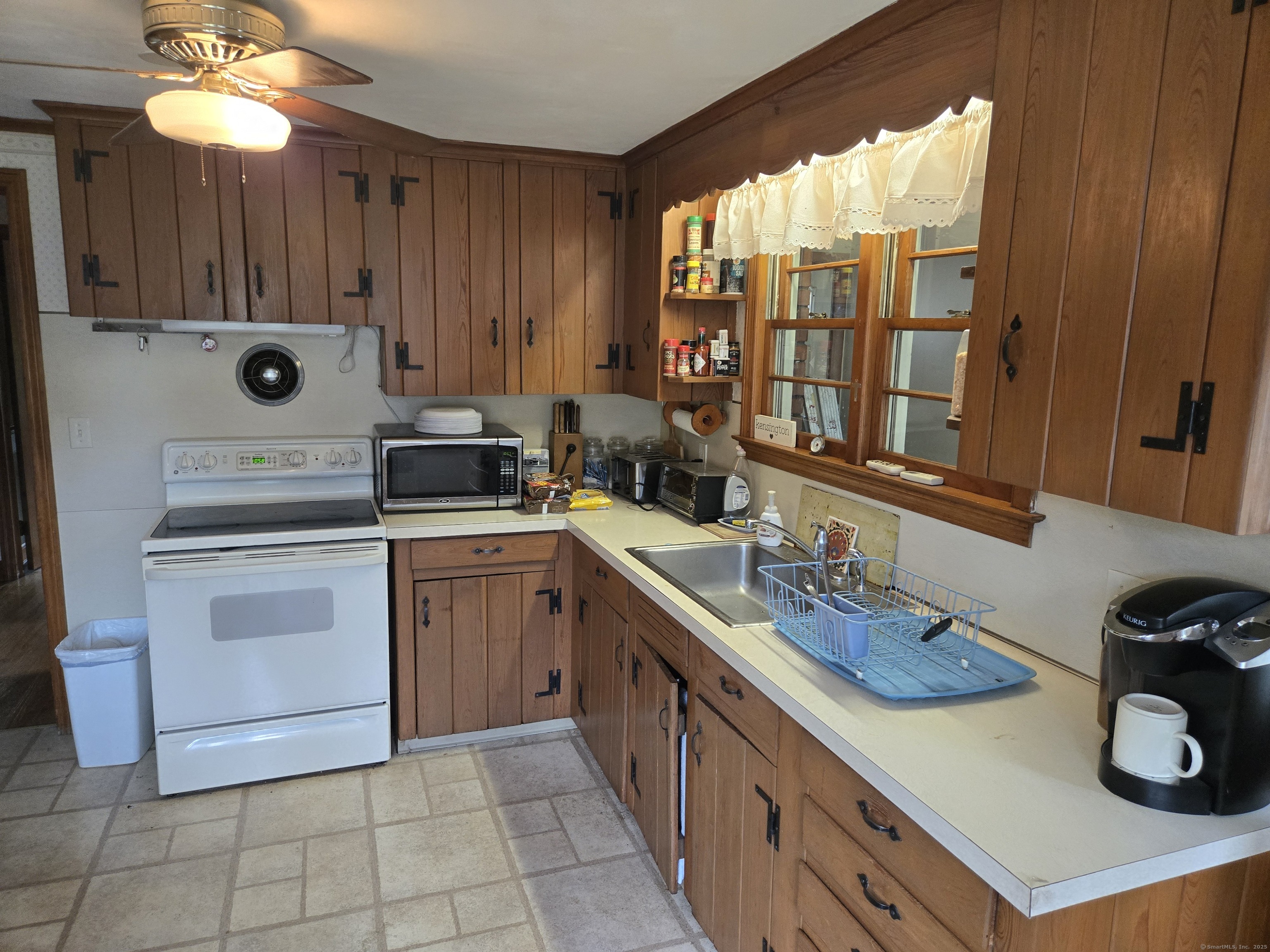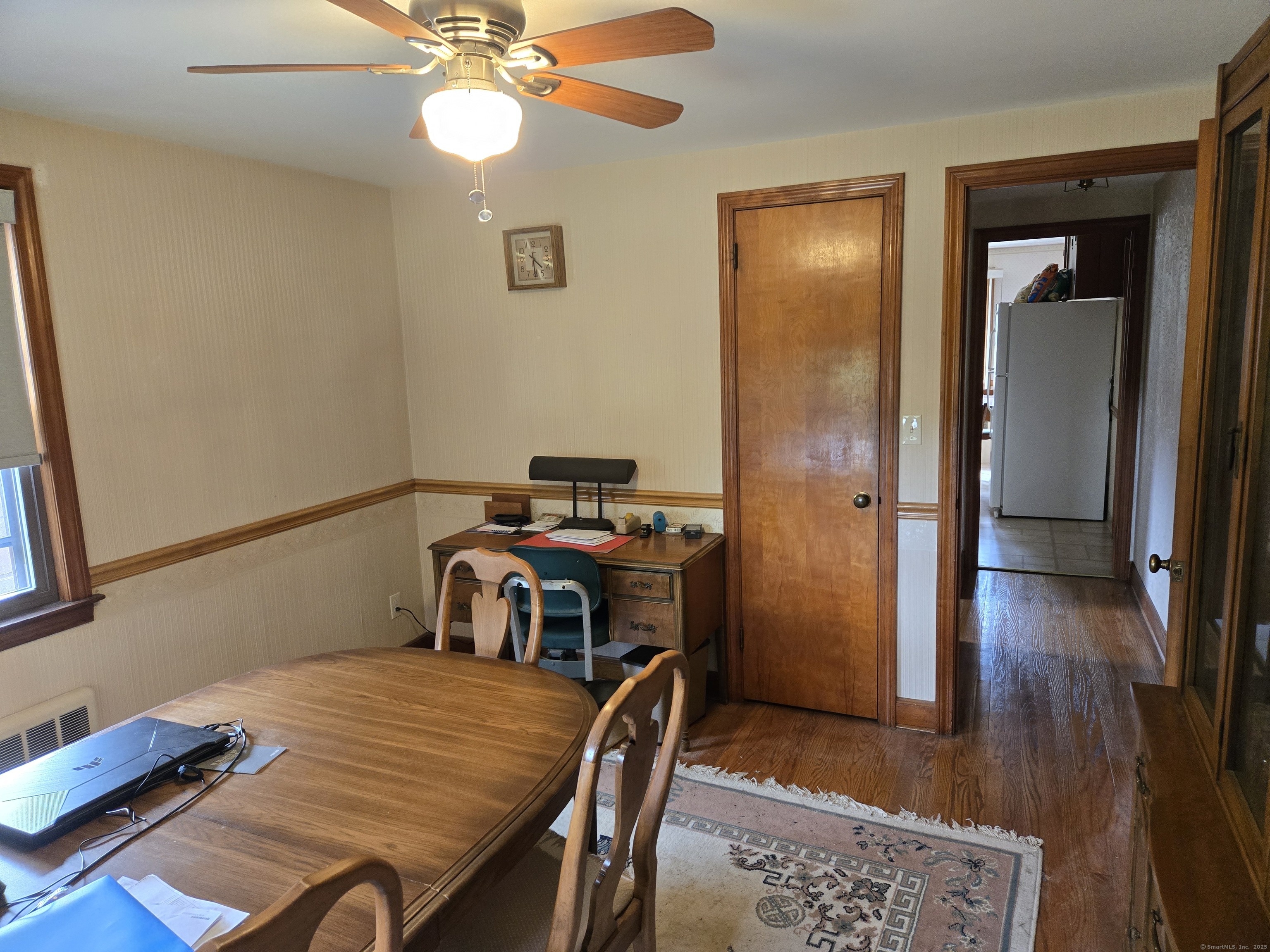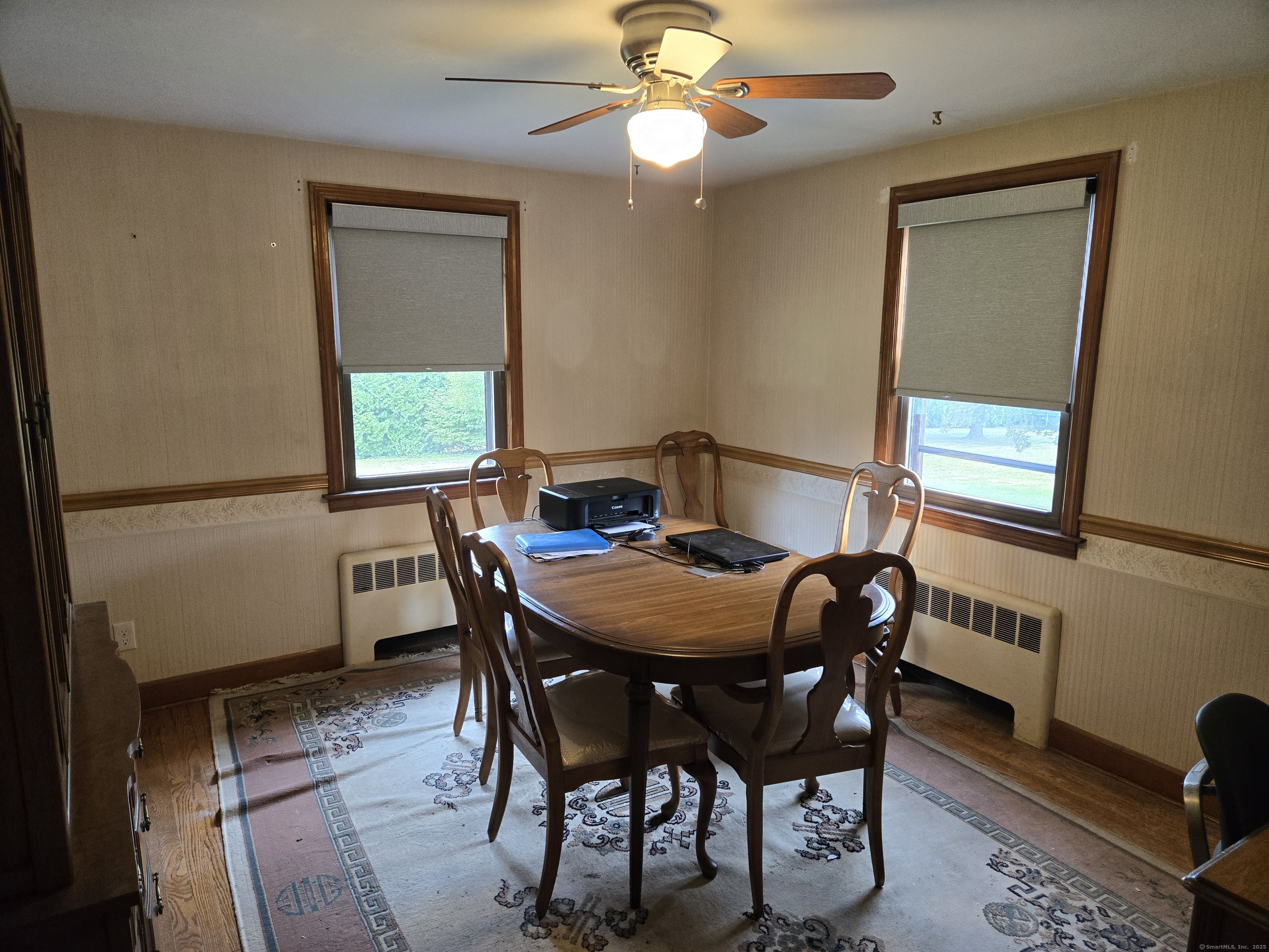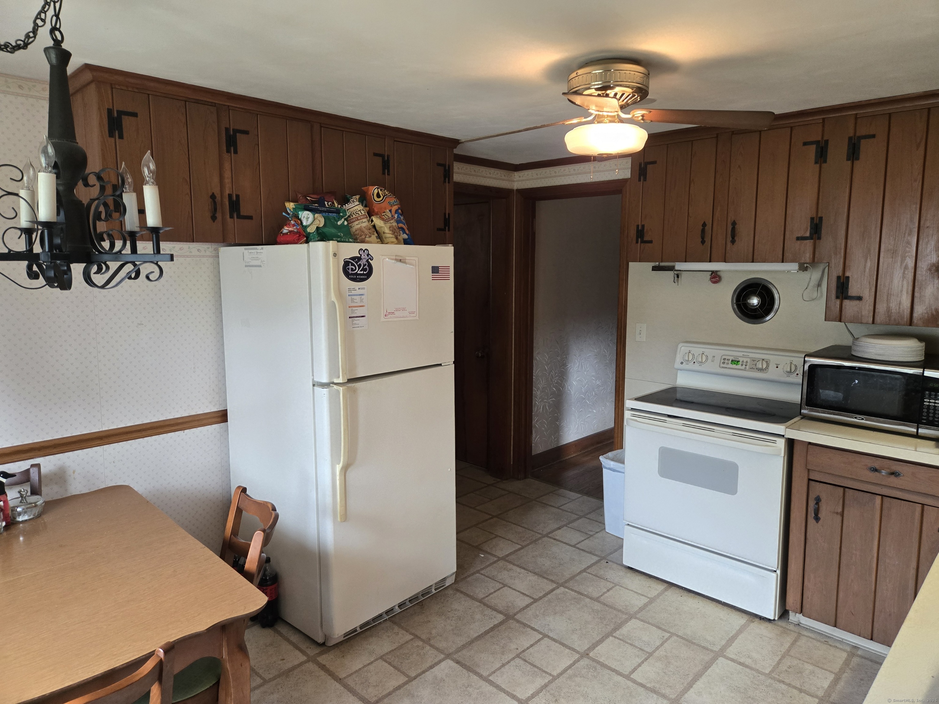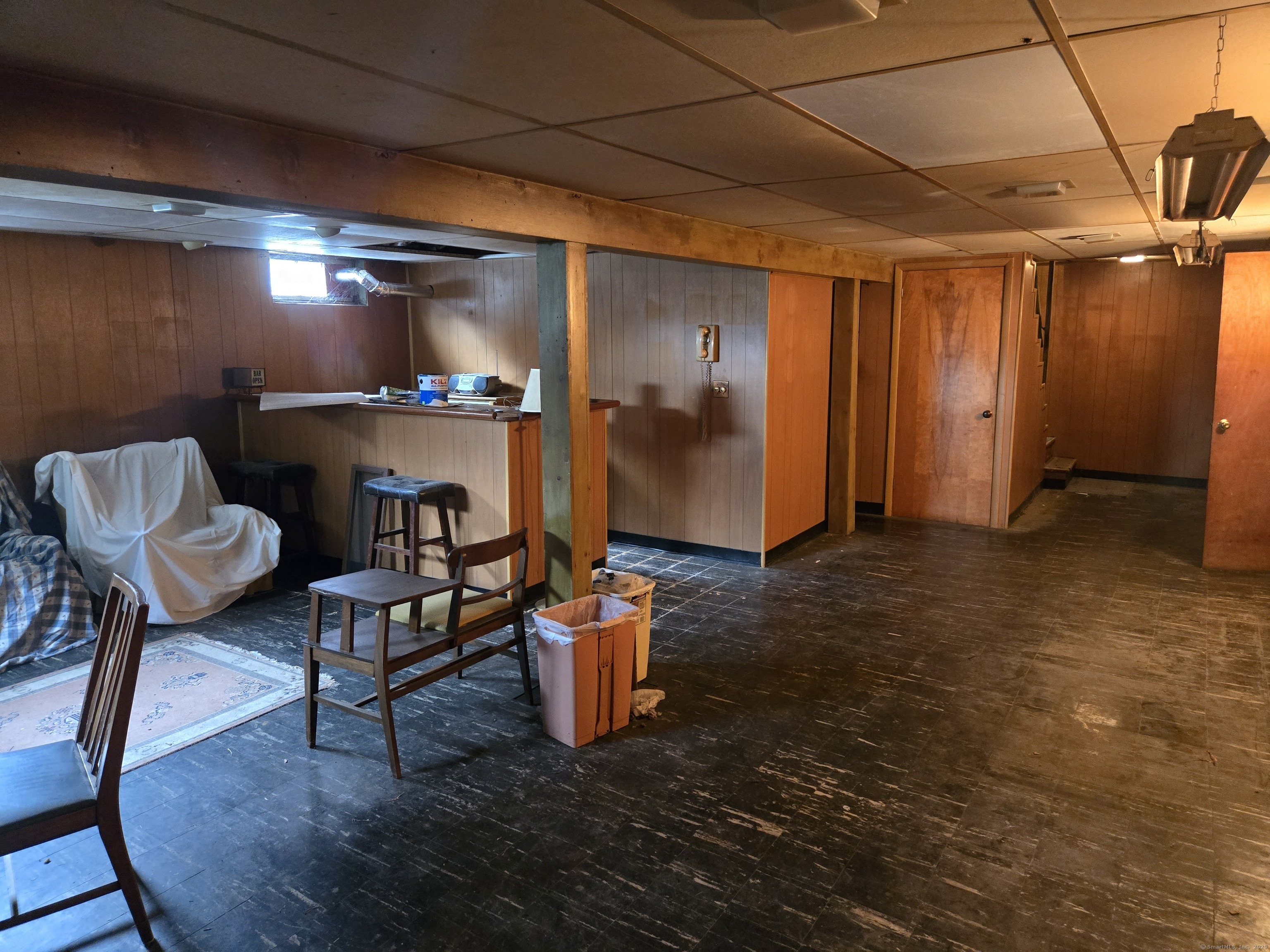 This is a must see brick ranch style home, move right in or bring your updates! Quiet neighborhood in walking distance to Griswold elementary school. We have four spacious bedrooms with plenty of closet space. An eat in kitchen with ample space and a bay window. There are hardwood floors throughout the home. A large living room with a fireplace and built-ins, along with a bay window that lets in lots of light! The laundry is in the spacious basement with storage and an area with a bar too! The main bedroom has a half bath and could be a private space, office or studio. There is a nice sized yard with a great patio, plenty of room for activities!