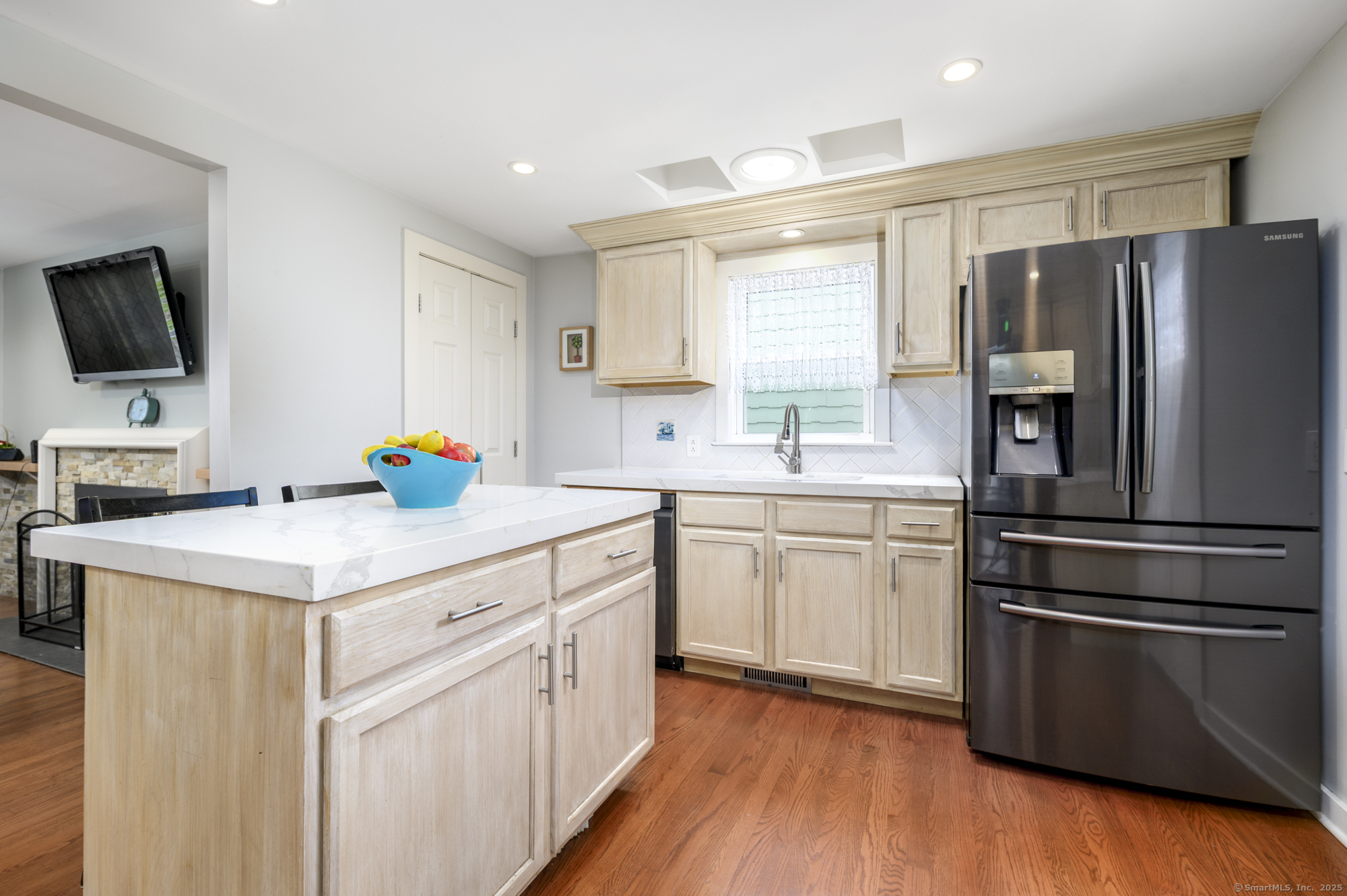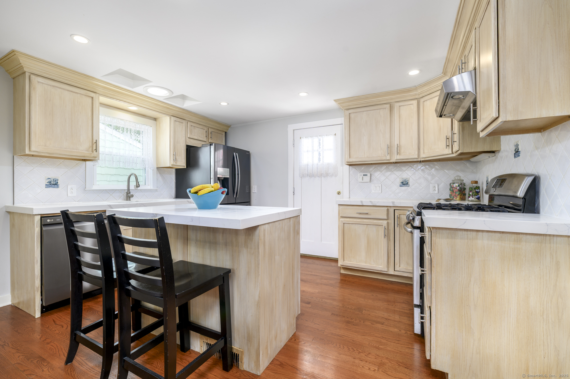 WELCOME to this charming Cape Cod style home, 4 bedrooms, 3 bathrooms offers a comfortable living space, a blend of classic character with modern updates throughout. Main floor offers a remodeled large eat-in kitchen with granite countertops and island. Ample size deck off the kitchen over looking backyard and the barn. Elegant living room with wood burning fireplace plus primary bedroom and another bedroom which currently used as a dining room and beautifully redone full bathroom with shower. Upstairs, two additional, spacious bedrooms and nicely remodeled full bathroom. Gleaming hardwood floors, recesssed lights and C/A throughout. Full 768 square feet walk-out partially finished basement can be used as a family room, office or bonus room with extra storage space plus laundry and mechanical area. The oversized parking area is perfect for extra parking while the barn with 1 car garage and storage area adds everyday convenience. Located in close proximity to major highways, public transportation and local amenities. Don't miss this opportunity to make 51 Scribner your new home!