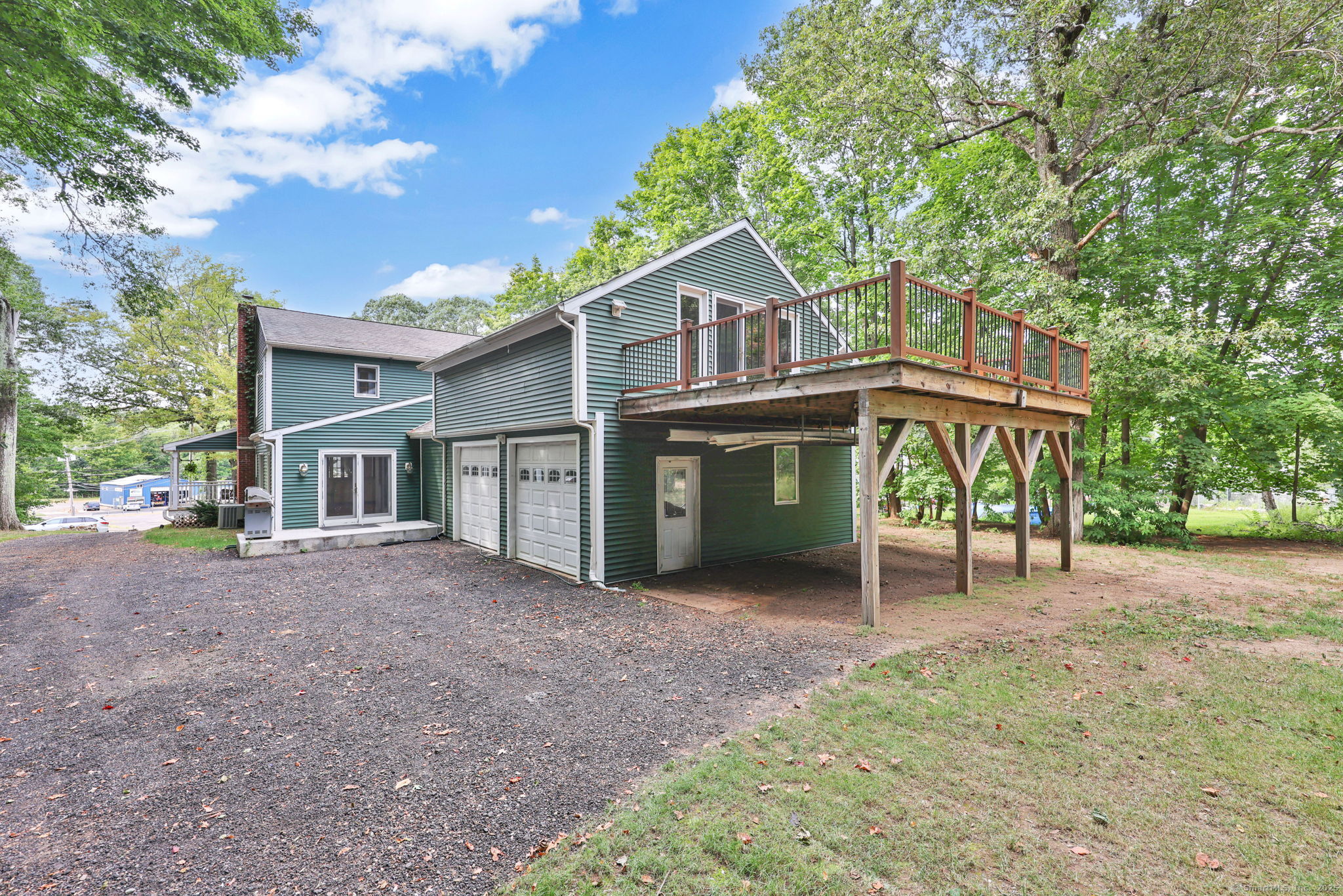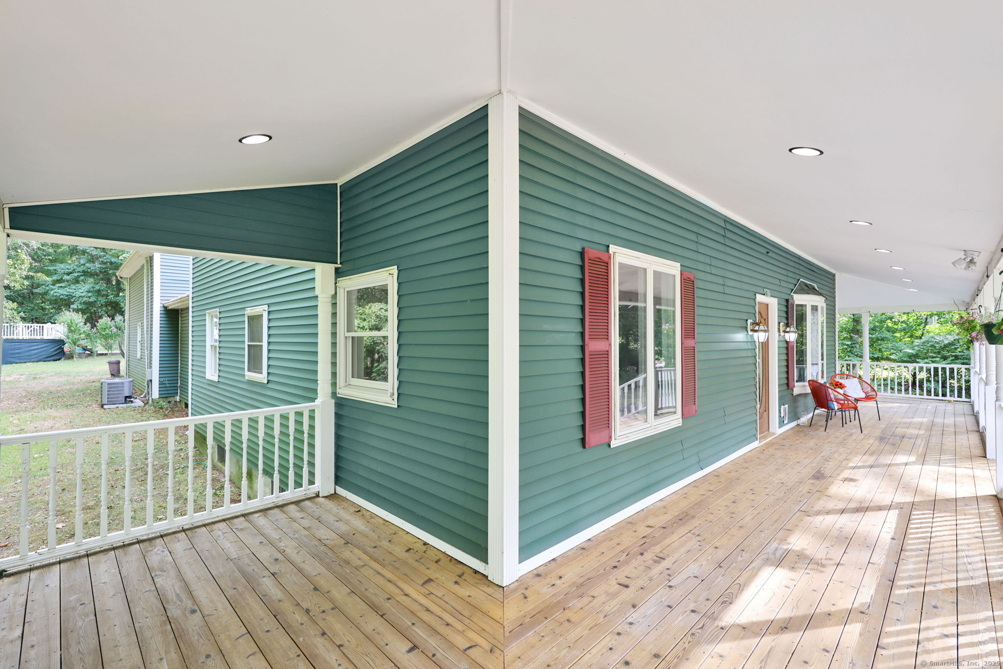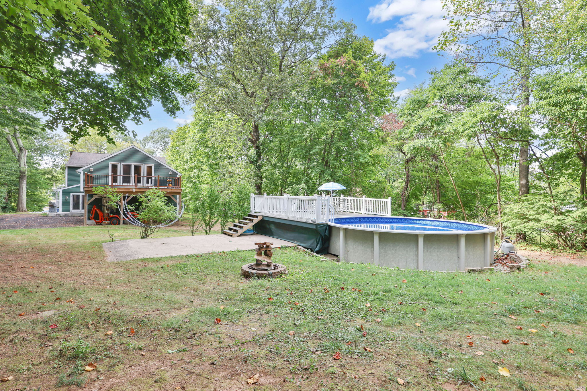 Welcome to this expanded Colonial home set on over 3 private acres across from The Farms Country Club. From the charming front porch to the spacious interior, this home offers room to relax, entertain, and grow. Highlights include a bright kitchen with Australian Cypress wood floors and tongue-and-groove ceiling, a freshly updated family room with cathedral ceilings and roughed in plumbing for a wet bar. A spacious living room featuring hardwood floors, wood stove insert, and bow window. Two guest bedrooms, a full bath with whirlpool tub and a mudroom with laundry area complete the first floor. Upstairs you'll find a spacious primary bedroom suite plus two additional bedrooms. The additional full bathroom upstairs has been recently updated. There's a finished loft with access to a spacious deck above the garage which is heated and air conditioned, perfect for a game room or studio. Some other highlights include an approximately 15 year old roof (50-year architectural shingle), new pool liner with 5-year warranty, new pool pump, and a newly added millings driveway. City water available on the street in the event the new buyer desired to convert. Enjoy privacy, updates, and a prime location across from the country club, and with easy access to Route 15, Wallingford's Train Station, Oakdale Theater and more - this home truly has it all! Schedule your showing today!
