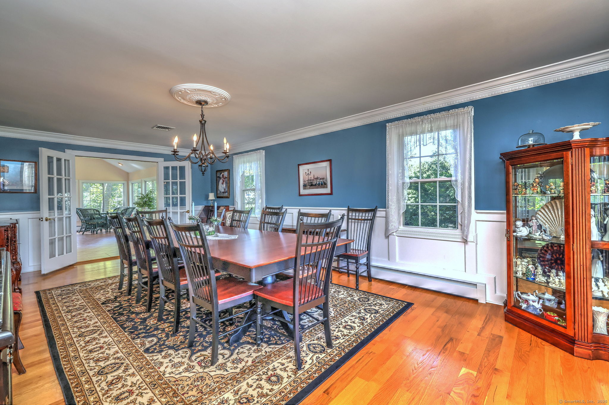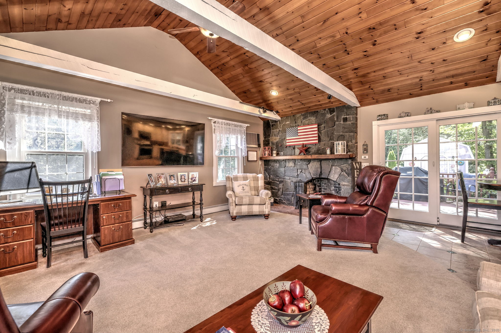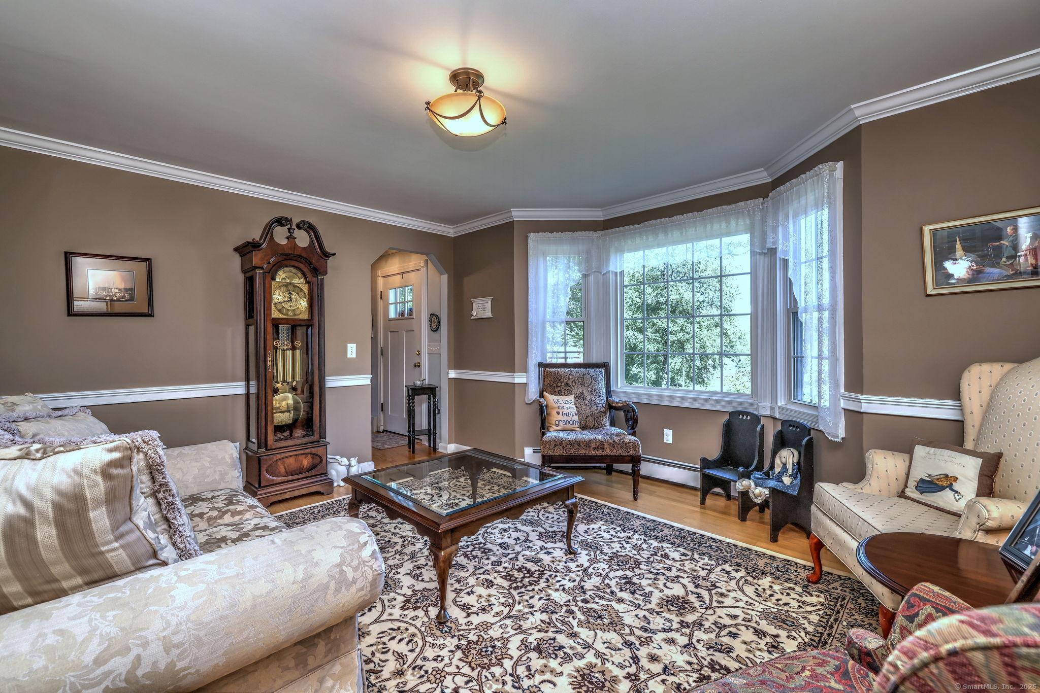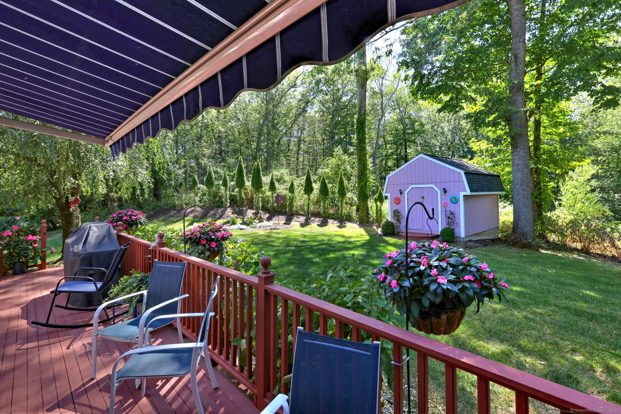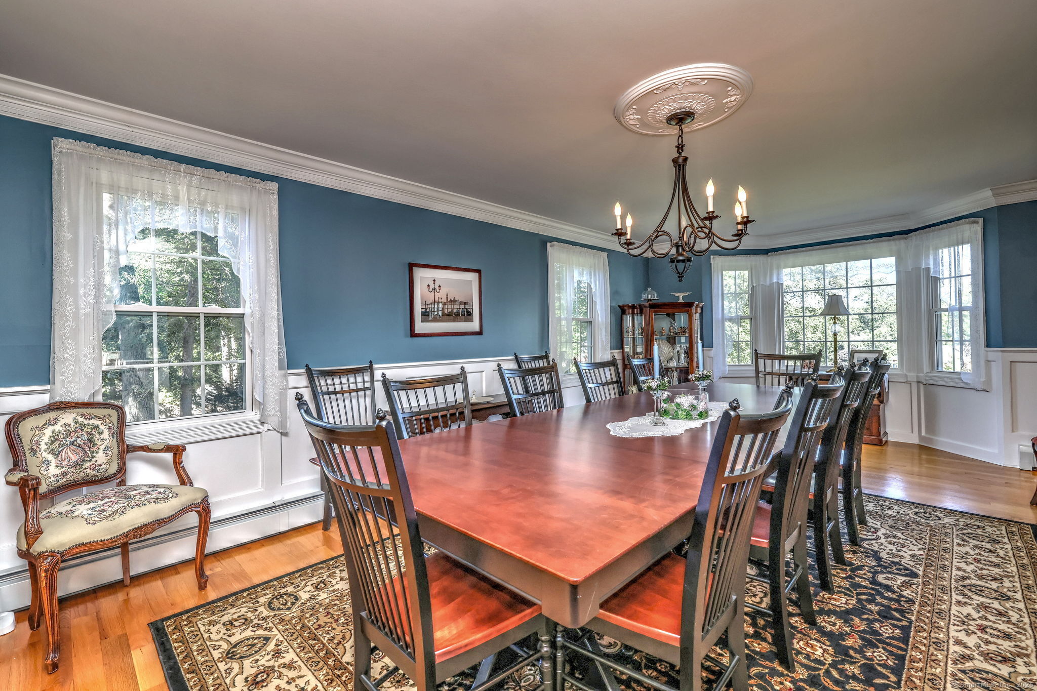 Discover timeless charm and modern comfort in this beautifully updated 3-bedroom, 2.1-bath Gambrel Colonial, ideally located north of Post Road on a quiet cul-de-sac. Set on a manicured 3/4+ acre lot with sprinkler system, this home offers privacy, space, and exceptional living both indoors and out. This beautifully appointed home offers three spacious bedrooms, including a luxurious primary suite with a private bath, and a total of 2.1 bathrooms, highlighted by a newly renovated main bath on the upper level. The updated kitchen flows seamlessly into the inviting family room, where a cozy gas fireplace and sliding doors lead to a deck-ideal for relaxing or entertaining. A formal living room and generous dining area open to a stunning four-season heated porch, complete with a wet bar and panoramic views of the picturesque yard. Outdoor gatherings are a breeze on the deck with its retractable awning, while the two-car garage and ample driveway space provide plenty of parking. With gas heat distributed across five zones, this home ensures efficient comfort throughout the year. This home blends classic colonial architecture with thoughtful updates and serene outdoor living. Whether you're hosting guests or enjoying a quiet evening on the porch, this property is a true retreat. Professional photos to come.