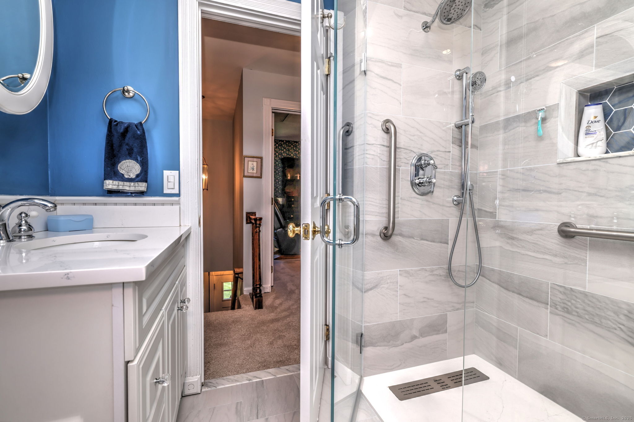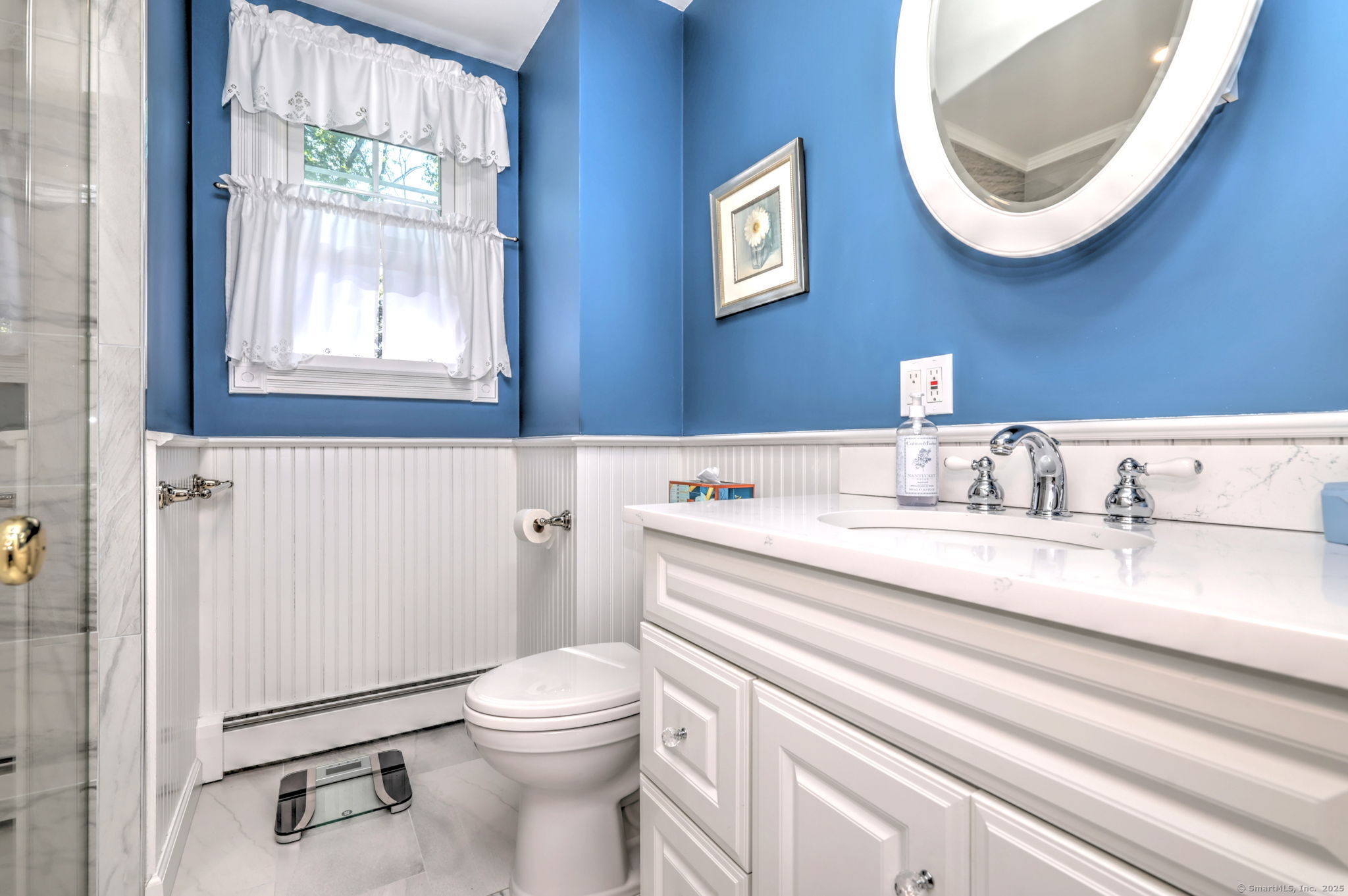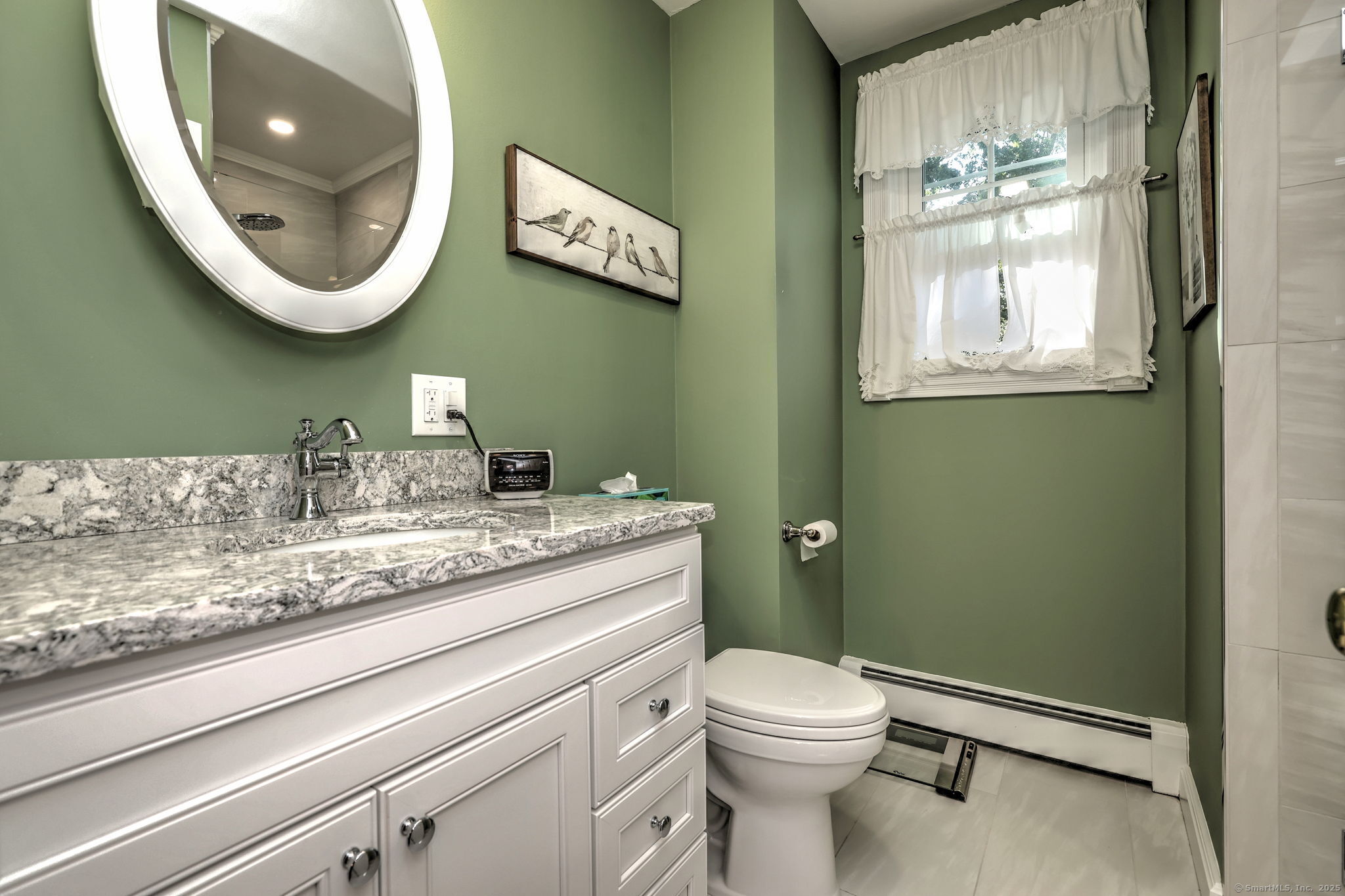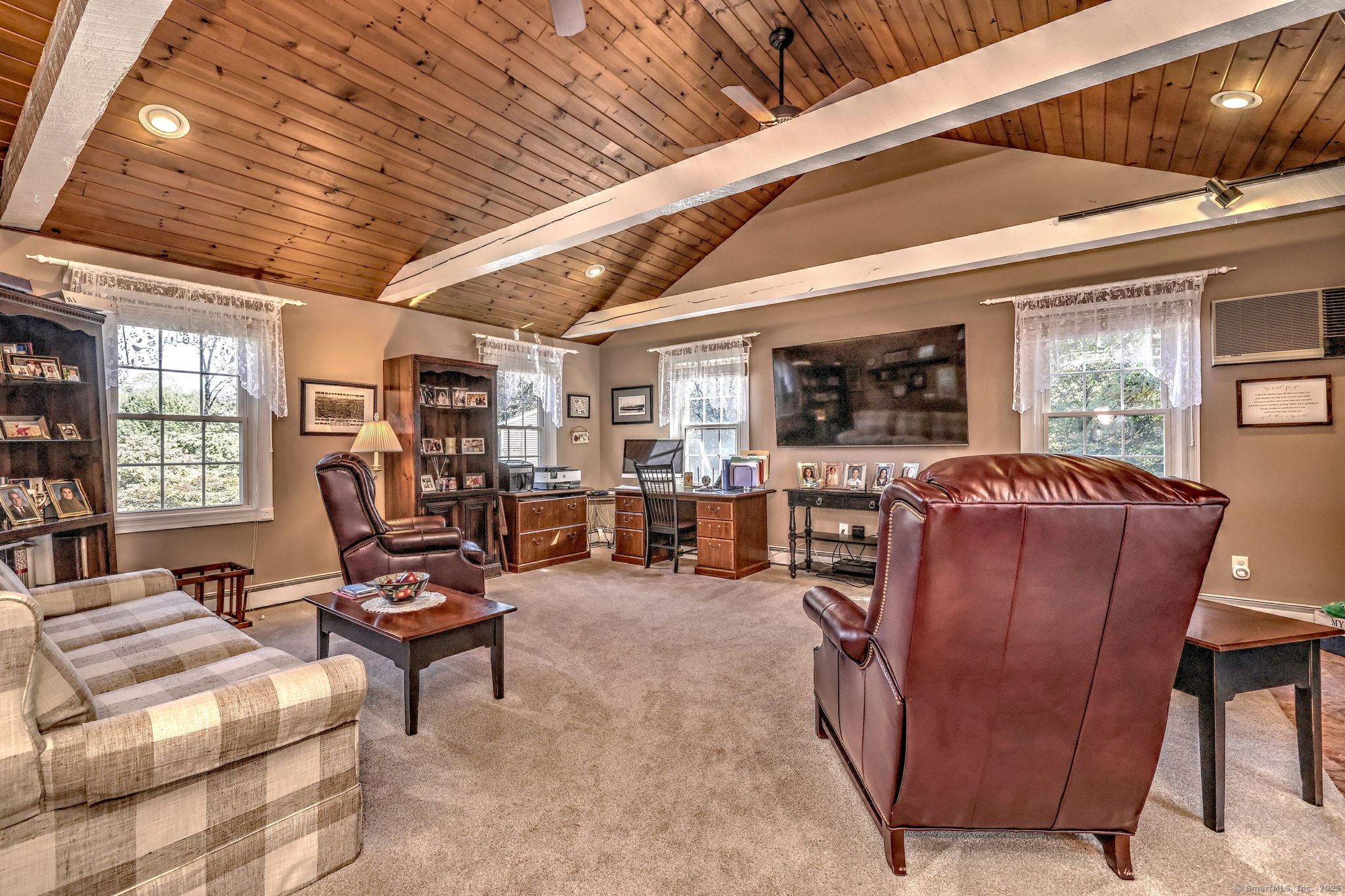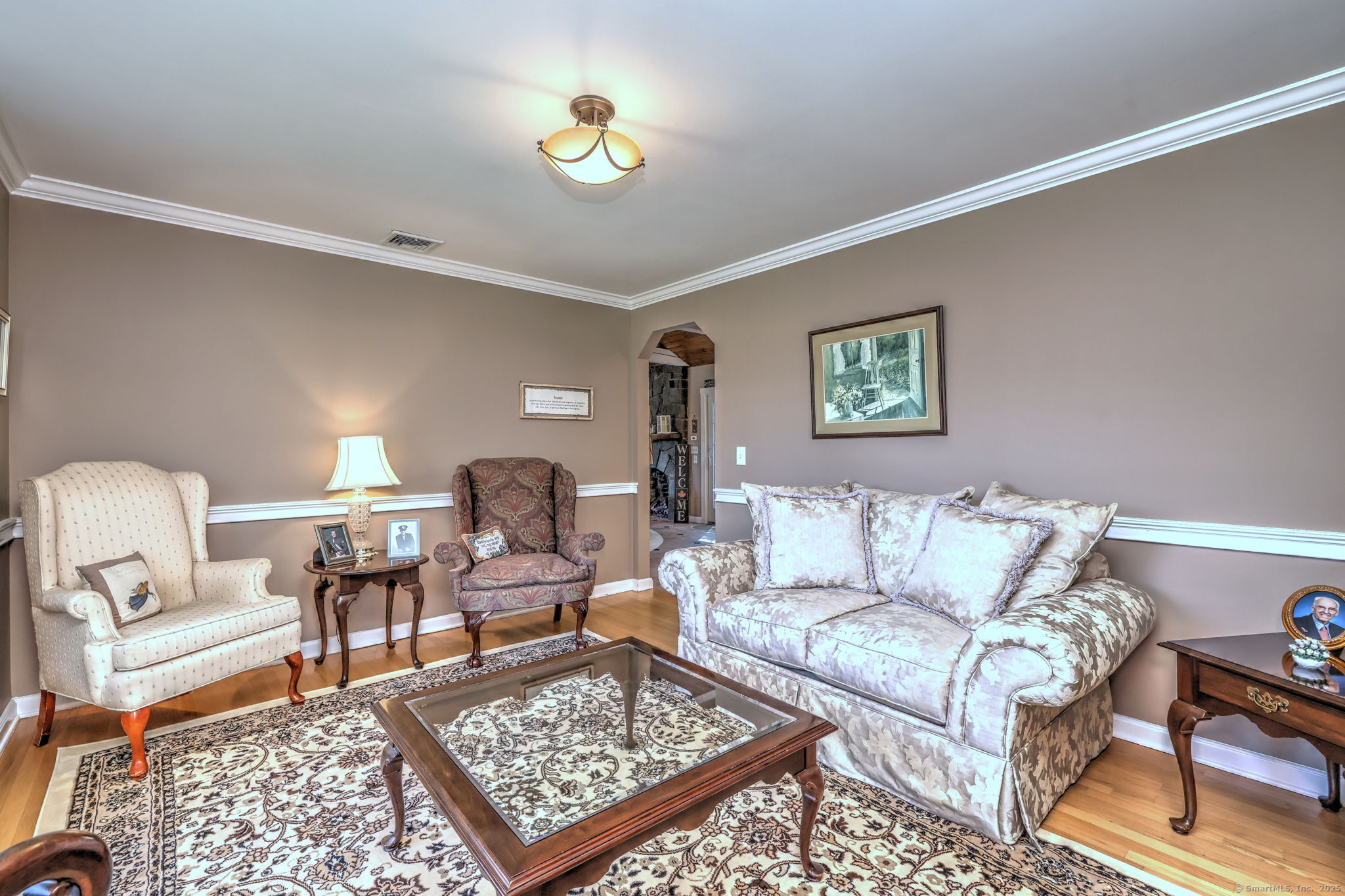 Discover timeless charm and modern comfort in this beautifully updated 3-bedroom, 2.1-bath Gambrel Colonial, ideally located north of Post Road on a quiet cul-de-sac. Set on a manicured 3/4+ acre lot with sprinkler system, this home offers privacy, space, and exceptional living both indoors and out. This beautifully appointed home offers three spacious bedrooms, including a luxurious primary suite with a private bath, and a total of 2.1 bathrooms, highlighted by a newly renovated main bath on the upper level. The updated kitchen flows seamlessly into the inviting family room, where a cozy gas fireplace and sliding doors lead to a deck-ideal for relaxing or entertaining. A formal living room and generous dining area open to a stunning four-season heated porch, complete with a wet bar and panoramic views of the picturesque yard. Outdoor gatherings are a breeze on the deck with its retractable awning, while the two-car garage and ample driveway space provide plenty of parking. With gas heat distributed across five zones, this home ensures efficient comfort throughout the year. This home blends classic colonial architecture with thoughtful updates and serene outdoor living. Whether you're hosting guests or enjoying a quiet evening on the porch, this property is a true retreat. Professional photos to come.