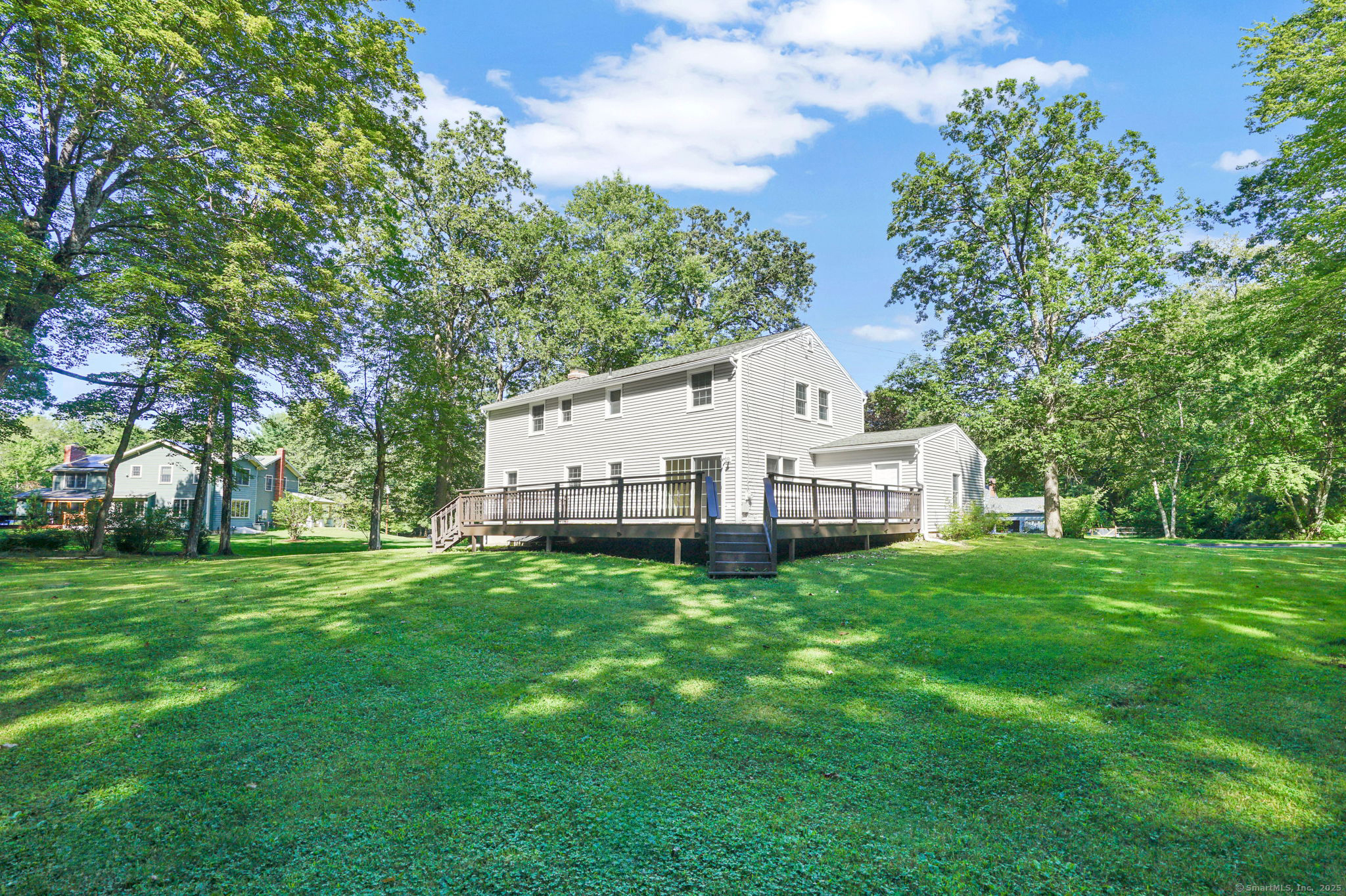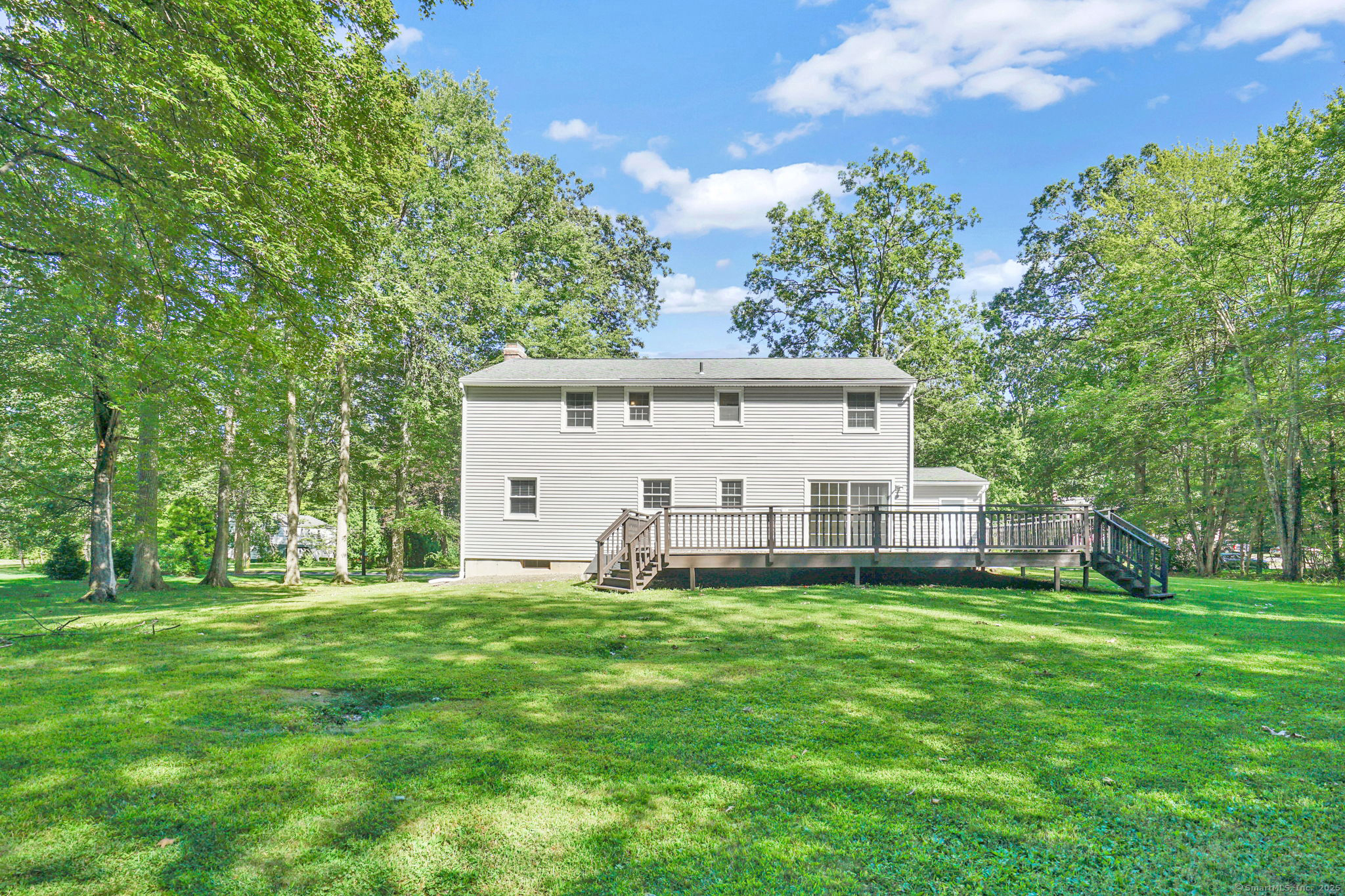 Welcome to 17 Amy Lane in the heart of beautiful Simsbury, where nature, culture, and comfort are all right outside your door ! This spacious home features hardwood floors, a fireplaced living room, first floor den/home office with sliders out to deck, and four generously sized bedrooms. The finished basement adds incredible versatility with a family room and a second kitchen-perfect for extended living, entertaining, or guest retreat. Enjoy peace of mind with efficient gas heat, city water, and city sewer. Step outside to a large deck overlooking the level backyard-ideal for barbecues, relaxing evenings, or even a perfect spot for your pup to do their zoomies! An attached two-car garage completes the package. All this in a bucolic Simsbury location-just minutes to Stratton Brook State Park, Simsbury Commons shopping & dining, Flamig Farm, Roaring Brook, Talcott Mountain/Simsbury Meadows Performing Arts Center, and the scenic McLean Game Refuge trails !