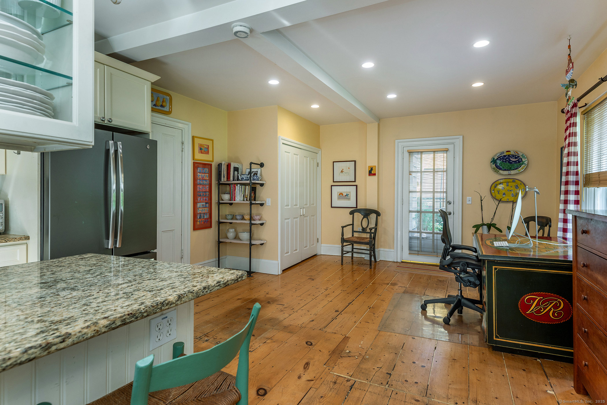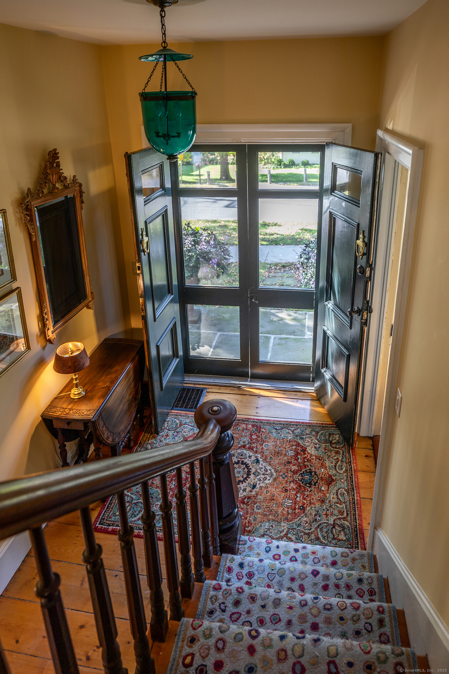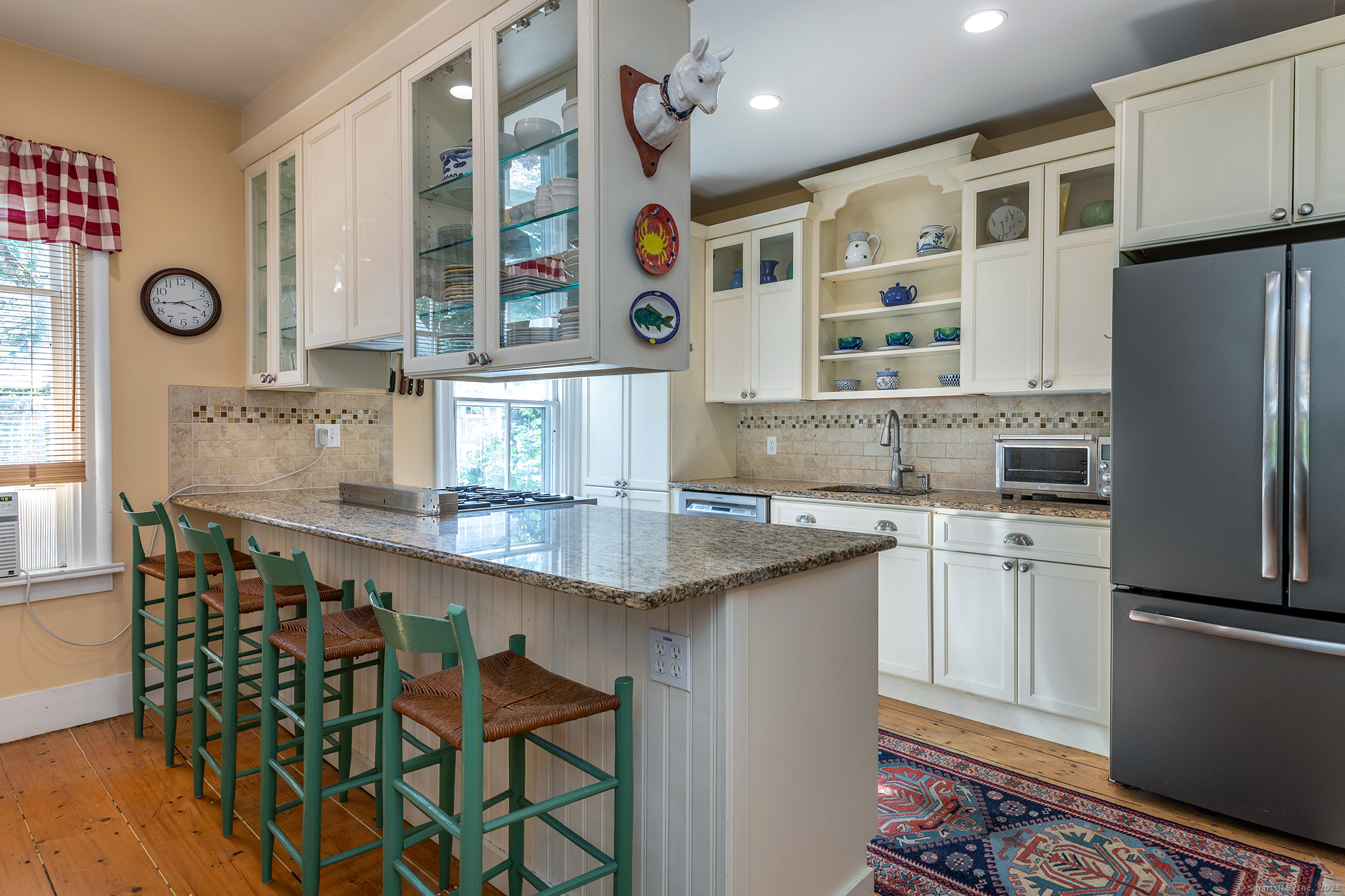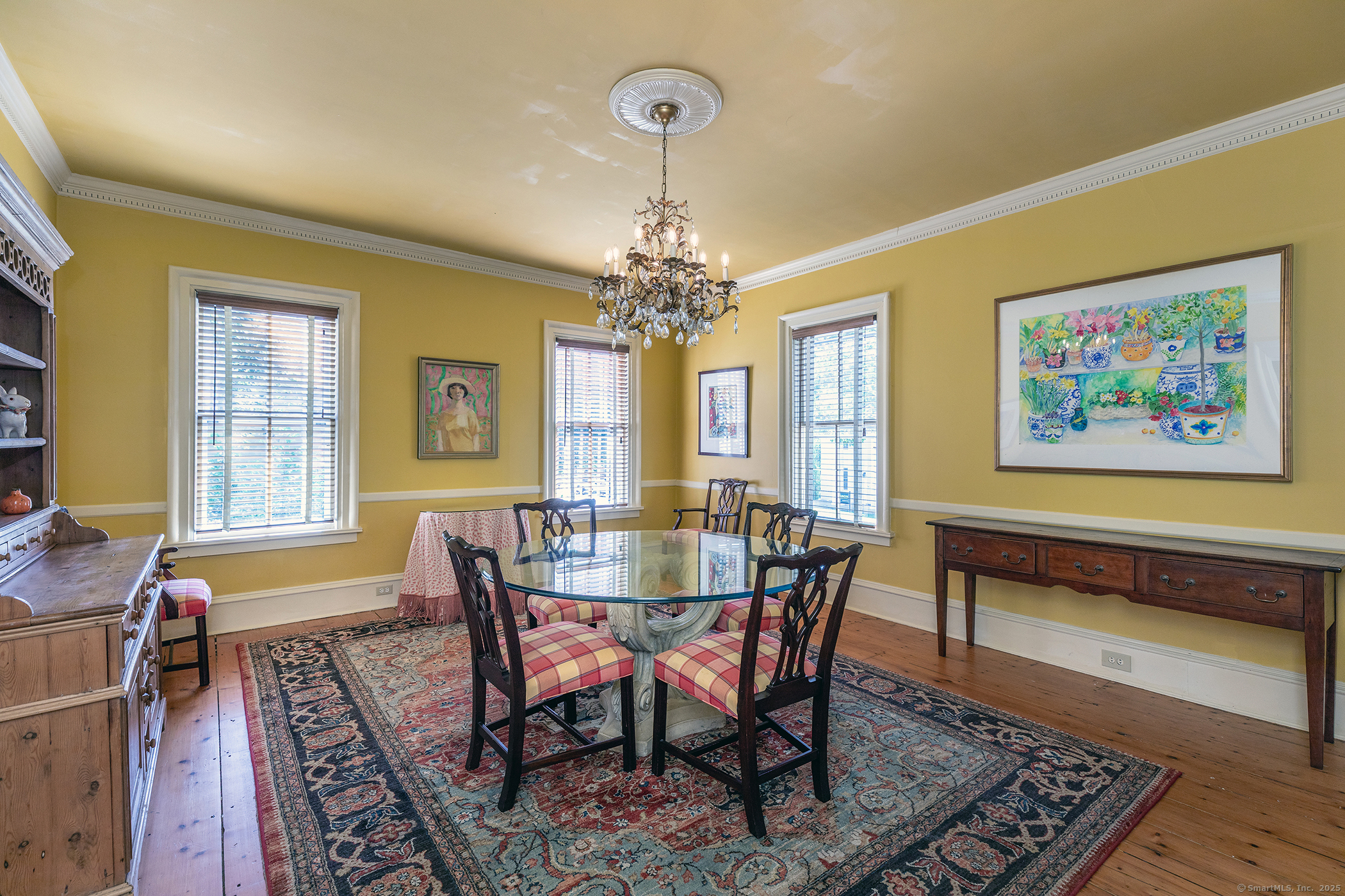 91 Main Street in Falls Village, CT is a gracious antique with stately front doors leading into a cozy foyer. To your left is a spacious Living Room with 9 ft ceiling height, dental molding, a fireplace, beautiful antique wide floor boards and French doors leading to a stone patio. The over-size windows invite in light while built in book cases and a seating area near the French doors offer a spot for reading. The large dining room, to the right of the foyer, mirrors the living room with 9 ft ceiling height, dental moldings and wide floorboards. The sunny eat in kitchen has a Zline gas stove, Bosch dishwasher and offers access to the back patio for entertaining. A renovated bathroom is conveniently located off the kitchen as well as a mudroom. Upstairs are four bedrooms. The primary is light filled and spacious. Current owners converted the smallest bedroom into a closet. The third bedroom easily can accommodate two twin beds or a queen depending on your needs. The fourth bedroom is cozy and has views of gardens and barn. A renovated full bath is centrally situated on this floor. Antique wide board floors continue throughout the second floor. Outside is equally charming. The front yard is peppered with Boxwood and Juniper a Dogwood and Crab Apple tree.Lining the driveway are Hydrangea and Iris. There is also a stone patio and greenhouse. The two story barn flanks the back of the property offering a parking spot for one car and ample space for a workshop or storage.