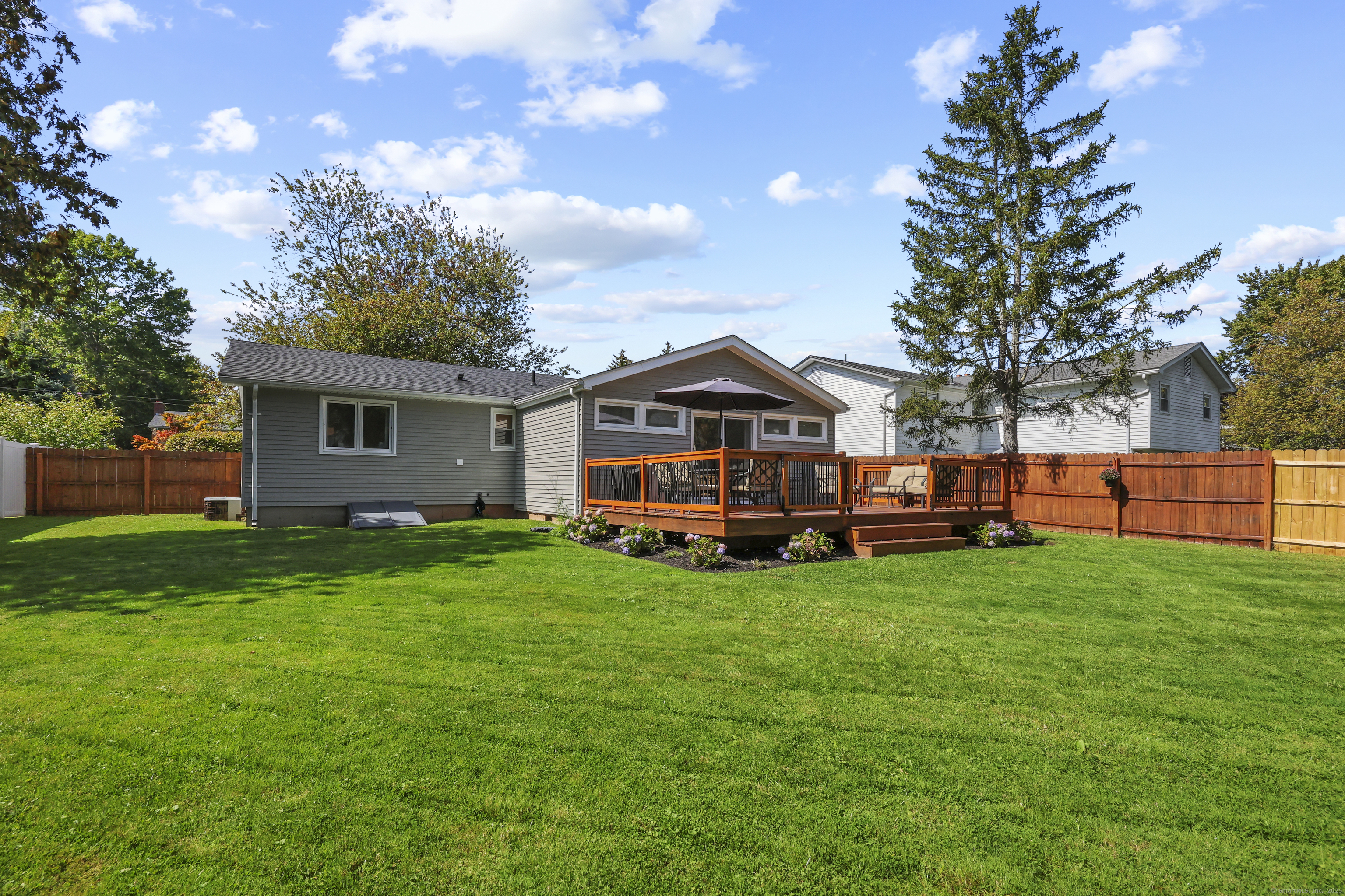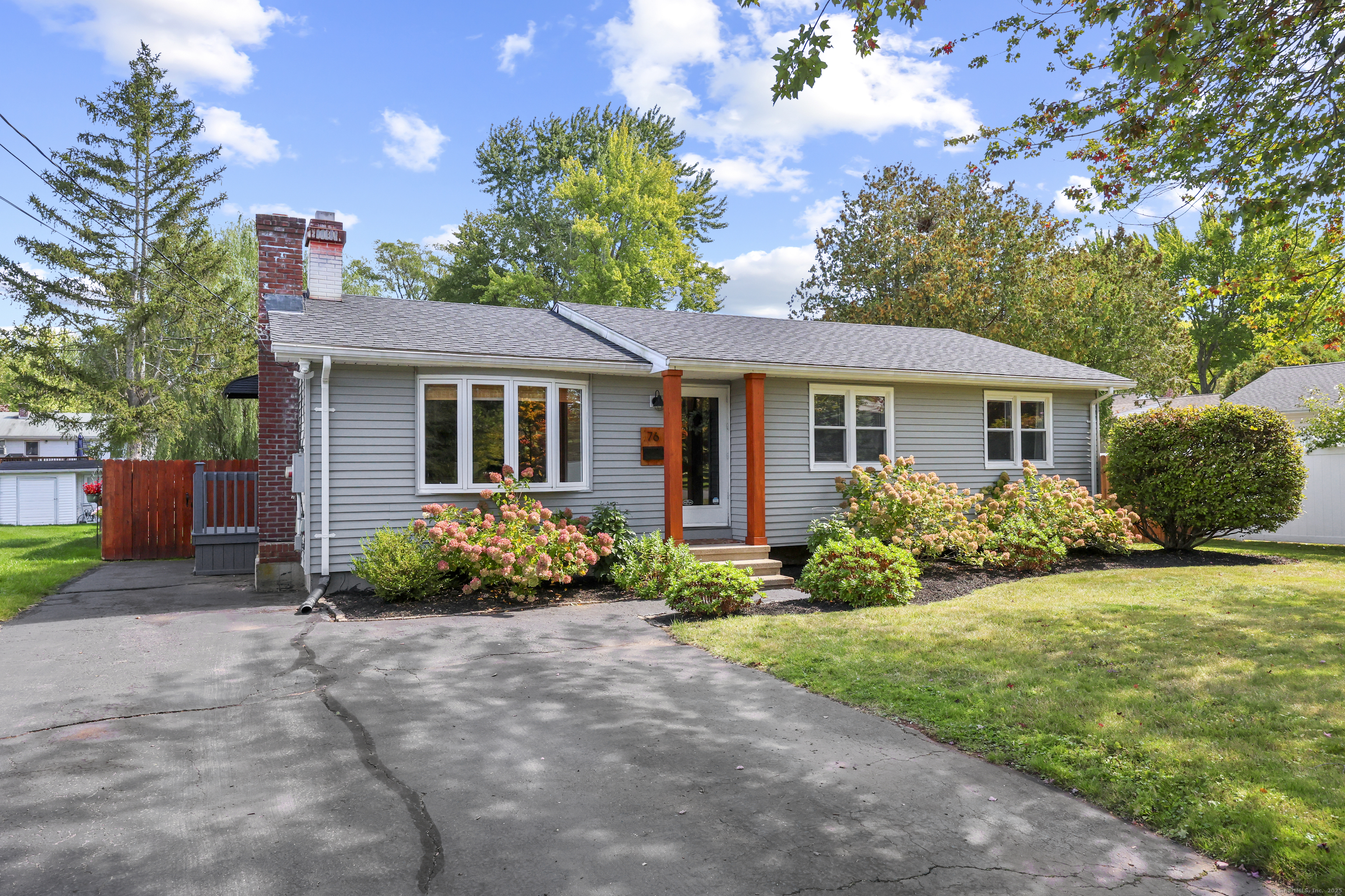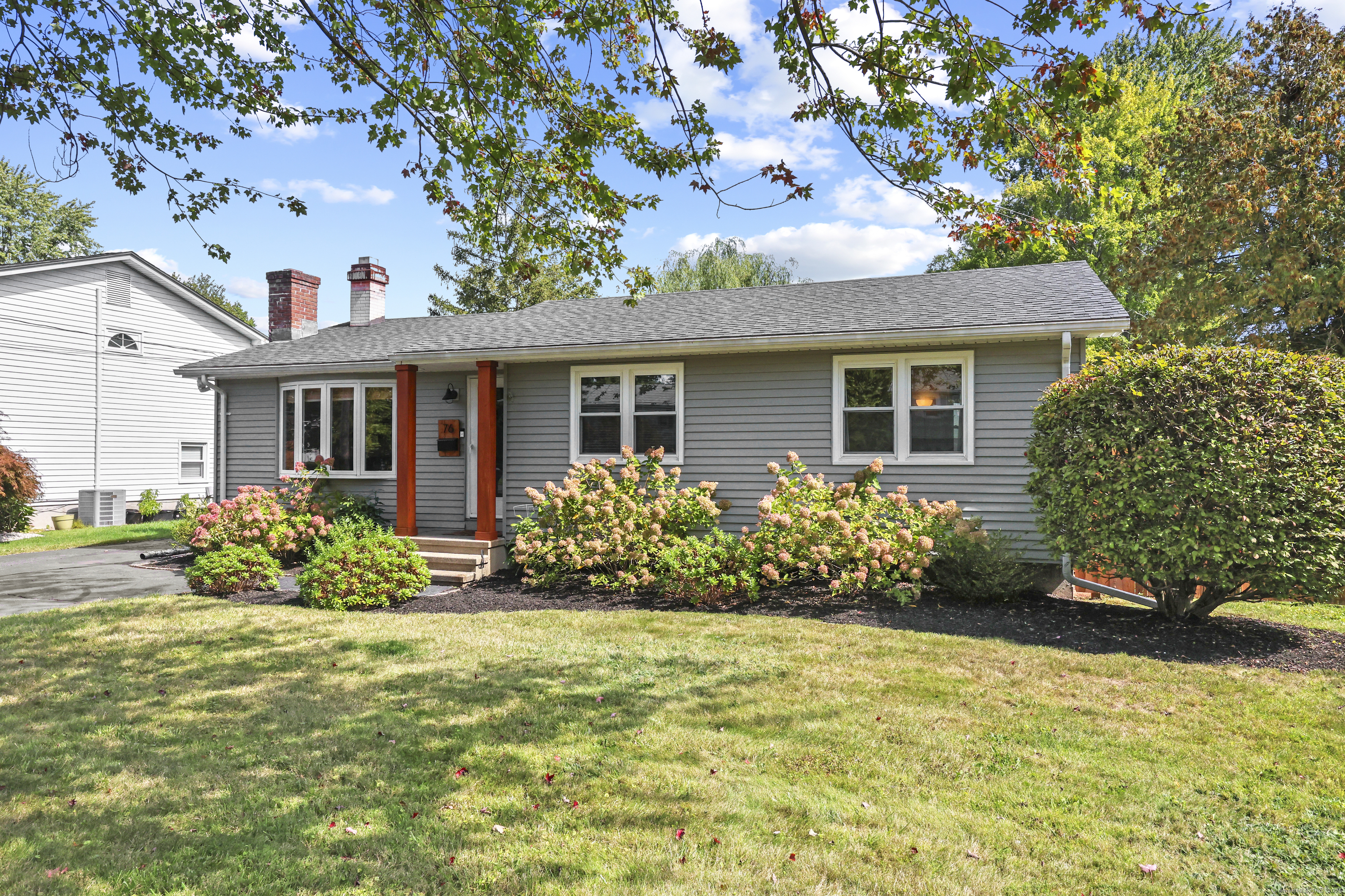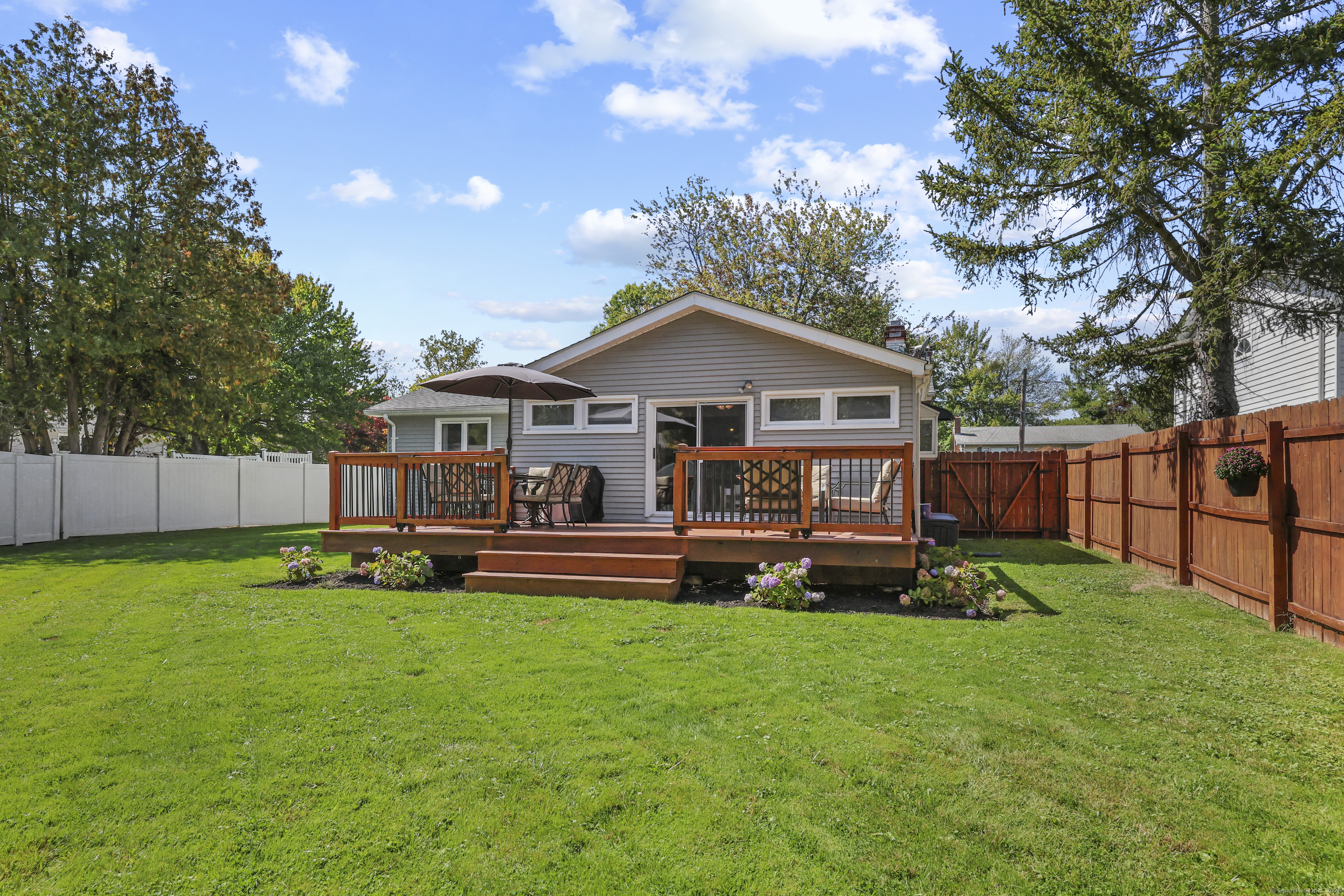 Welcome to this meticulously maintained and move in ready 3 bedroom Ranch style home in a very desirable location. Upon entering you are lead to the thoroughly remodeled kitchen with quality features, including quartz counters and stainless steel appliances. It is open to the spacious, bright and inviting living room with vaulted ceiling and sliders that open to a large deck overlooking the lush green lawn. The fenced in yard adds to privacy for grilling or even just being a fun place to sit. Both the third bedroom and the dining room with fireplace are good locations for an office if needed. Gleaming hardwood floors reveal that this home has been well loved and cared for. Roof replaced in 2021. Basement has ample storage. Come preview this home and make it yours!