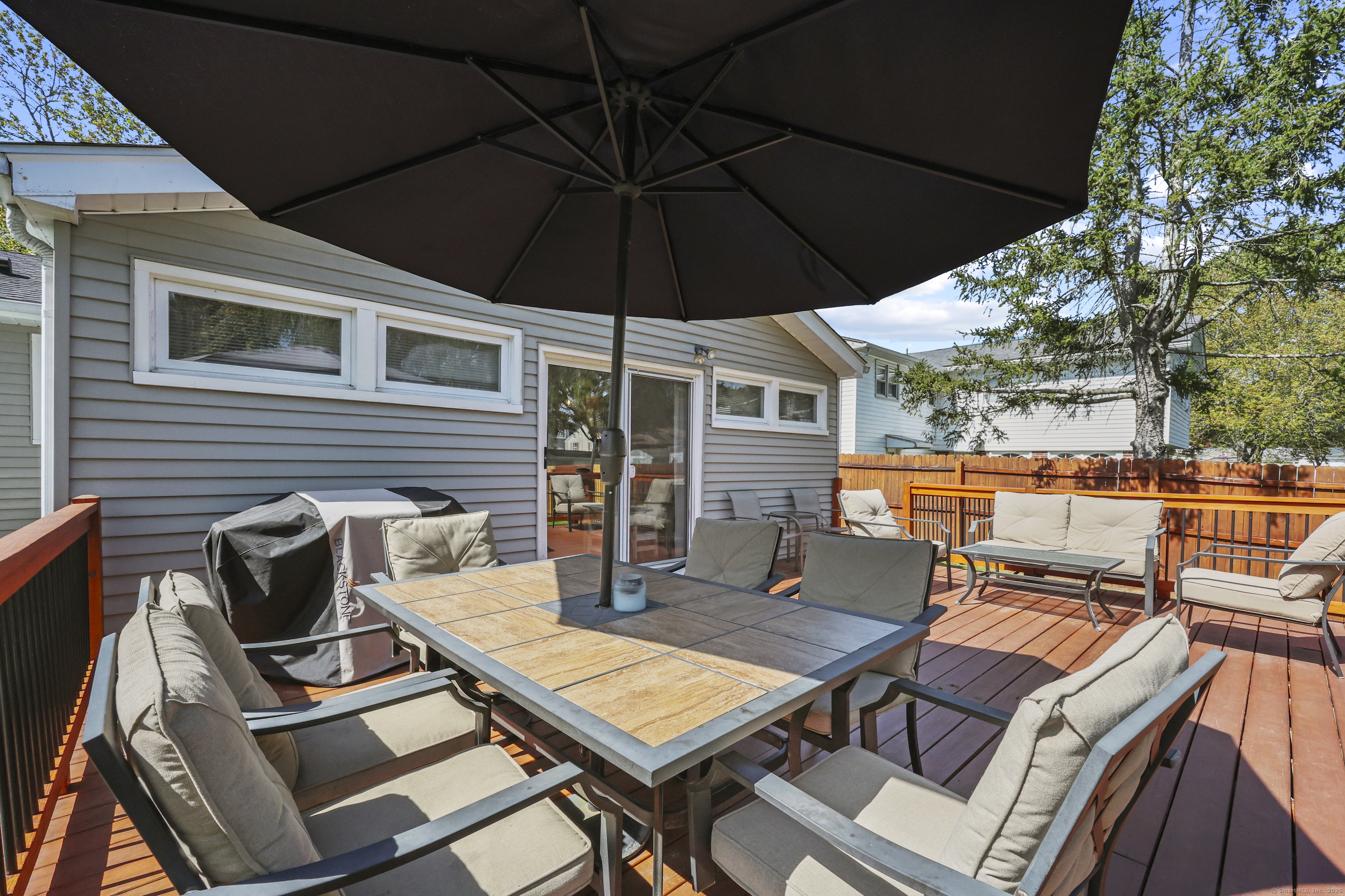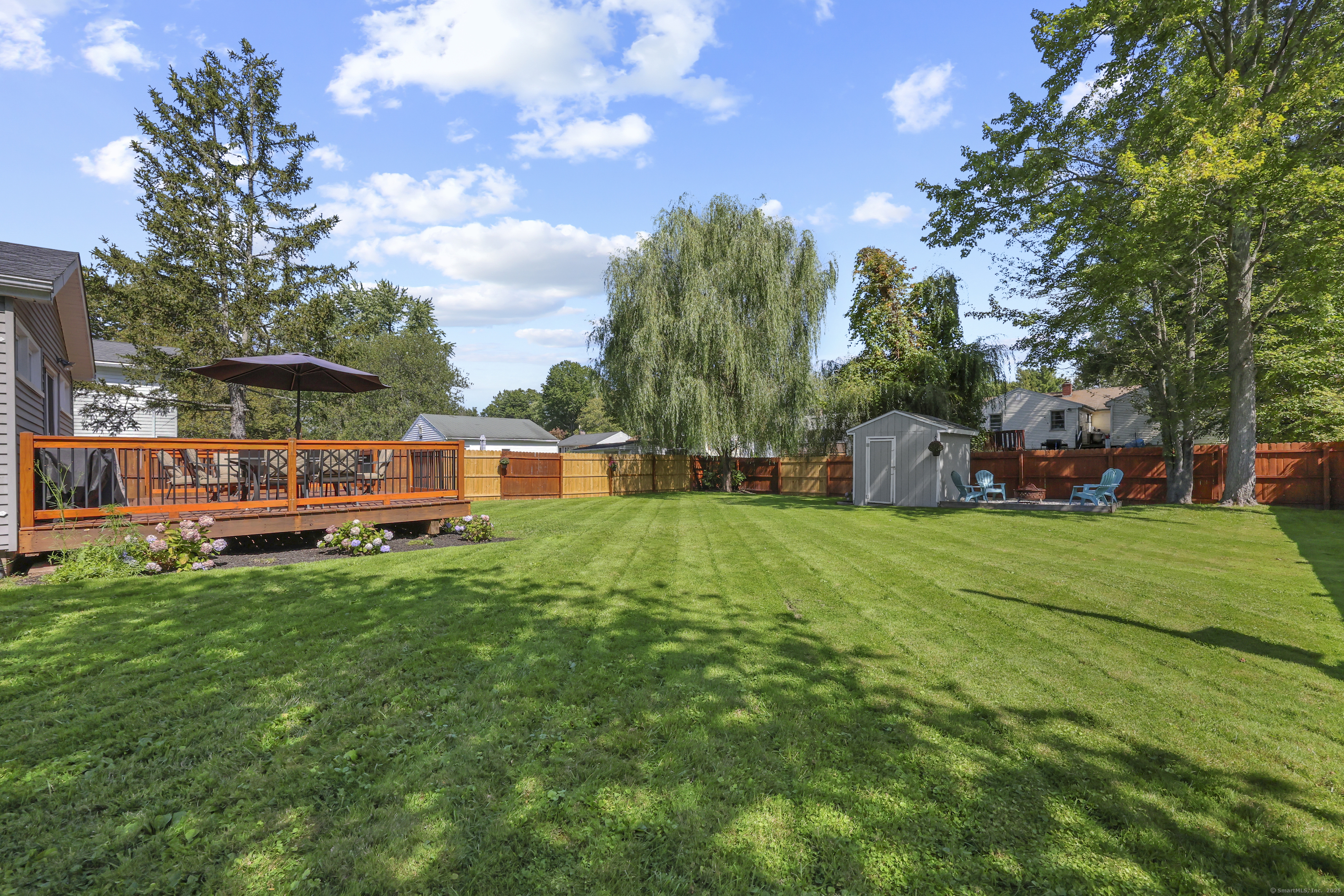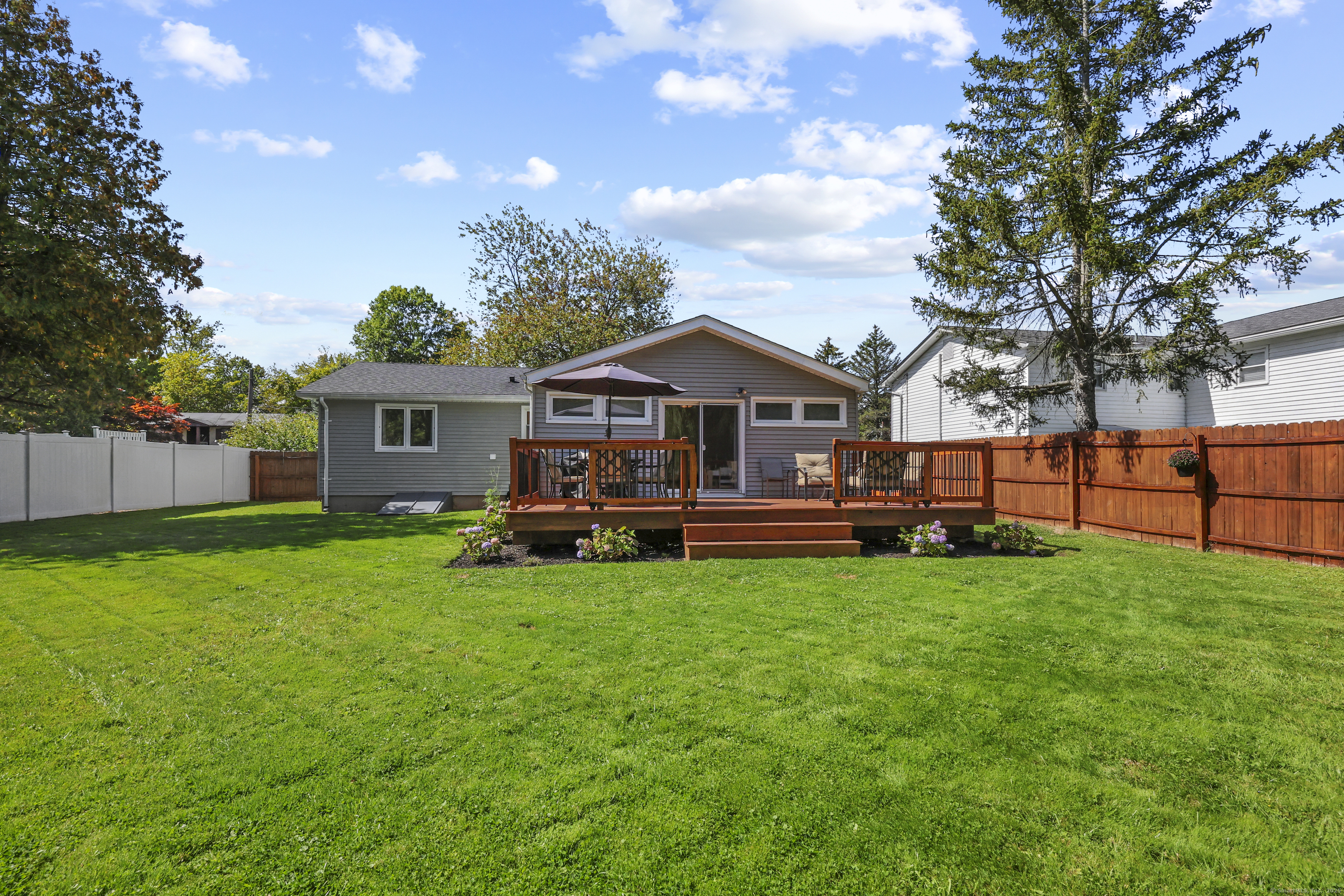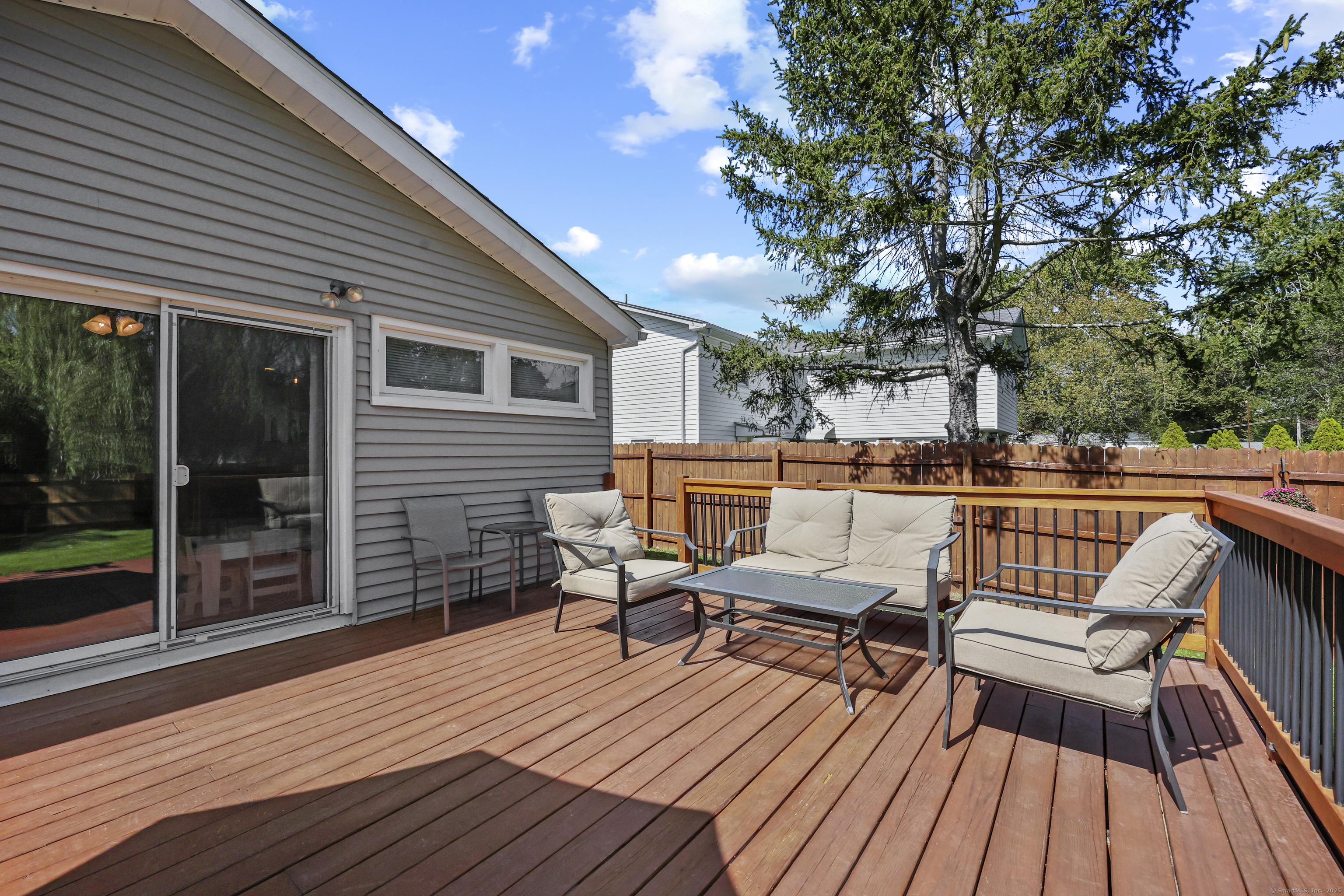 Welcome to this meticulously maintained and move in ready 3 bedroom Ranch style home in a very desirable location. Upon entering you are lead to the thoroughly remodeled kitchen with quality features, including quartz counters and stainless steel appliances. It is open to the spacious, bright and inviting living room with vaulted ceiling and sliders that open to a large deck overlooking the lush green lawn. The fenced in yard adds to privacy for grilling or even just being a fun place to sit. Both the third bedroom and the dining room with fireplace are good locations for an office if needed. Gleaming hardwood floors reveal that this home has been well loved and cared for. Roof replaced in 2021. Basement has ample storage. Come preview this home and make it yours!
