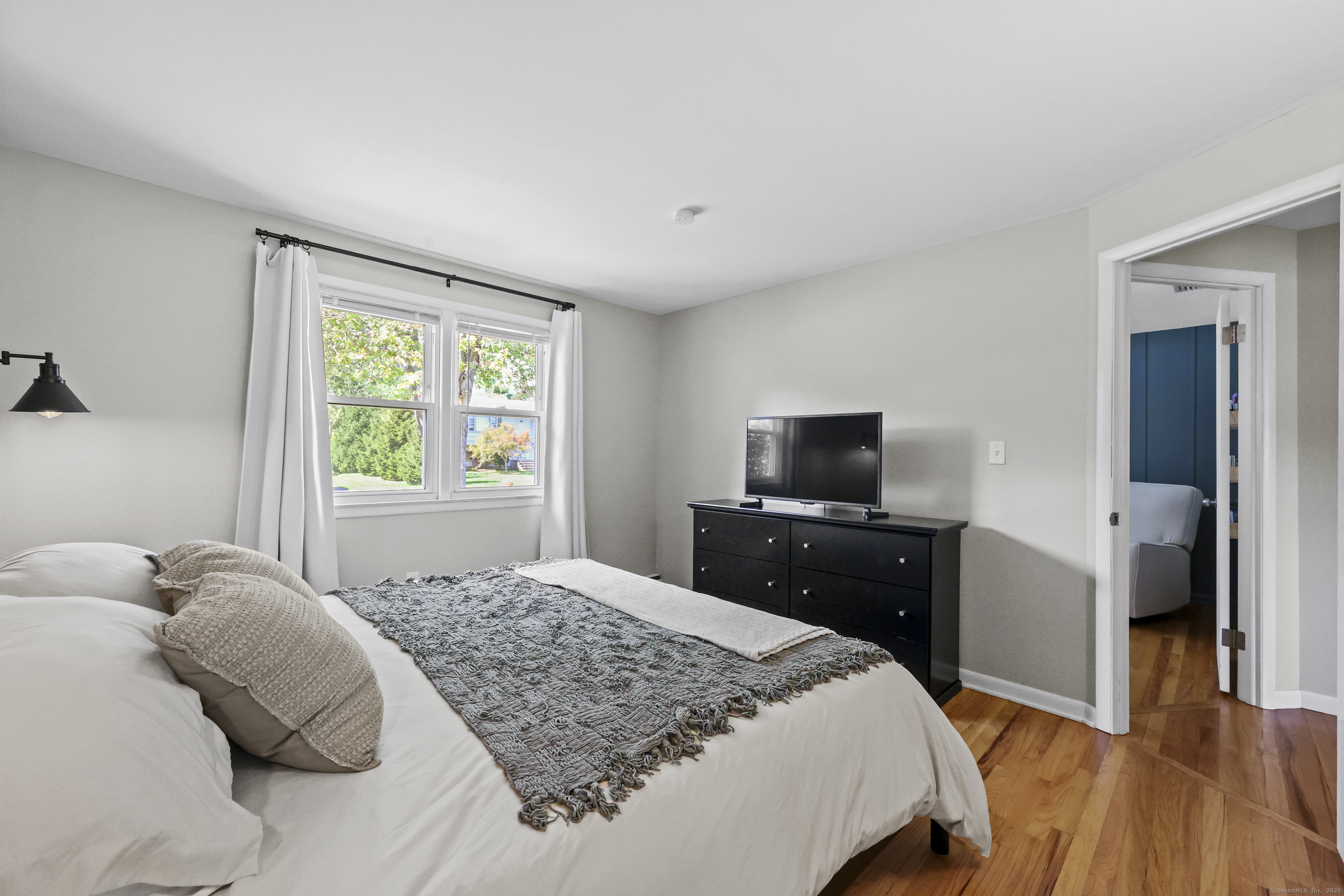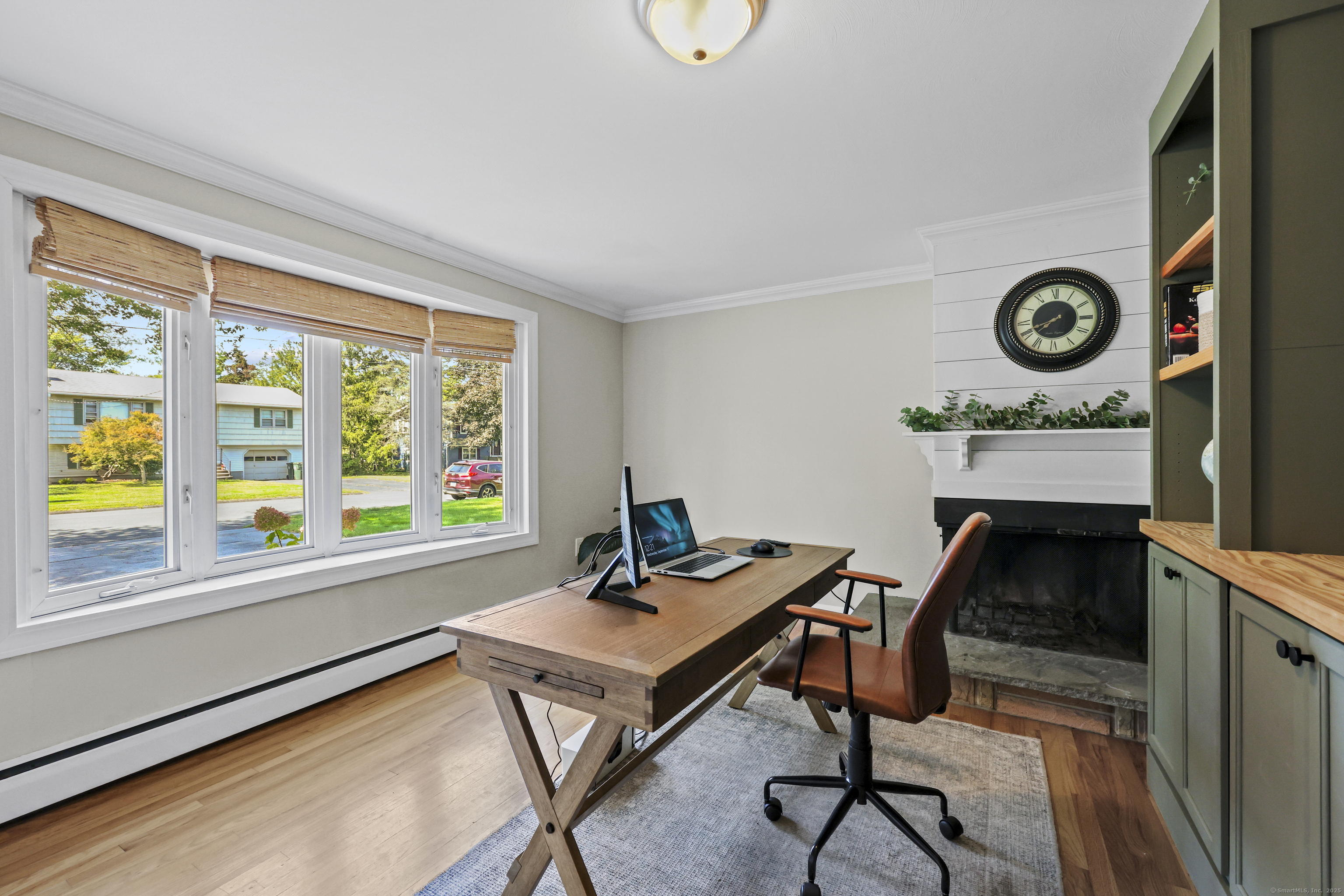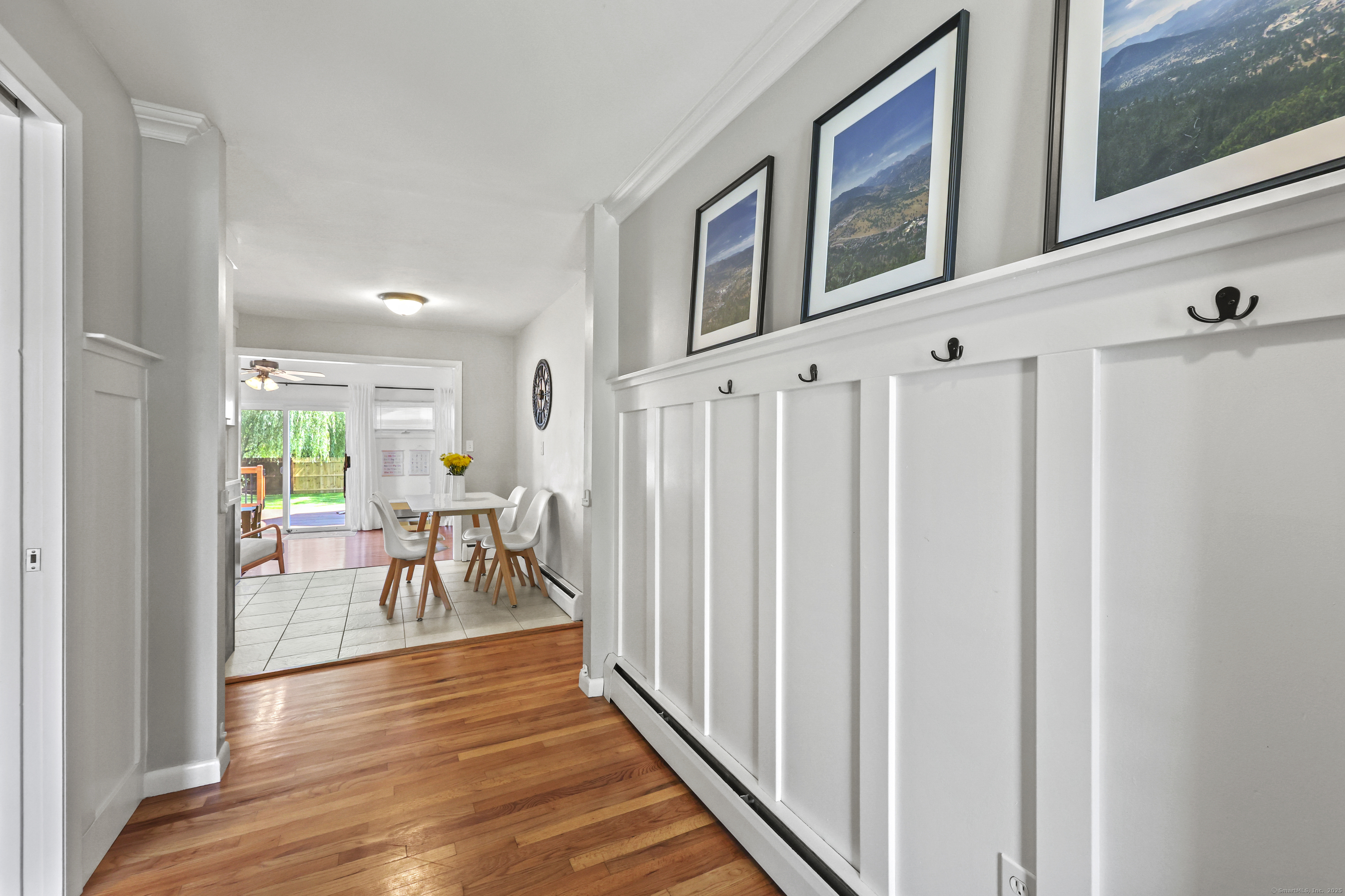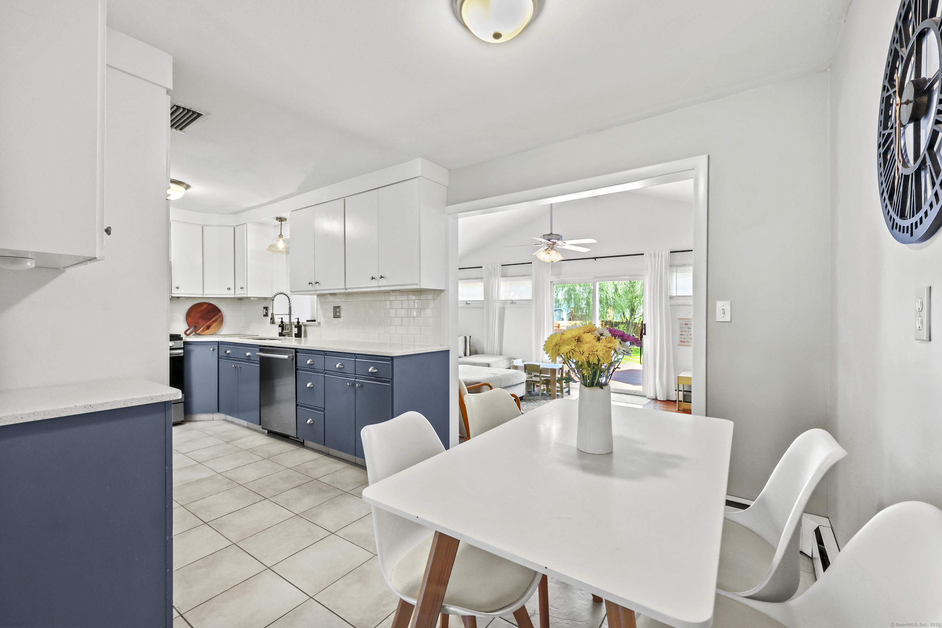 Welcome to this meticulously maintained and move in ready 3 bedroom Ranch style home in a very desirable location. Upon entering you are lead to the thoroughly remodeled kitchen with quality features, including quartz counters and stainless steel appliances. It is open to the spacious, bright and inviting living room with vaulted ceiling and sliders that open to a large deck overlooking the lush green lawn. The fenced in yard adds to privacy for grilling or even just being a fun place to sit. Both the third bedroom and the dining room with fireplace are good locations for an office if needed. Gleaming hardwood floors reveal that this home has been well loved and cared for. Roof replaced in 2021. Basement has ample storage. Come preview this home and make it yours!